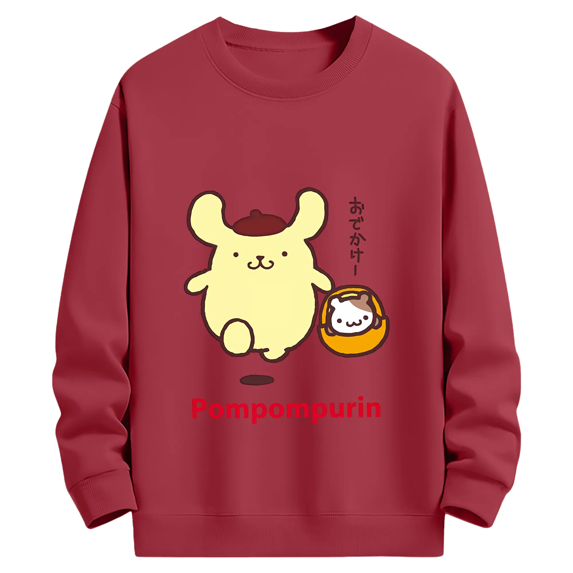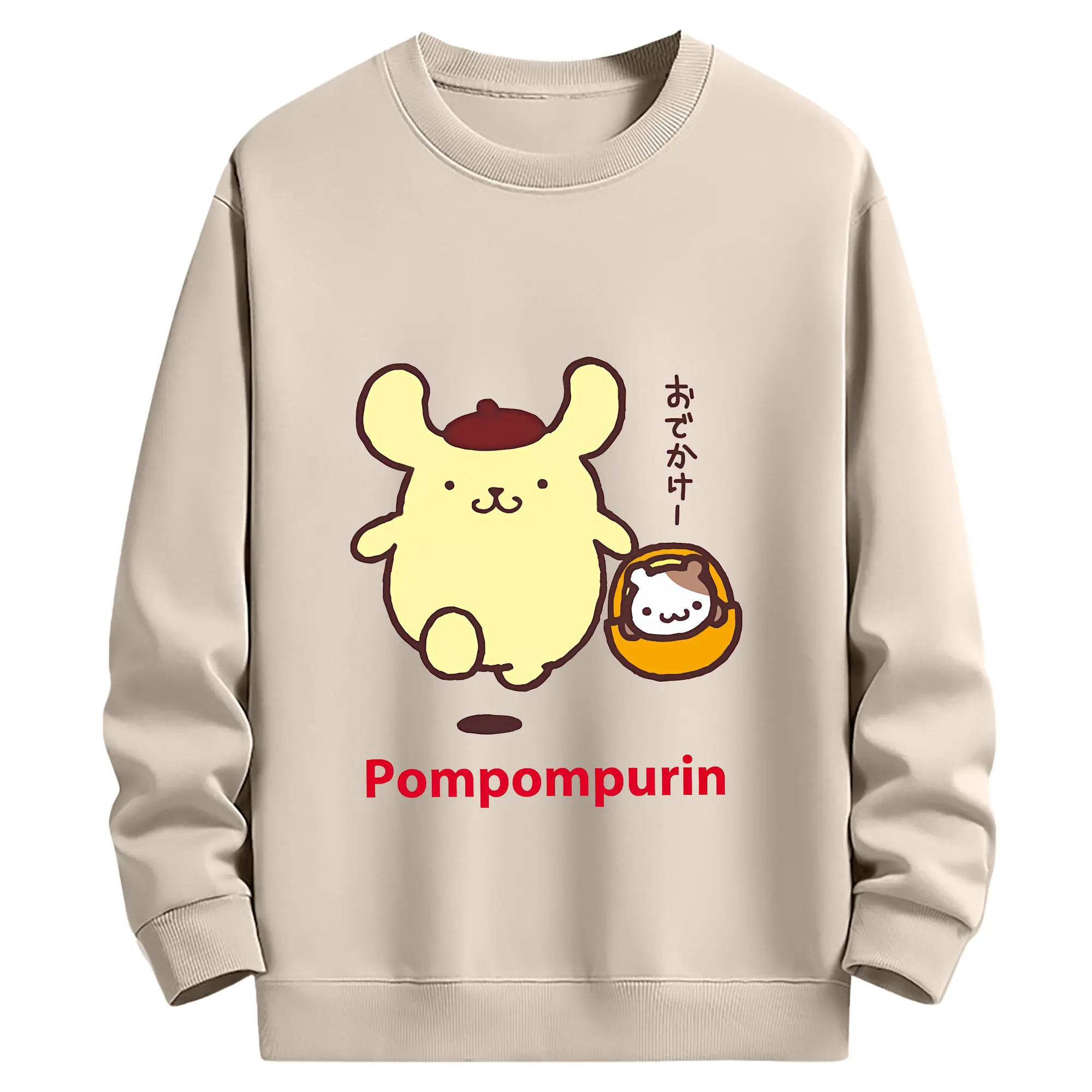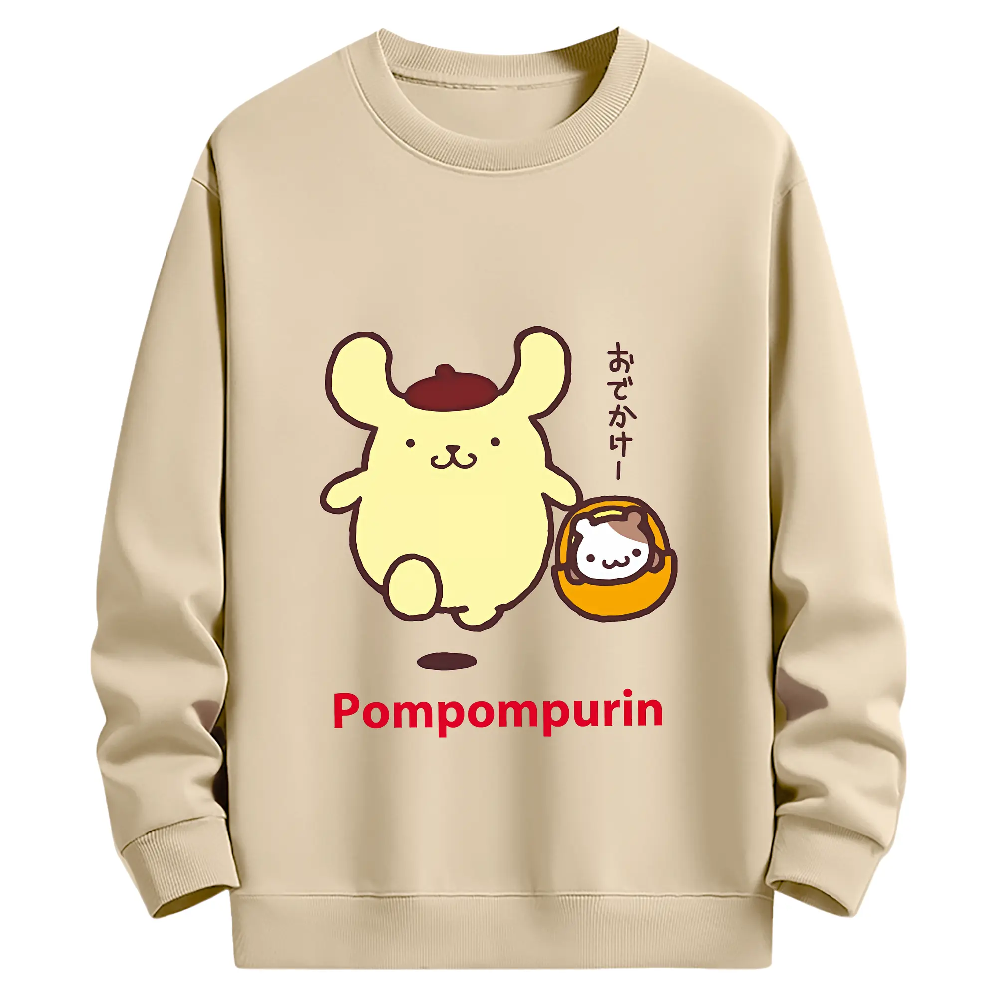 サンリオ グッズ,ポムポムプリン - 薄手 クルーネック スウェット 裏毛260g · ポリエステル 春秋向け カジュアル 男女兼用 · トレーナー デイリー スポーツ 散歩に最適