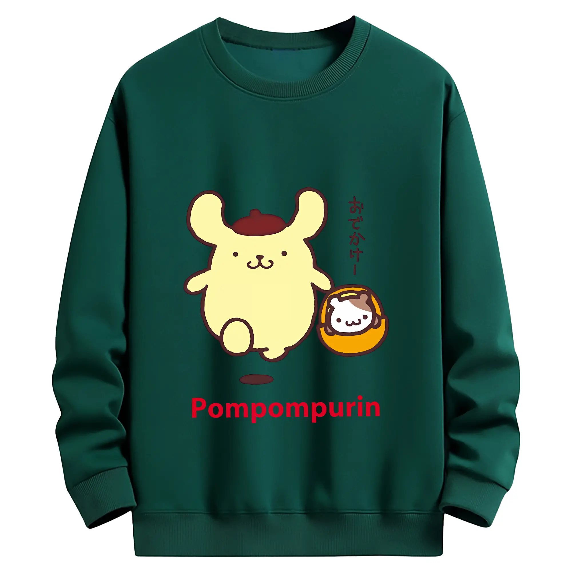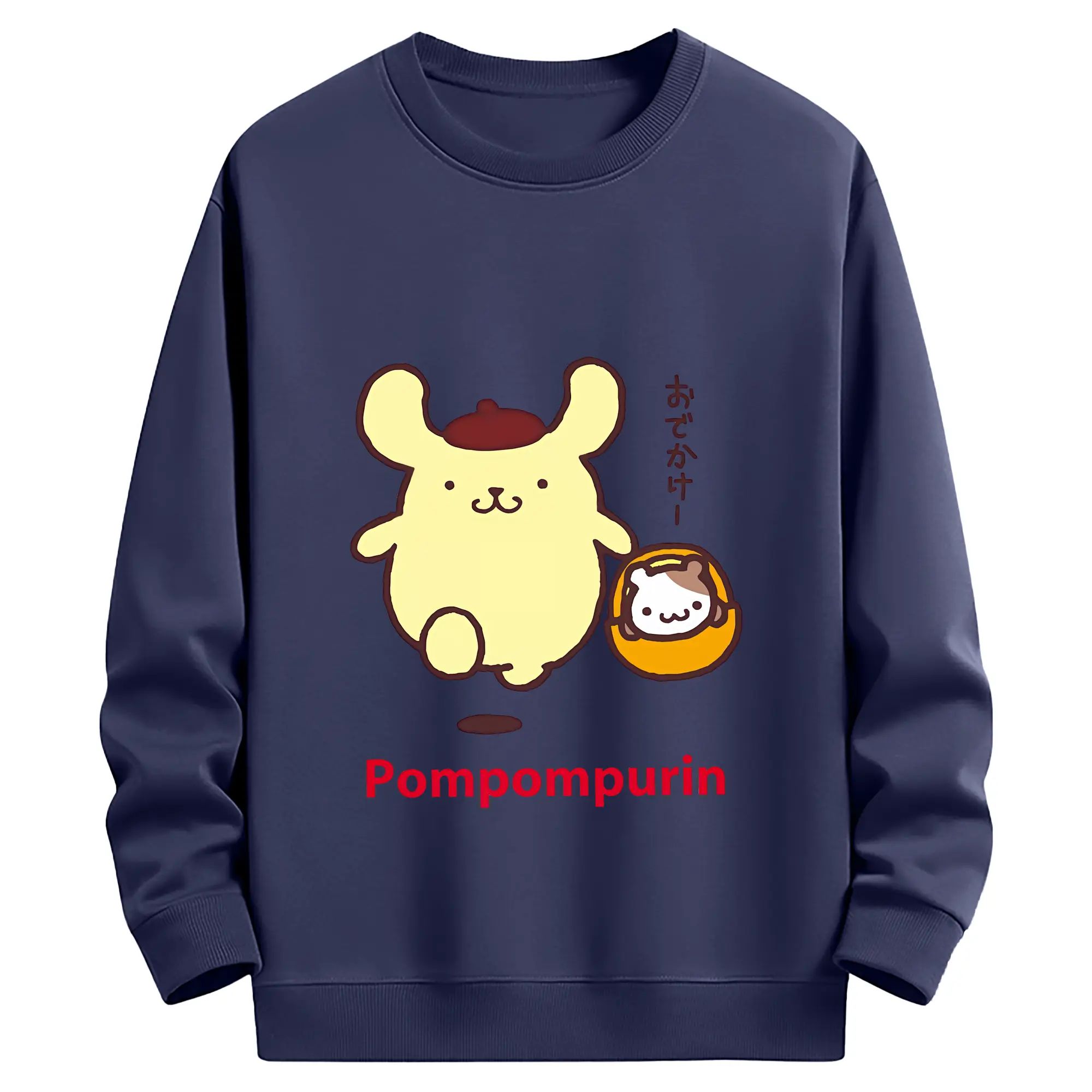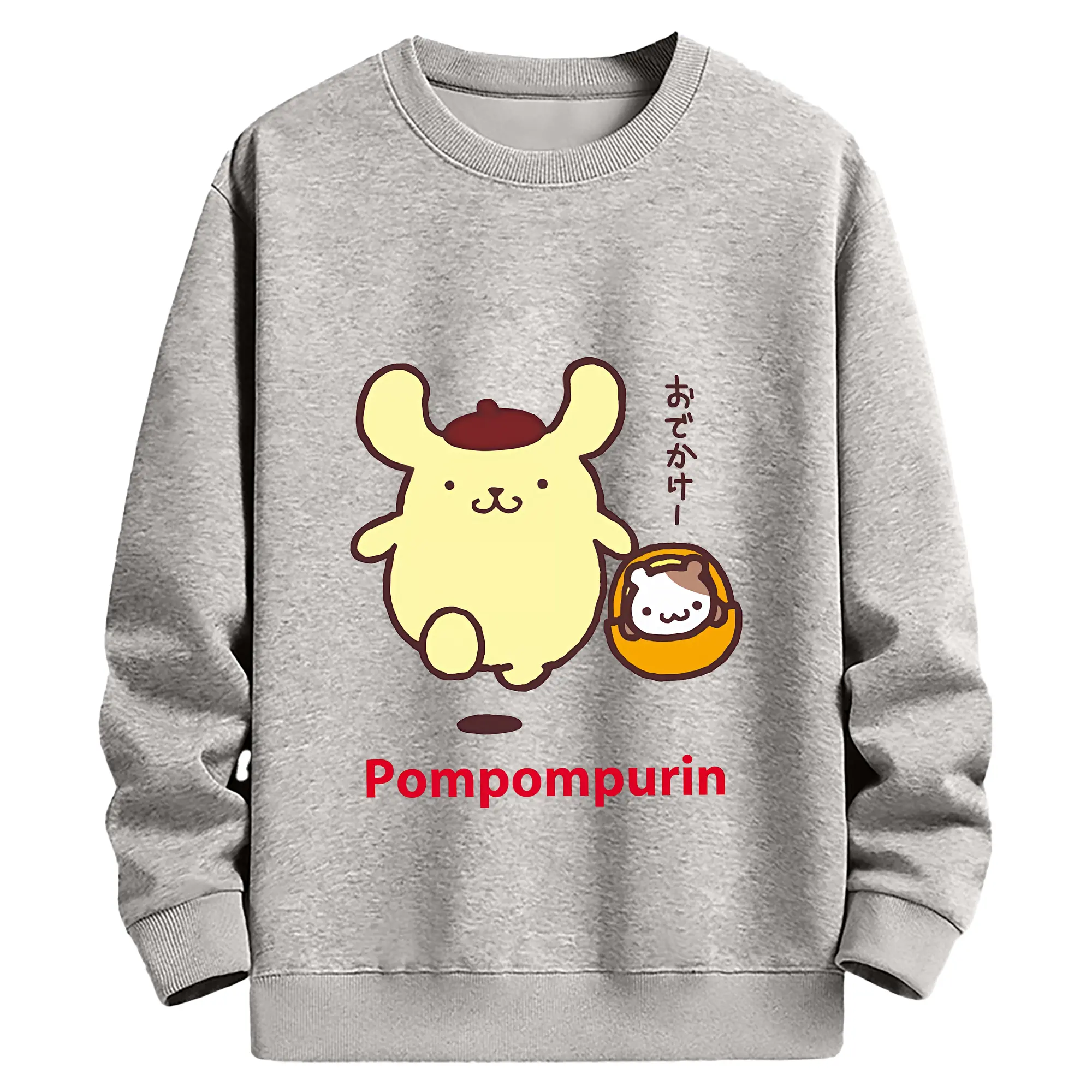 サンリオ グッズ,ポムポムプリン - 薄手 クルーネック スウェット 裏毛260g · ポリエステル 春秋向け カジュアル 男女兼用 · トレーナー デイリー スポーツ 散歩に最適