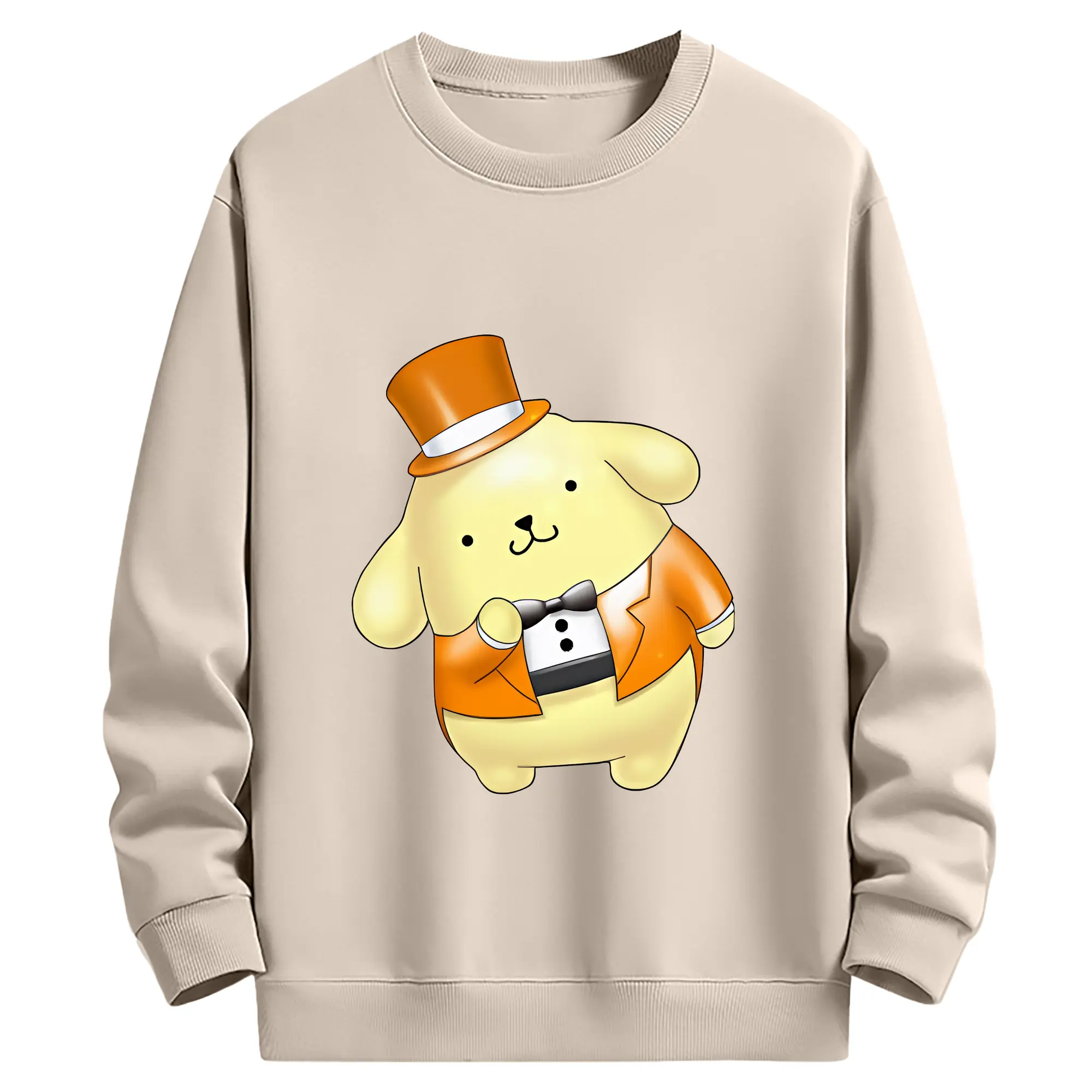 サンリオ グッズ,ポムポムプリン - 薄手 クルーネック スウェット 裏毛260g · ポリエステル 春秋向け カジュアル 男女兼用 · トレーナー デイリー スポーツ 散歩に最適