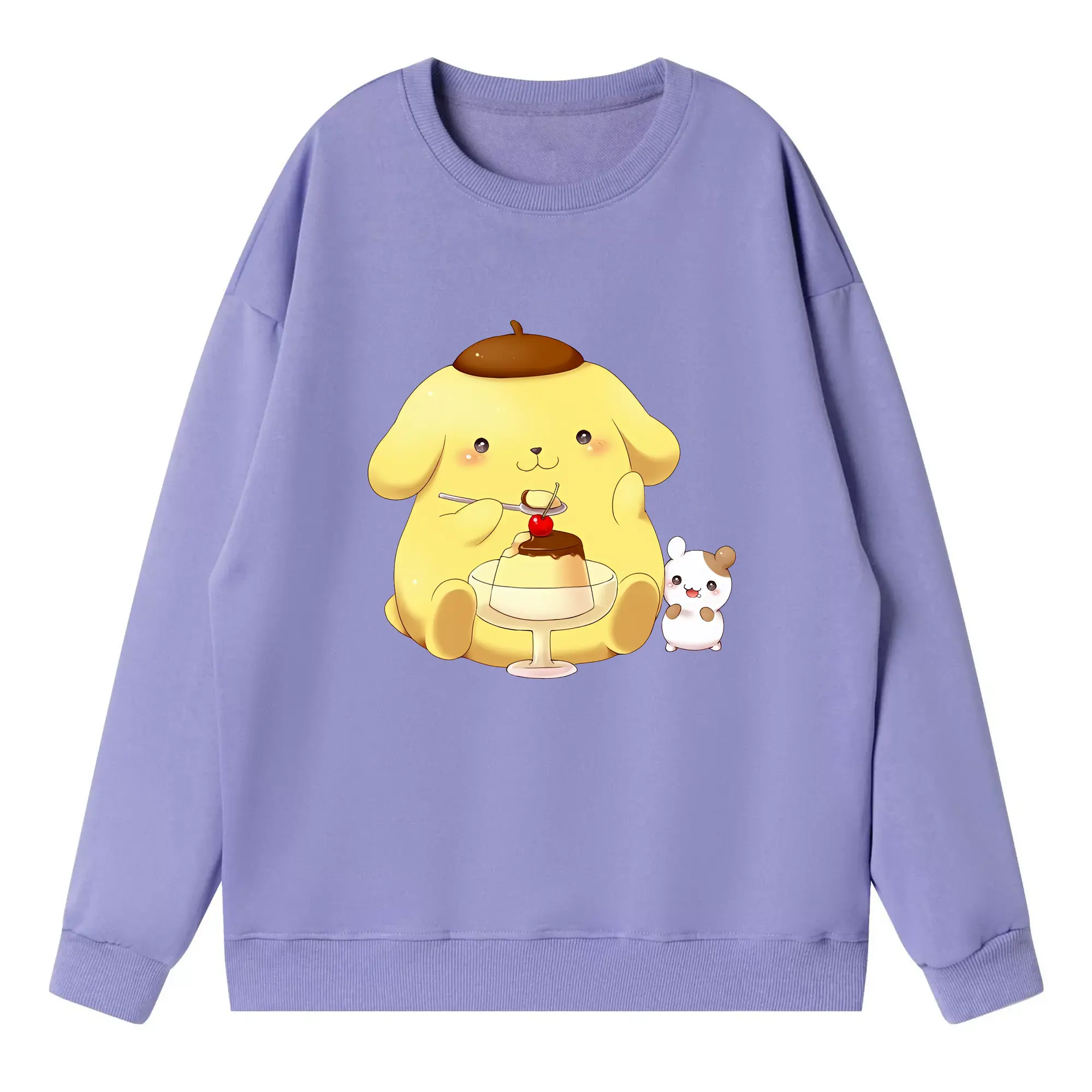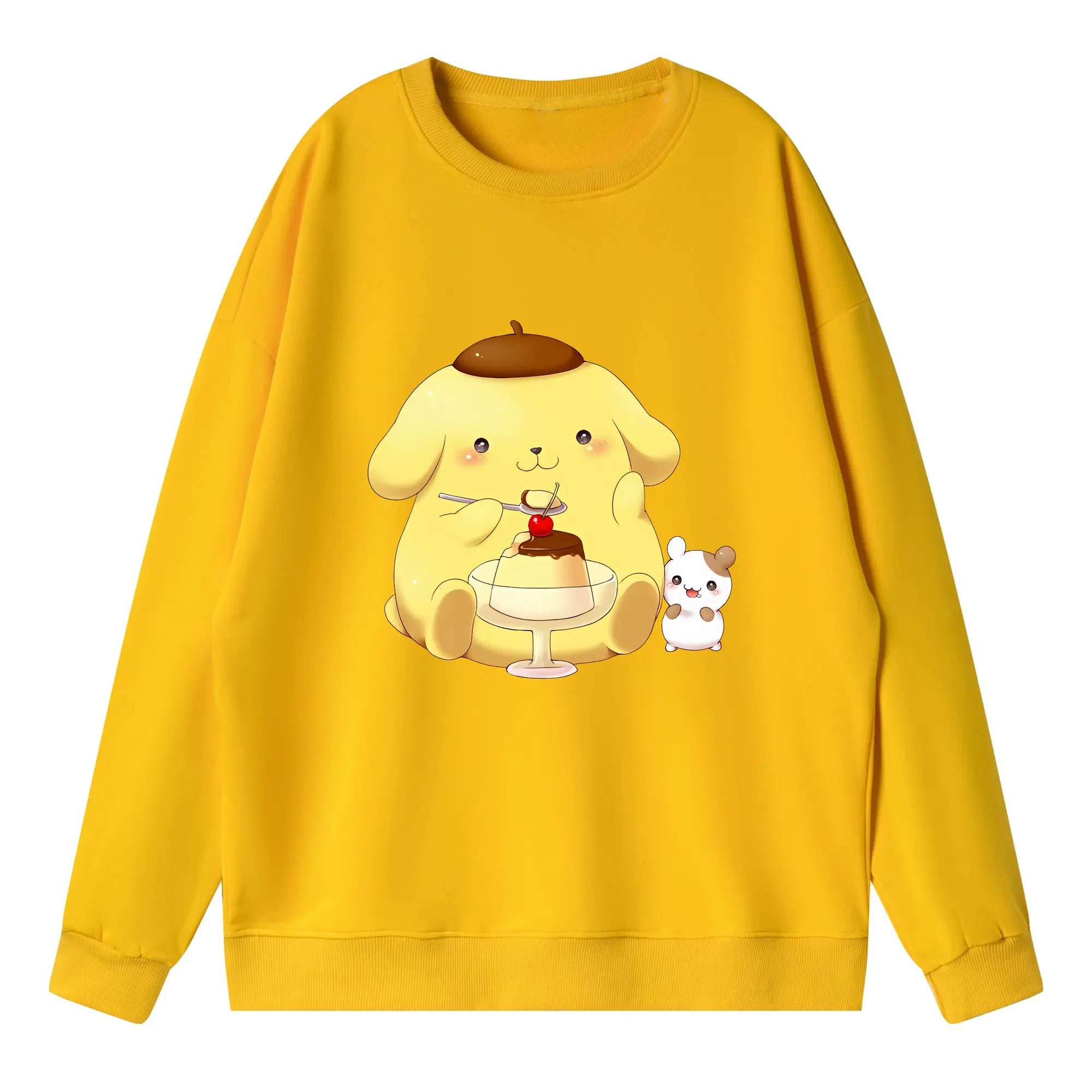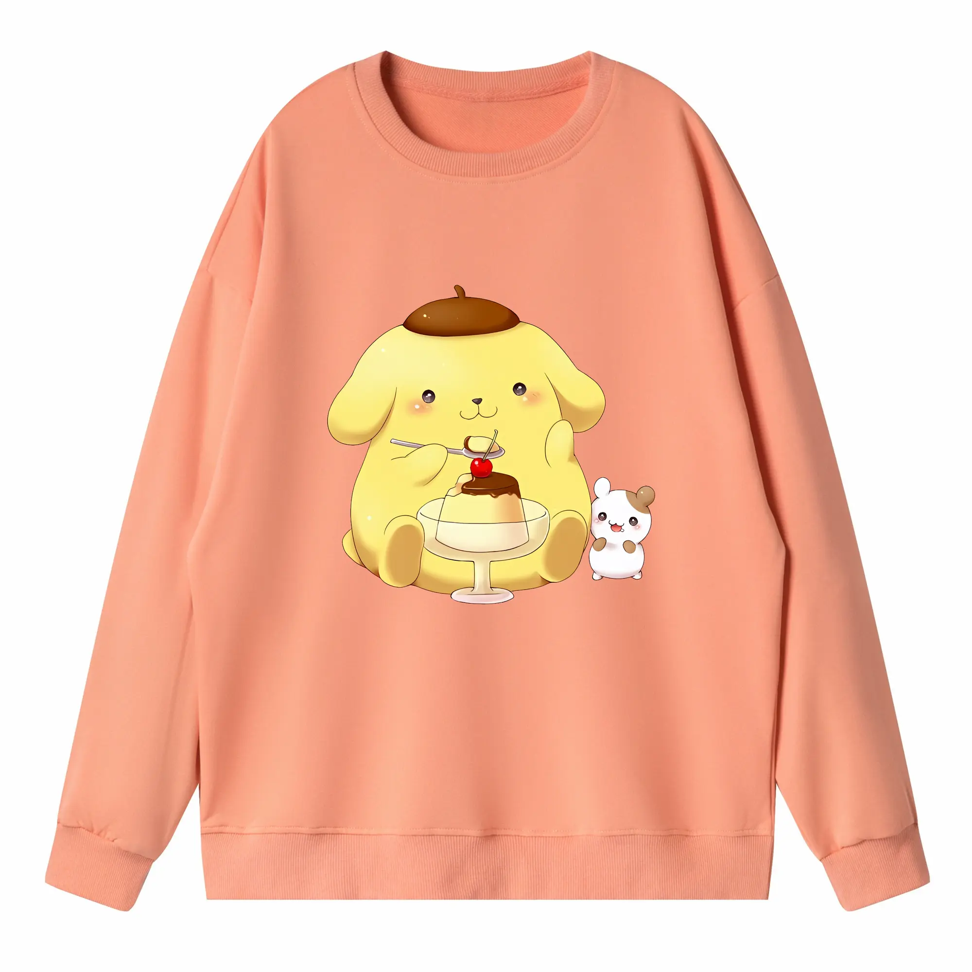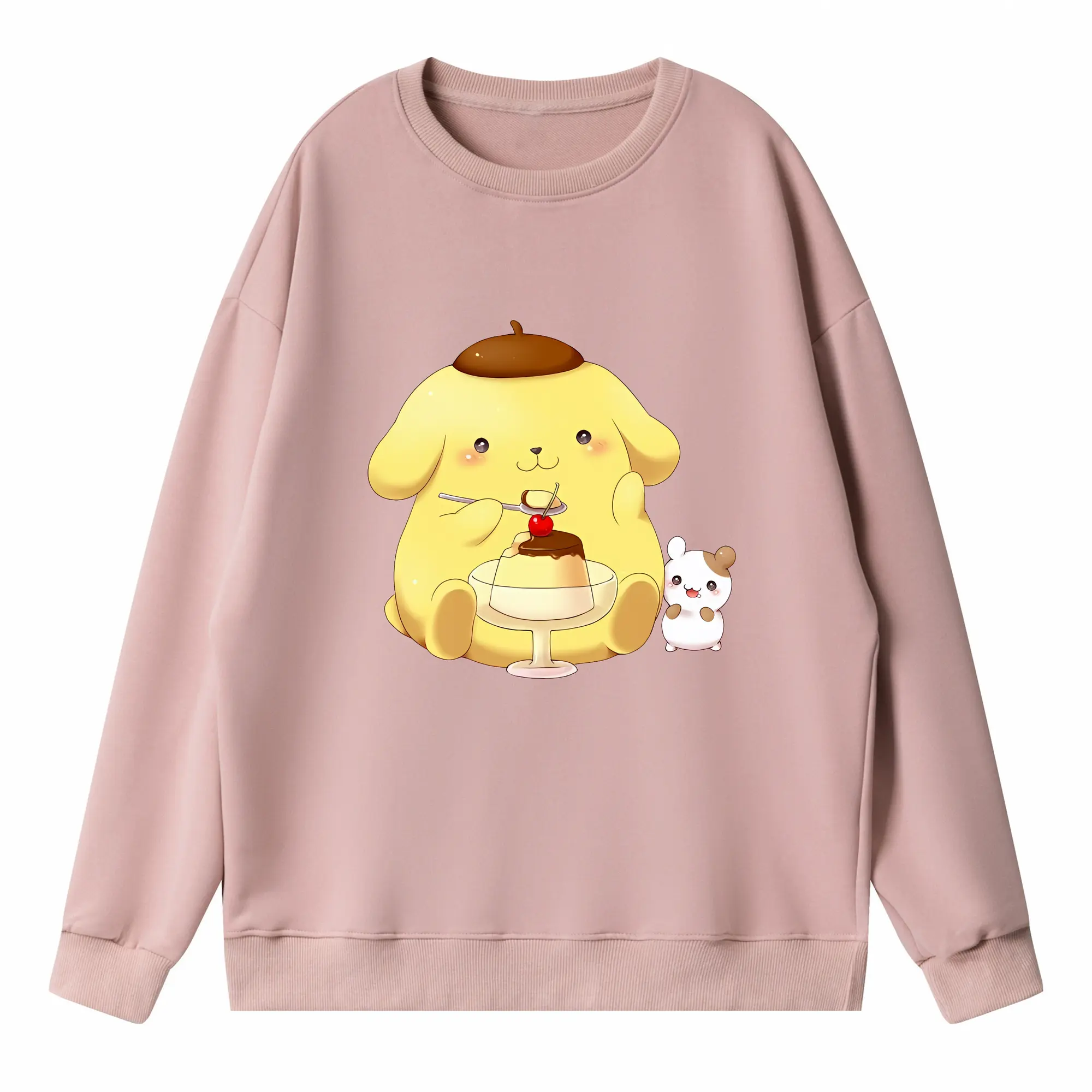 サンリオ グッズ,ポムポムプリン - 高品質 クルーネック スウェット ・ コットン59% ポリエステル41% ・ ユニセックス 長袖 トレーナー ・ カジュアル デイリー スポーツ 散歩用