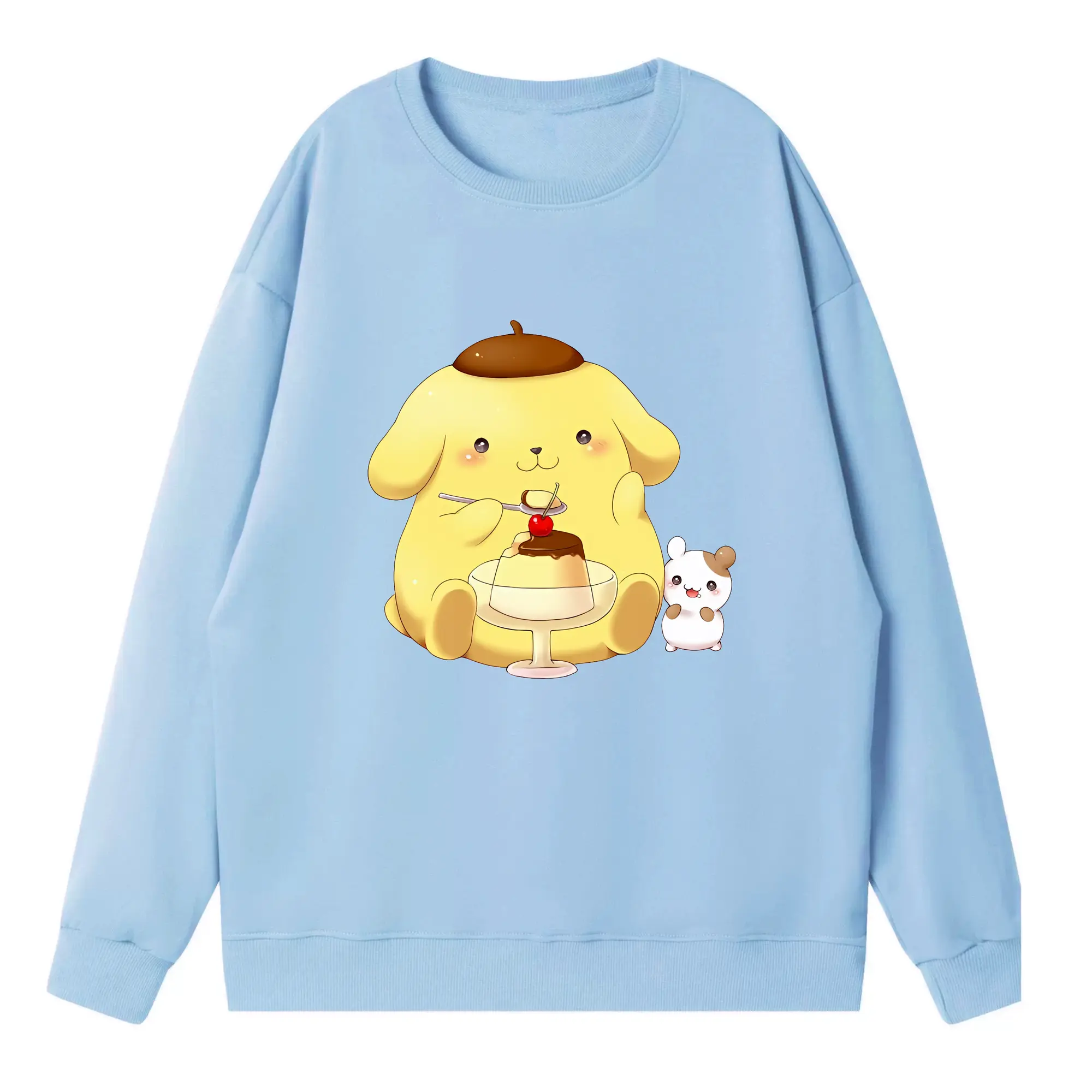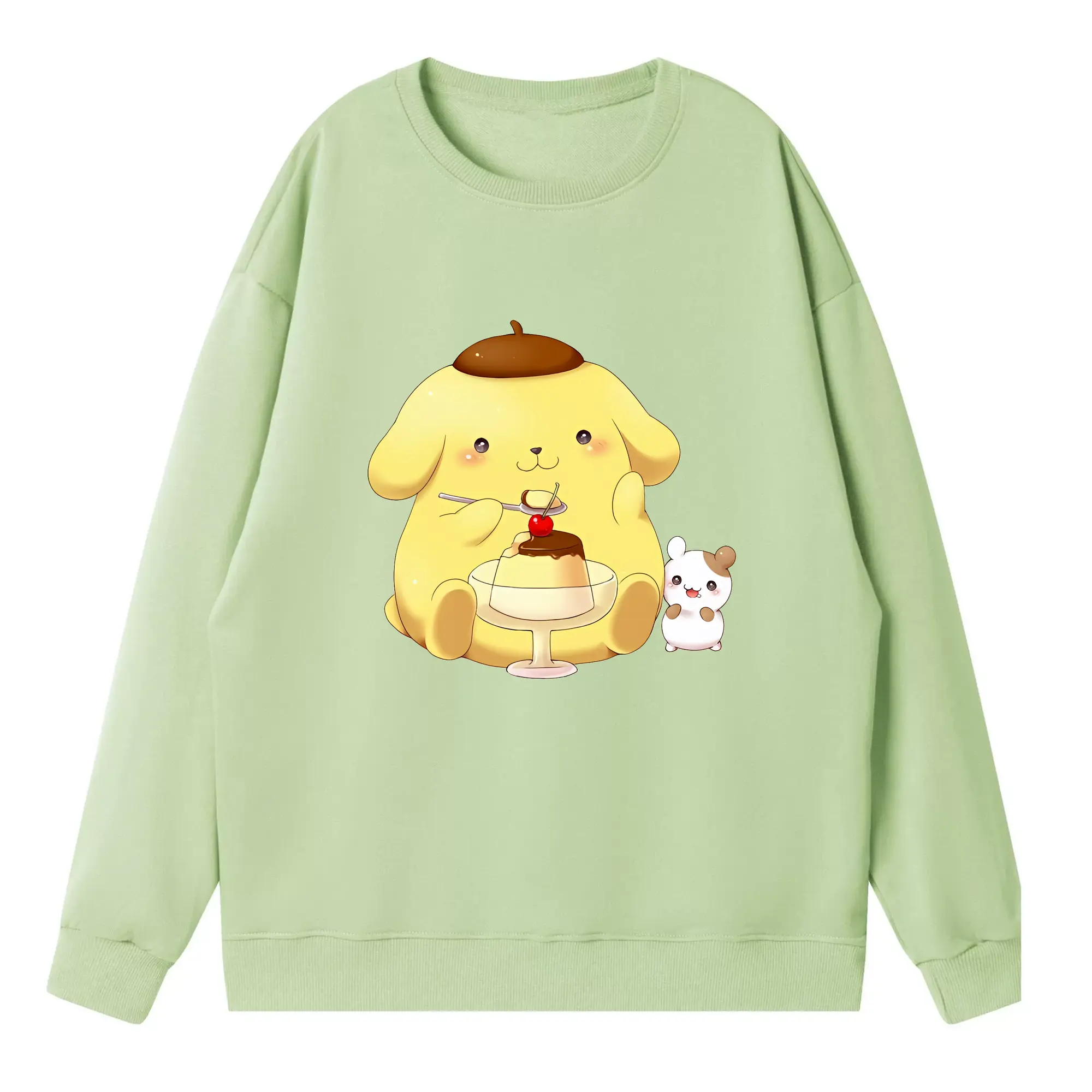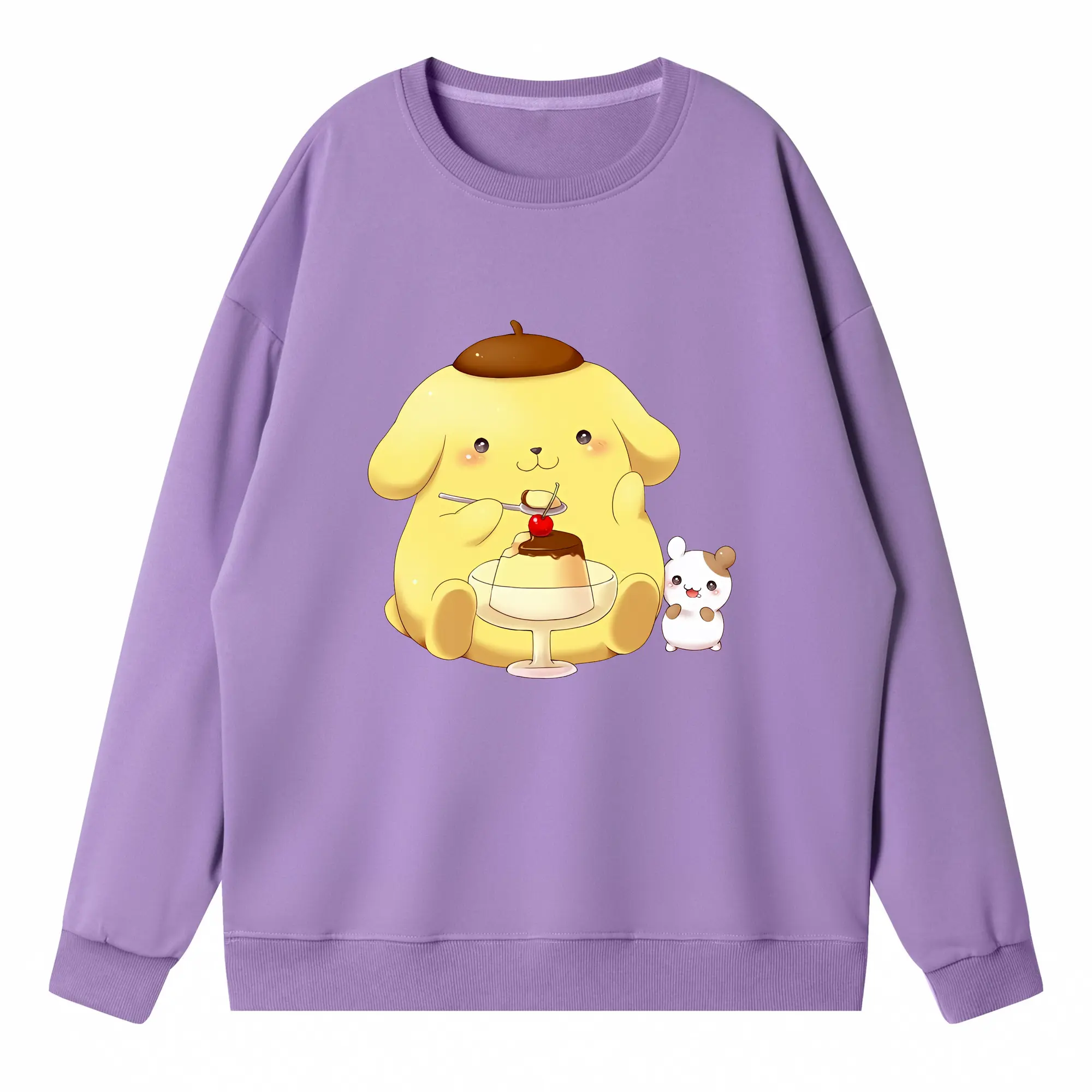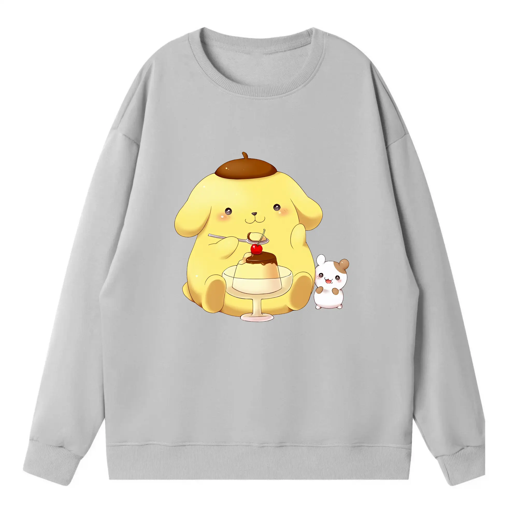 サンリオ グッズ,ポムポムプリン - 高品質 クルーネック スウェット ・ コットン59% ポリエステル41% ・ ユニセックス 長袖 トレーナー ・ カジュアル デイリー スポーツ 散歩用