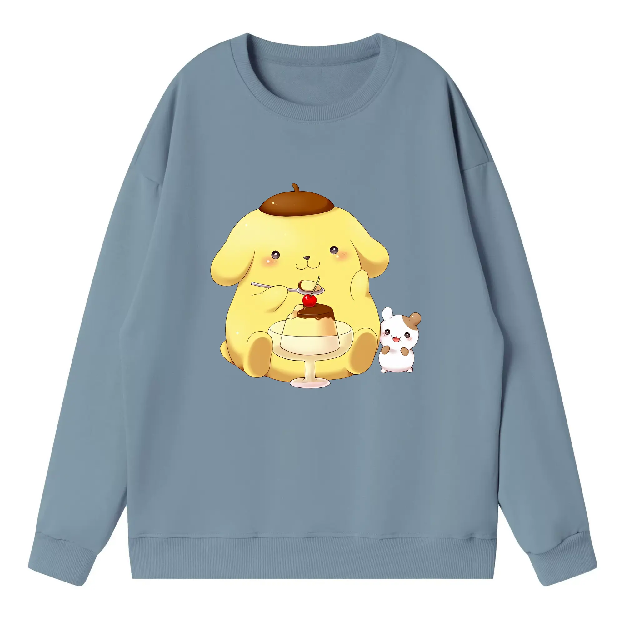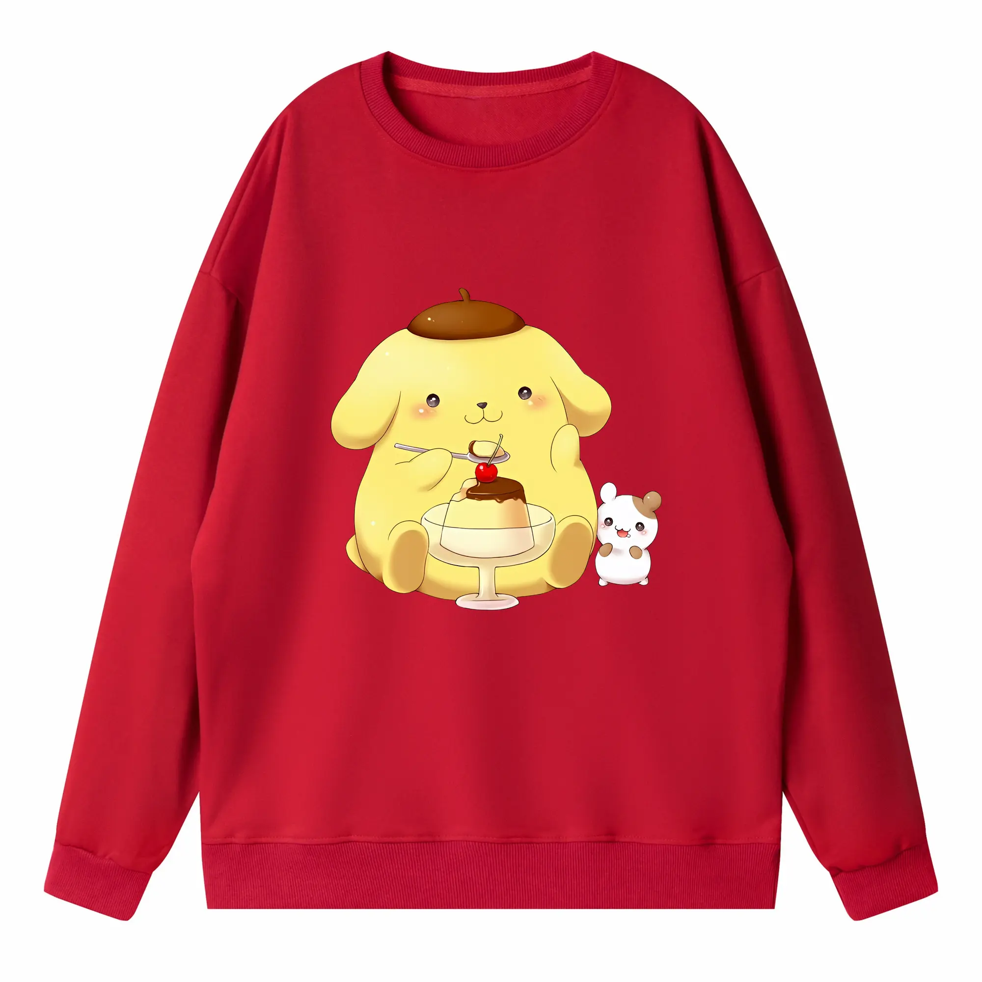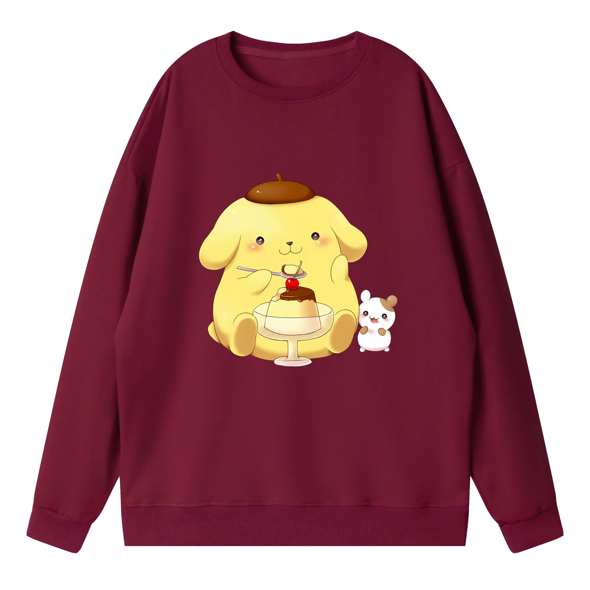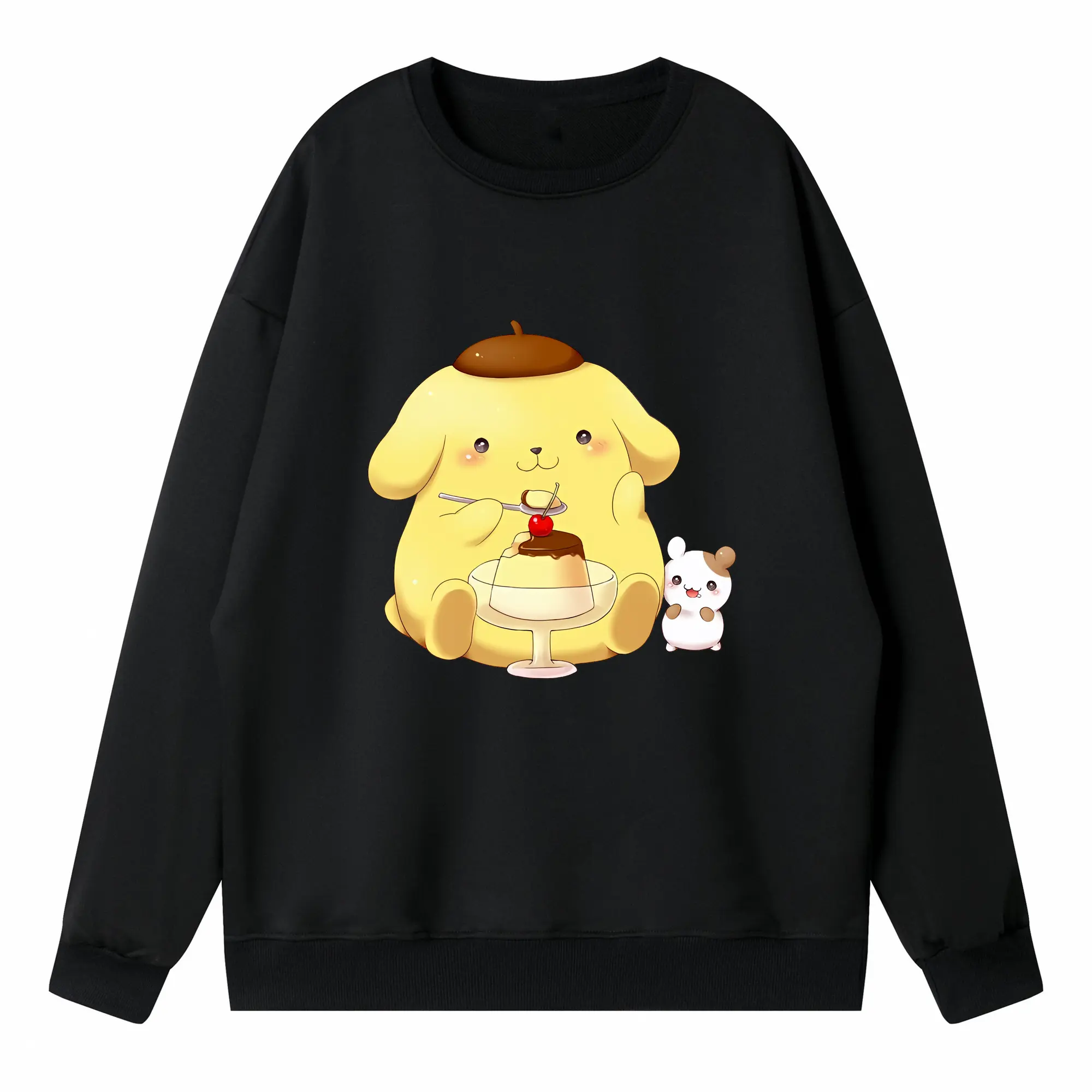 サンリオ グッズ,ポムポムプリン - 高品質 クルーネック スウェット ・ コットン59% ポリエステル41% ・ ユニセックス 長袖 トレーナー ・ カジュアル デイリー スポーツ 散歩用