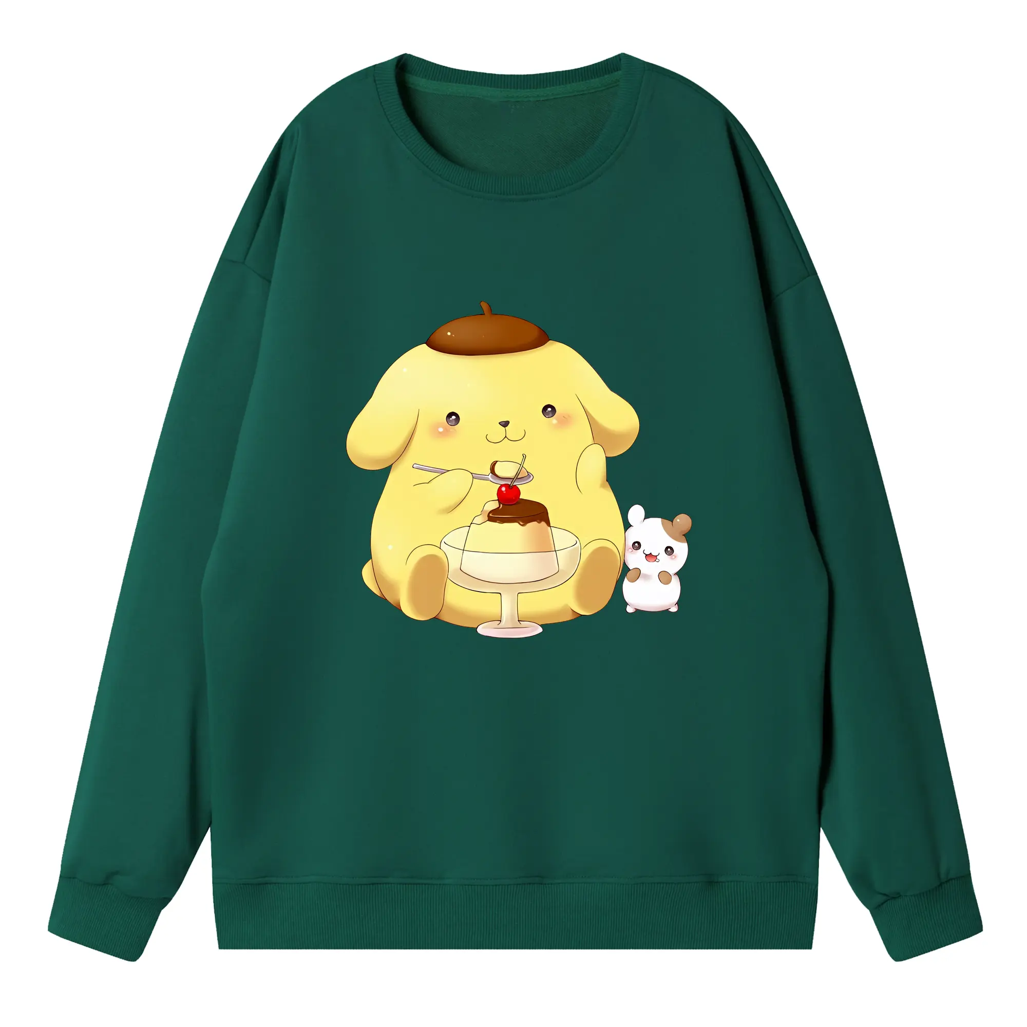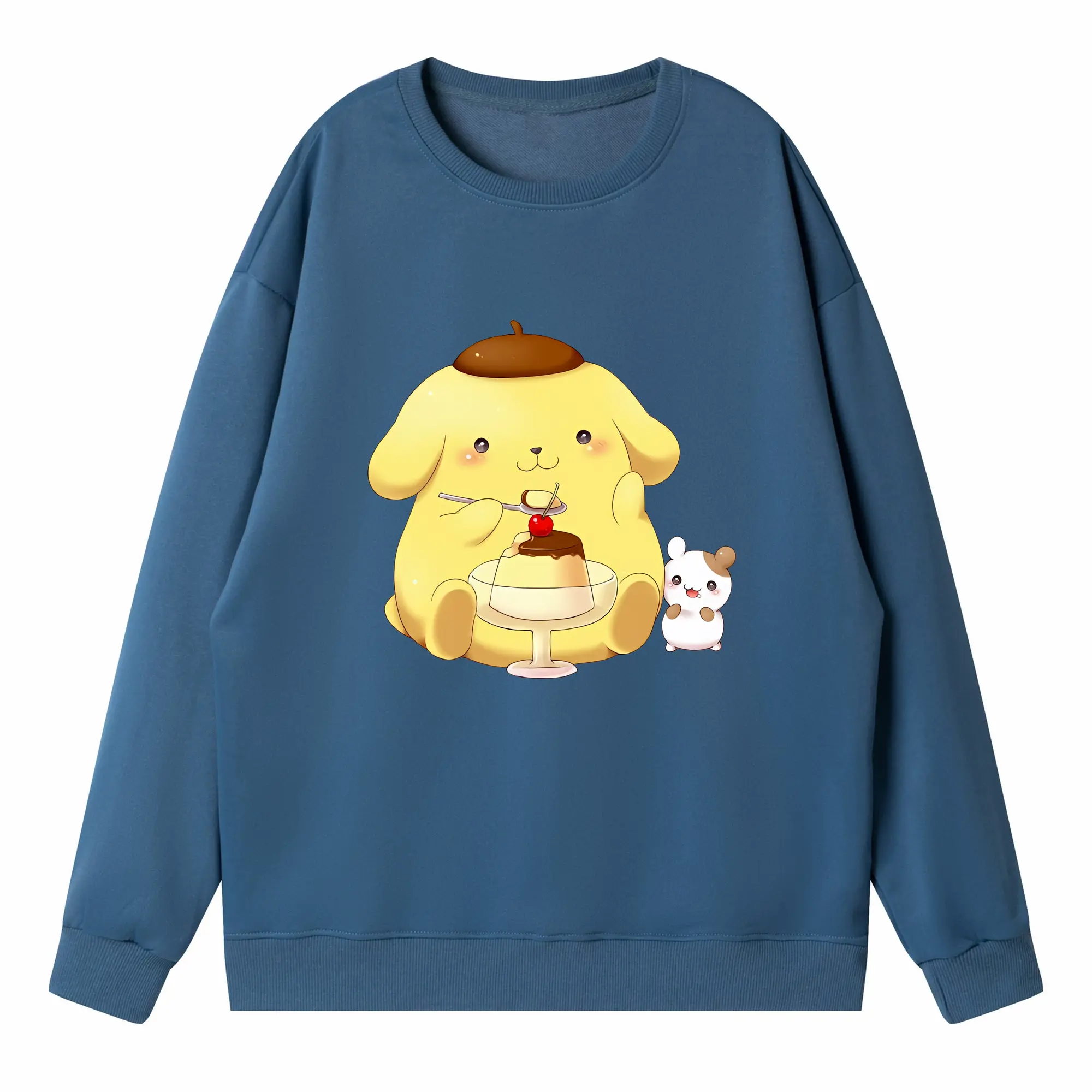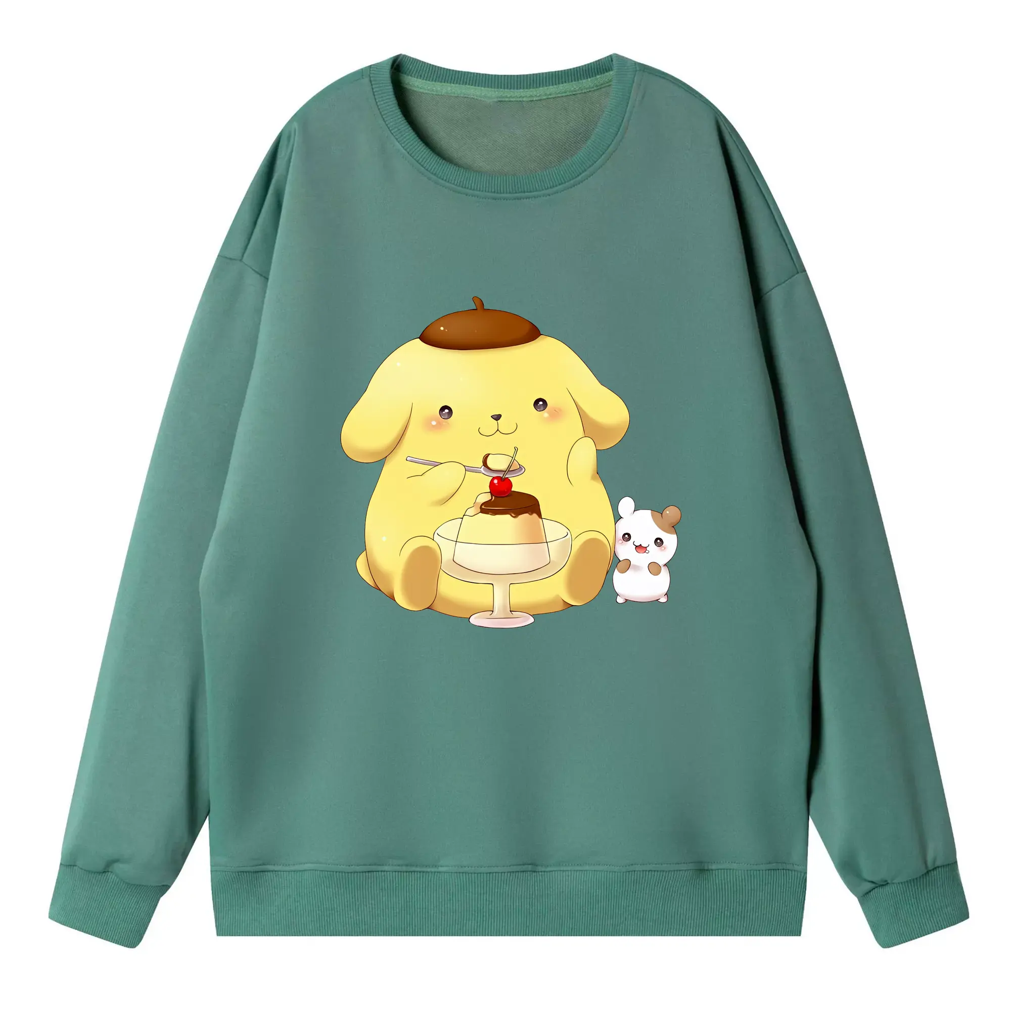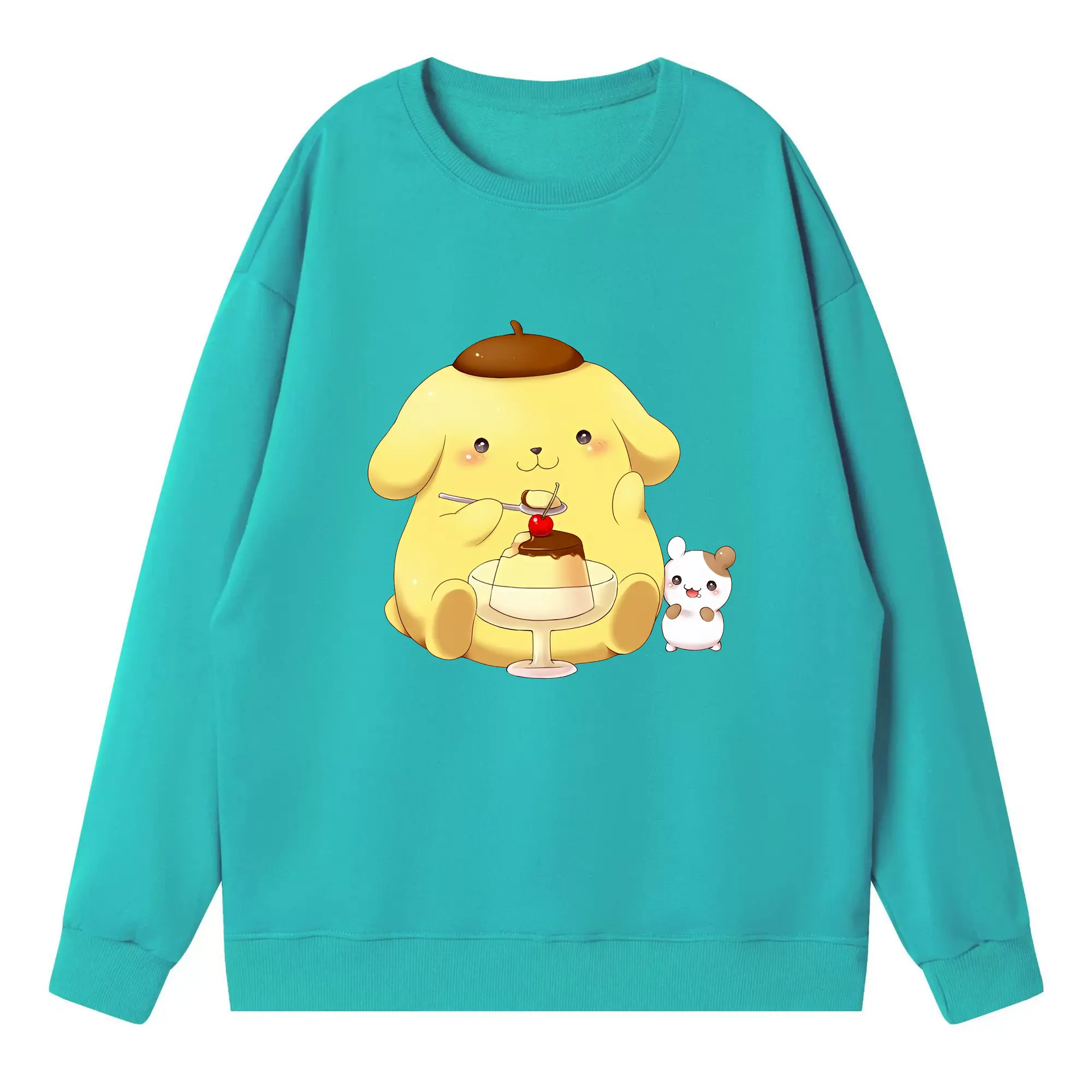 サンリオ グッズ,ポムポムプリン - 高品質 クルーネック スウェット ・ コットン59% ポリエステル41% ・ ユニセックス 長袖 トレーナー ・ カジュアル デイリー スポーツ 散歩用