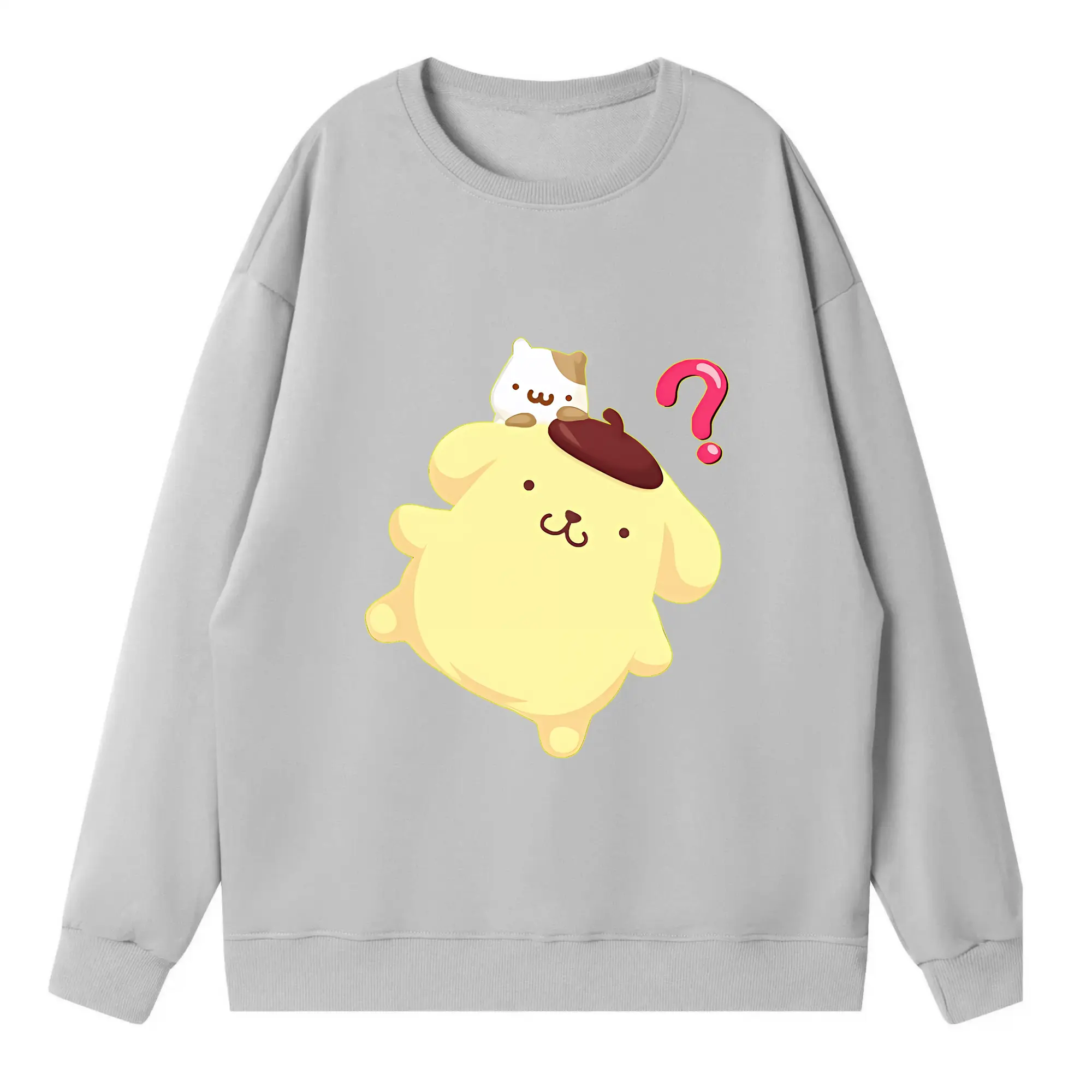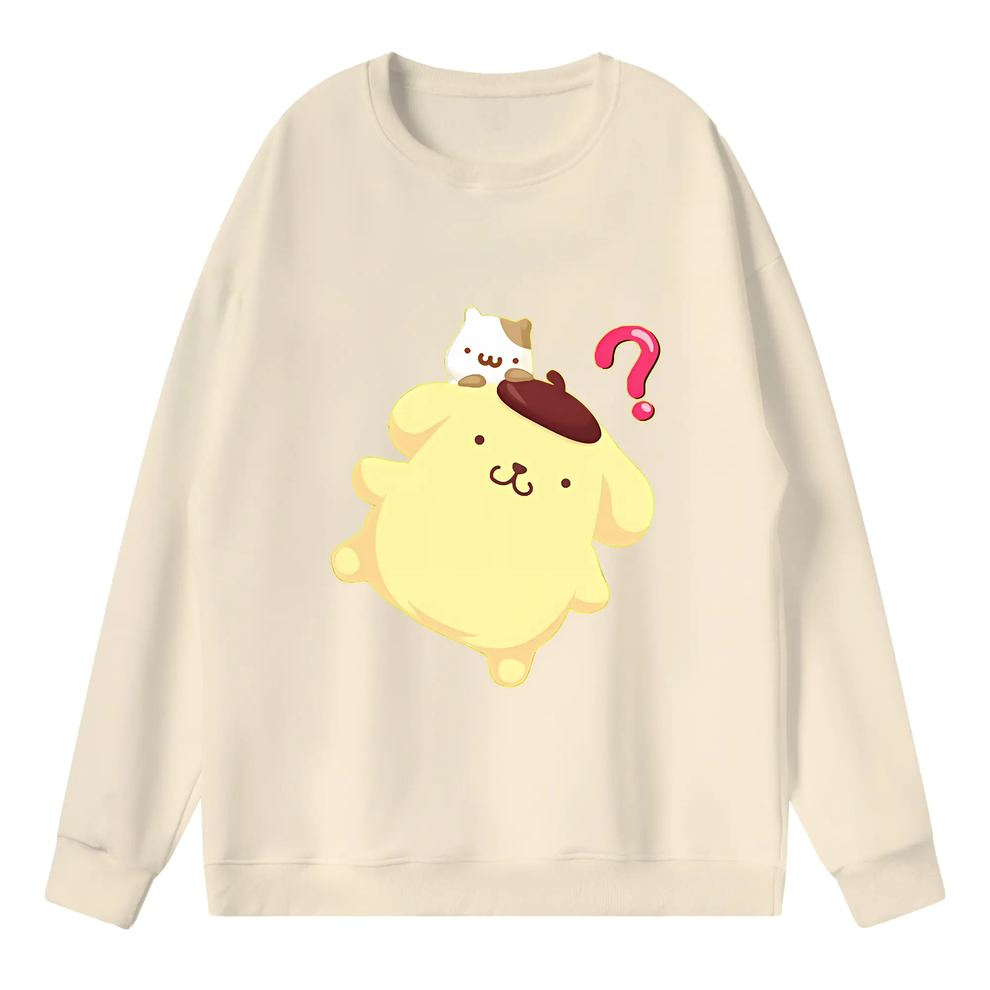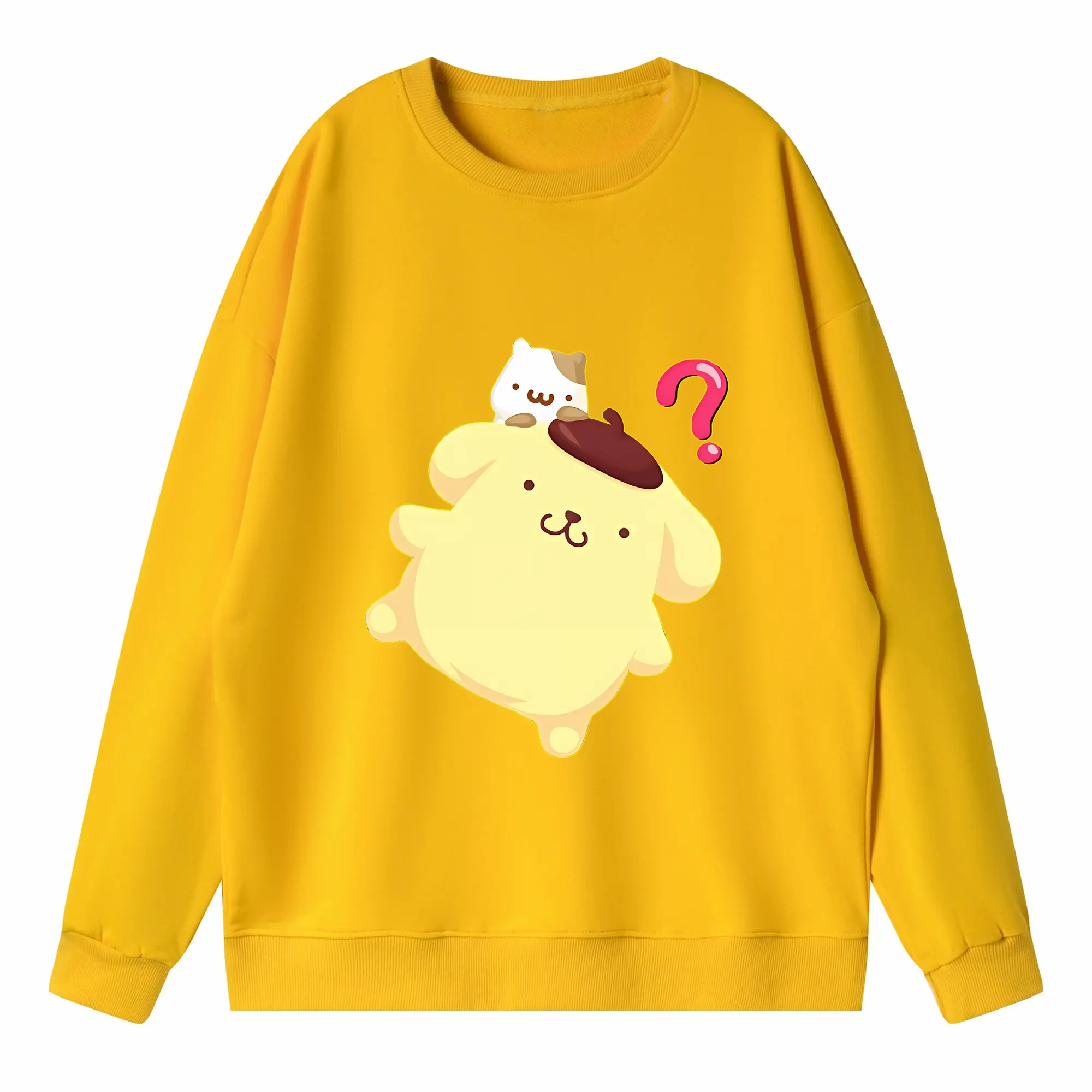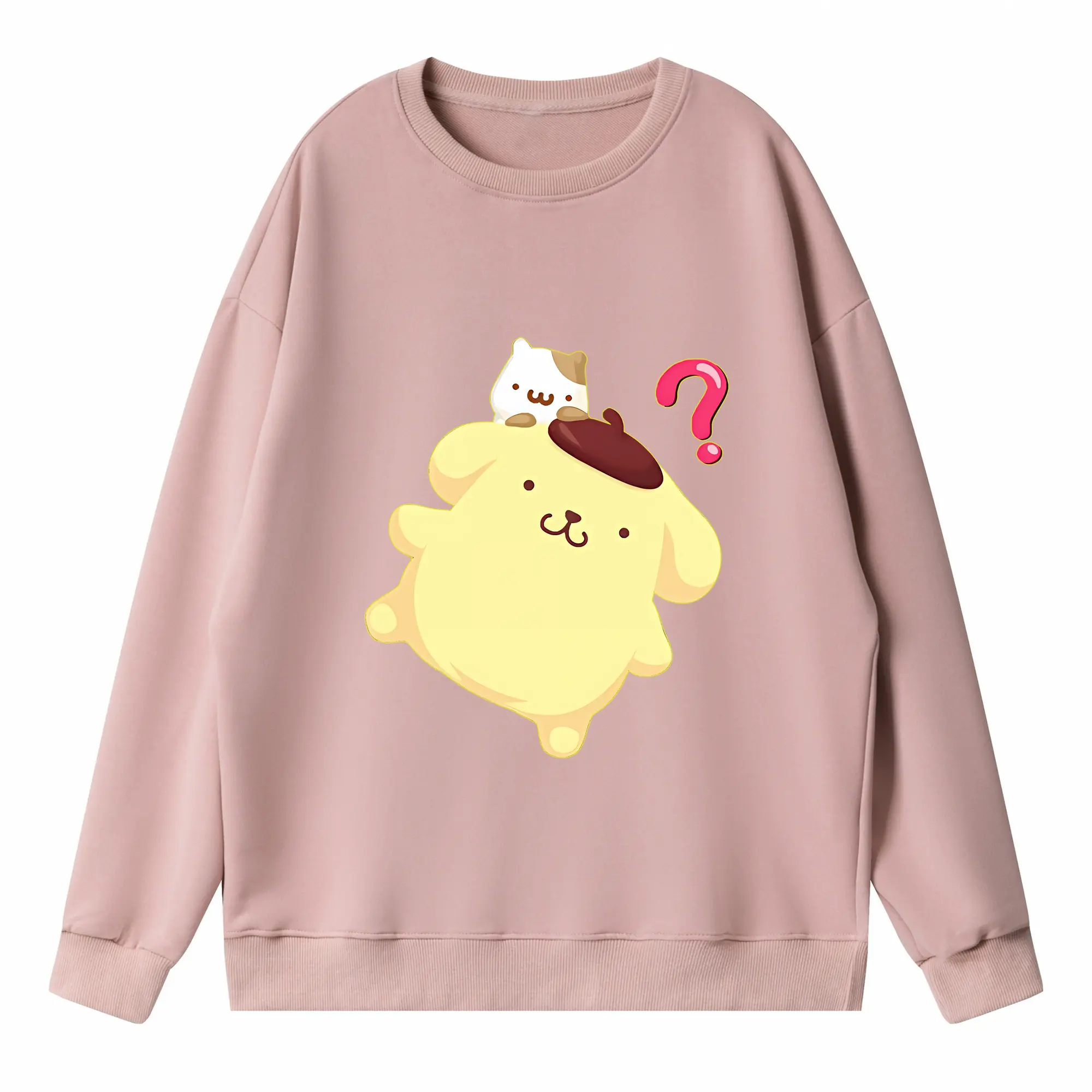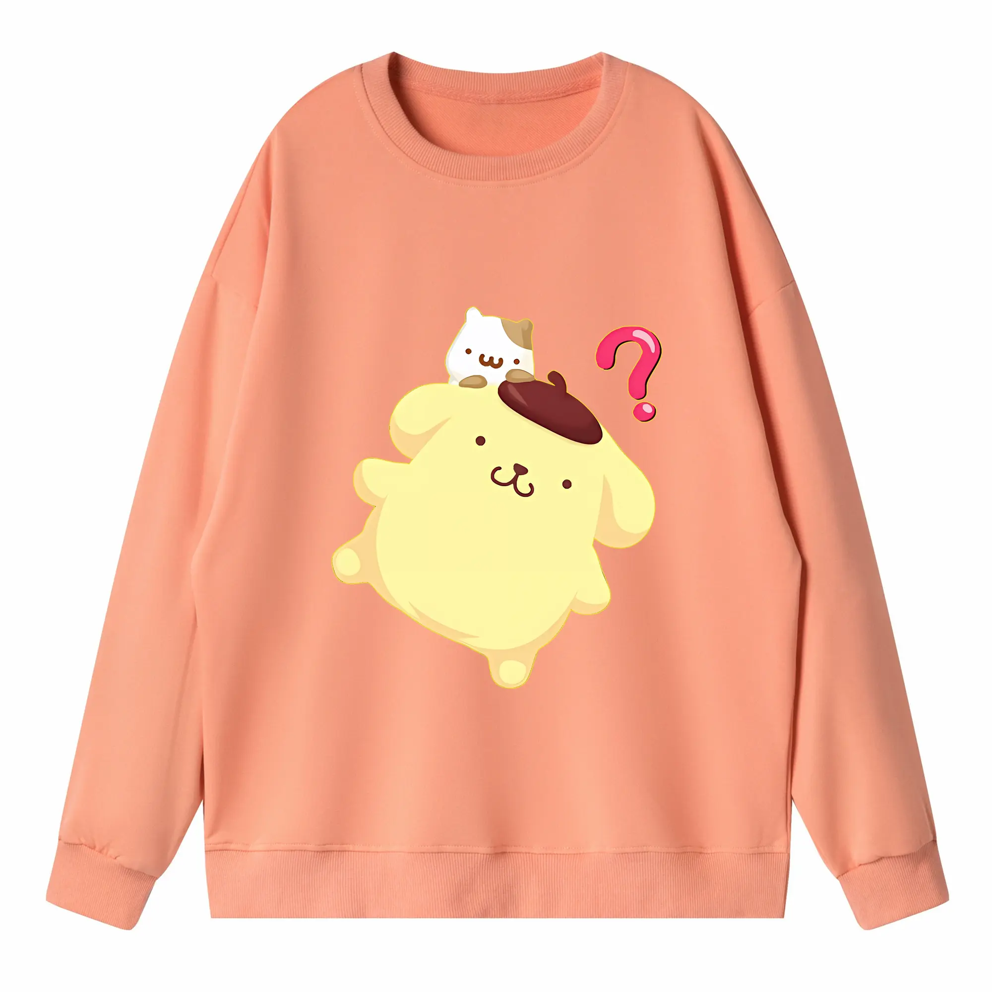 サンリオ グッズ,ポムポムプリン - 高品質 クルーネック スウェット ・ コットン59% ポリエステル41% ・ ユニセックス 長袖 トレーナー ・ カジュアル デイリー スポーツ 散歩用