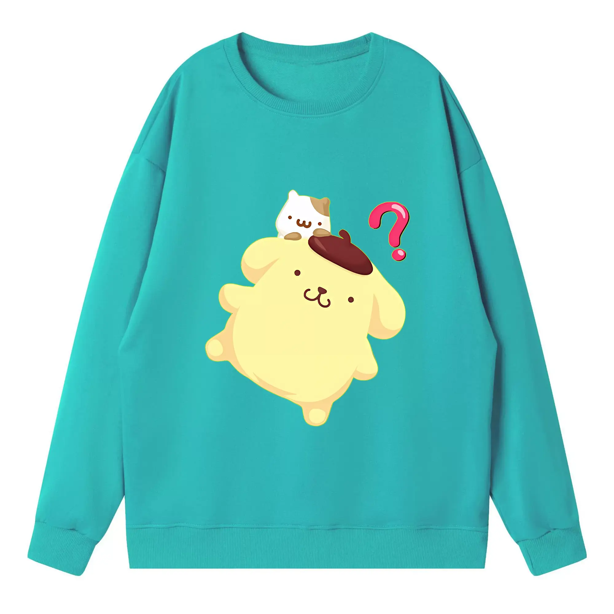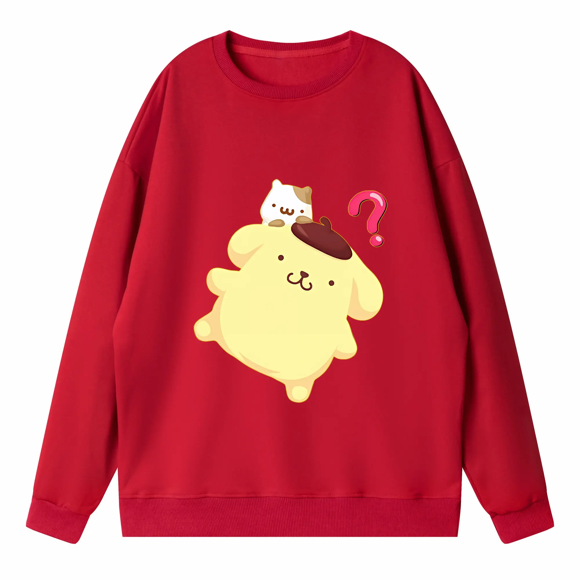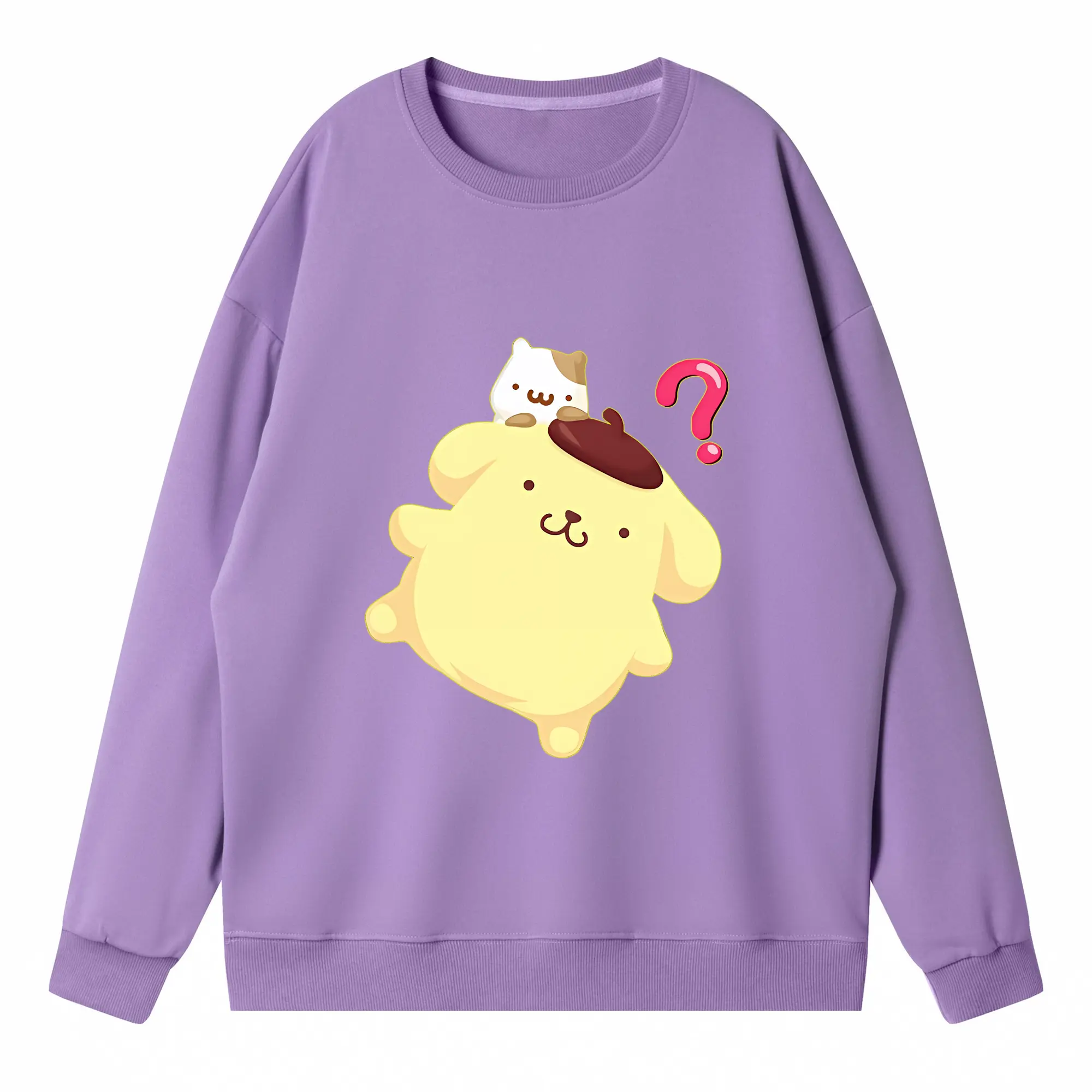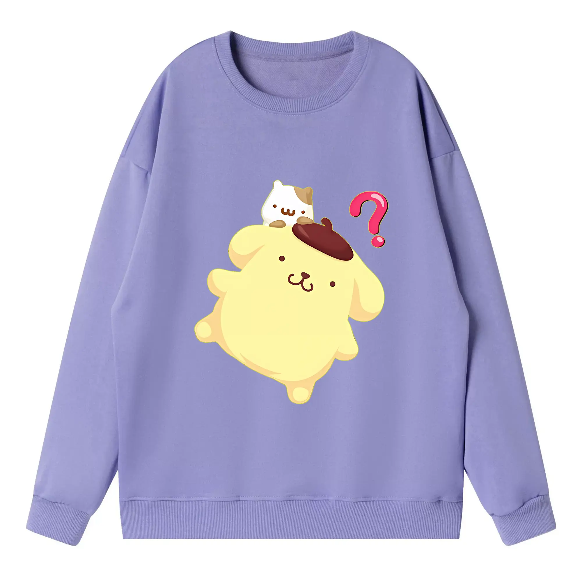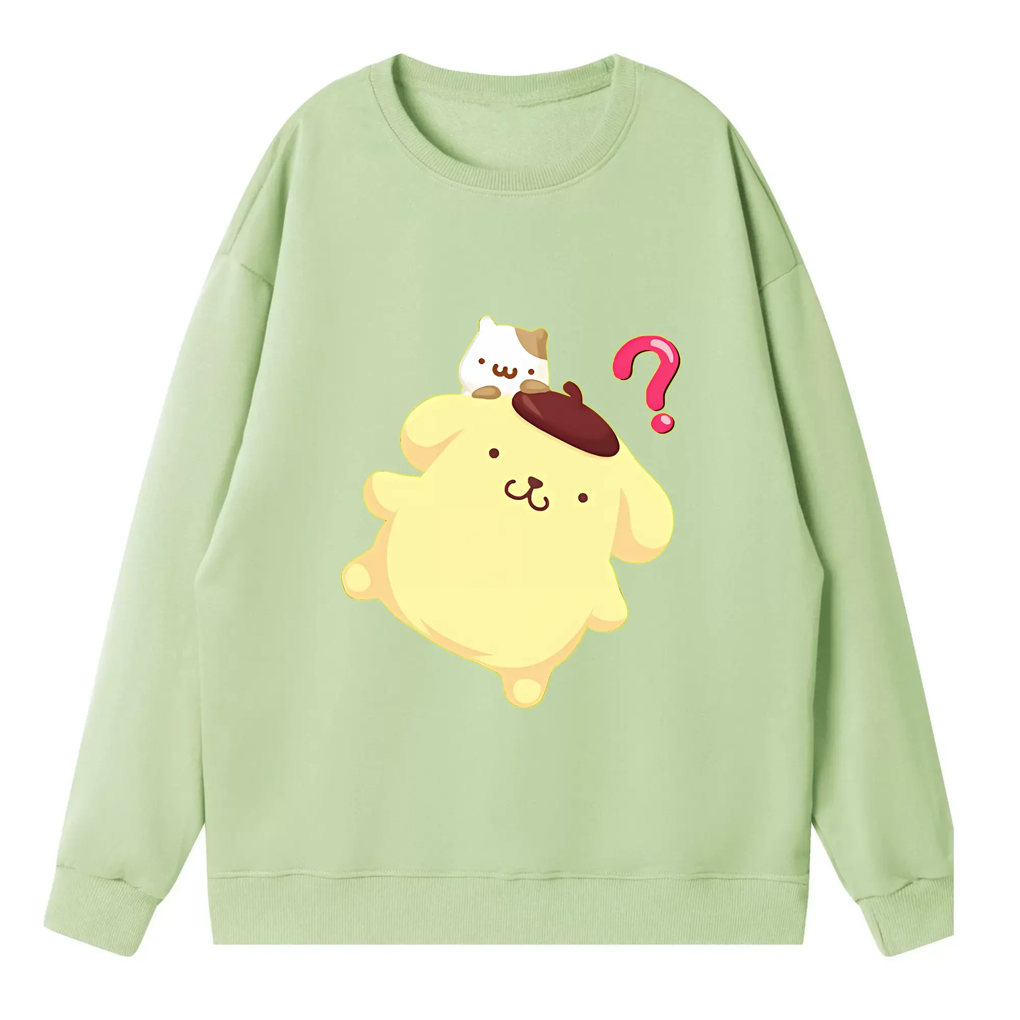サンリオ グッズ,ポムポムプリン - 高品質 クルーネック スウェット ・ コットン59% ポリエステル41% ・ ユニセックス 長袖 トレーナー ・ カジュアル デイリー スポーツ 散歩用