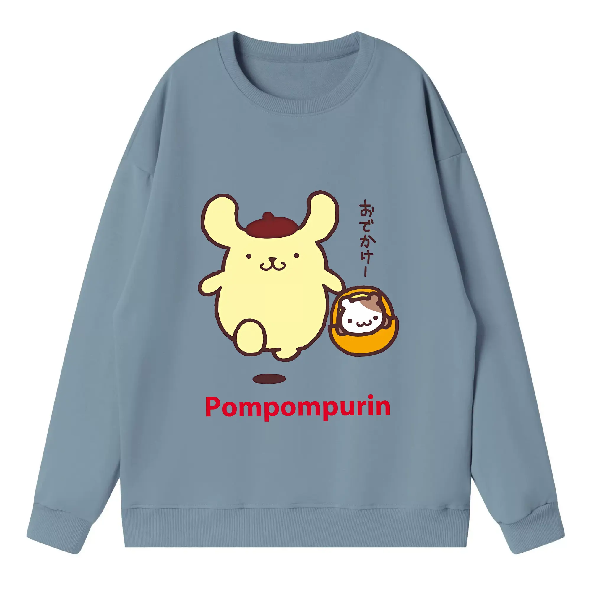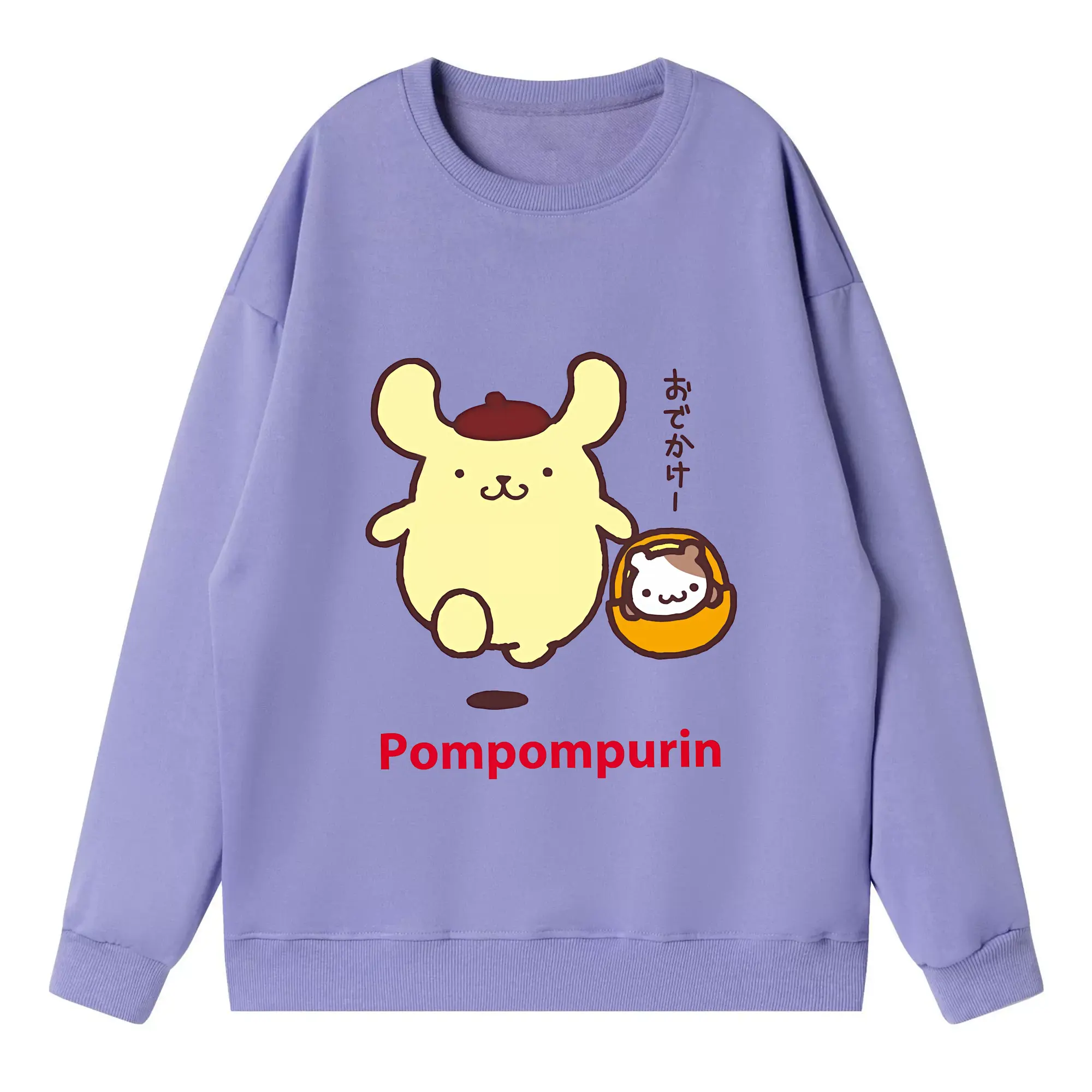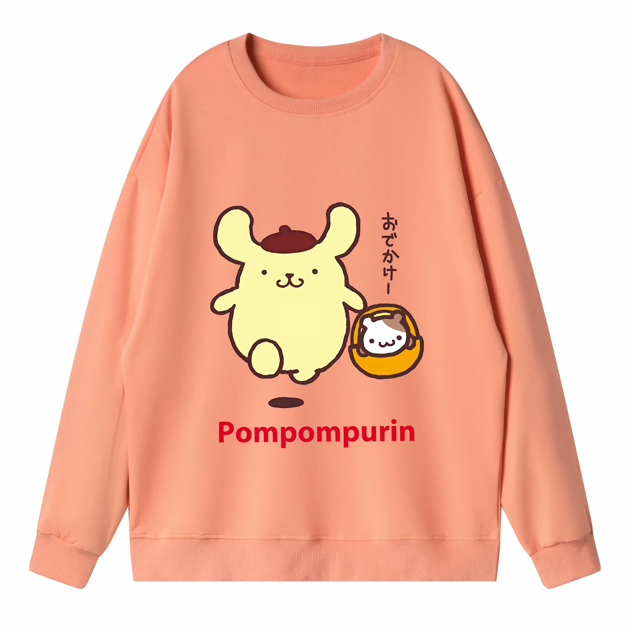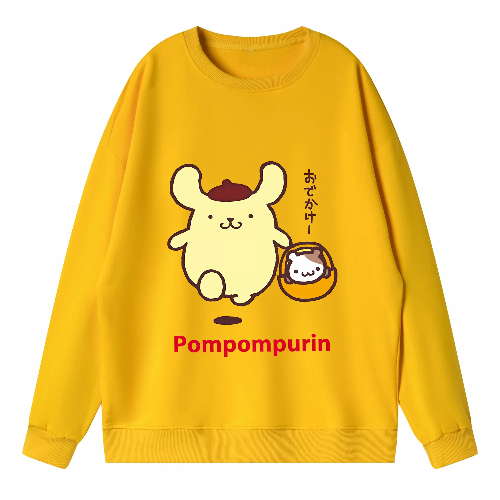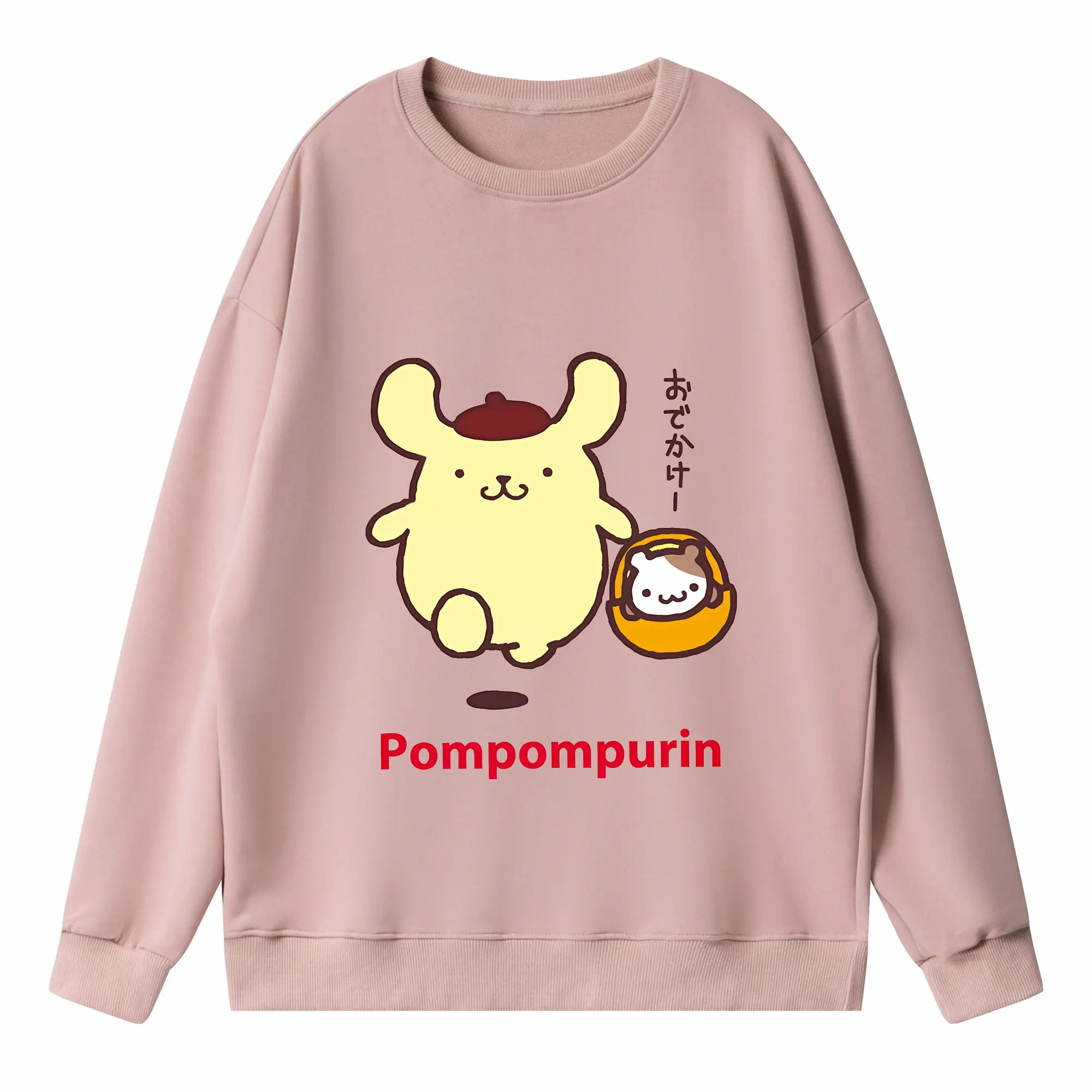 サンリオ グッズ,ポムポムプリン - 高品質 クルーネック スウェット ・ コットン59% ポリエステル41% ・ ユニセックス 長袖 トレーナー ・ カジュアル デイリー スポーツ 散歩用
