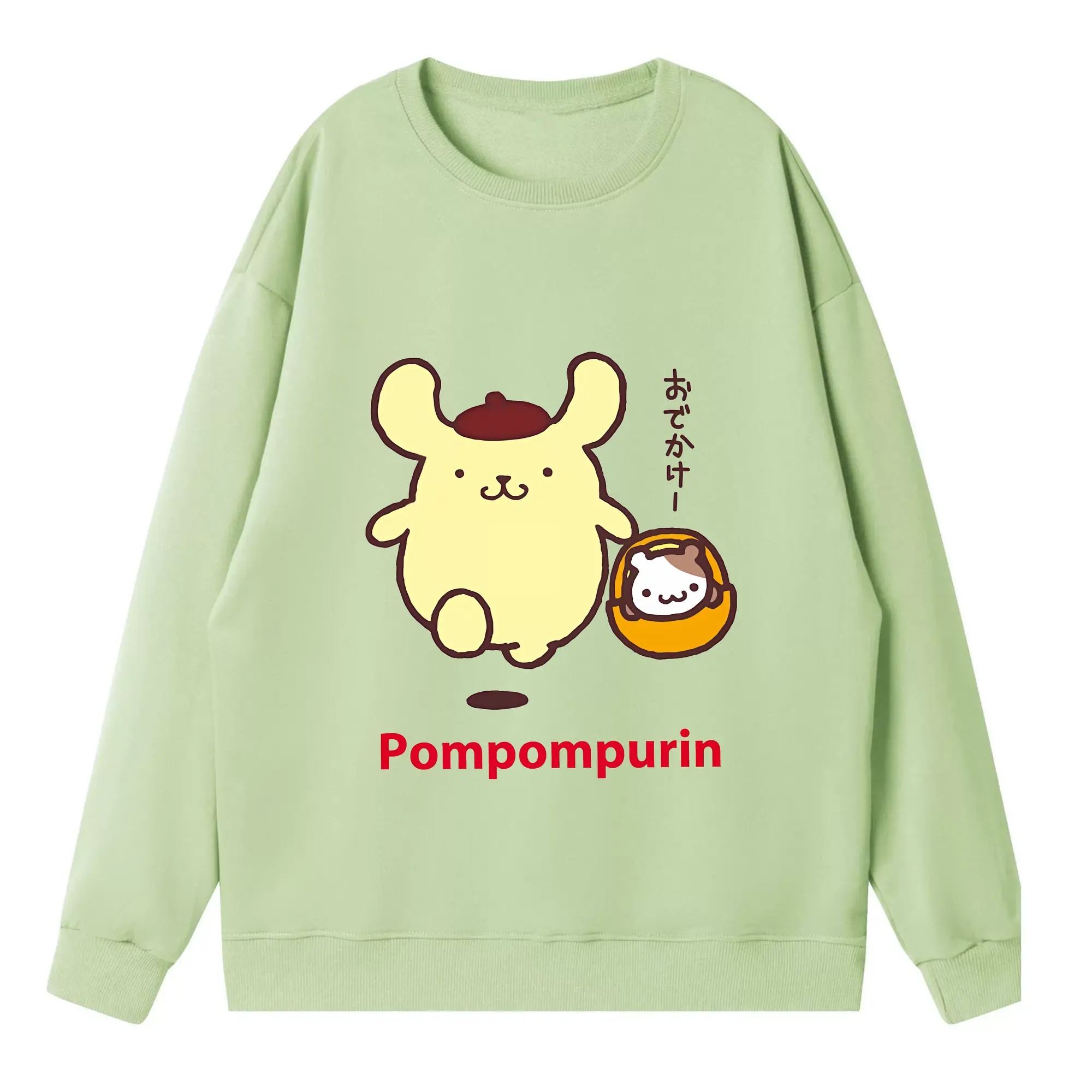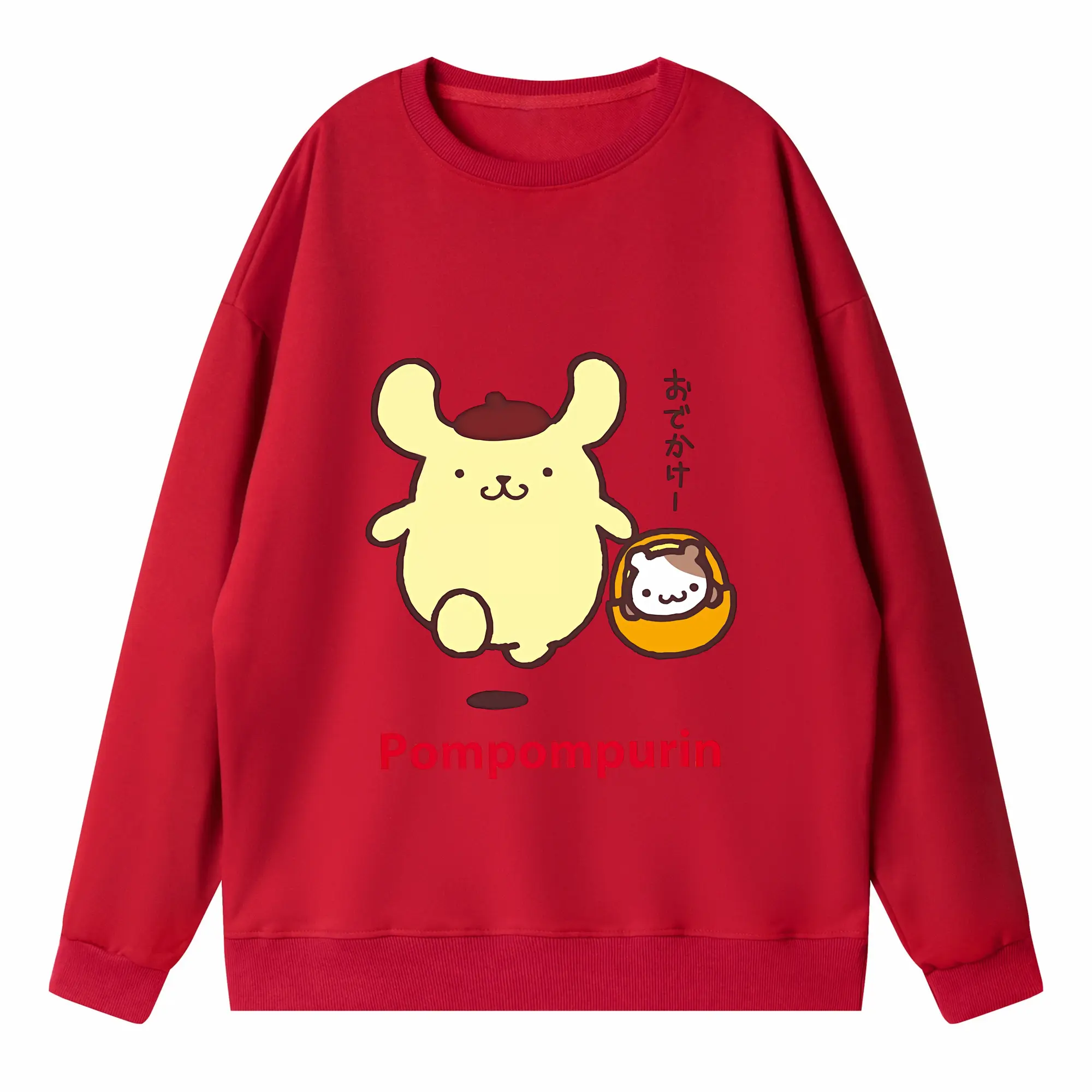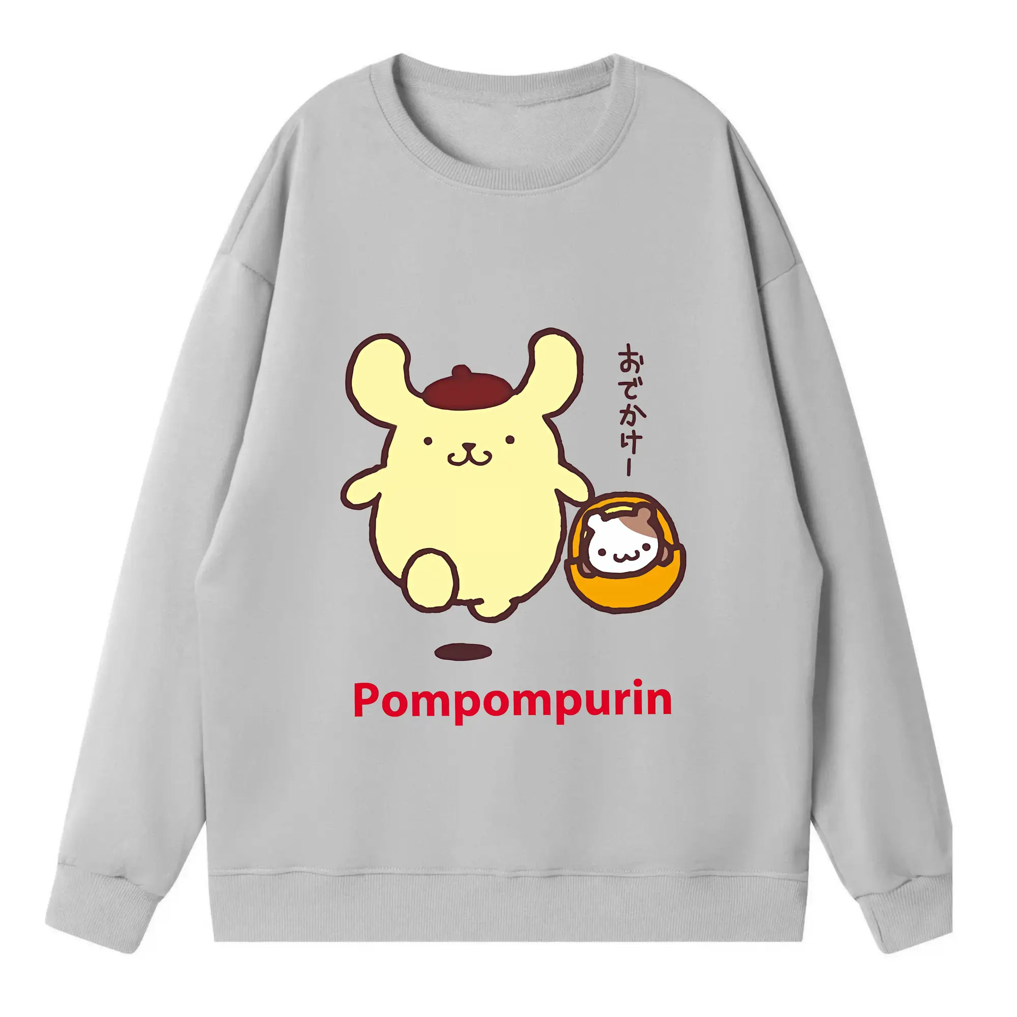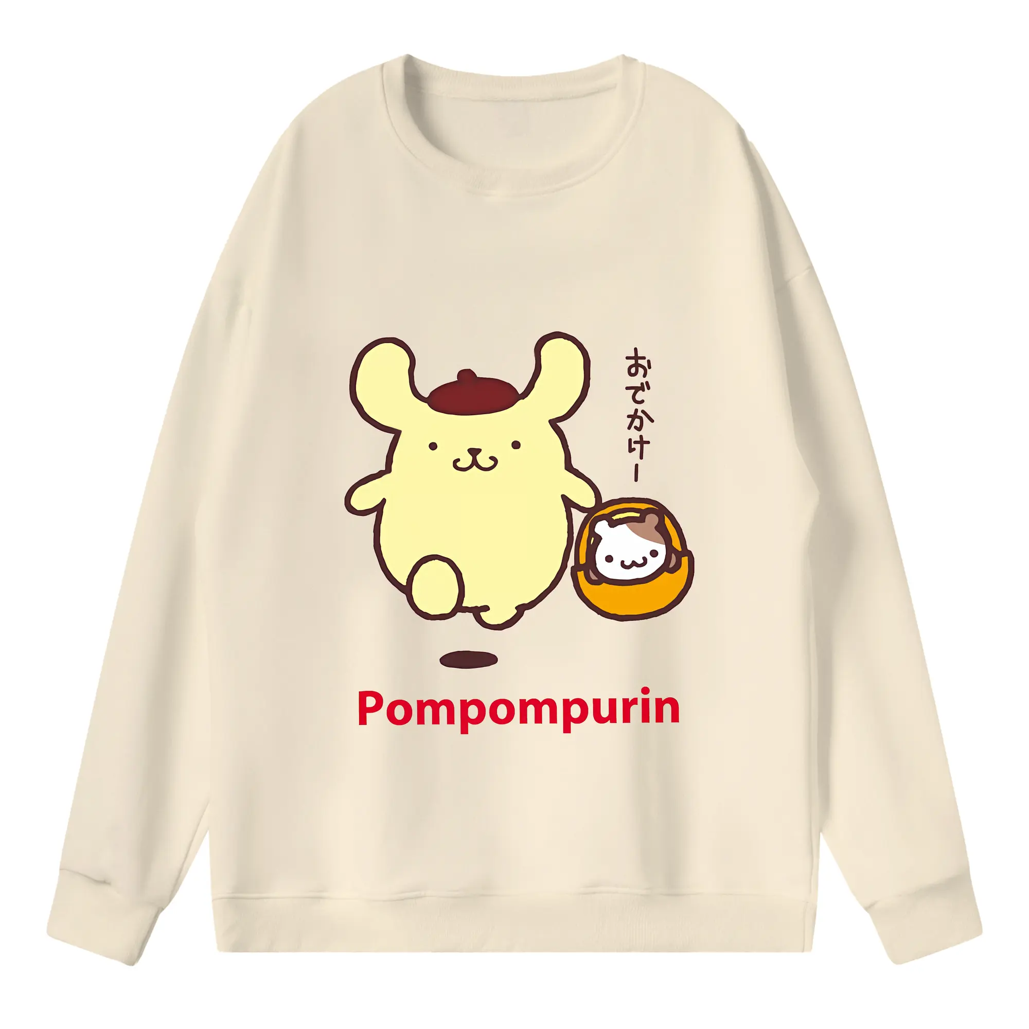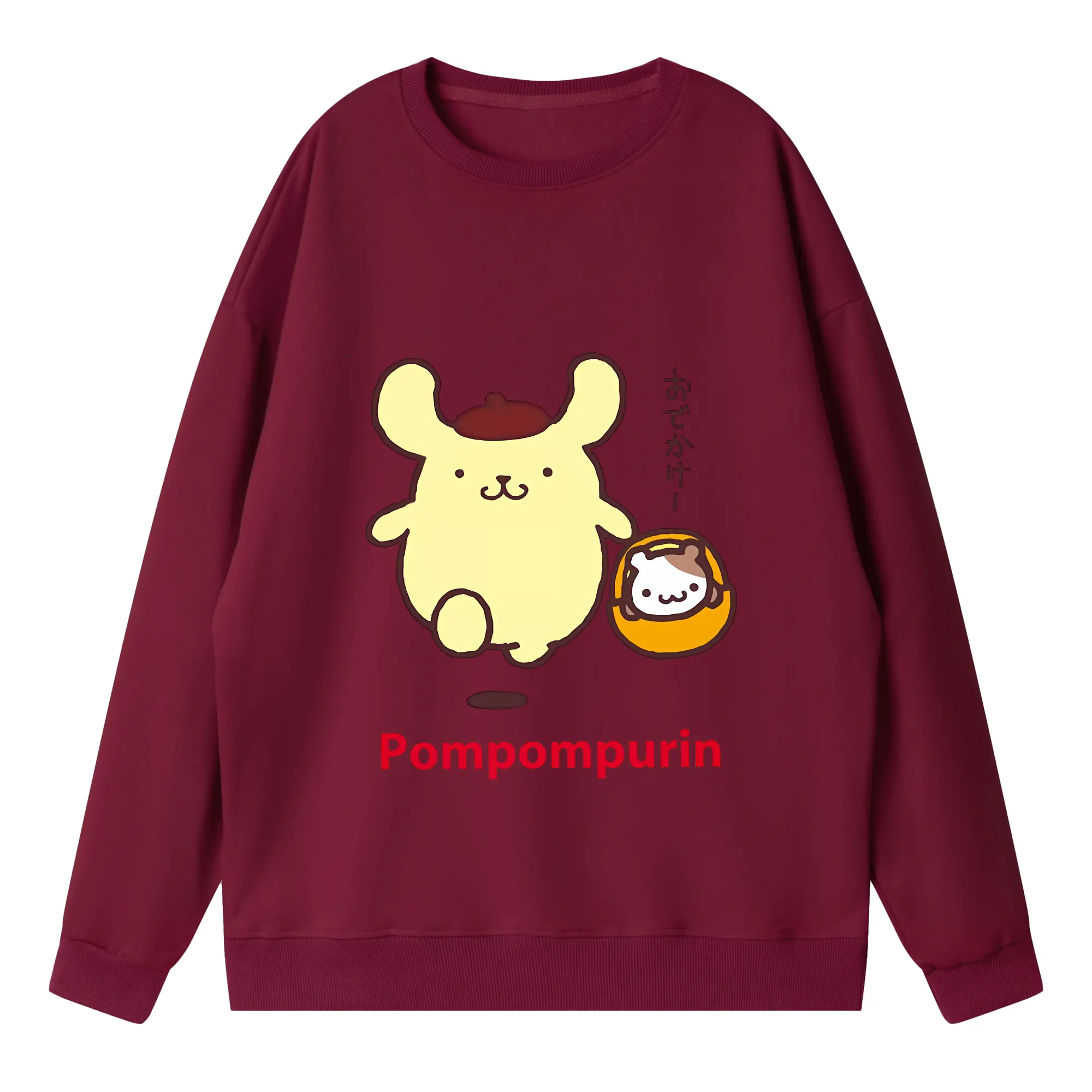 サンリオ グッズ,ポムポムプリン - 高品質 クルーネック スウェット ・ コットン59% ポリエステル41% ・ ユニセックス 長袖 トレーナー ・ カジュアル デイリー スポーツ 散歩用