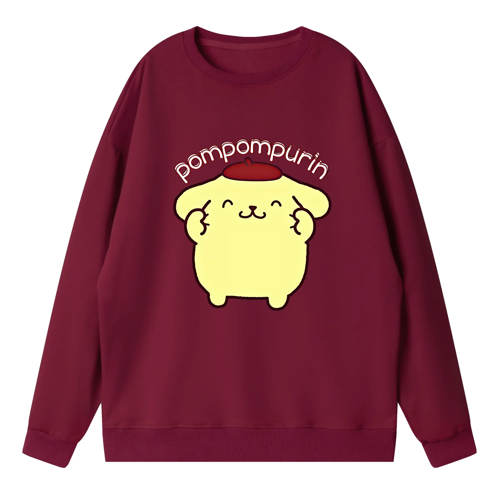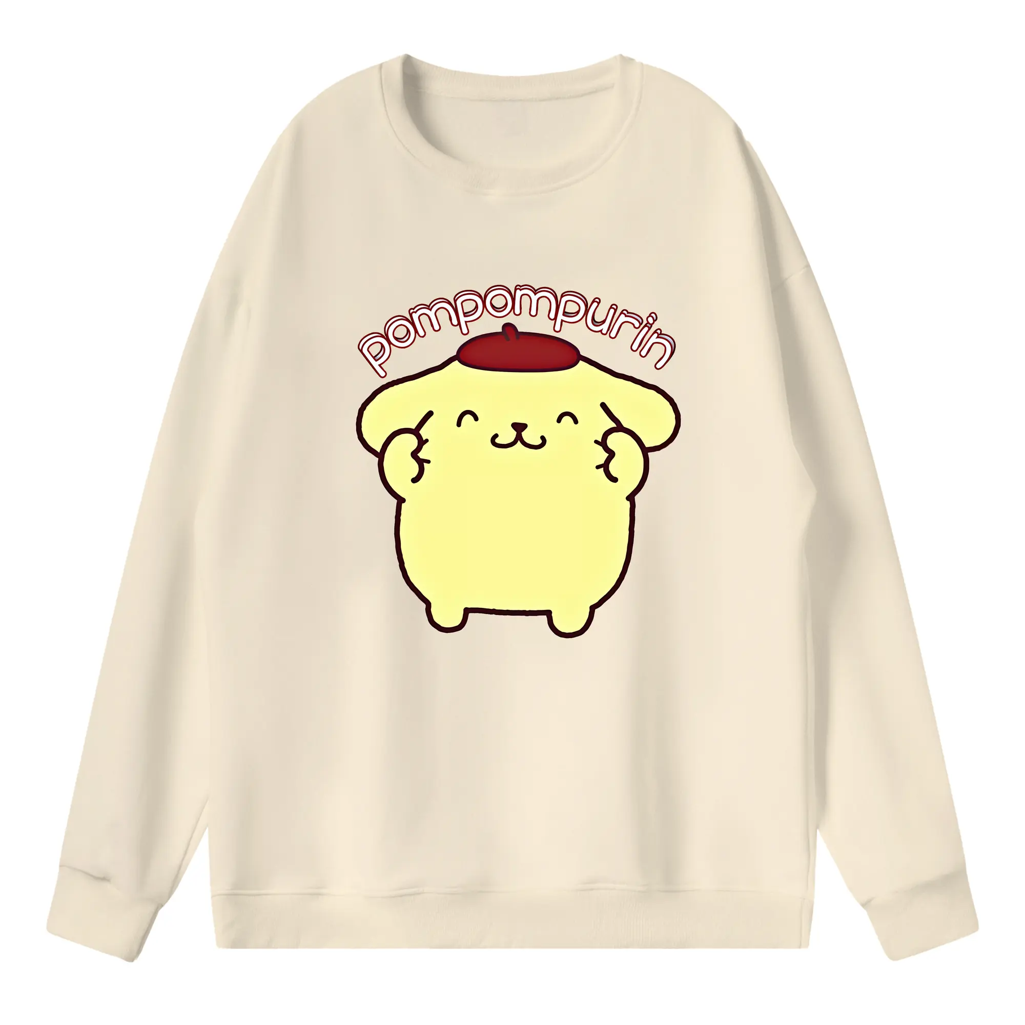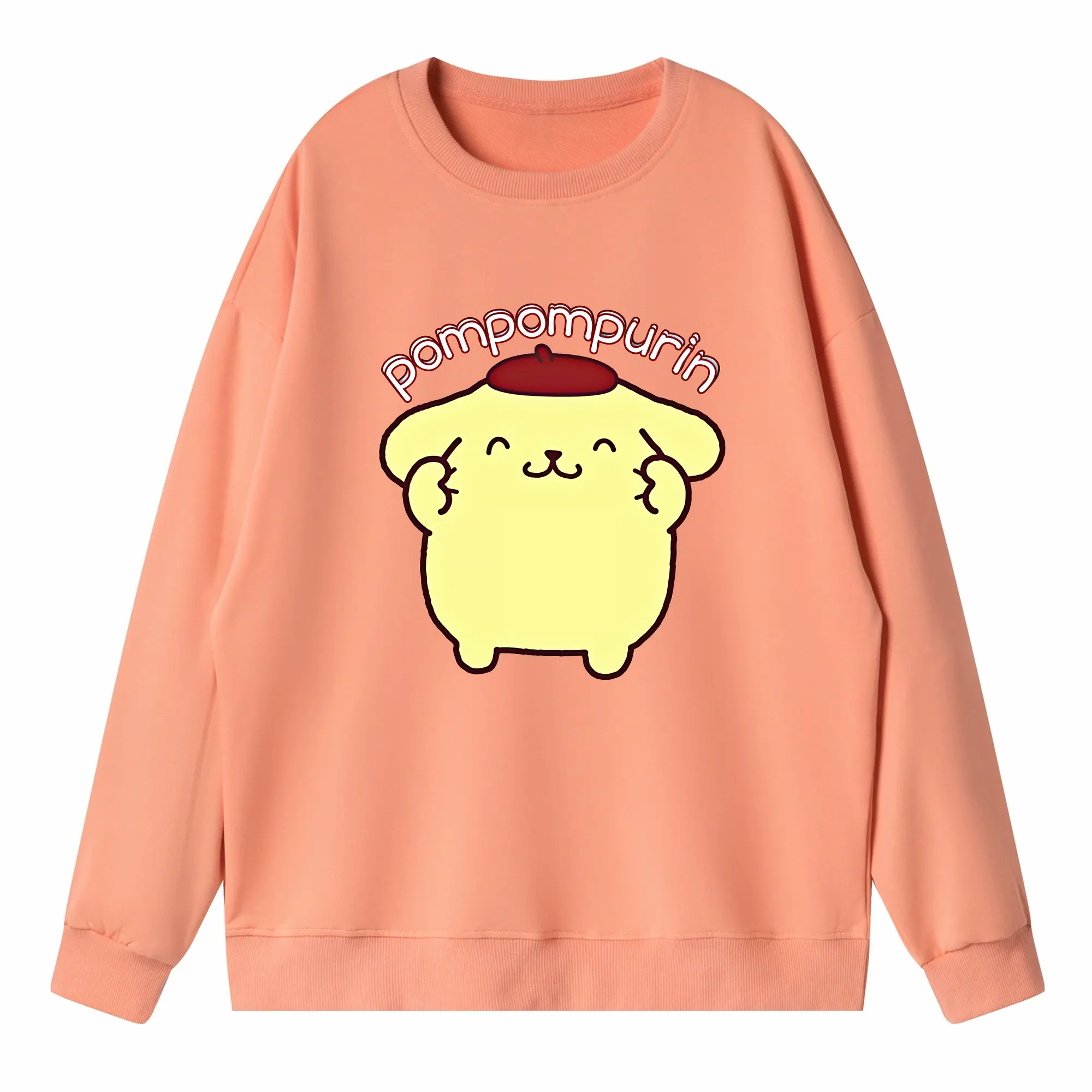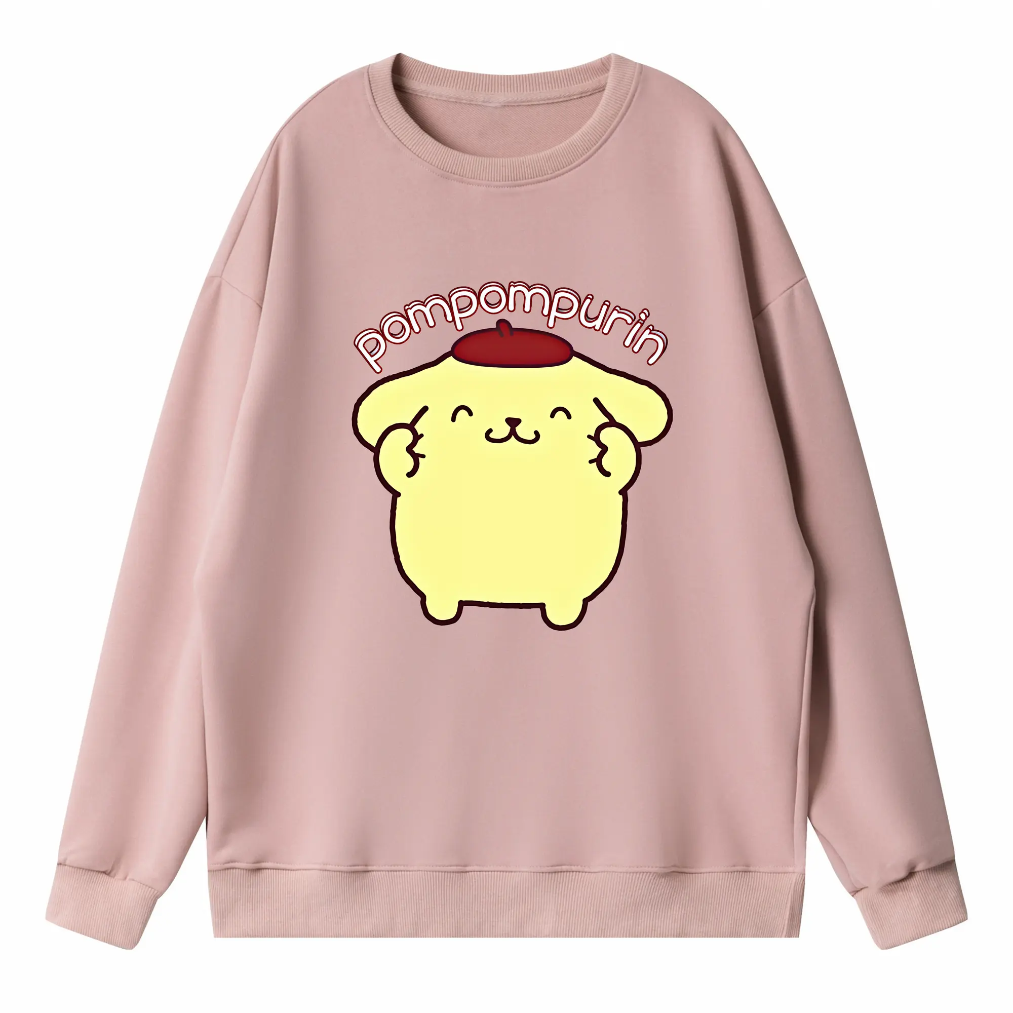 サンリオ グッズ,ポムポムプリン - 高品質 クルーネック スウェット ・ コットン59% ポリエステル41% ・ ユニセックス 長袖 トレーナー ・ カジュアル デイリー スポーツ 散歩用