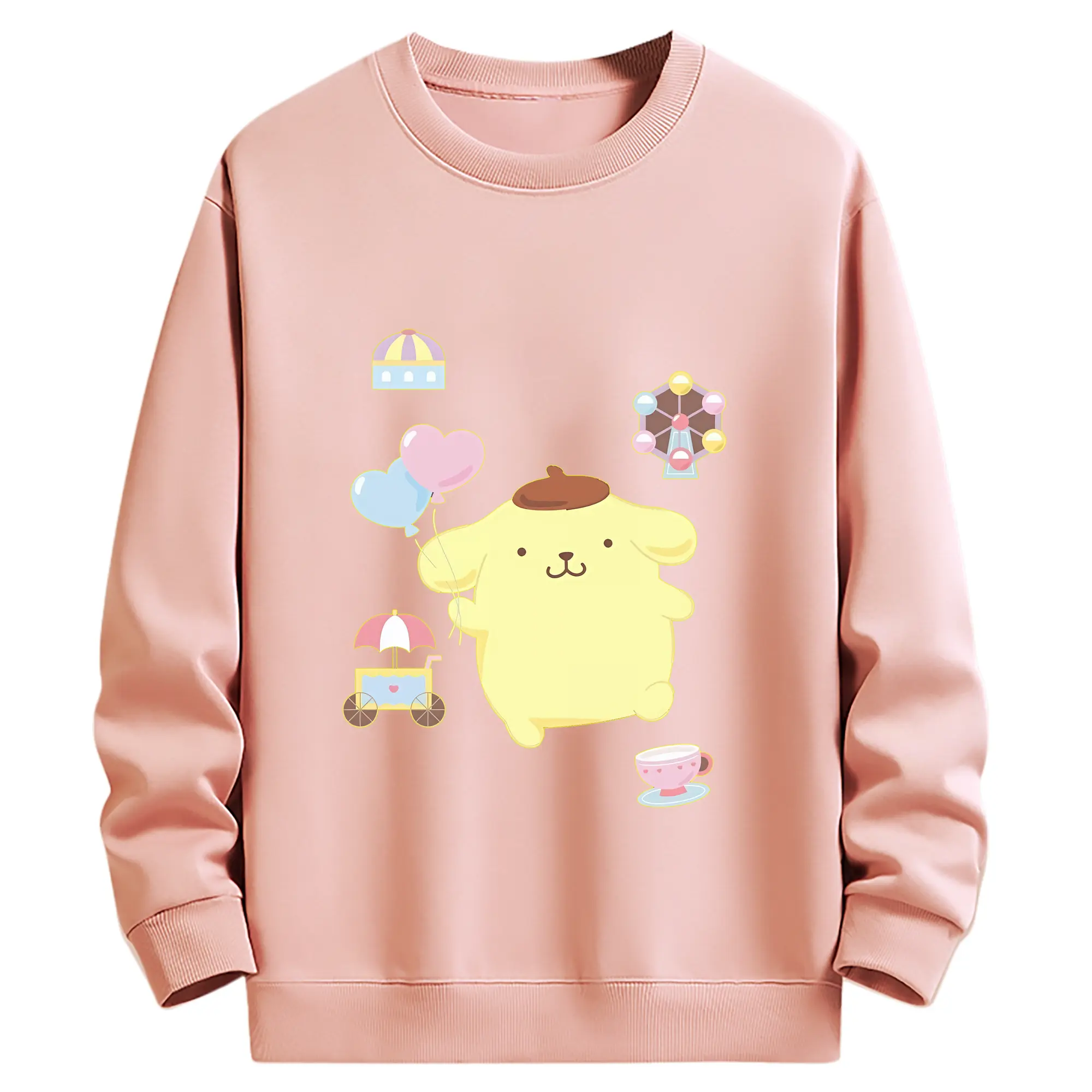 サンリオ グッズ,ポムポムプリン - 高品質 クルーネック スウェット ・ コットン59% ポリエステル41% ・ ユニセックス 長袖 トレーナー ・ カジュアル デイリー スポーツ 散歩用