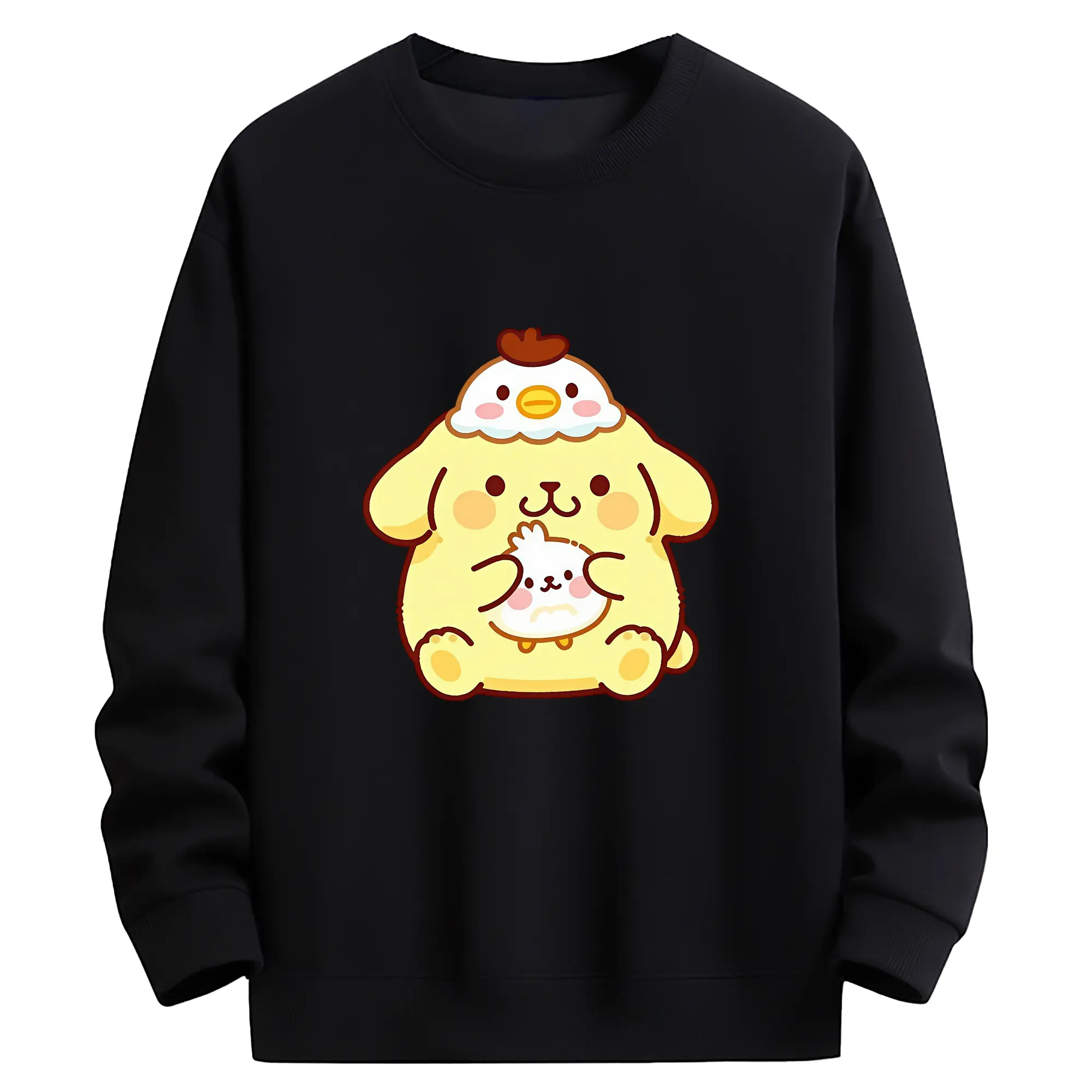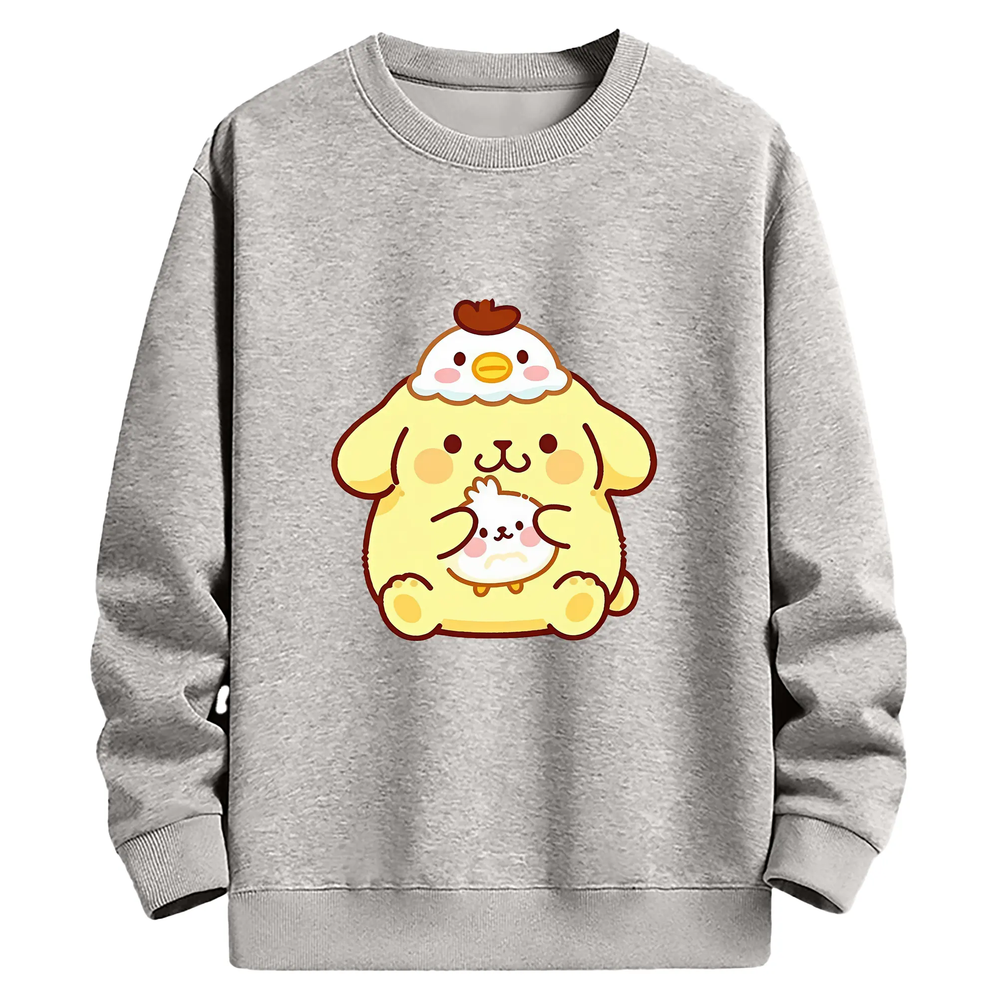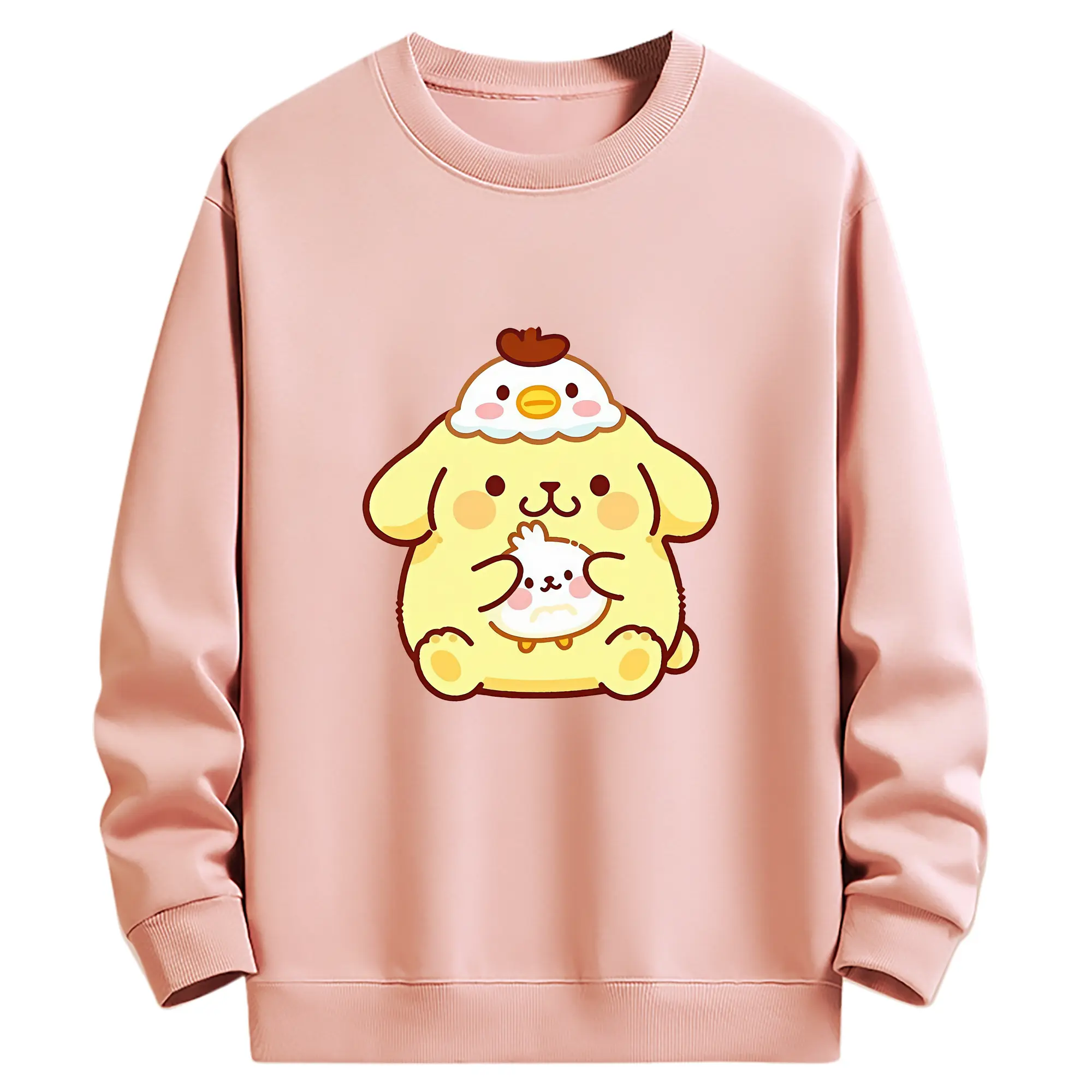サンリオ グッズ,ポムポムプリン - 高品質 クルーネック スウェット ・ コットン59% ポリエステル41% ・ ユニセックス 長袖 トレーナー ・ カジュアル デイリー スポーツ 散歩用