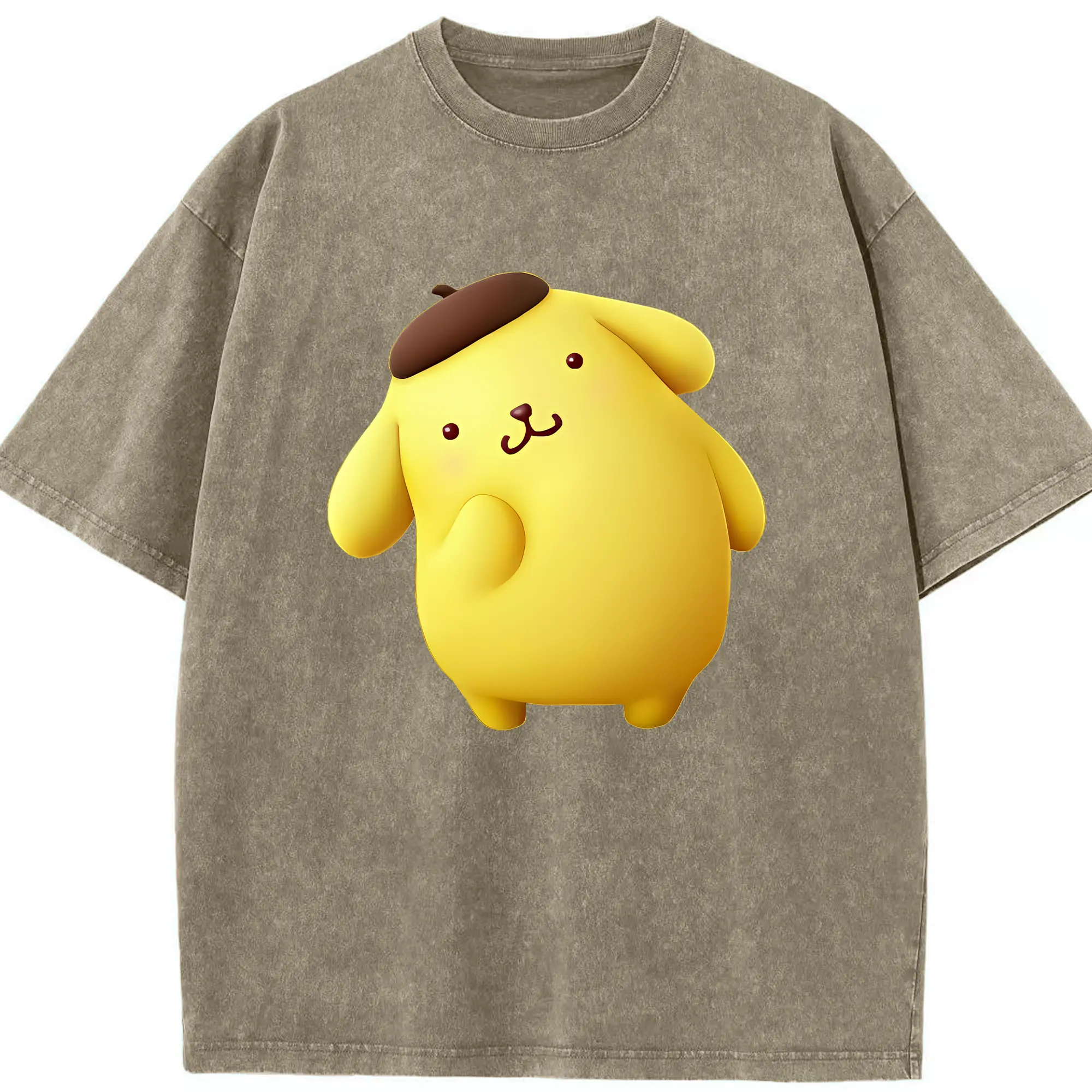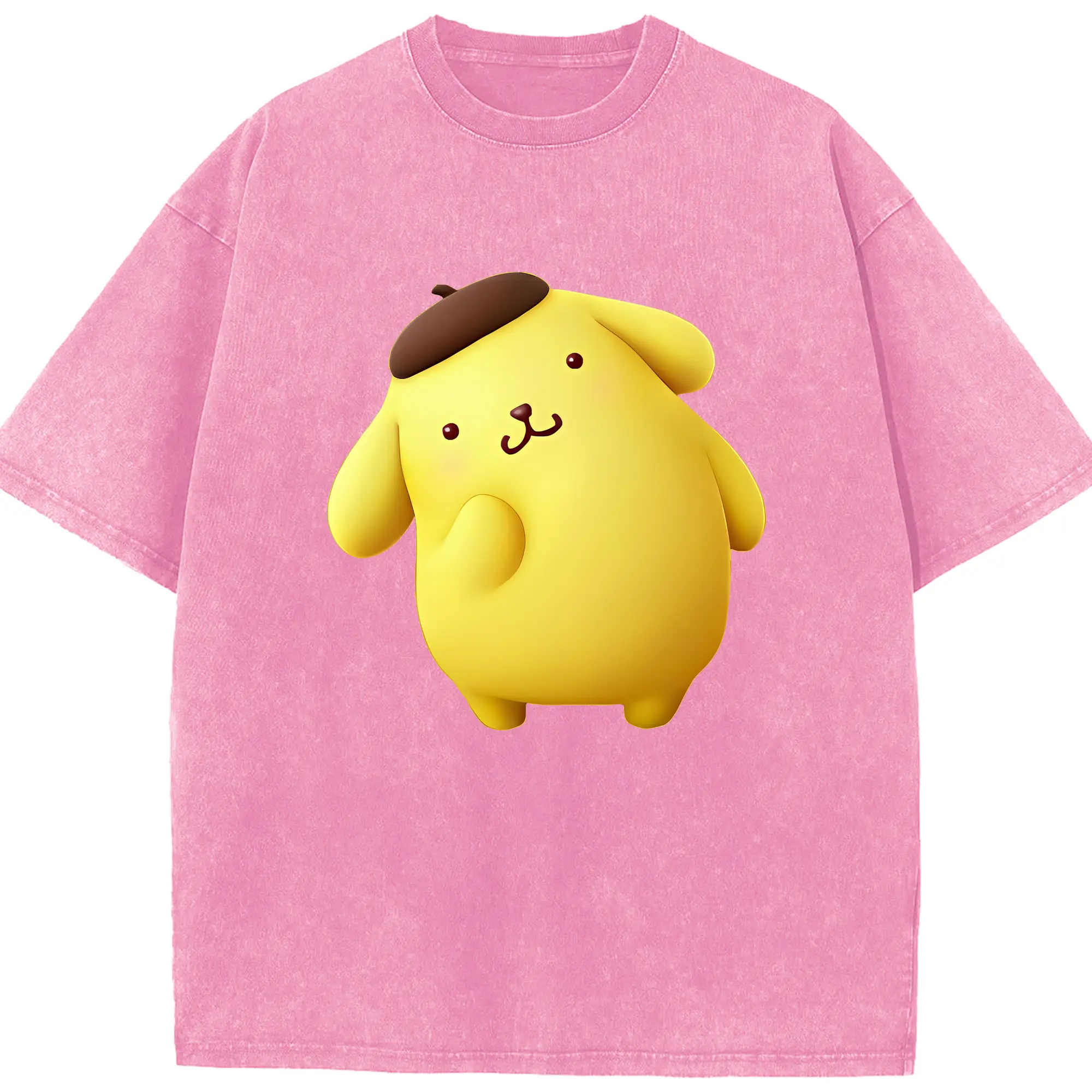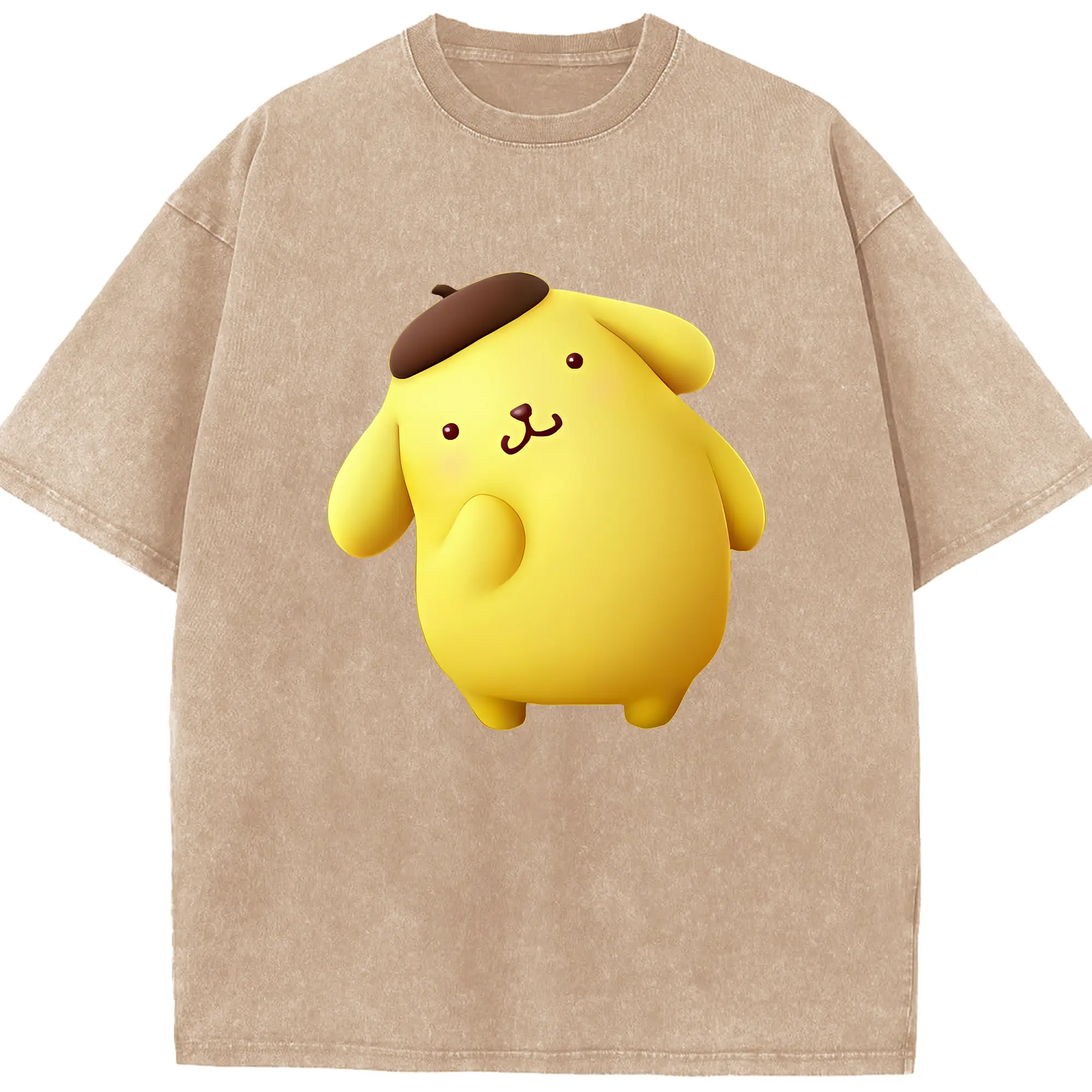 サンリオ グッズ,ポムポムプリン - 綿100% ヴィンテージ風 半袖Tシャツ ・ 背面プリント ・ 柔らか肌触り ・ 通気性 快適 ・ スポーツ カジュアル 外出用
