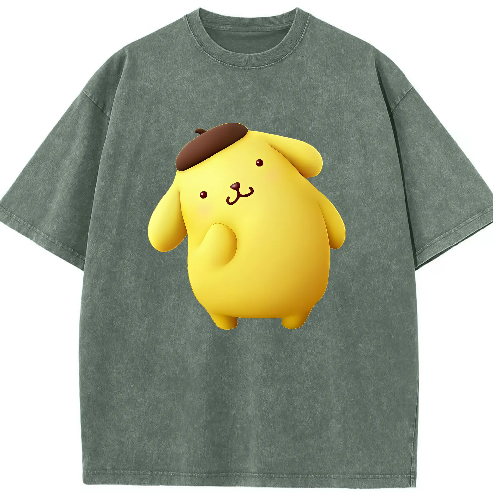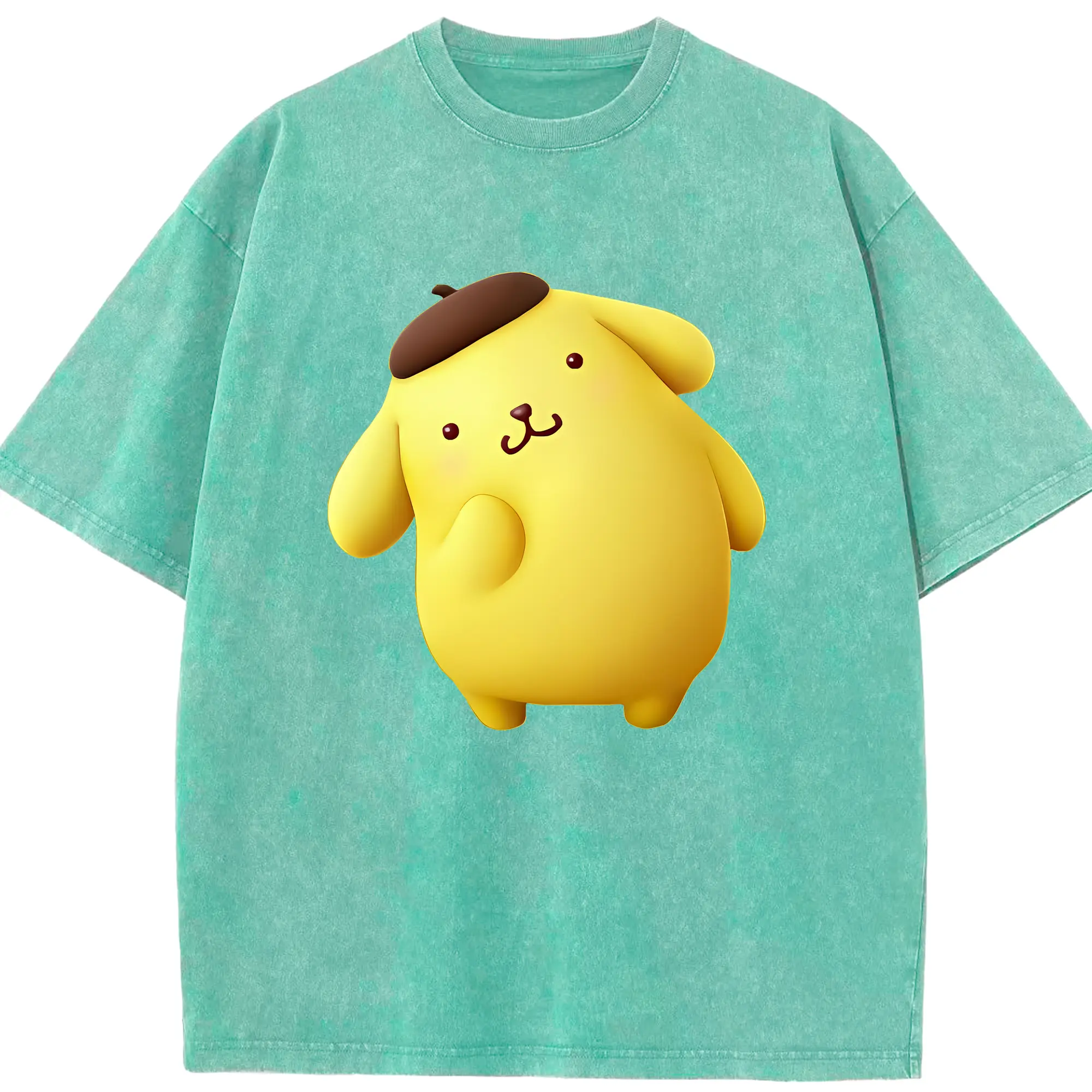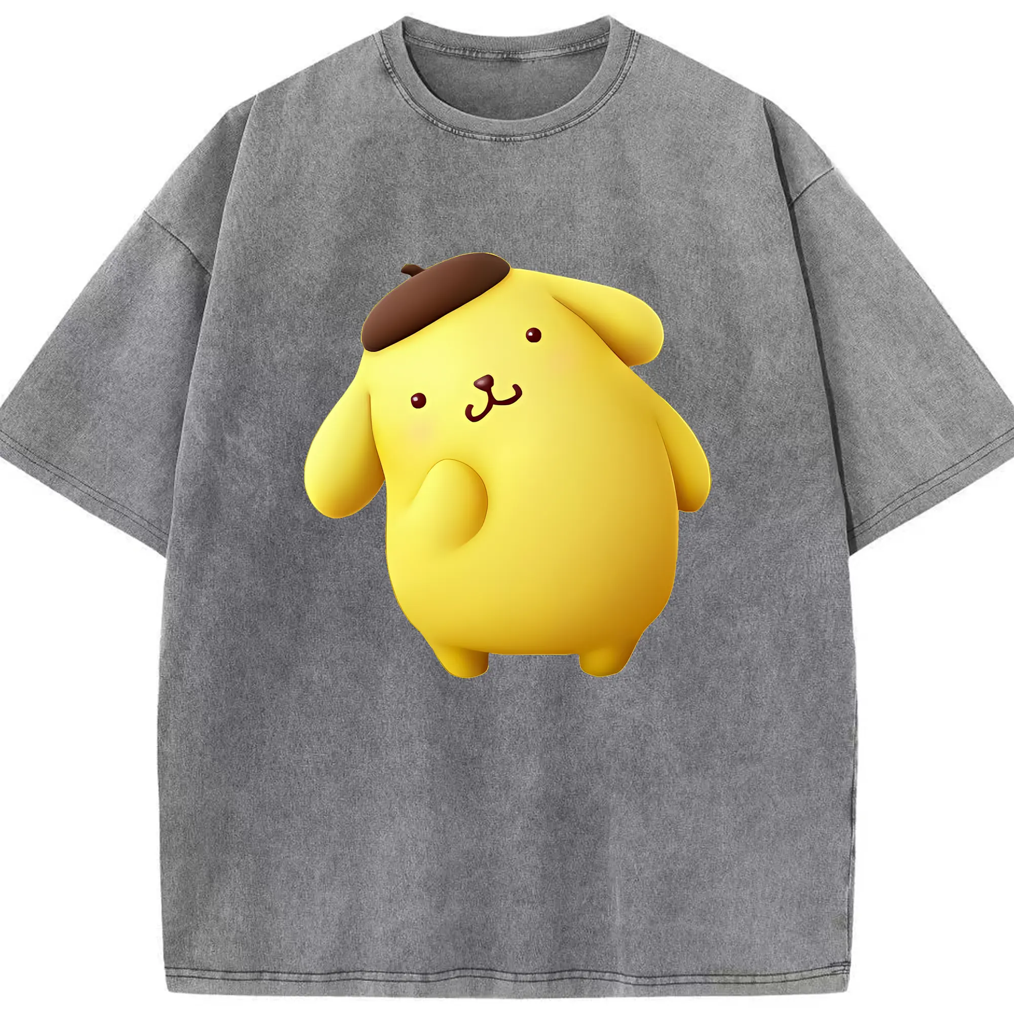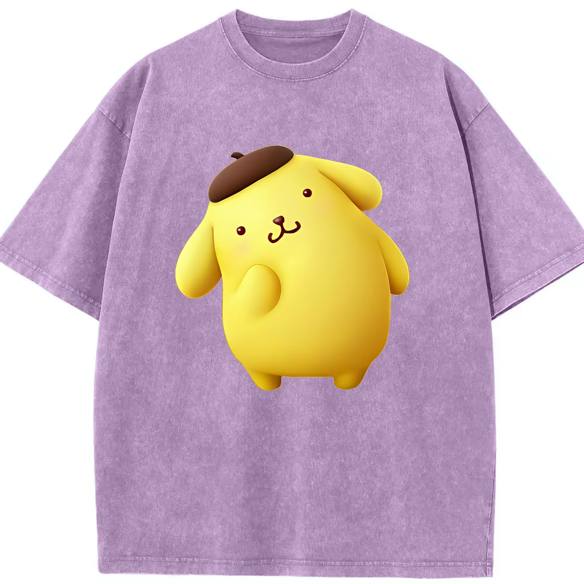 サンリオ グッズ,ポムポムプリン - 綿100% ヴィンテージ風 半袖Tシャツ ・ 背面プリント ・ 柔らか肌触り ・ 通気性 快適 ・ スポーツ カジュアル 外出用