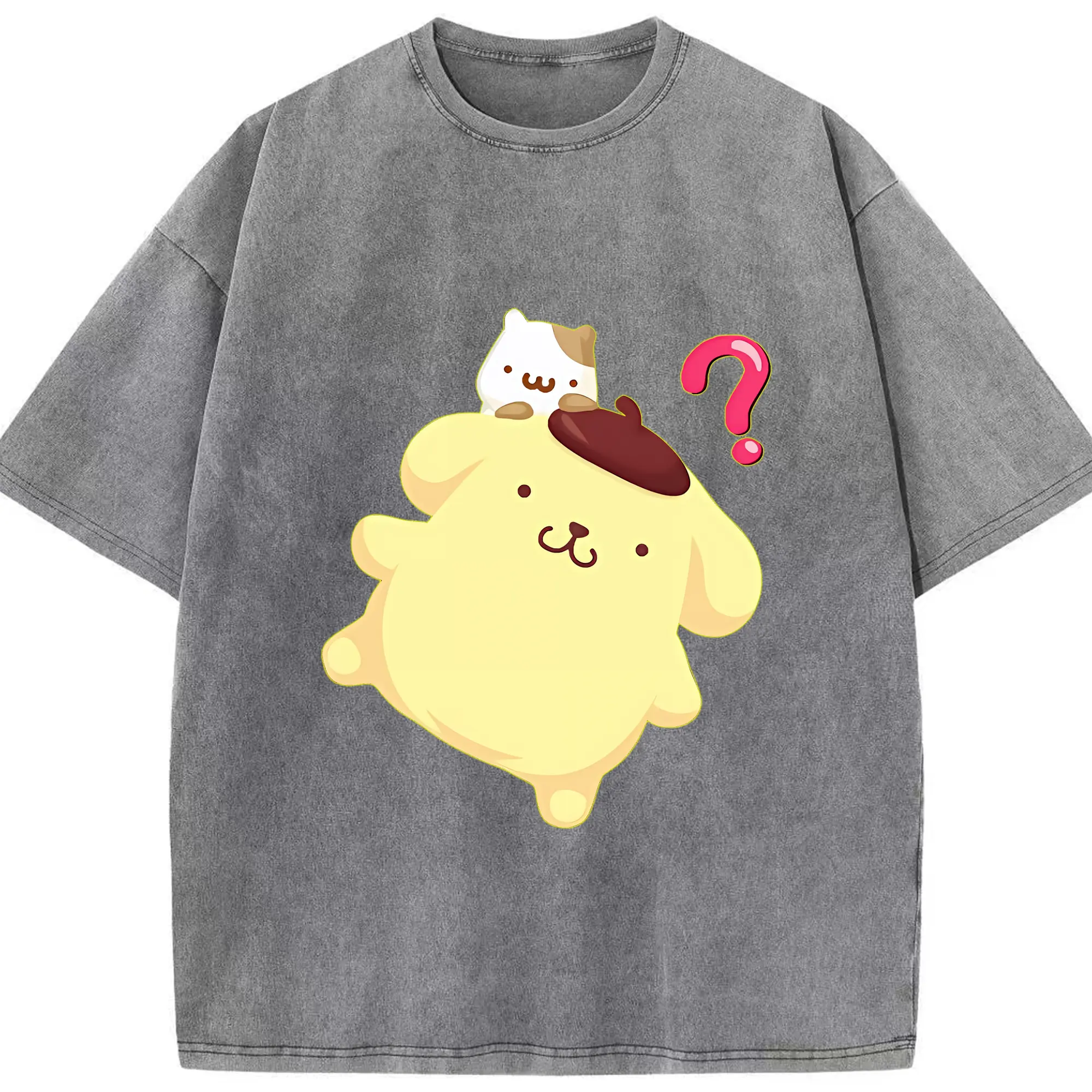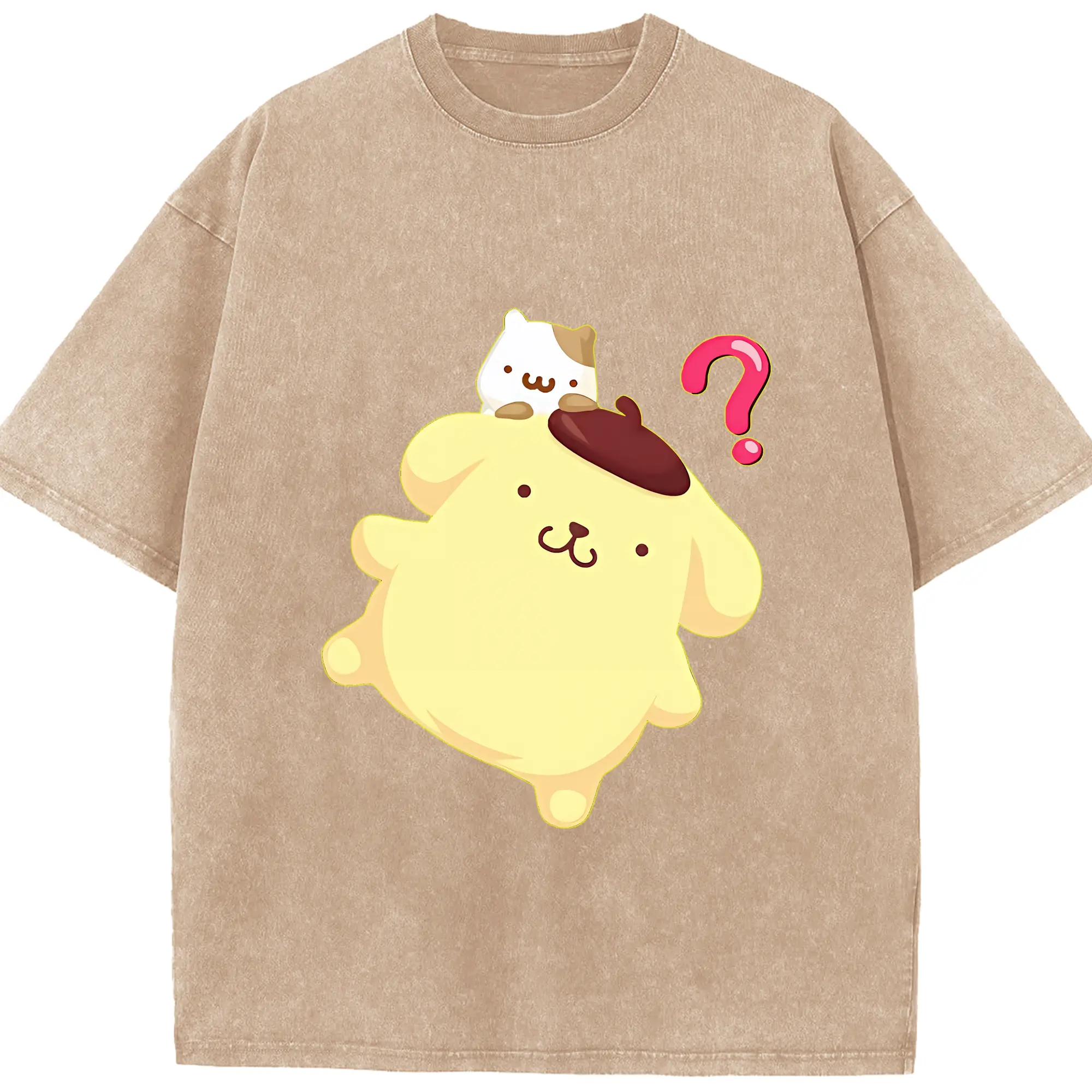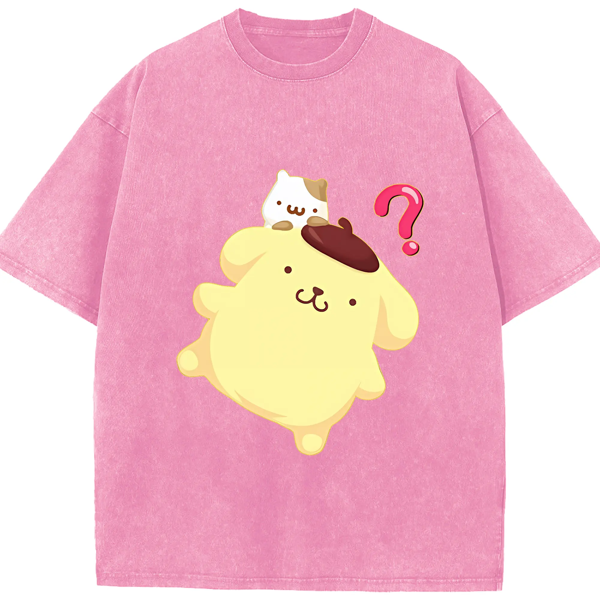 サンリオ グッズ,ポムポムプリン - 綿100% ヴィンテージ風 半袖Tシャツ ・ 背面プリント ・ 柔らか肌触り ・ 通気性 快適 ・ スポーツ カジュアル 外出用