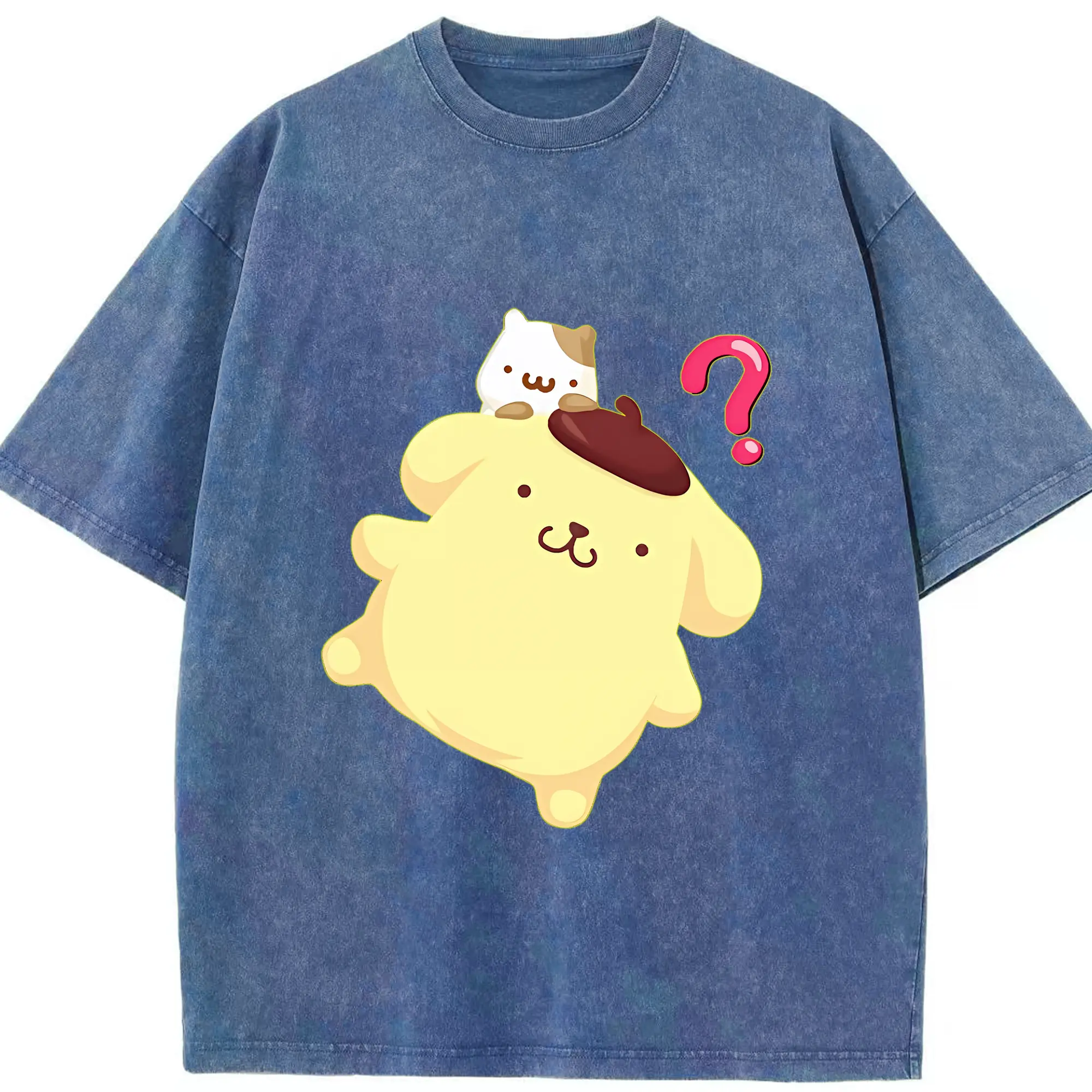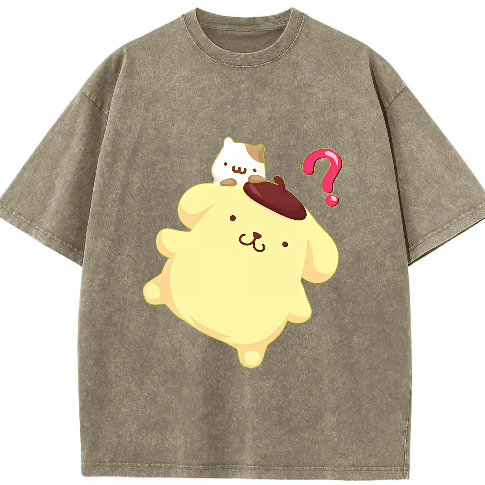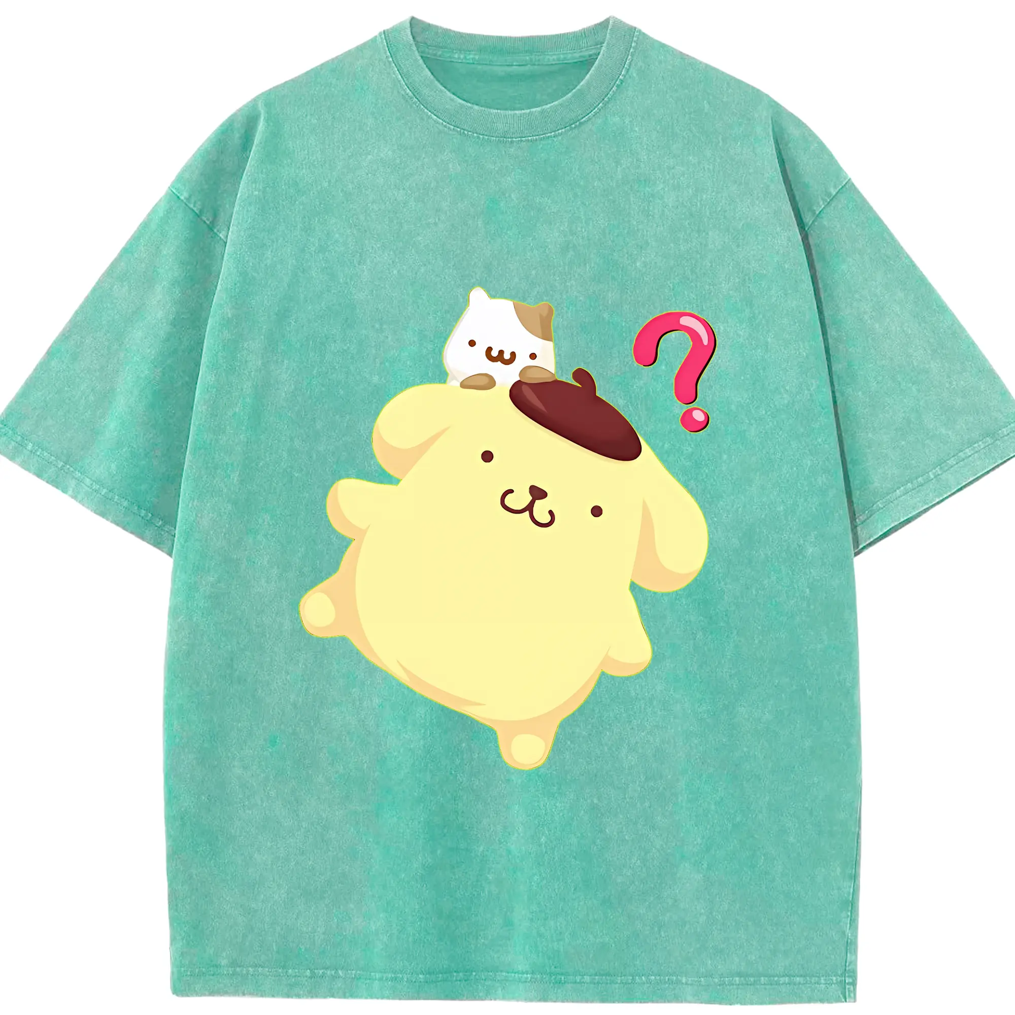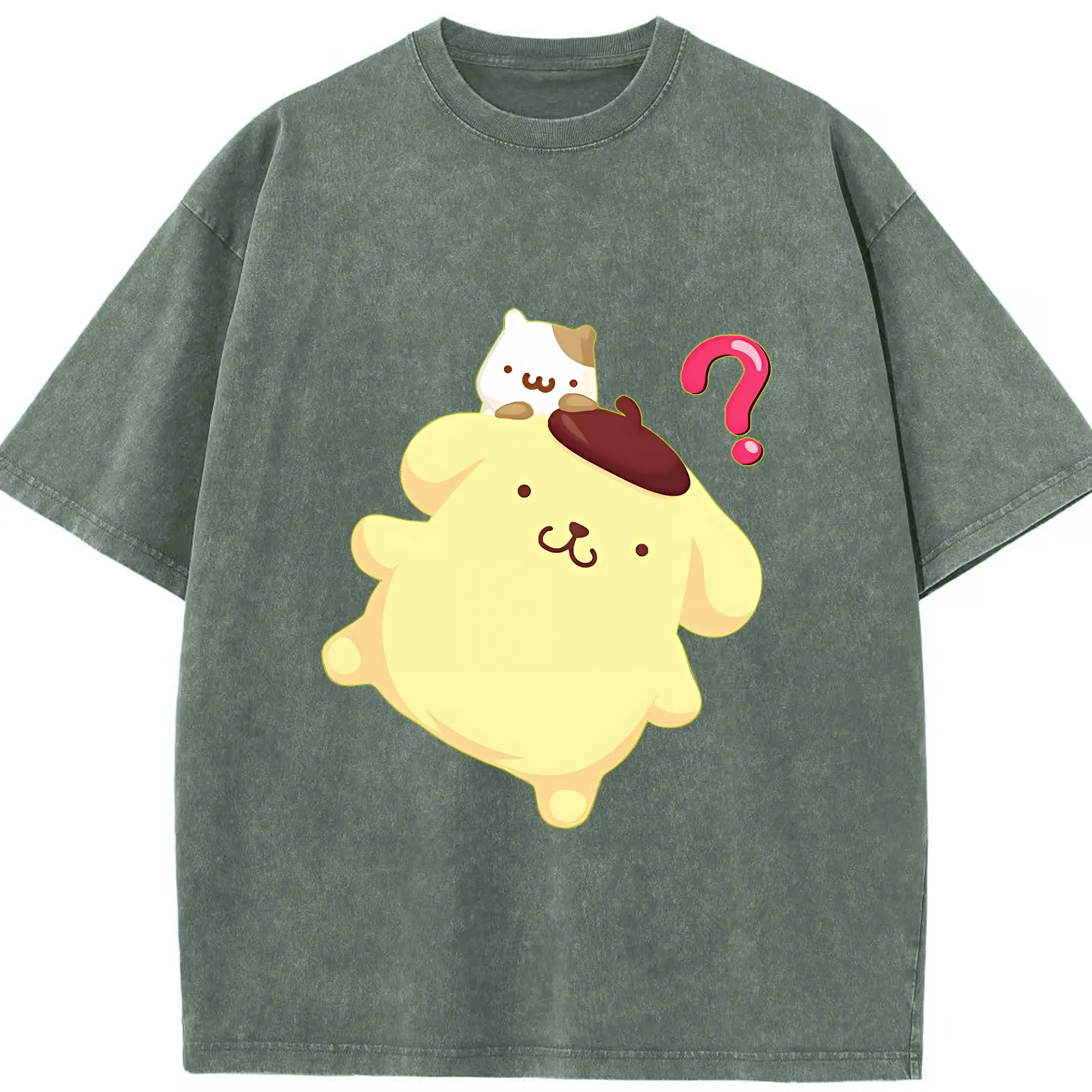 サンリオ グッズ,ポムポムプリン - 綿100% ヴィンテージ風 半袖Tシャツ ・ 背面プリント ・ 柔らか肌触り ・ 通気性 快適 ・ スポーツ カジュアル 外出用