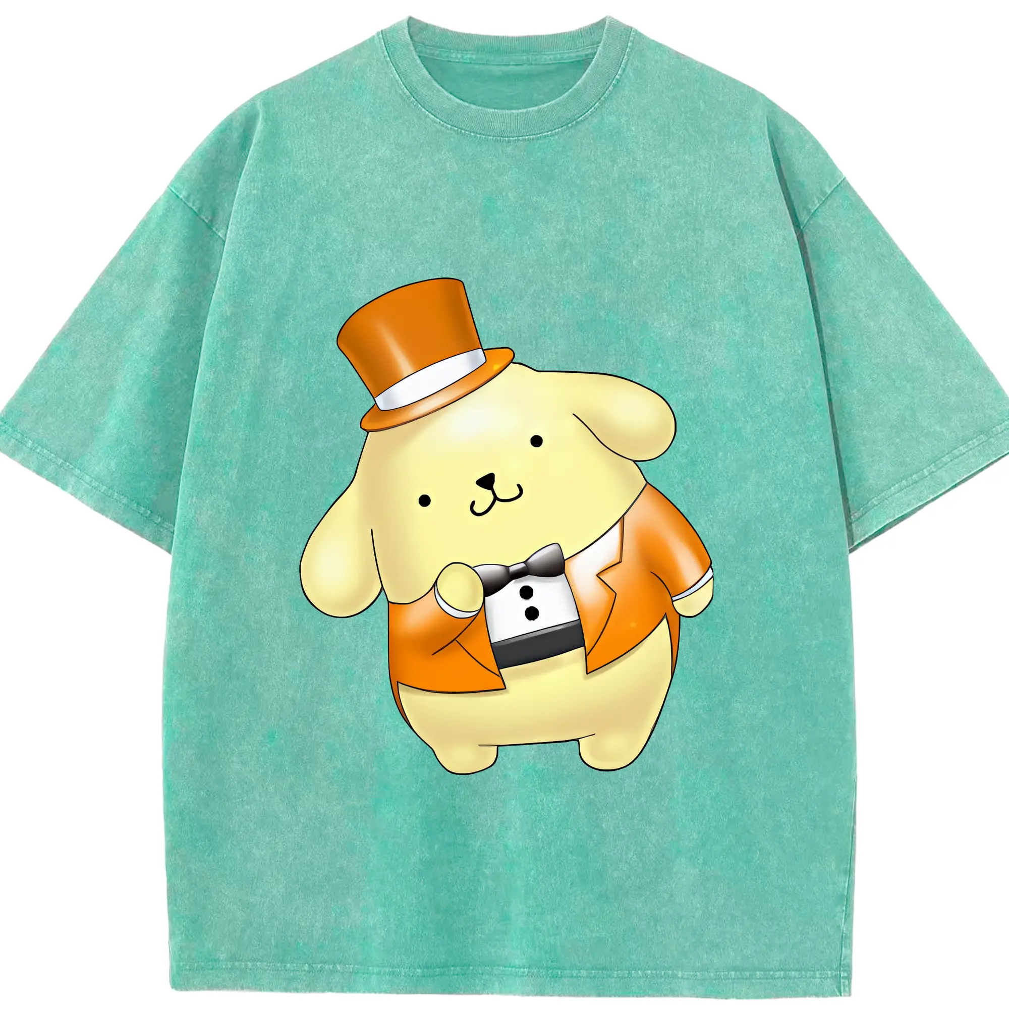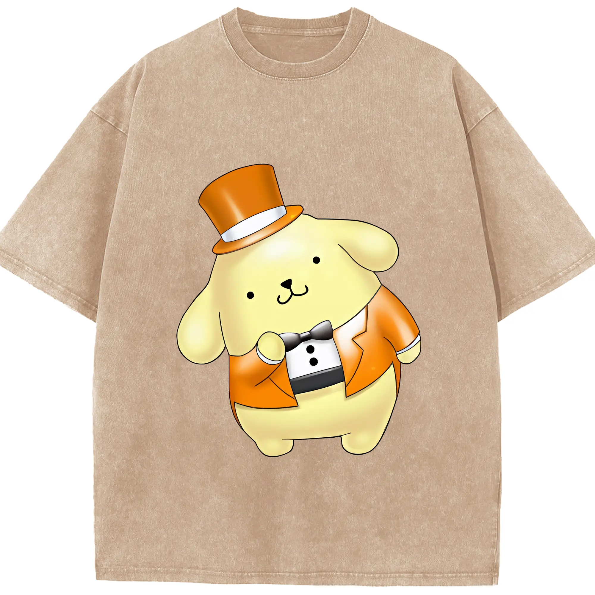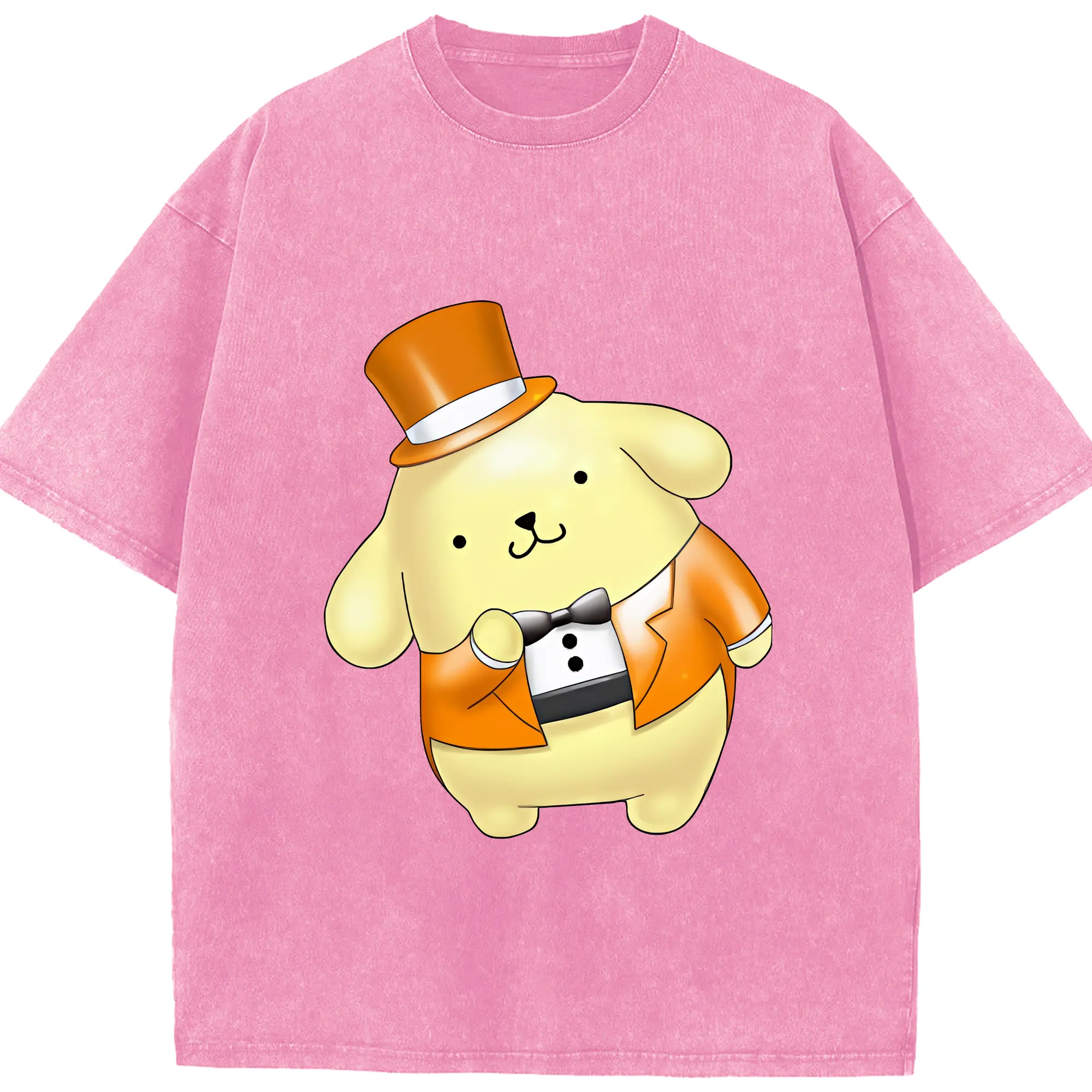 サンリオ グッズ,ポムポムプリン - 綿100% ヴィンテージ風 半袖Tシャツ ・ 背面プリント ・ 柔らか肌触り ・ 通気性 快適 ・ スポーツ カジュアル 外出用