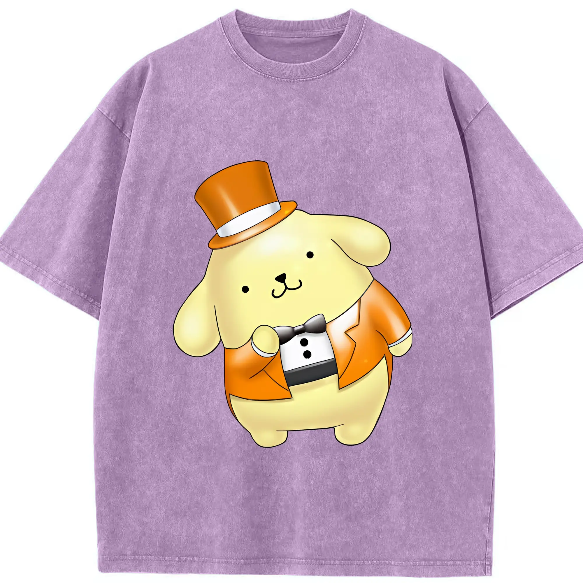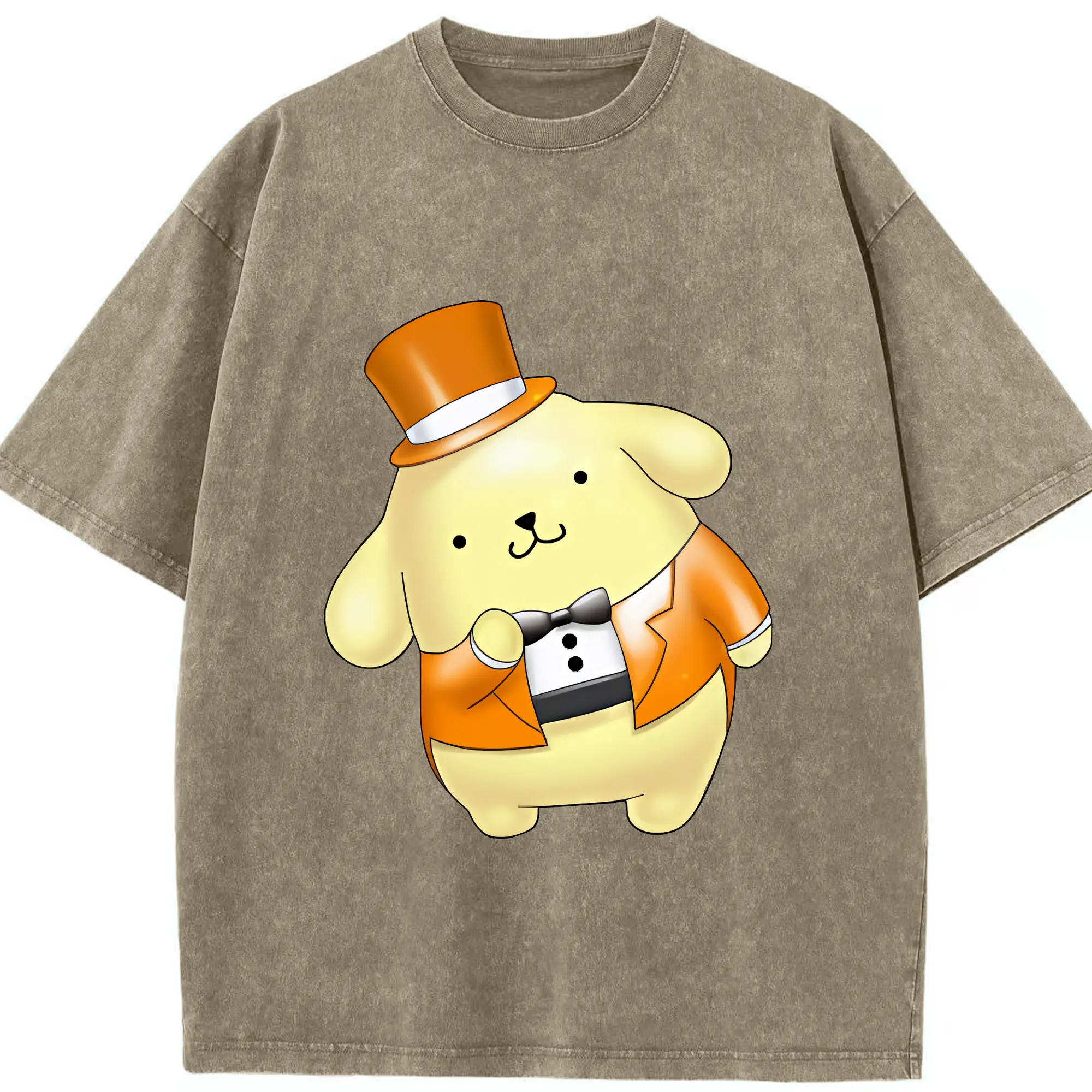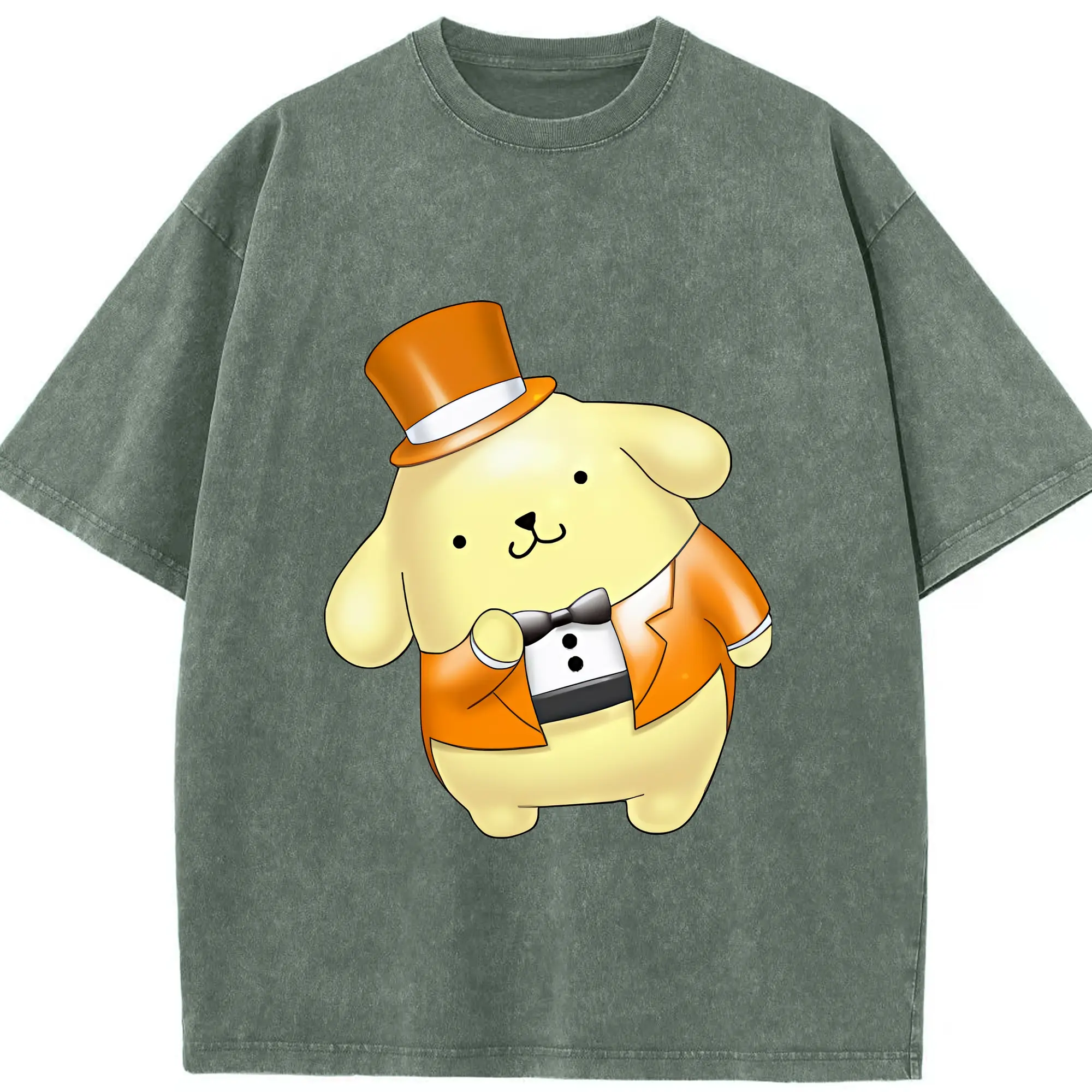 サンリオ グッズ,ポムポムプリン - 綿100% ヴィンテージ風 半袖Tシャツ ・ 背面プリント ・ 柔らか肌触り ・ 通気性 快適 ・ スポーツ カジュアル 外出用