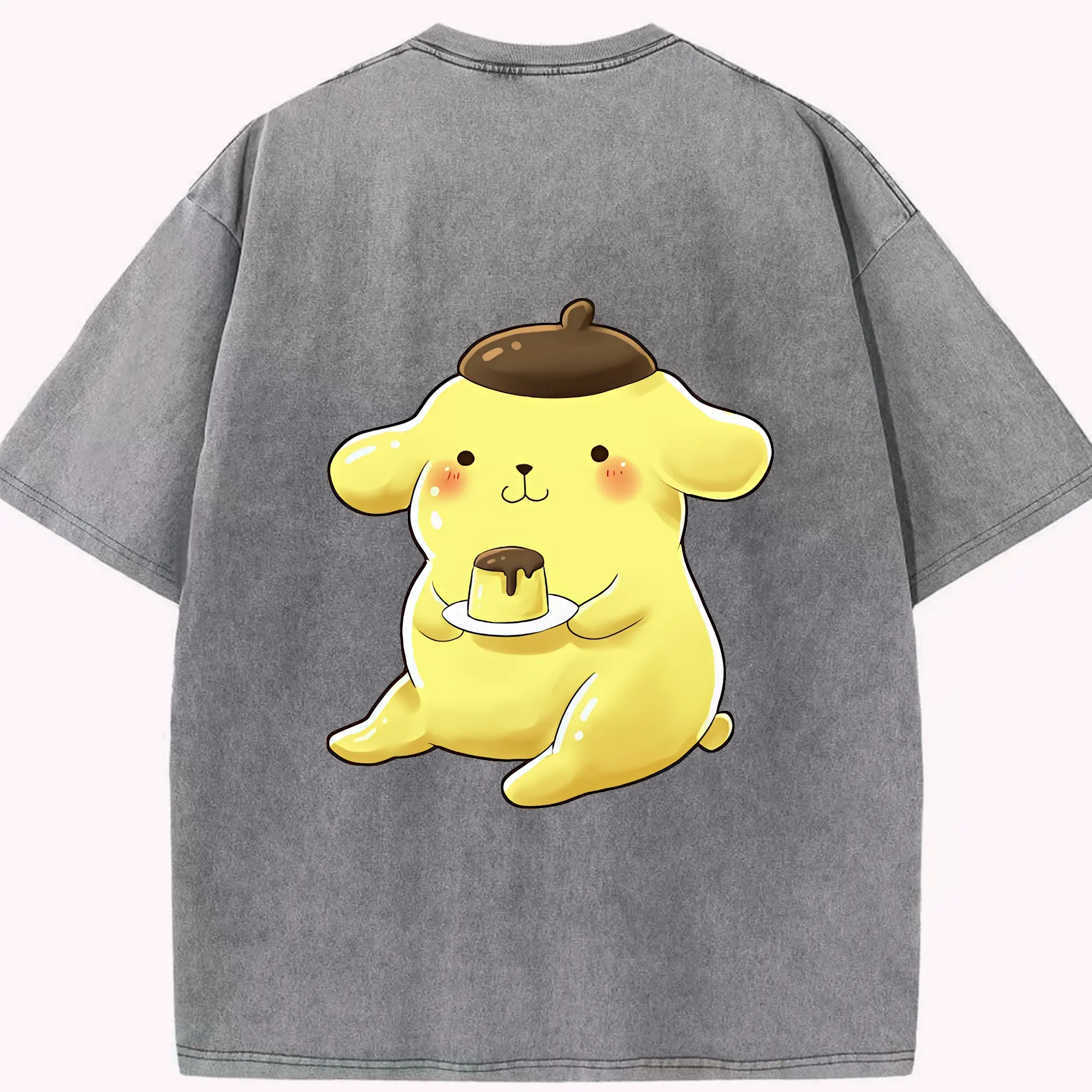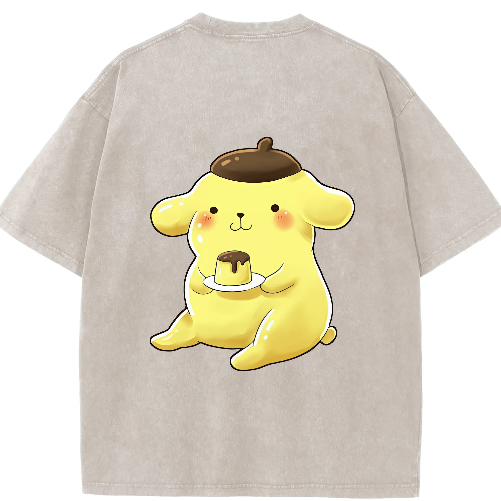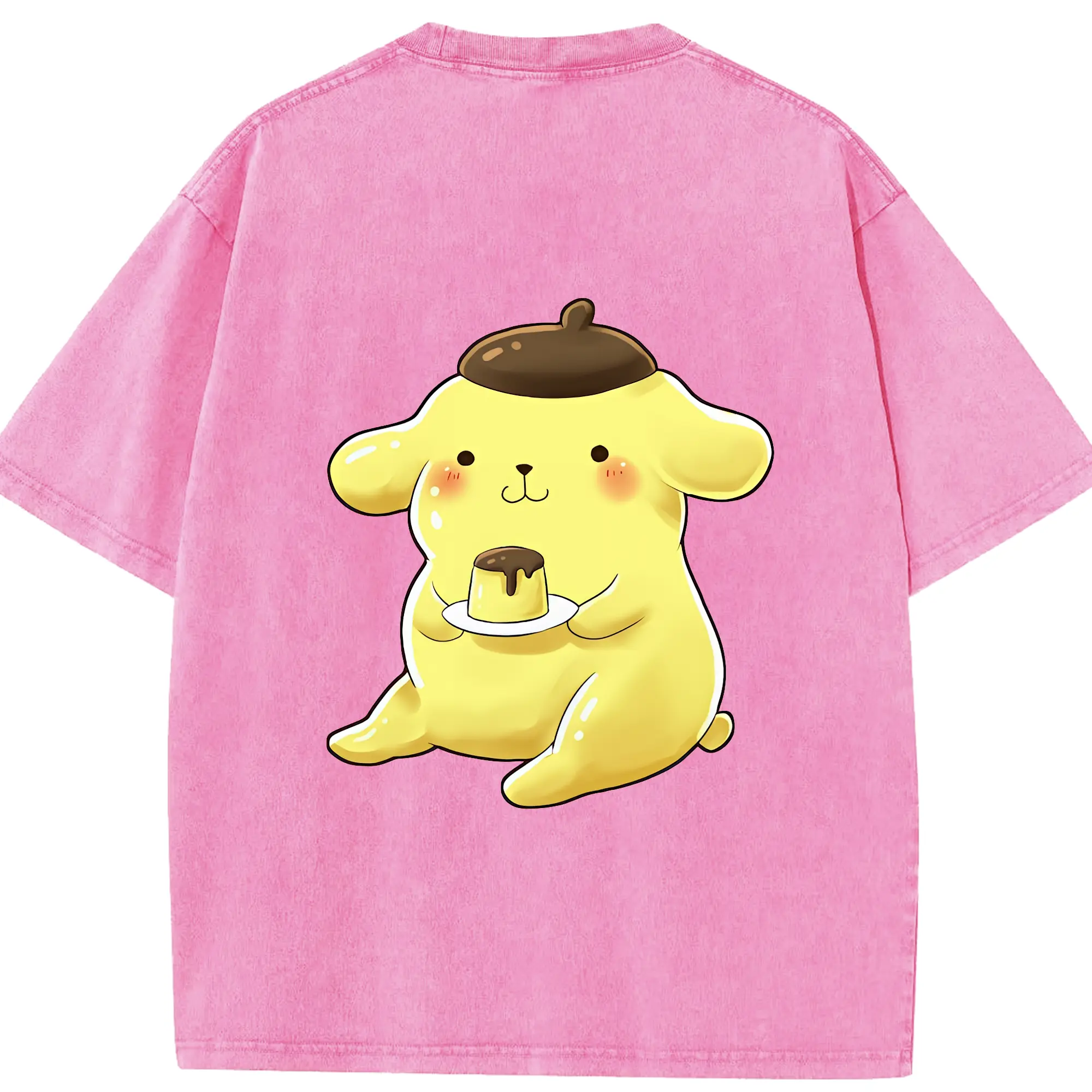 サンリオ グッズ,ポムポムプリン - 綿100% ヴィンテージ風 半袖Tシャツ ・ フロントプリント ・ 柔らか肌触り ・ 通気性 快適 ・ スポーツ カジュアル 外出用