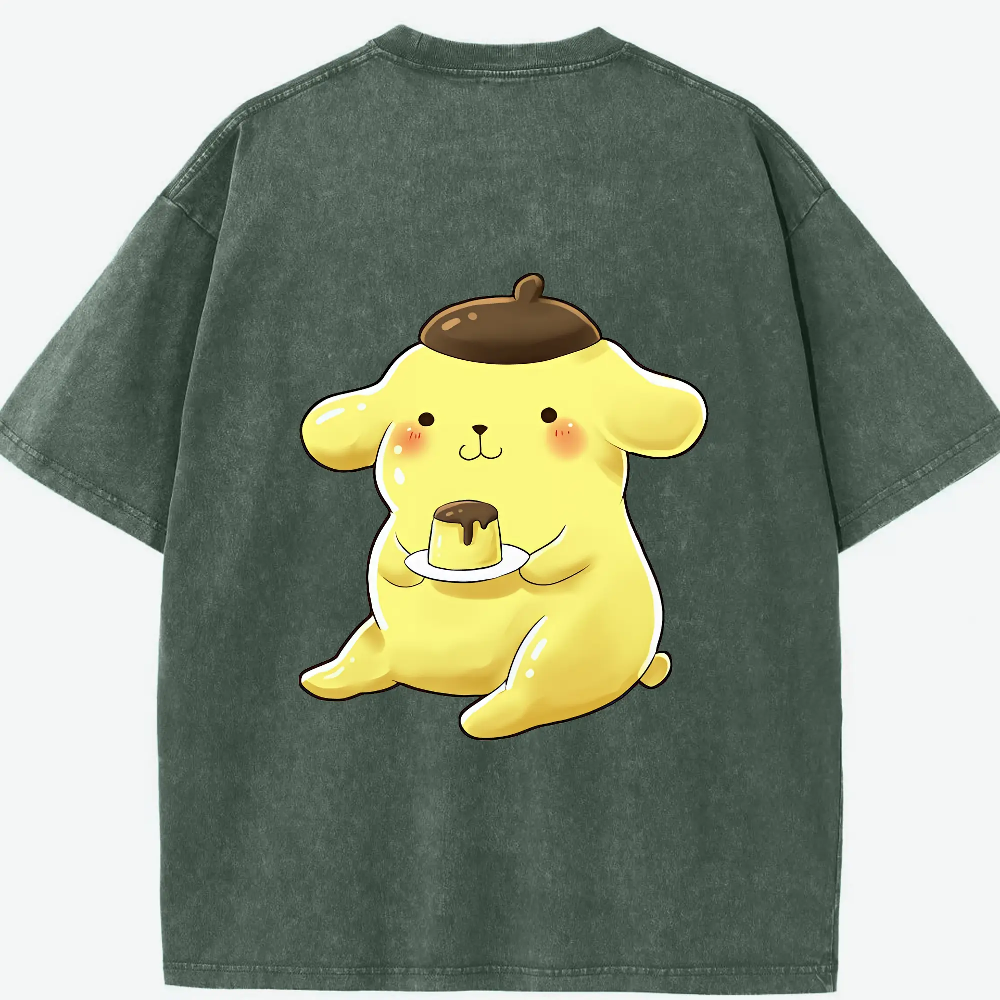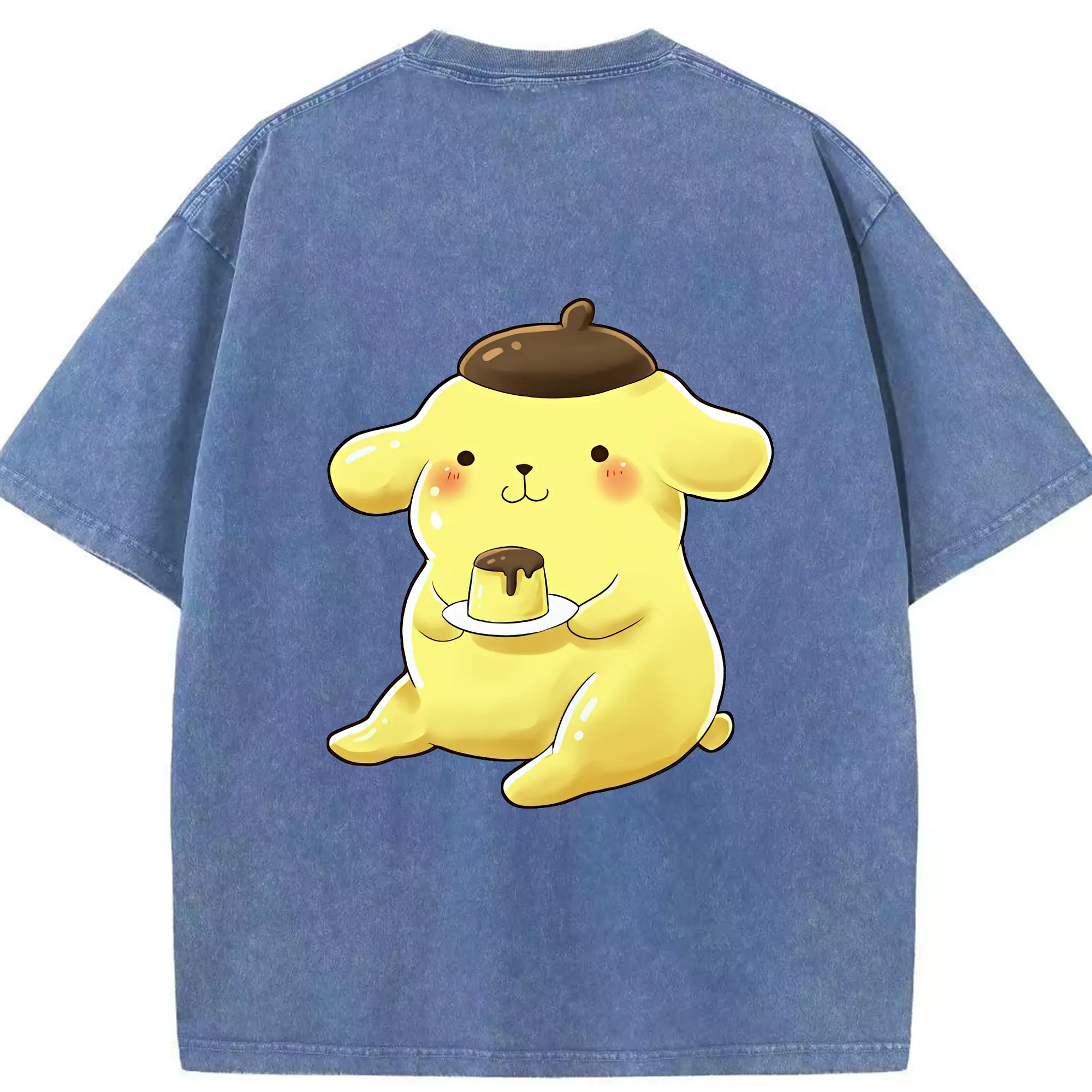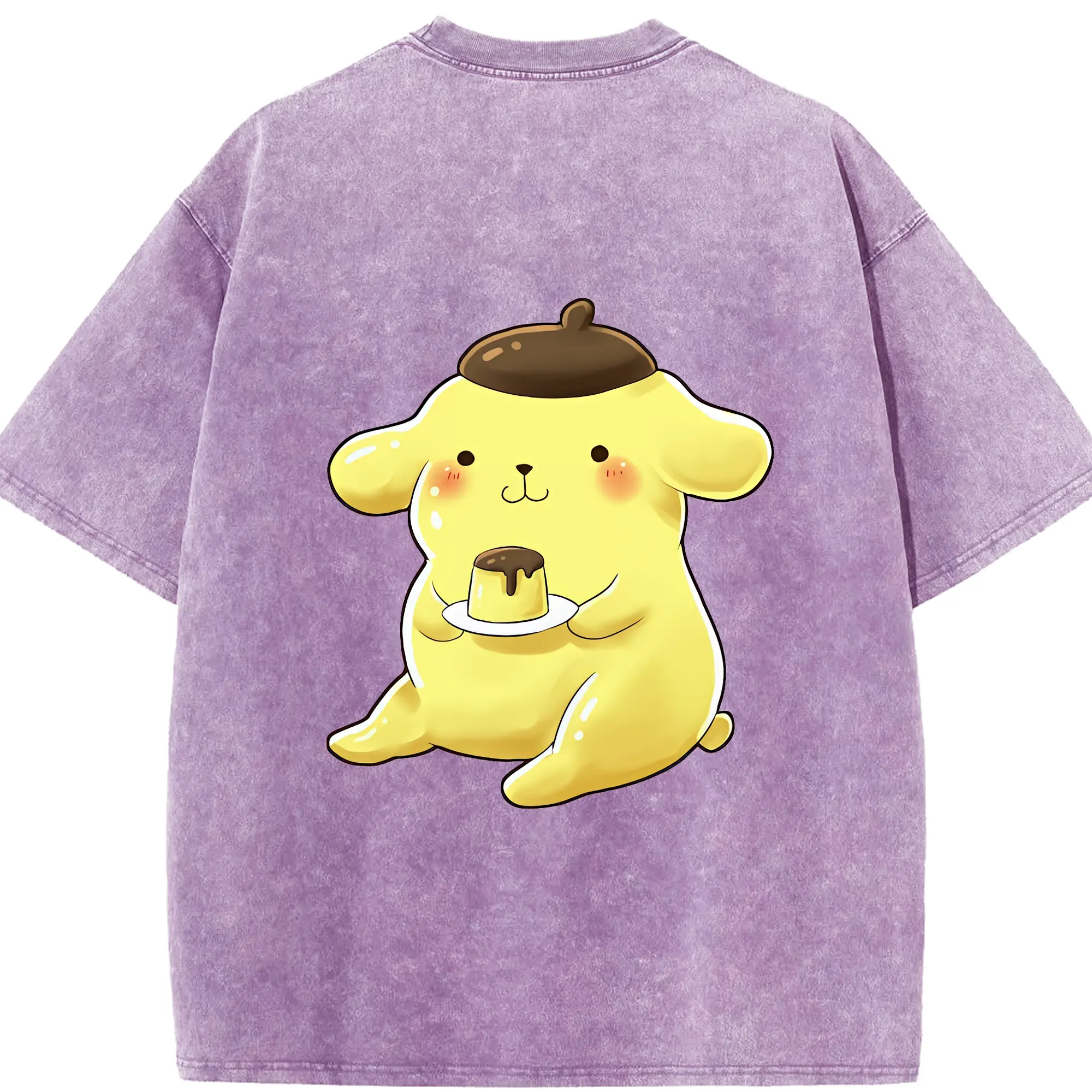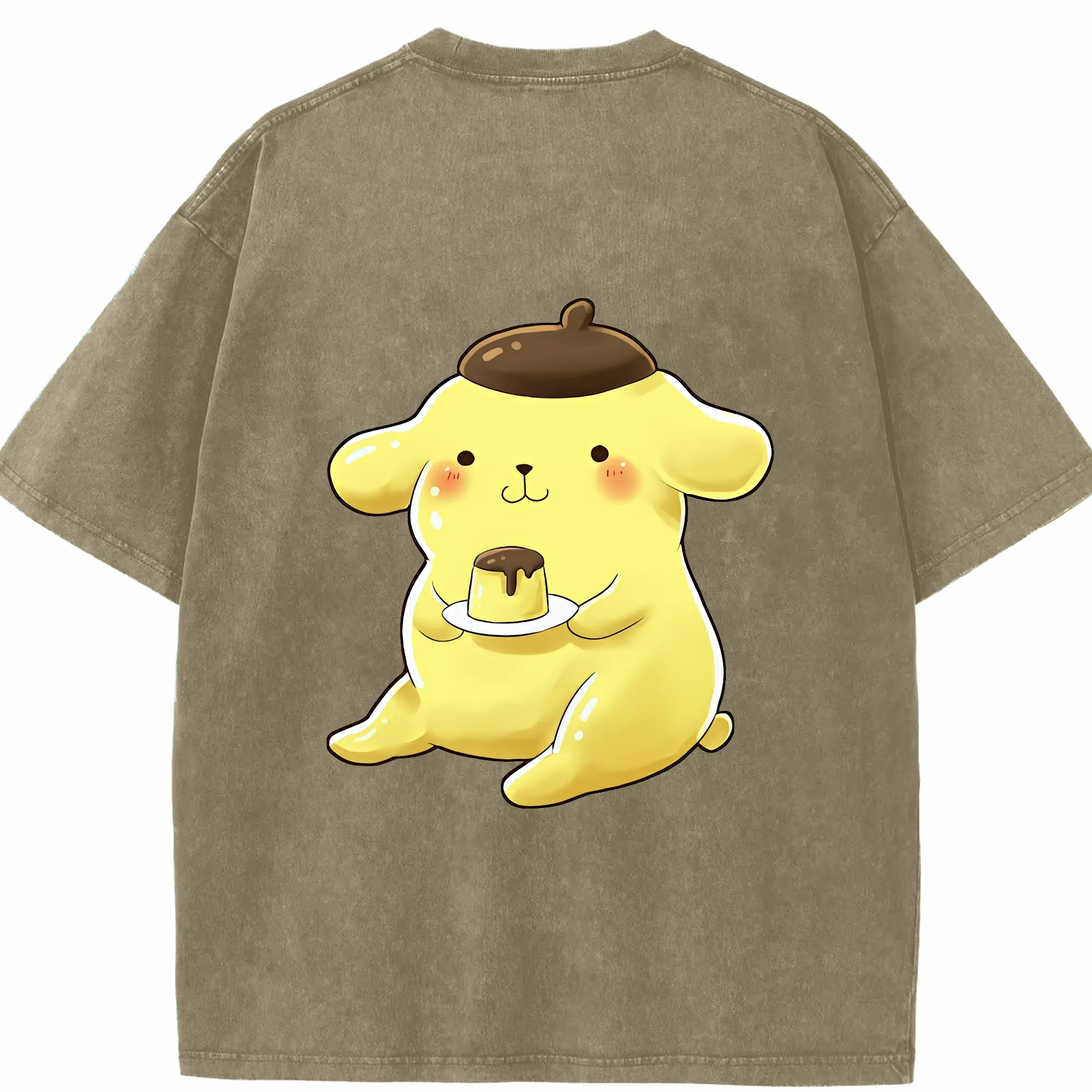 サンリオ グッズ,ポムポムプリン - 綿100% ヴィンテージ風 半袖Tシャツ ・ フロントプリント ・ 柔らか肌触り ・ 通気性 快適 ・ スポーツ カジュアル 外出用