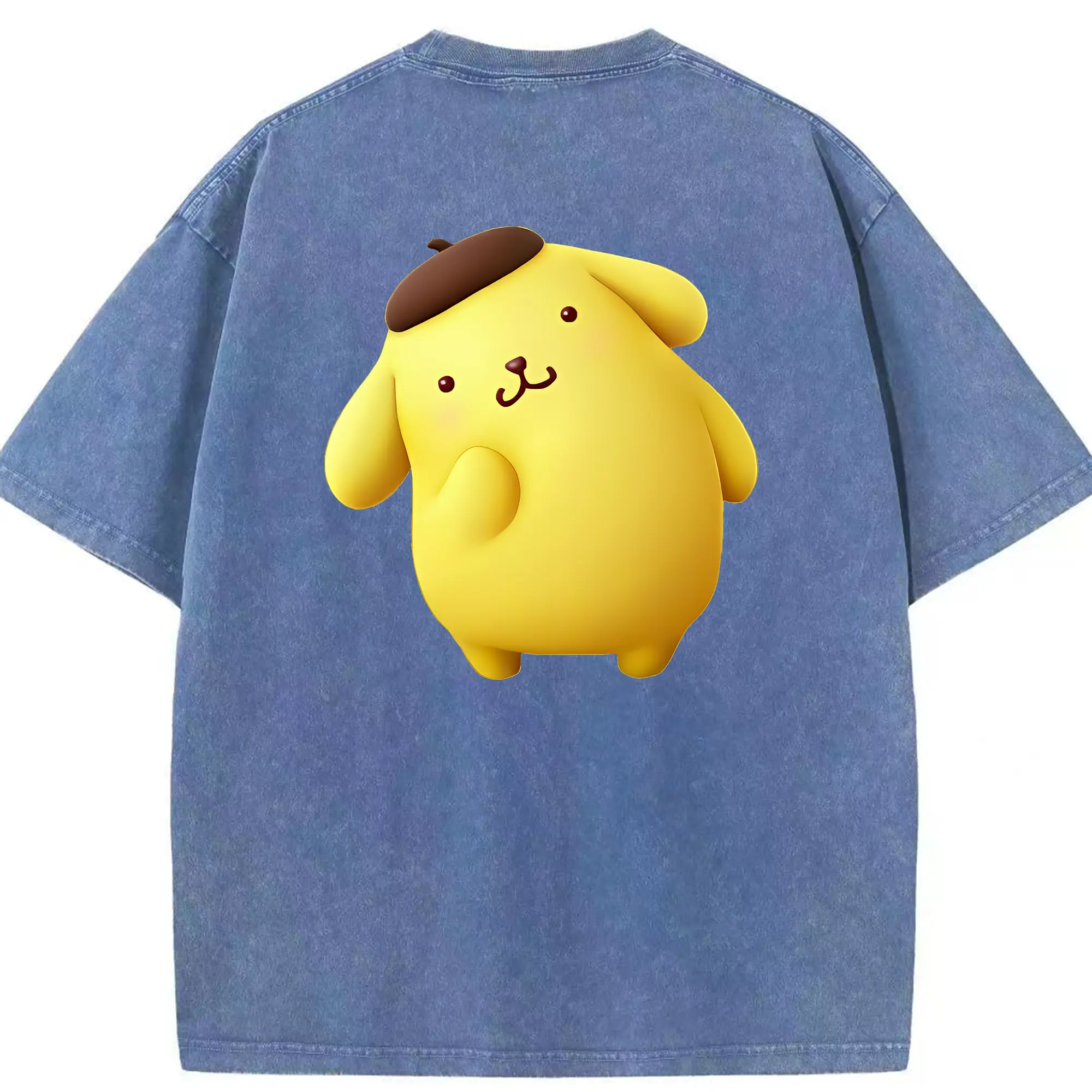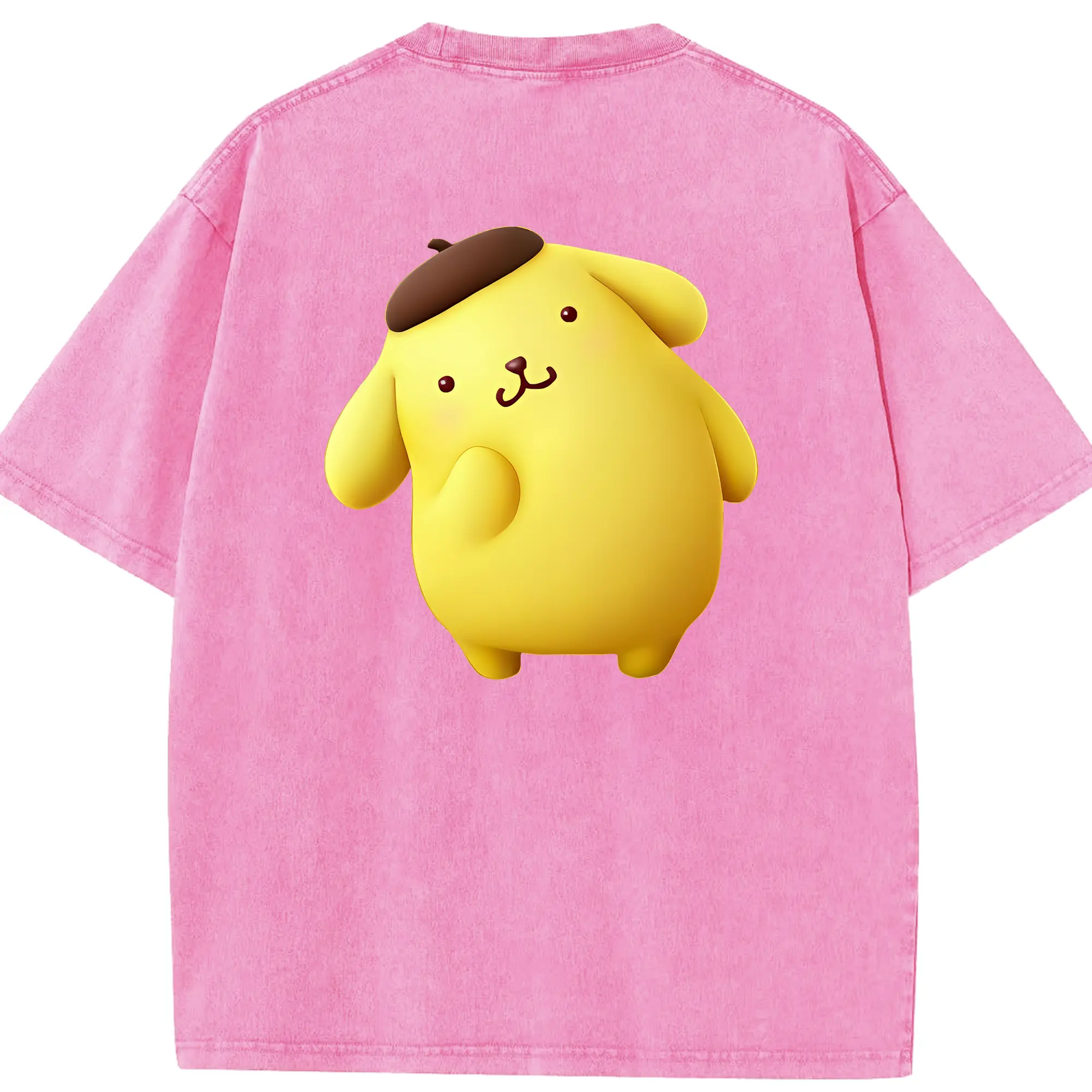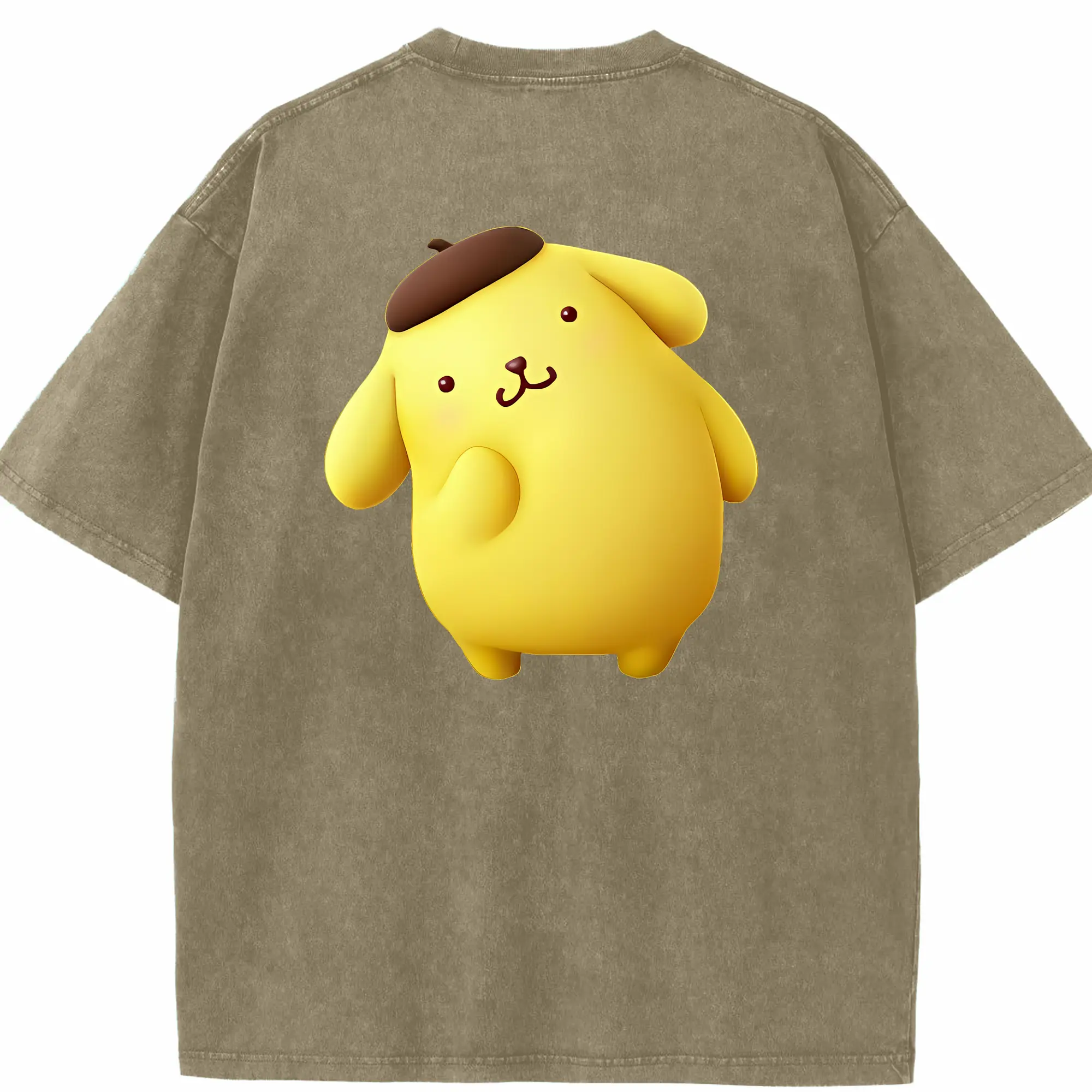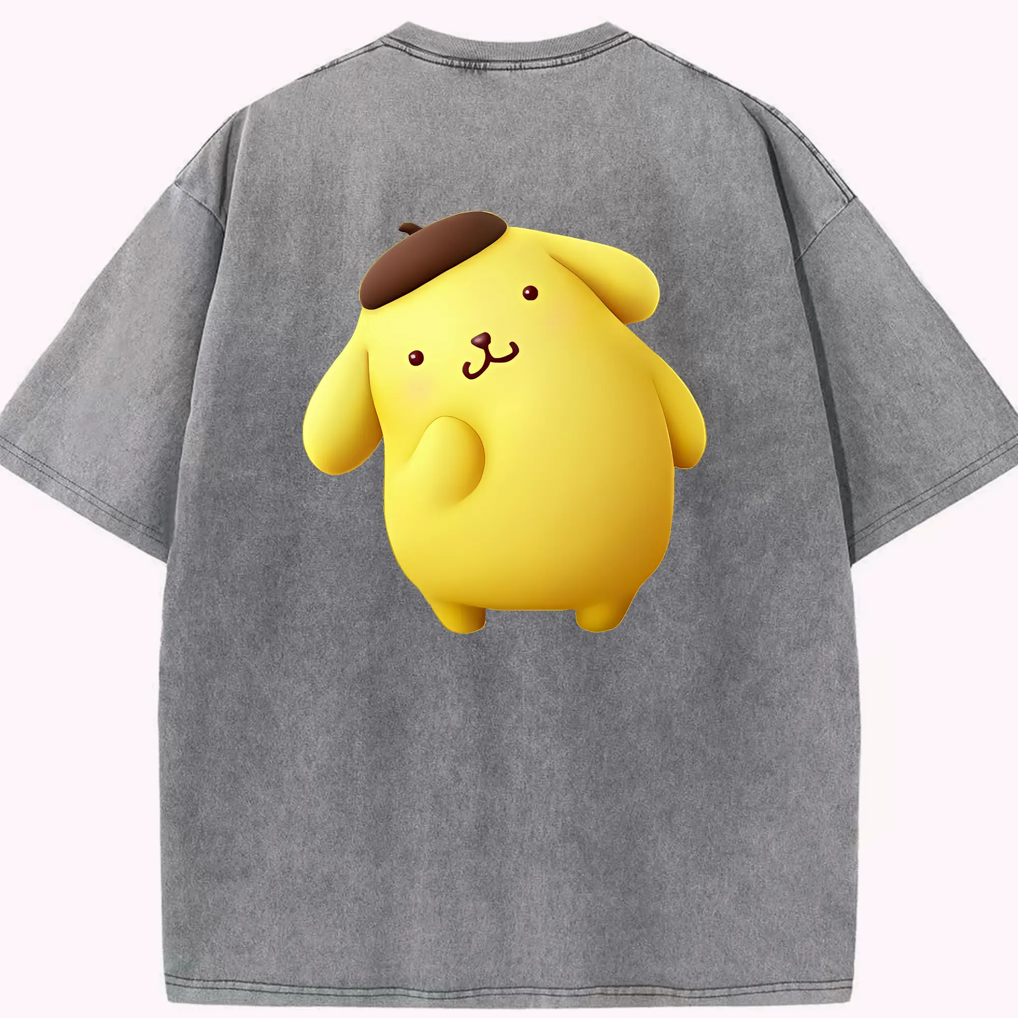 サンリオ グッズ,ポムポムプリン - 綿100% ヴィンテージ風 半袖Tシャツ ・ フロントプリント ・ 柔らか肌触り ・ 通気性 快適 ・ スポーツ カジュアル 外出用