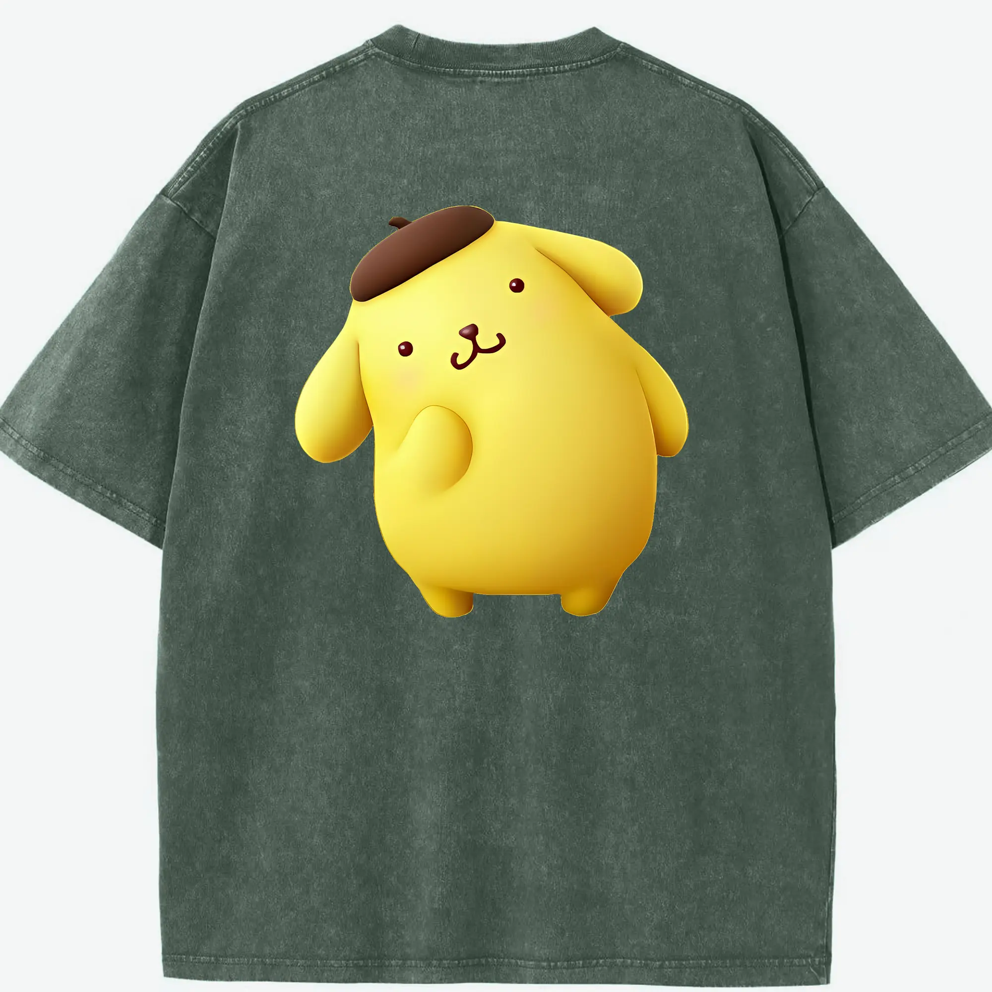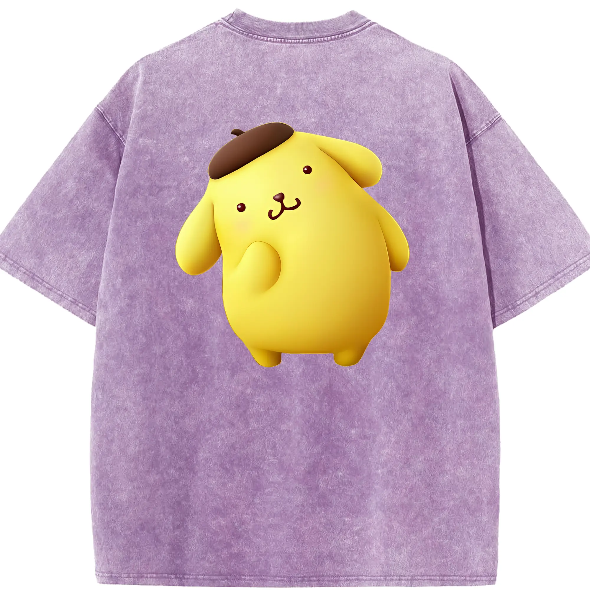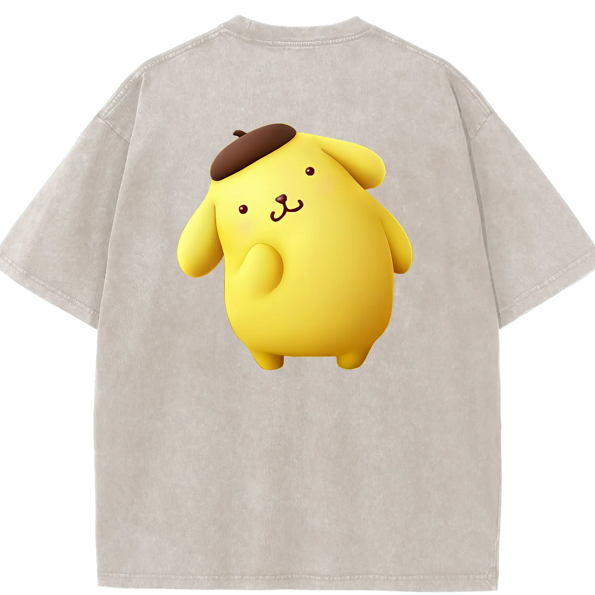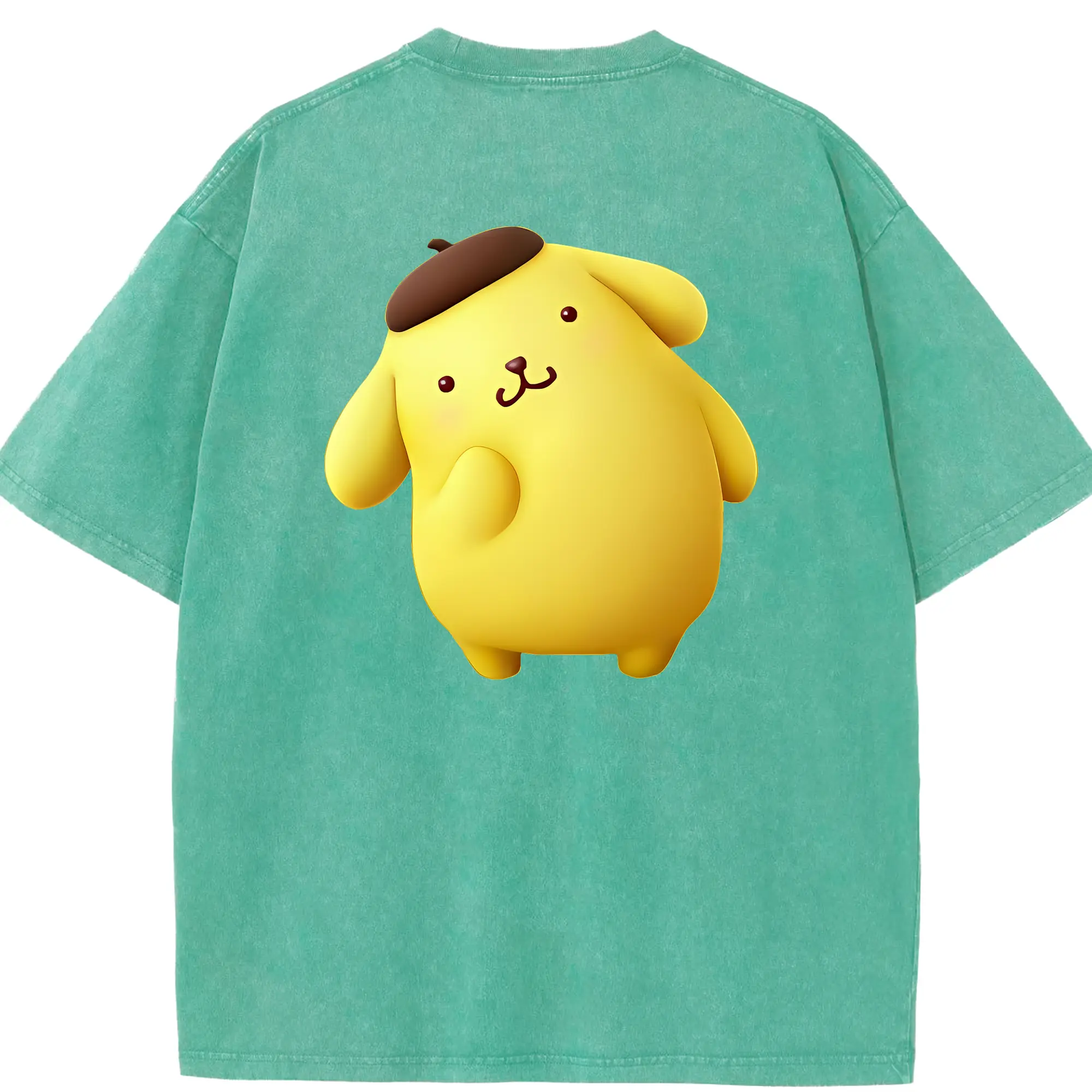 サンリオ グッズ,ポムポムプリン - 綿100% ヴィンテージ風 半袖Tシャツ ・ フロントプリント ・ 柔らか肌触り ・ 通気性 快適 ・ スポーツ カジュアル 外出用