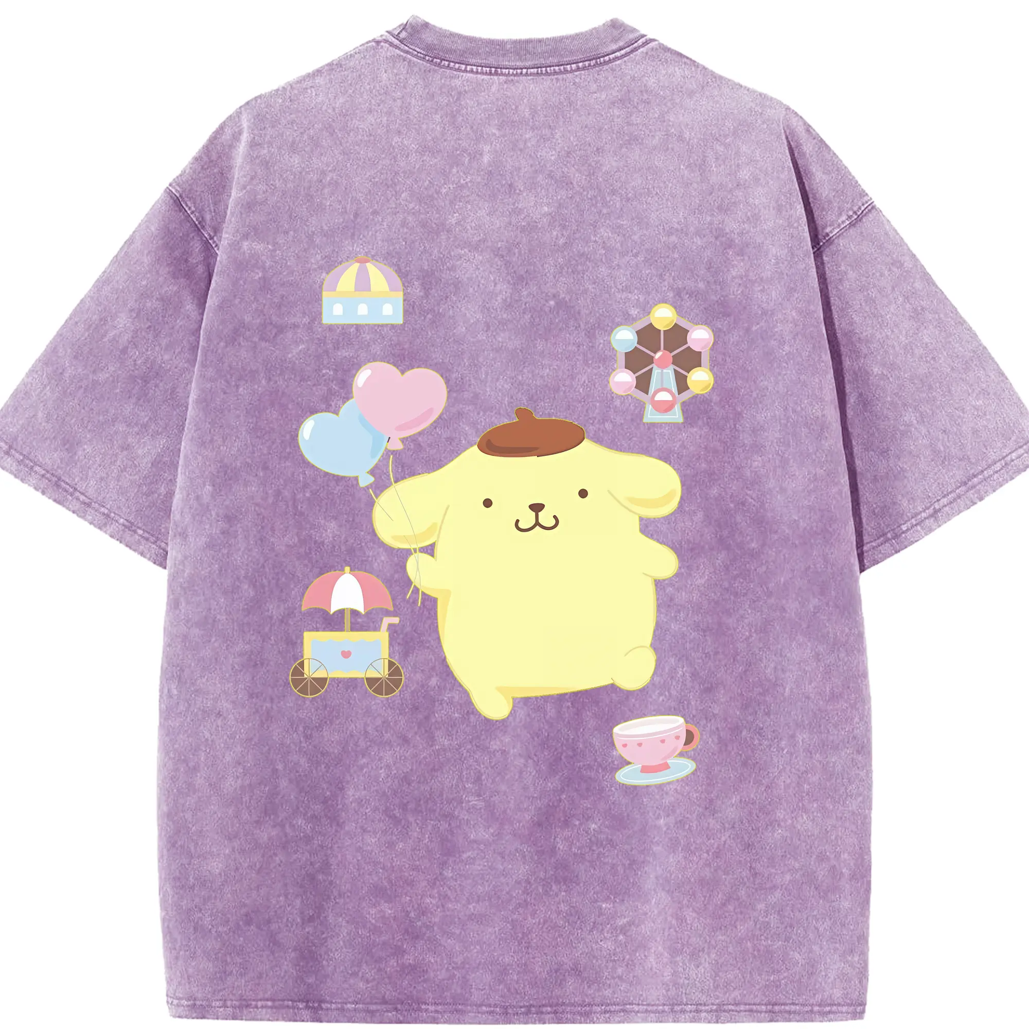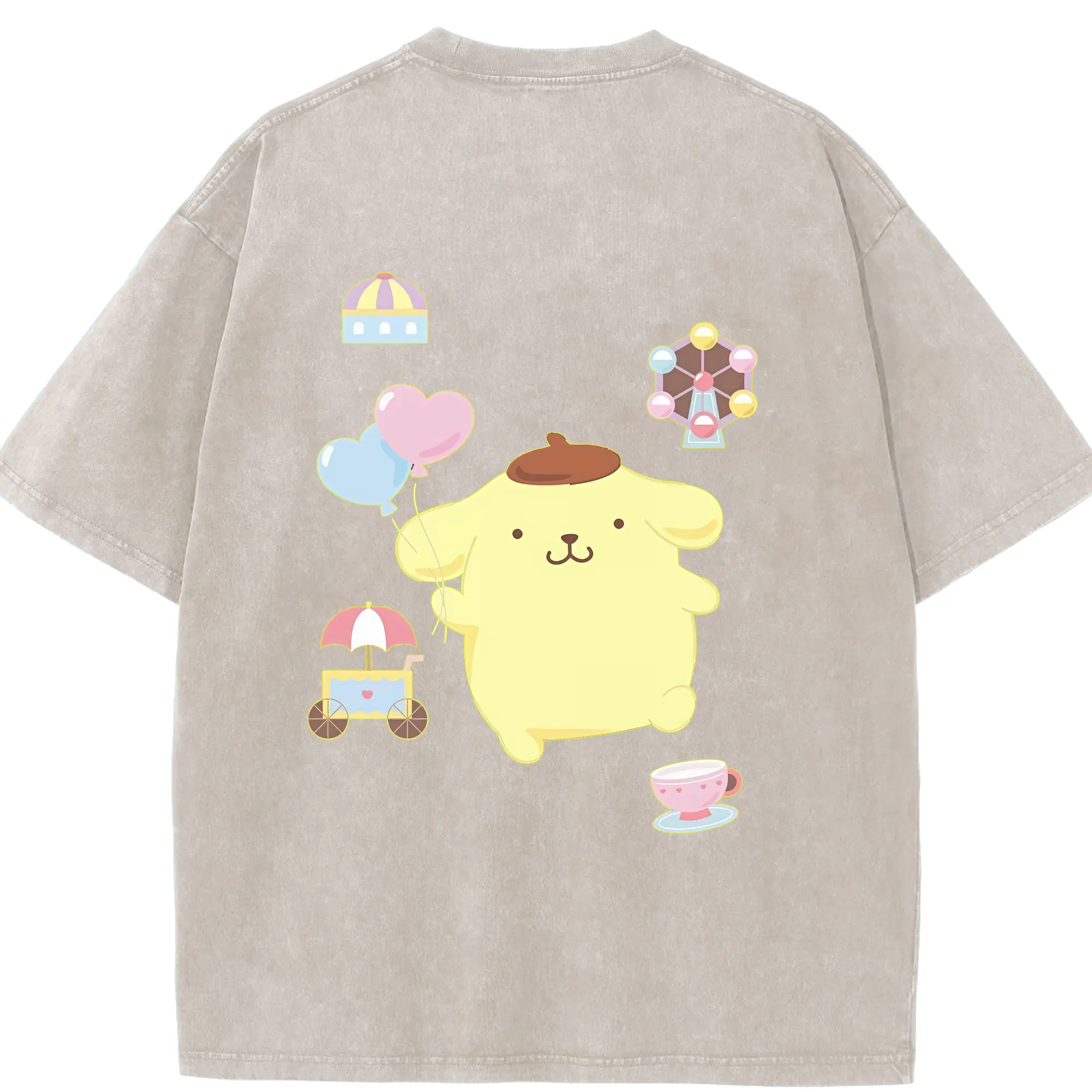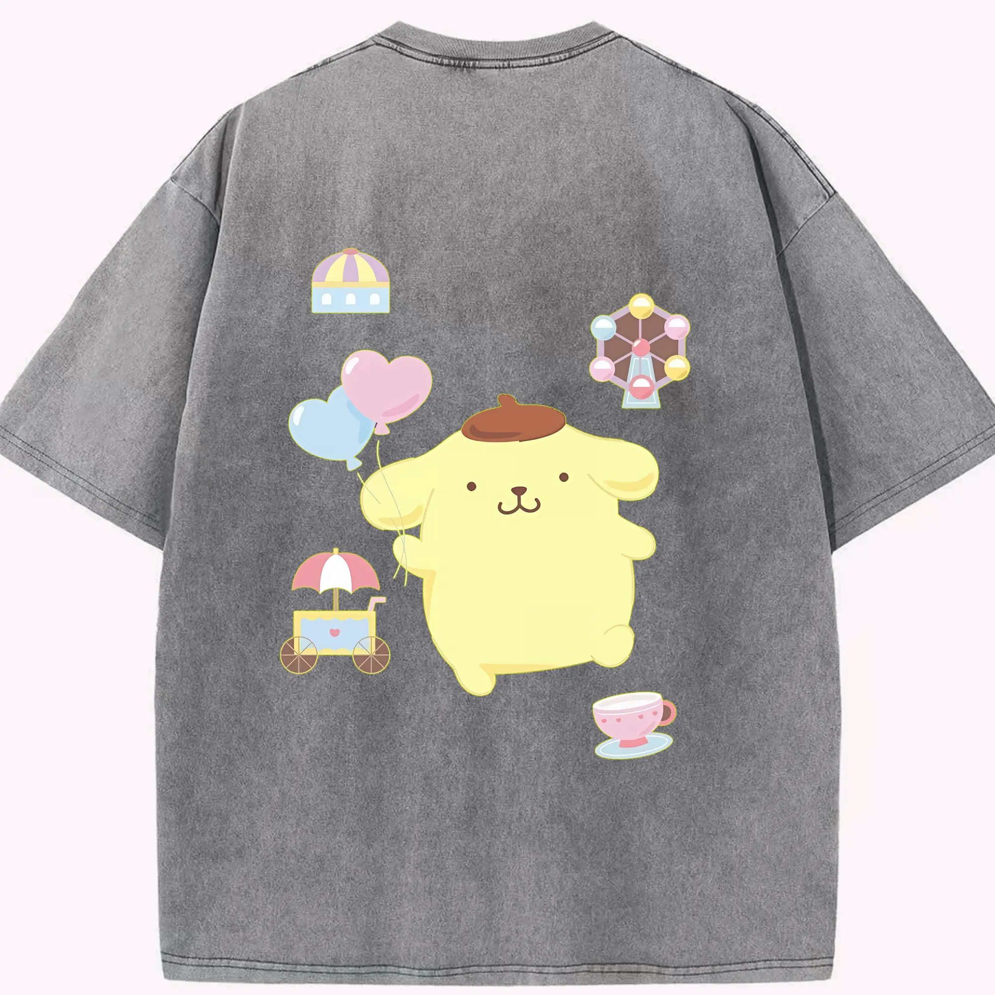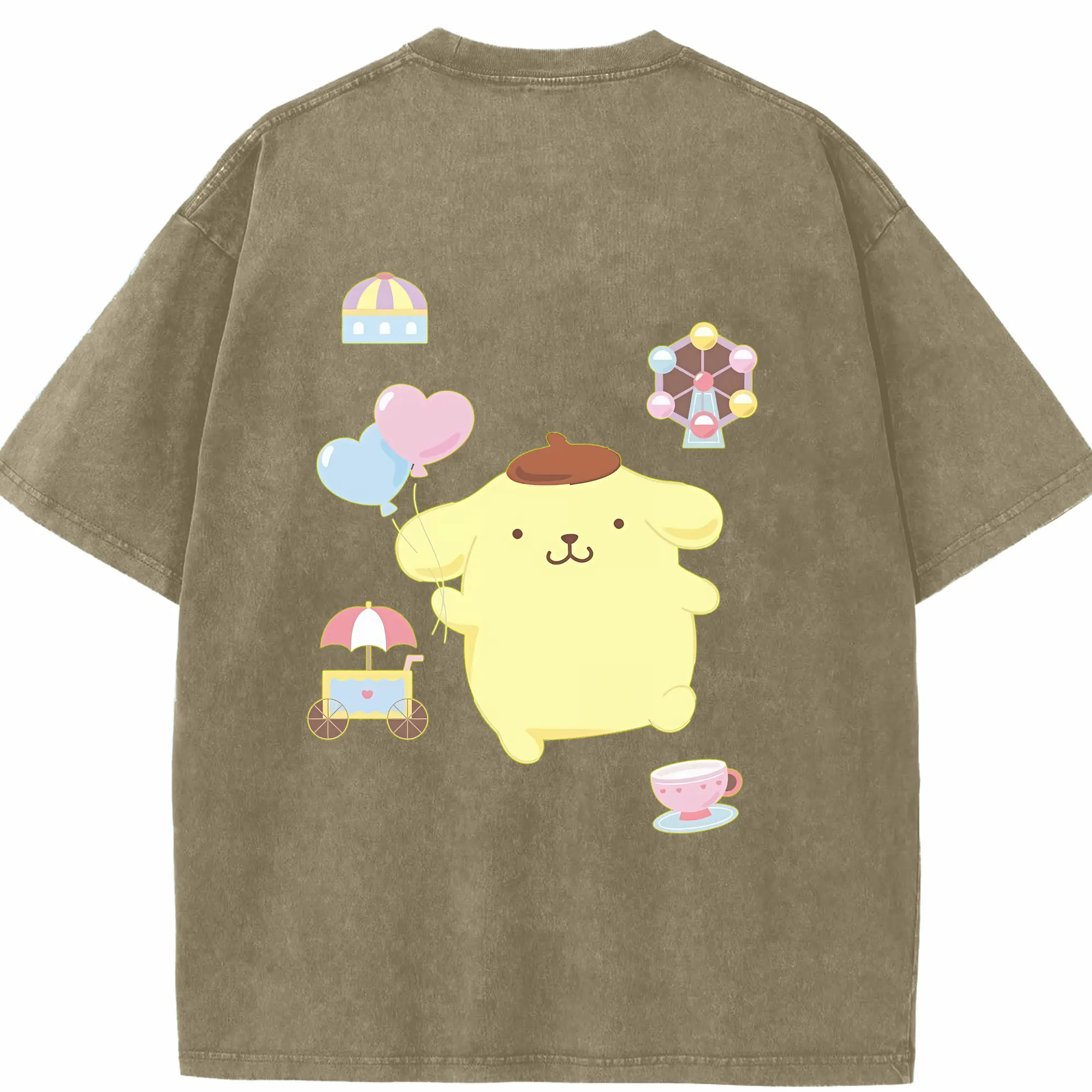 サンリオ グッズ,ポムポムプリン - 綿100% ヴィンテージ風 半袖Tシャツ ・ フロントプリント ・ 柔らか肌触り ・ 通気性 快適 ・ スポーツ カジュアル 外出用