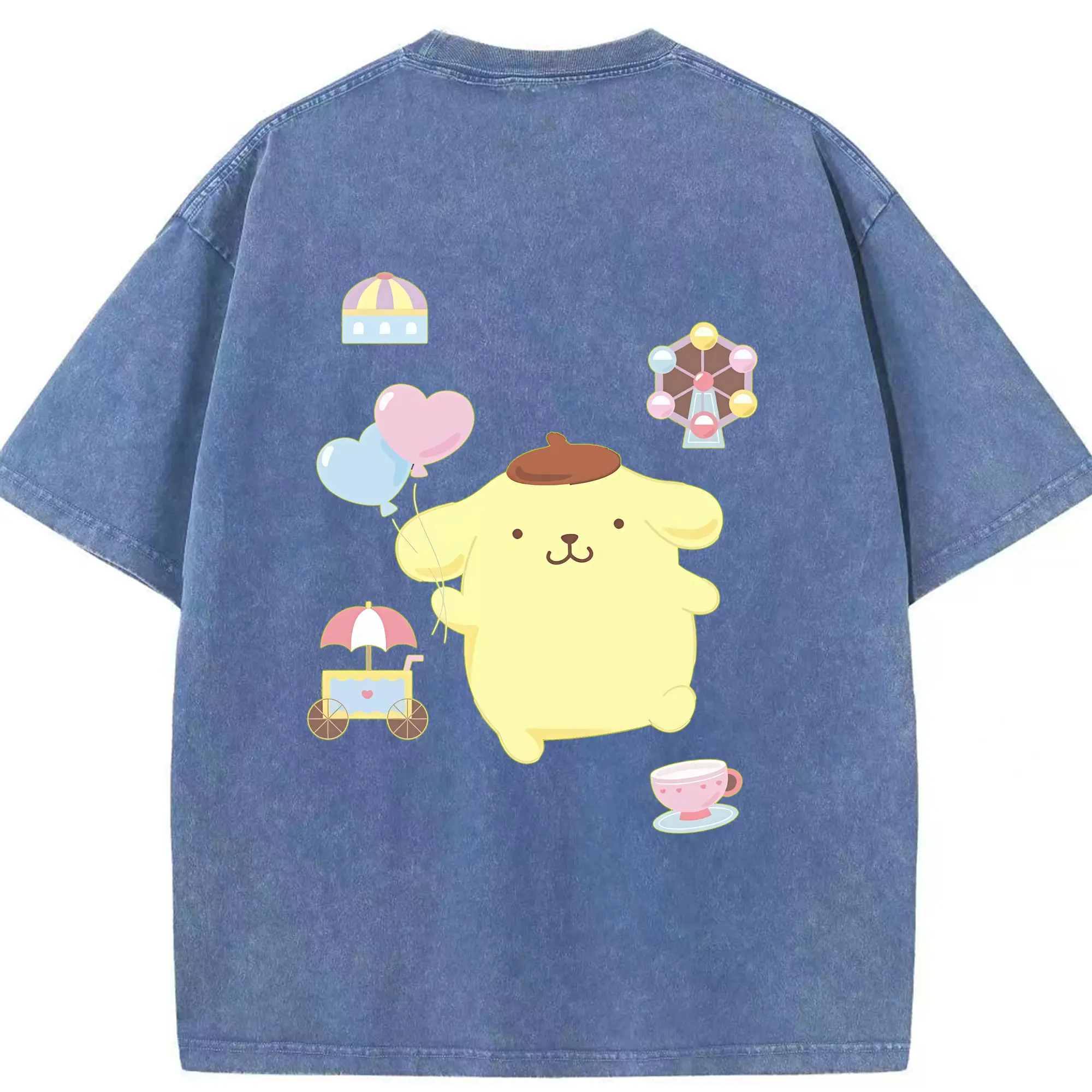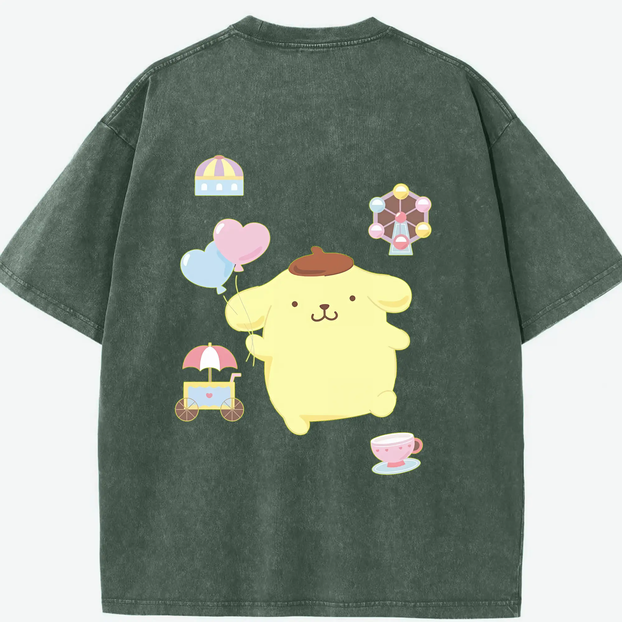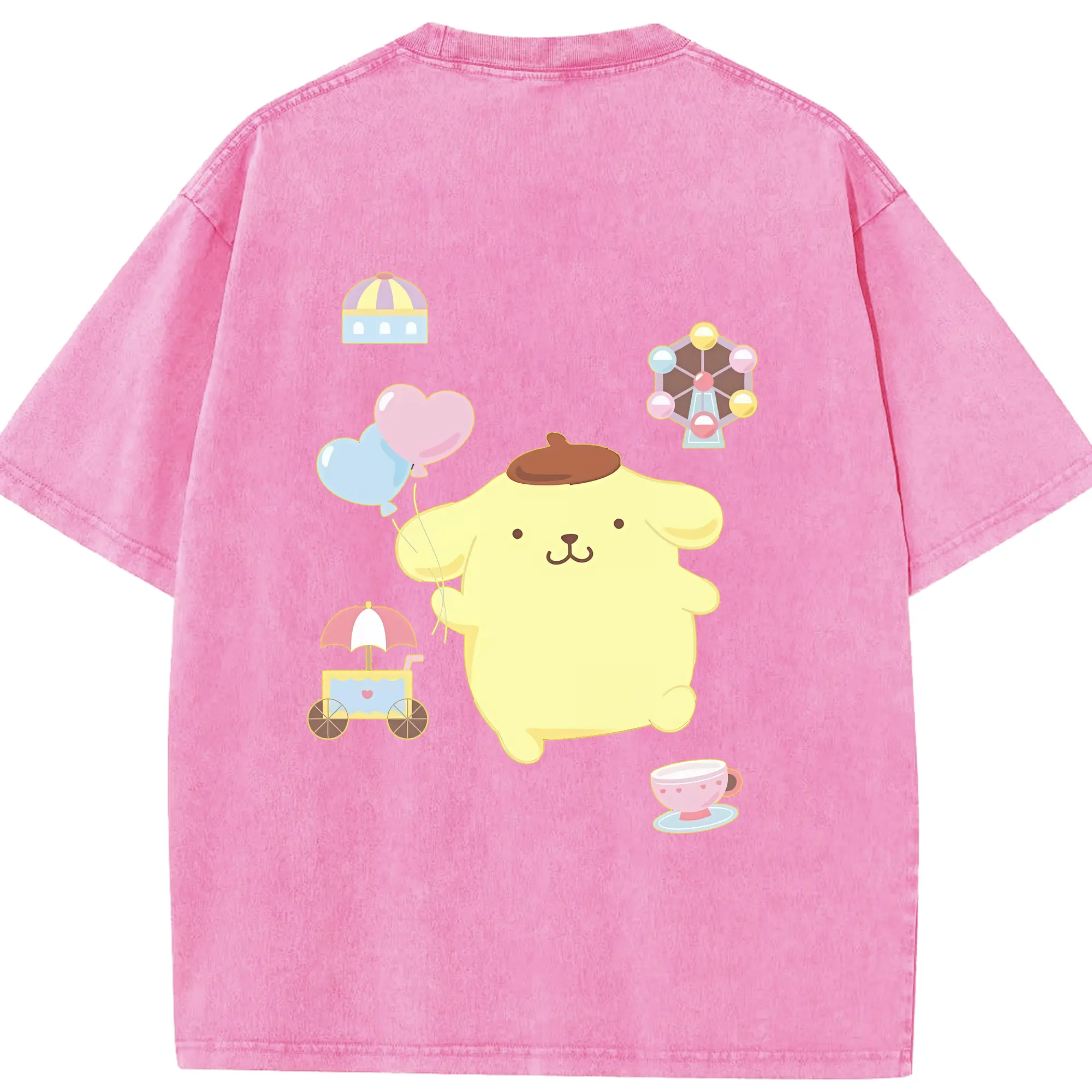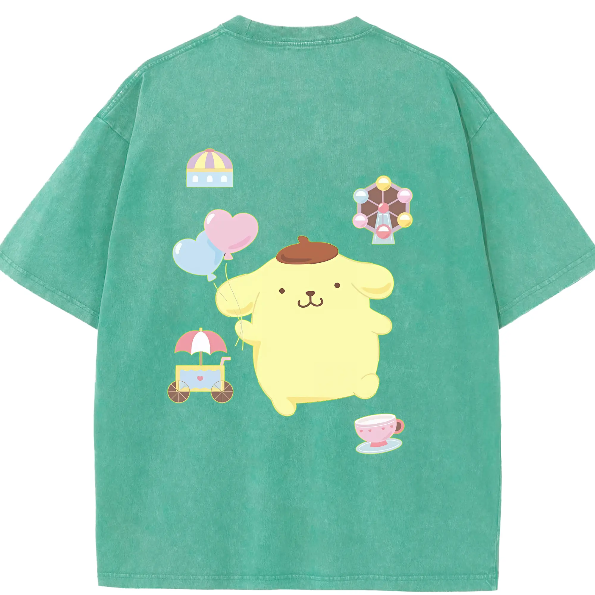 サンリオ グッズ,ポムポムプリン - 綿100% ヴィンテージ風 半袖Tシャツ ・ フロントプリント ・ 柔らか肌触り ・ 通気性 快適 ・ スポーツ カジュアル 外出用