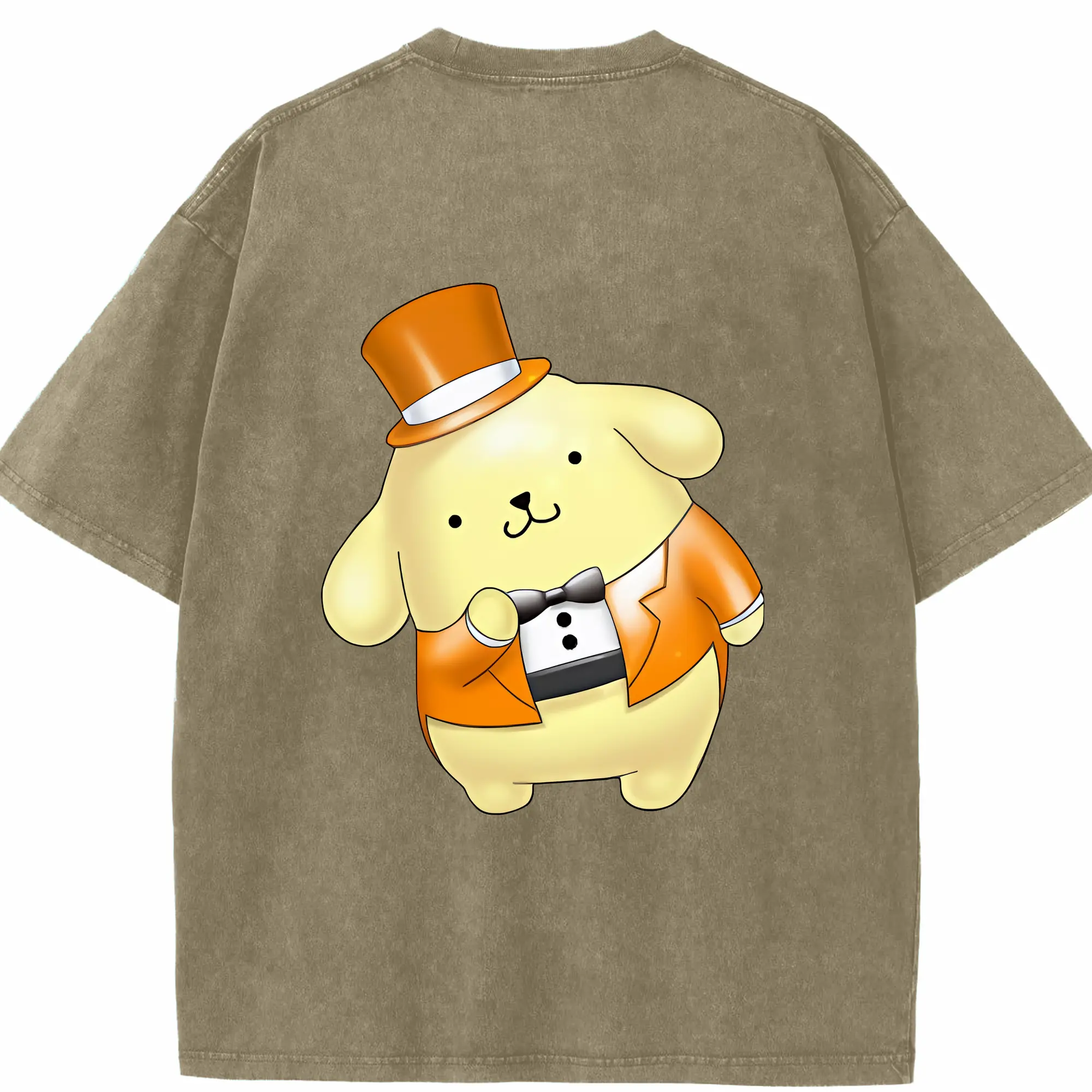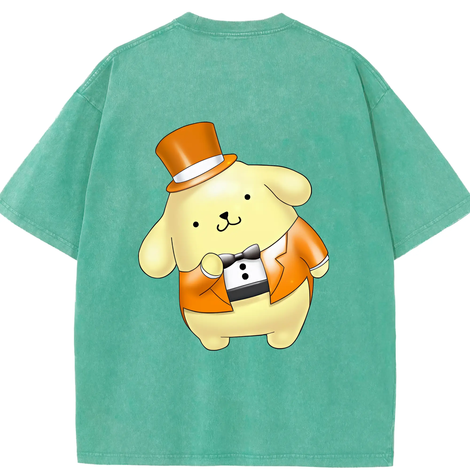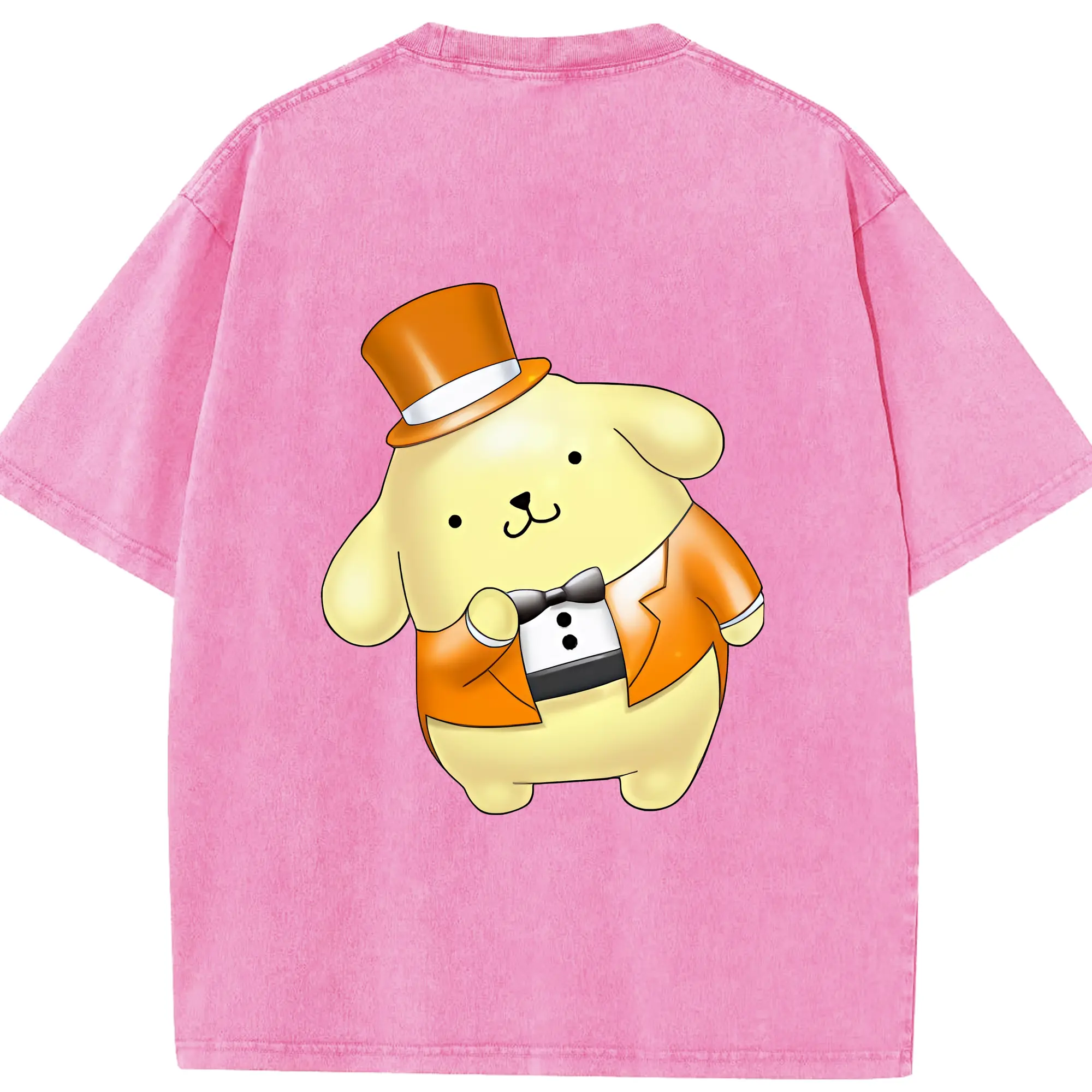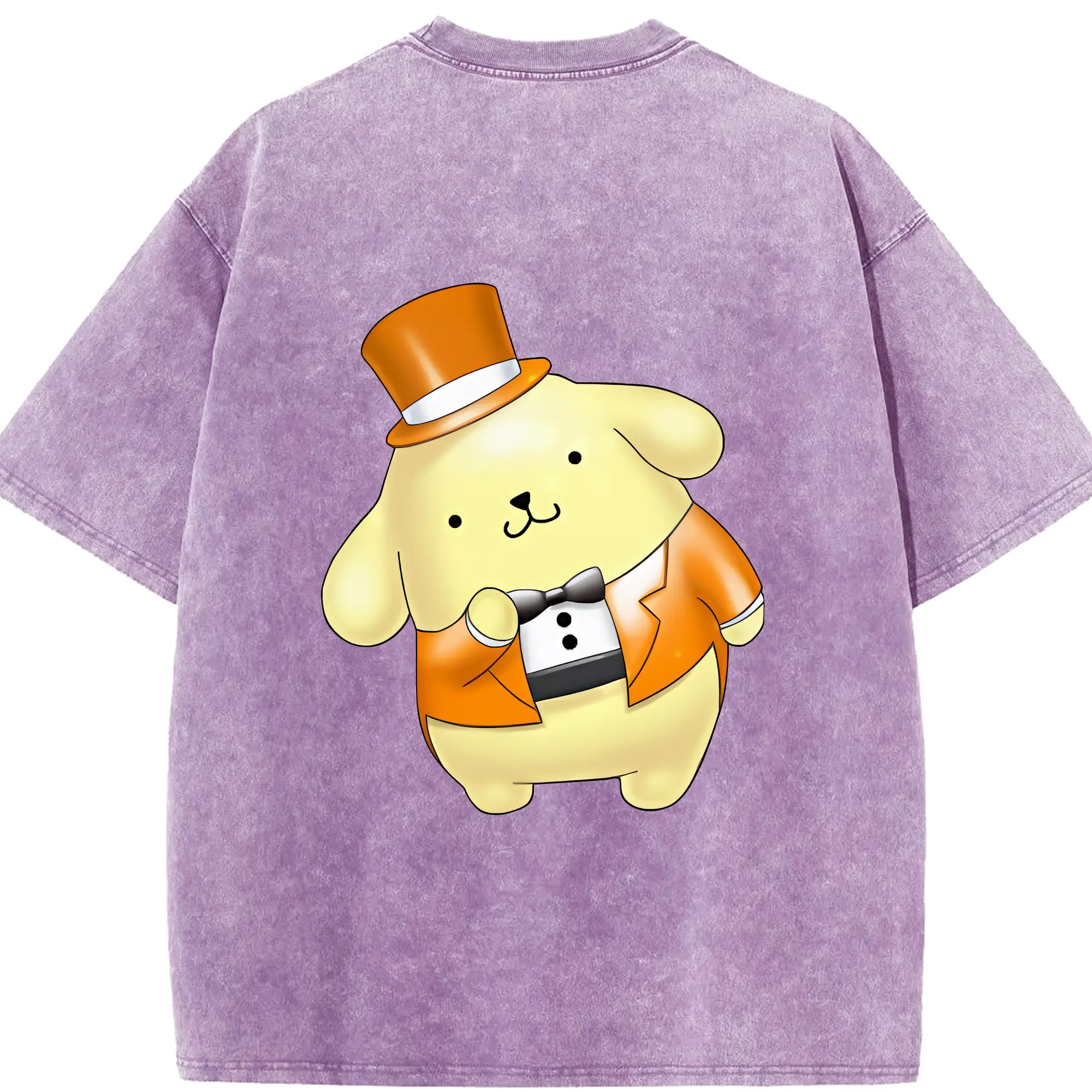 サンリオ グッズ,ポムポムプリン - 綿100% ヴィンテージ風 半袖Tシャツ ・ フロントプリント ・ 柔らか肌触り ・ 通気性 快適 ・ スポーツ カジュアル 外出用