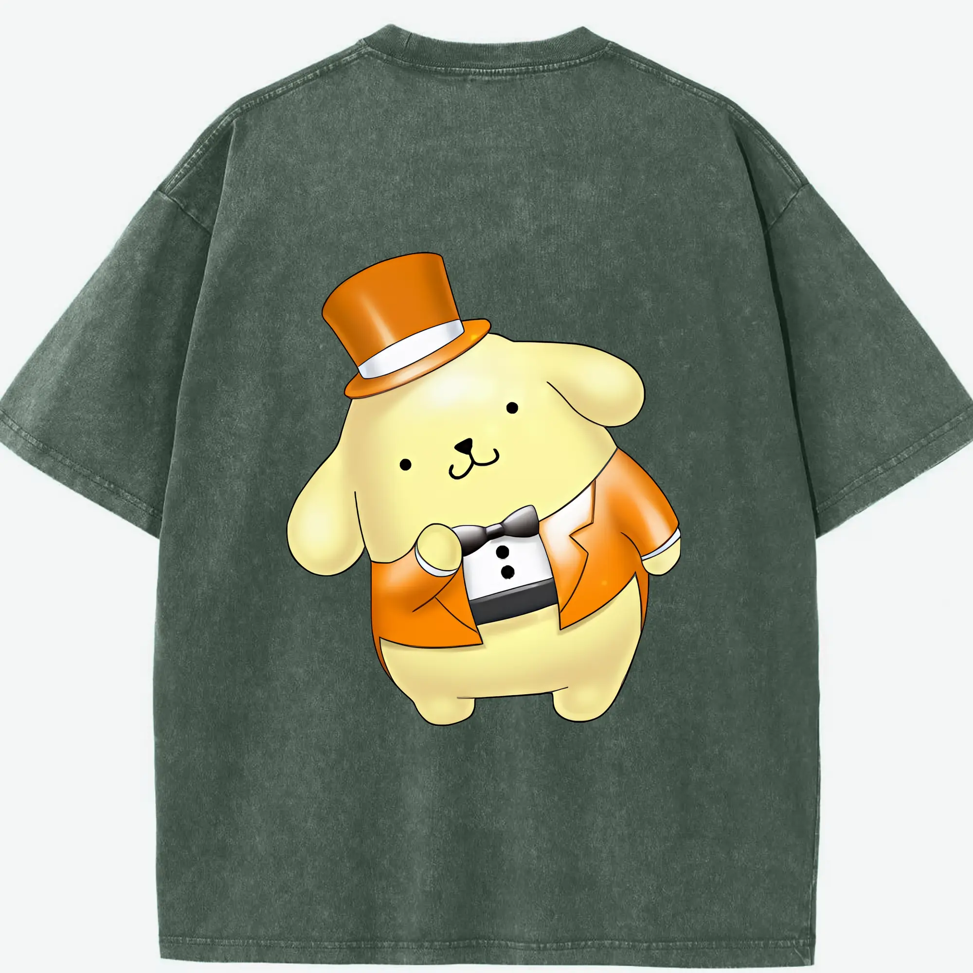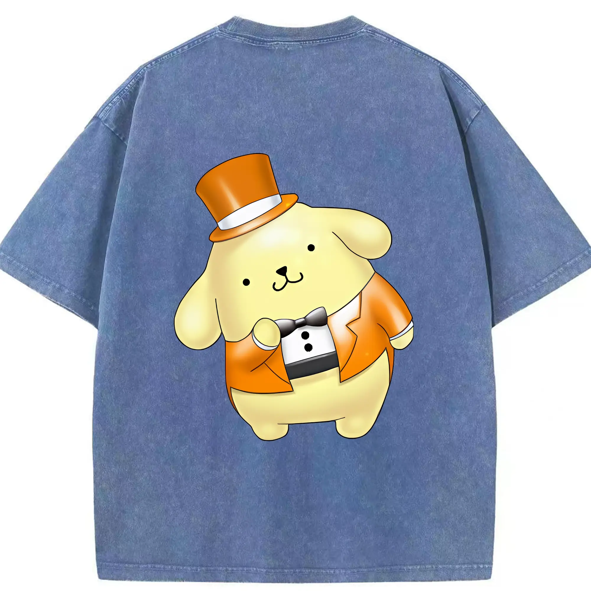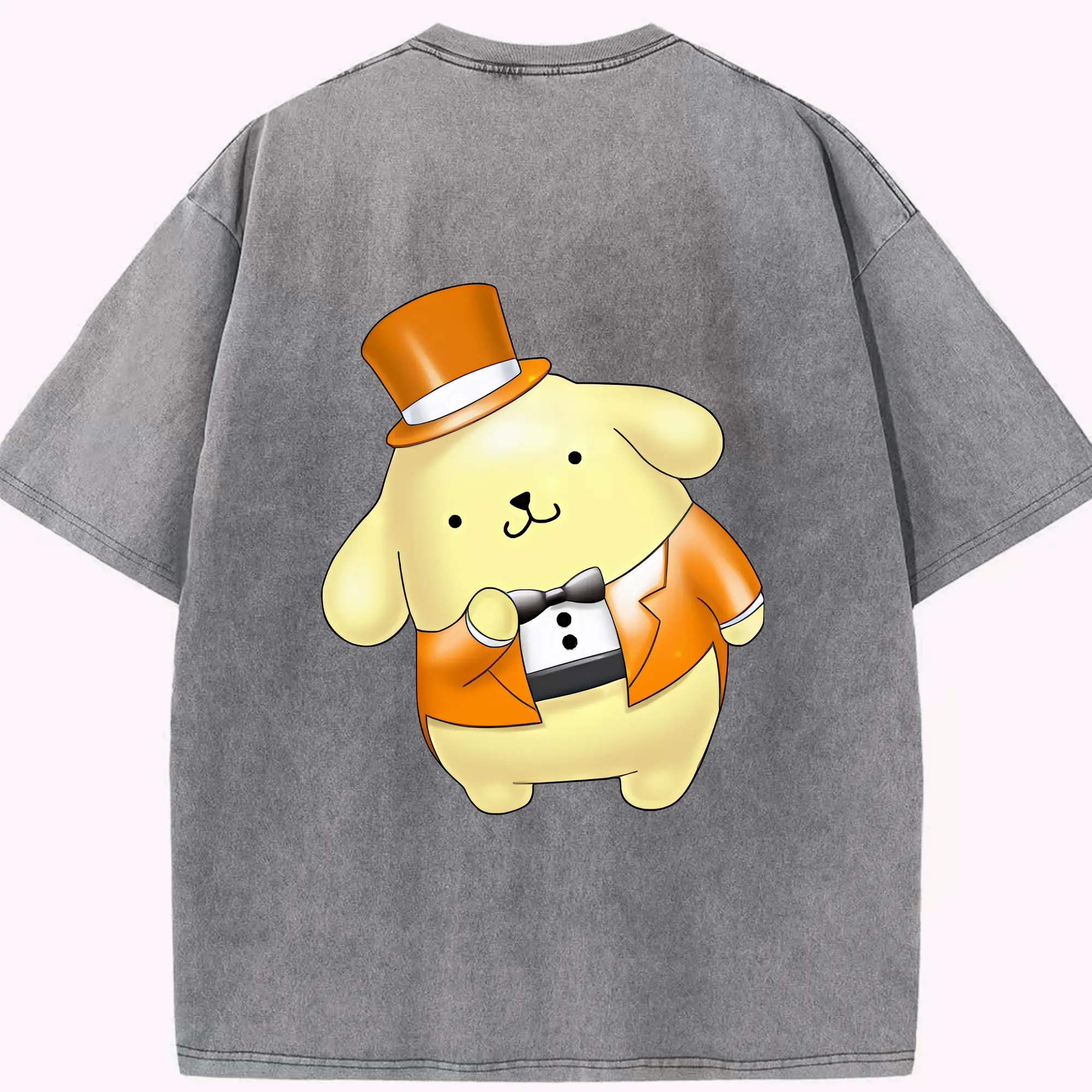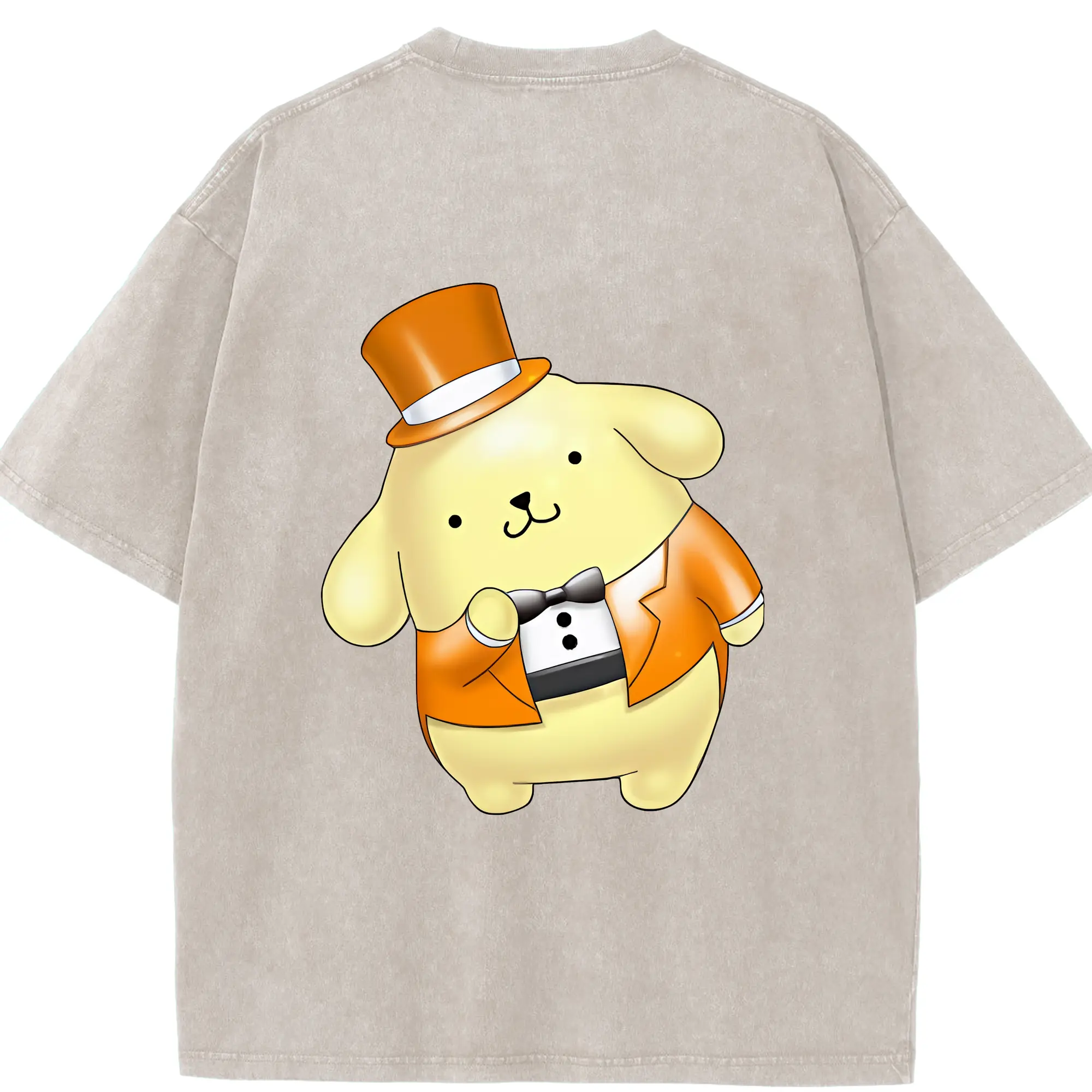 サンリオ グッズ,ポムポムプリン - 綿100% ヴィンテージ風 半袖Tシャツ ・ フロントプリント ・ 柔らか肌触り ・ 通気性 快適 ・ スポーツ カジュアル 外出用