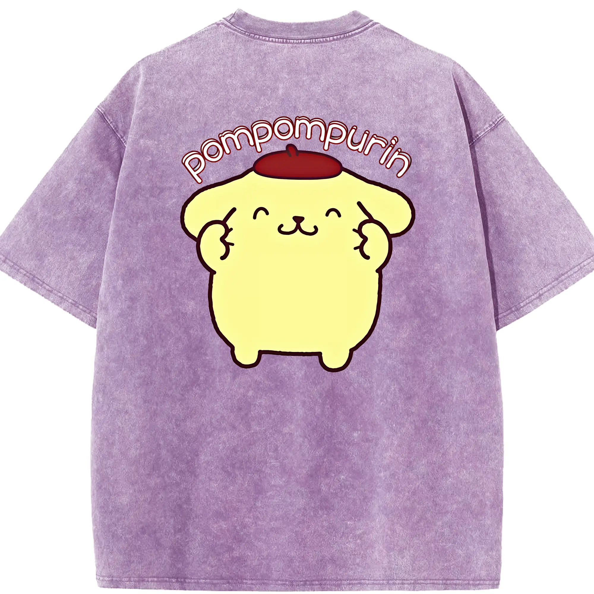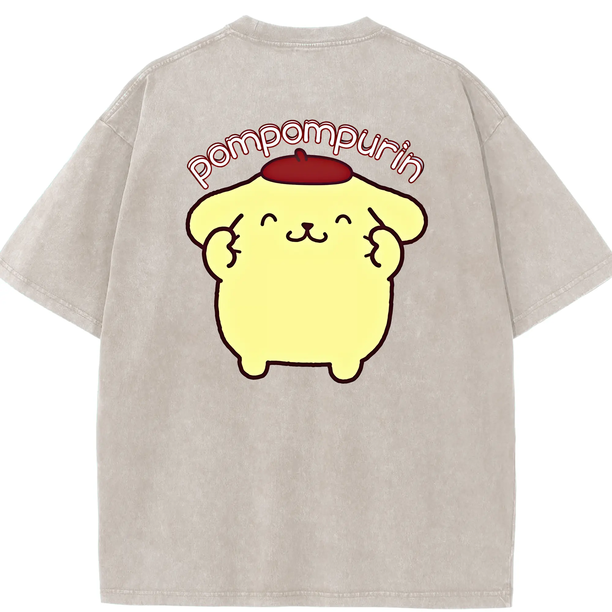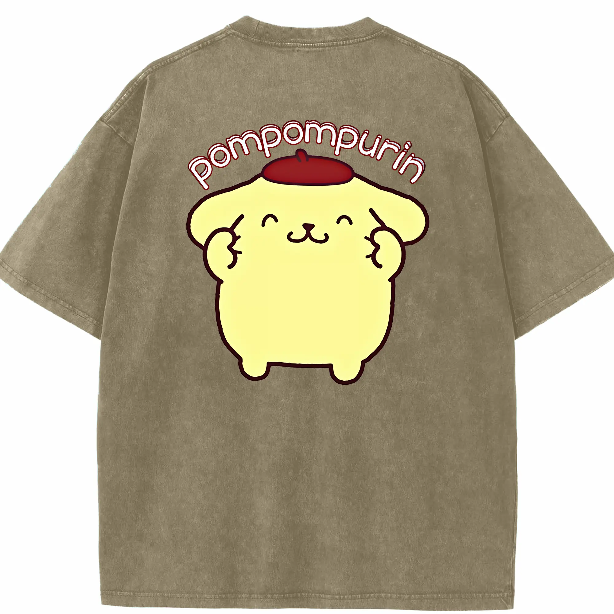 サンリオ グッズ,ポムポムプリン - 綿100% ヴィンテージ風 半袖Tシャツ ・ フロントプリント ・ 柔らか肌触り ・ 通気性 快適 ・ スポーツ カジュアル 外出用