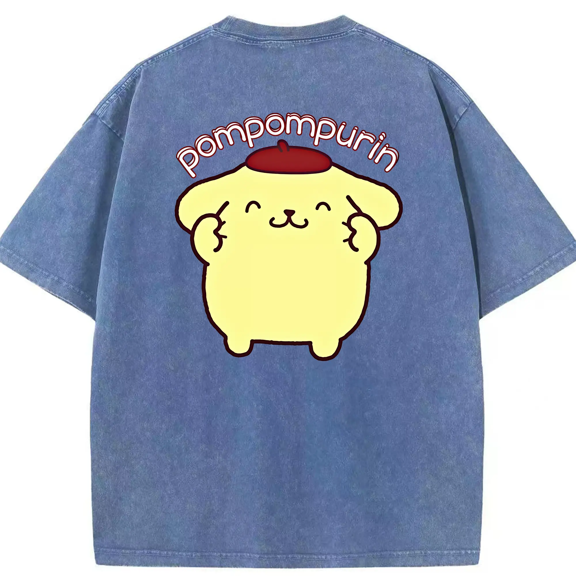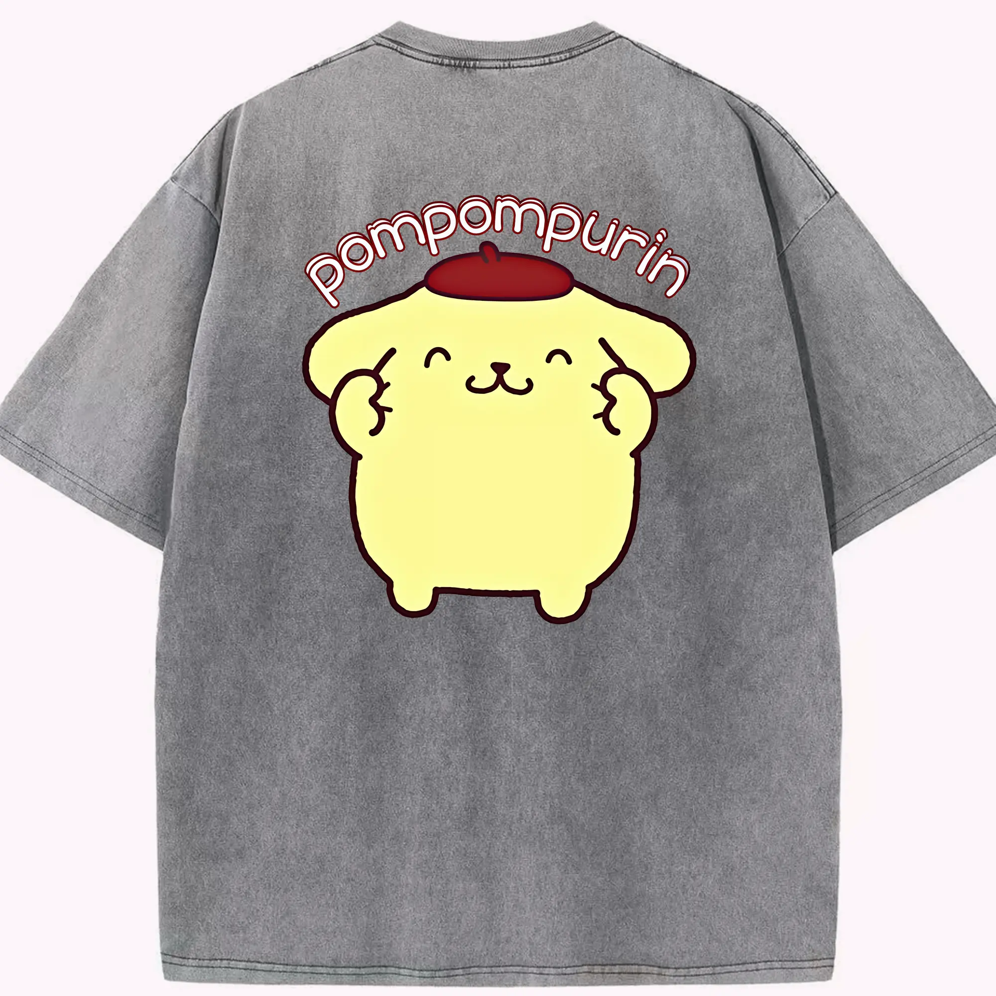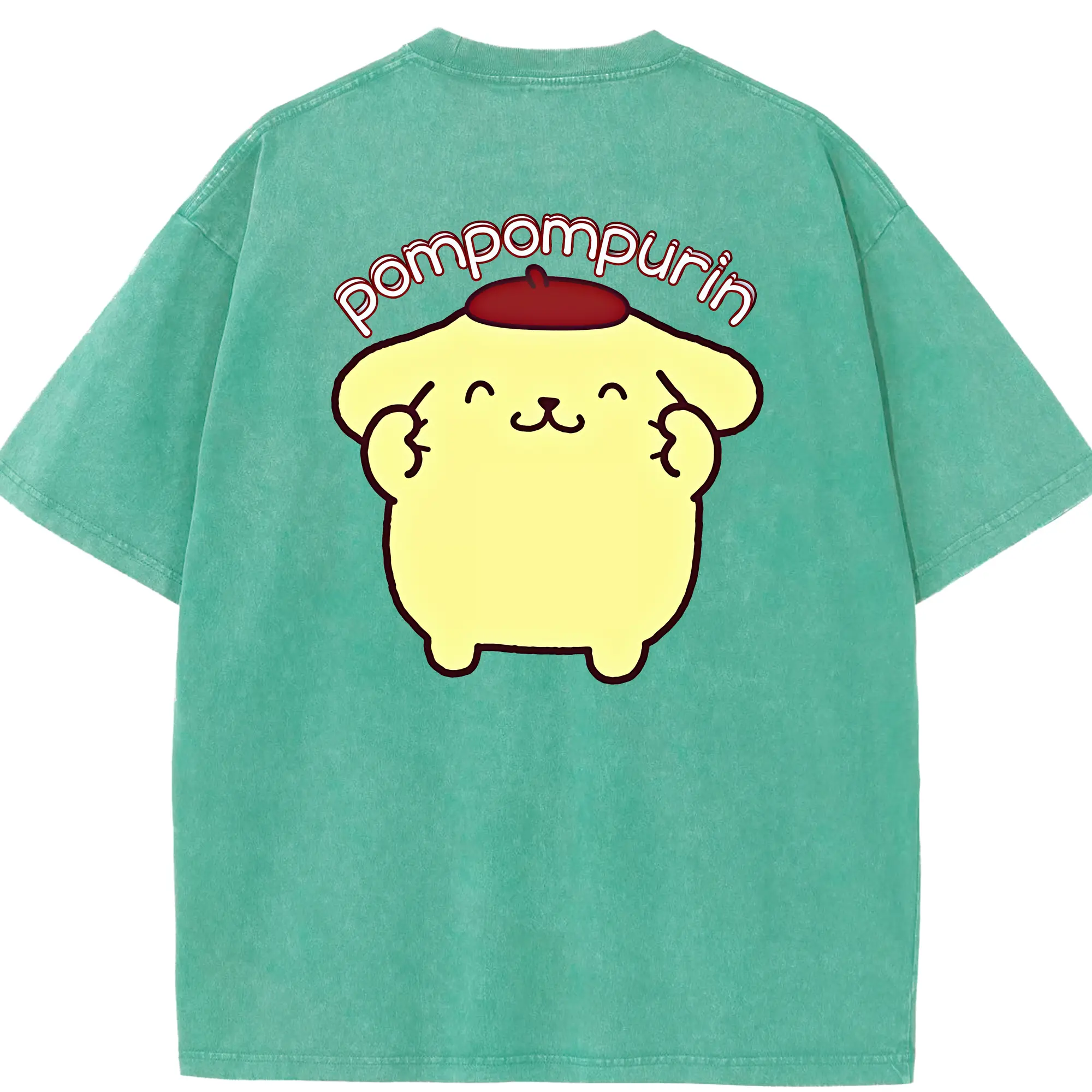 サンリオ グッズ,ポムポムプリン - 綿100% ヴィンテージ風 半袖Tシャツ ・ フロントプリント ・ 柔らか肌触り ・ 通気性 快適 ・ スポーツ カジュアル 外出用