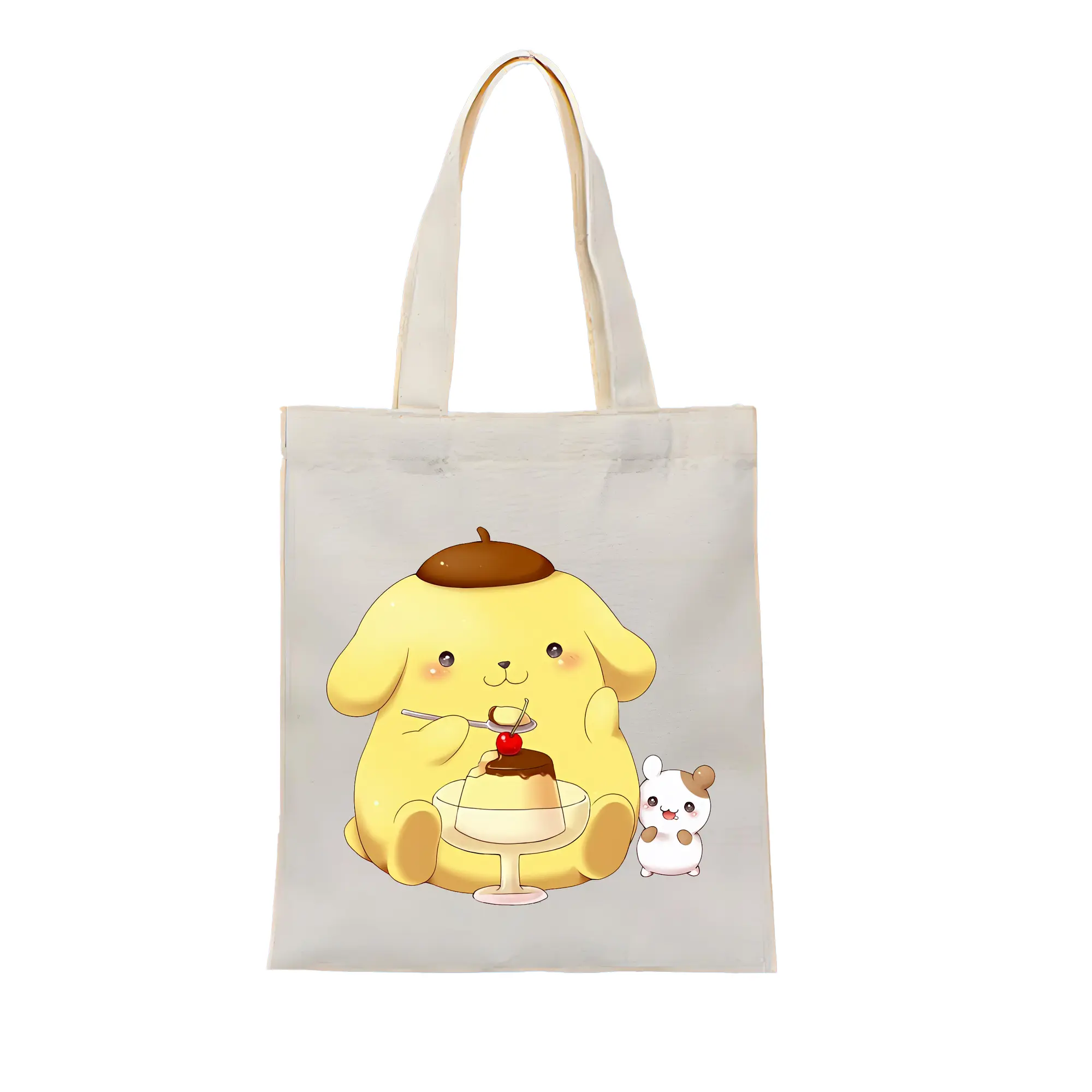 サンリオ グッズ,ポムポムプリン - 縦型キャンバス手提げバッグ(トートバッグ) ・ キャンバス素材 ・ ショッピング用 ・ 軽量 丈夫 お手入れ簡単
