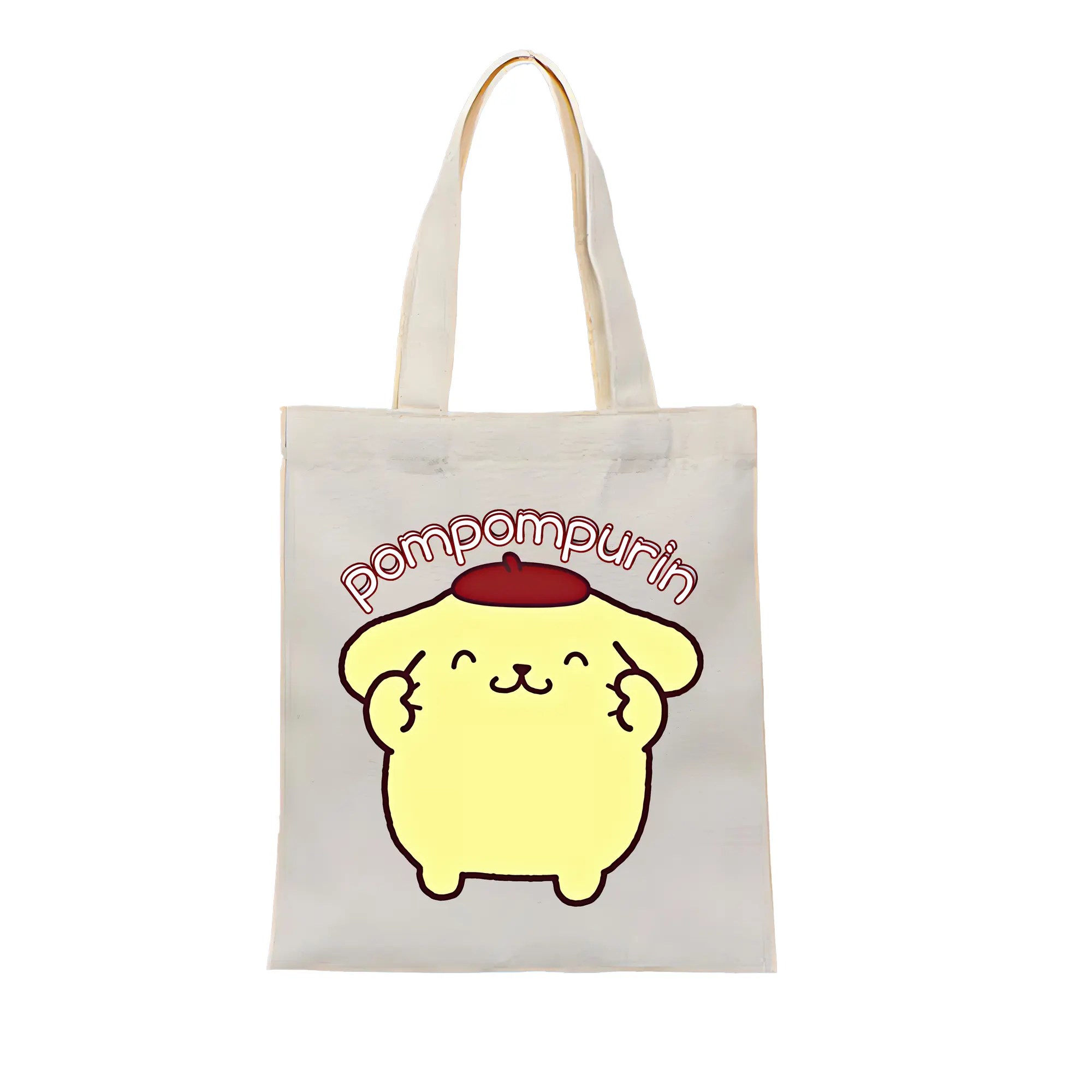 サンリオ グッズ,ポムポムプリン - 縦型キャンバス手提げバッグ(トートバッグ) ・ キャンバス素材 ・ ショッピング用 ・ 軽量 丈夫 お手入れ簡単