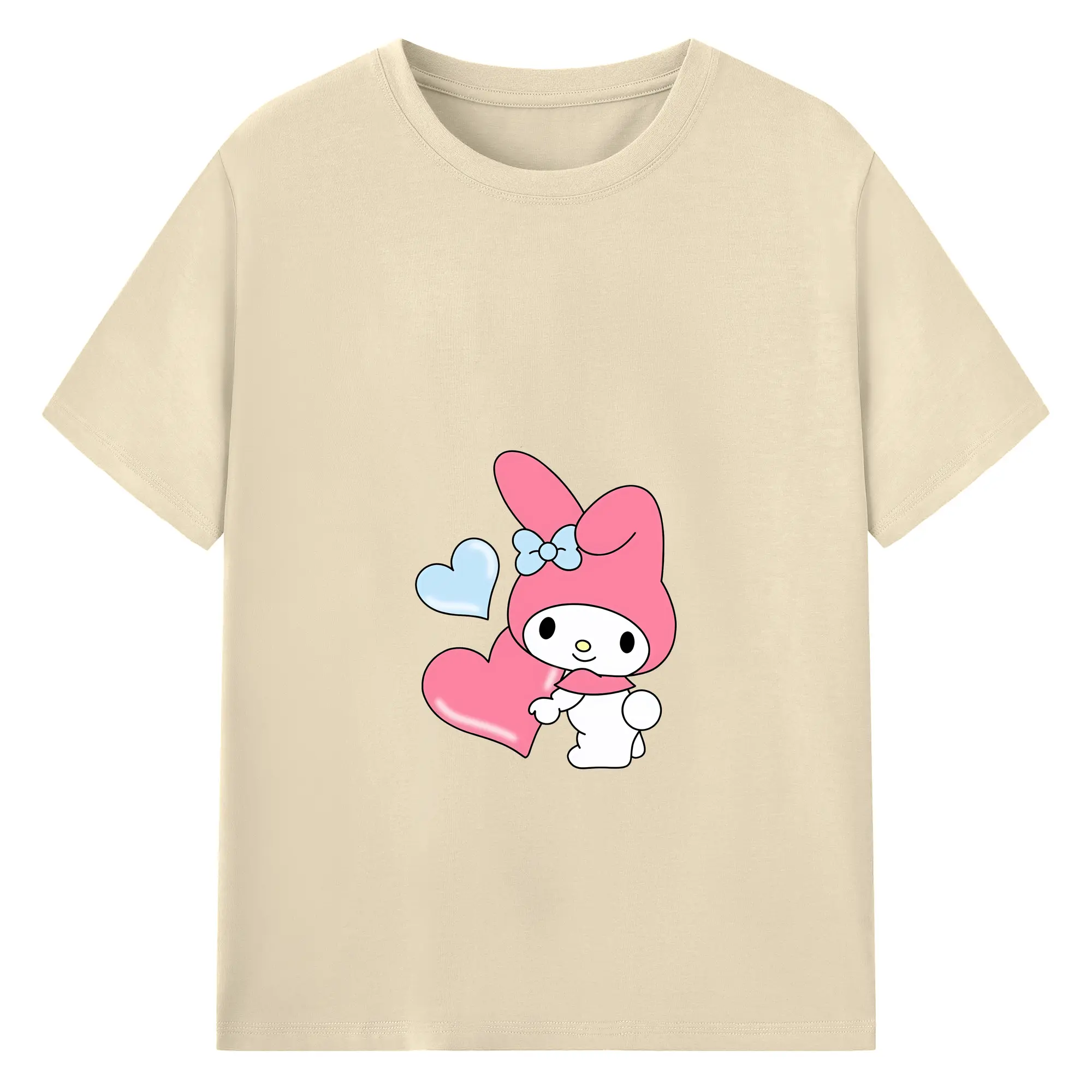 サンリオ グッズ,マイメロディ - 綿100% ヴィンテージ風 半袖Tシャツ ・ 背面プリント ・ 柔らか肌触り ・ 通気性 快適 ・ スポーツ カジュアル 外出用