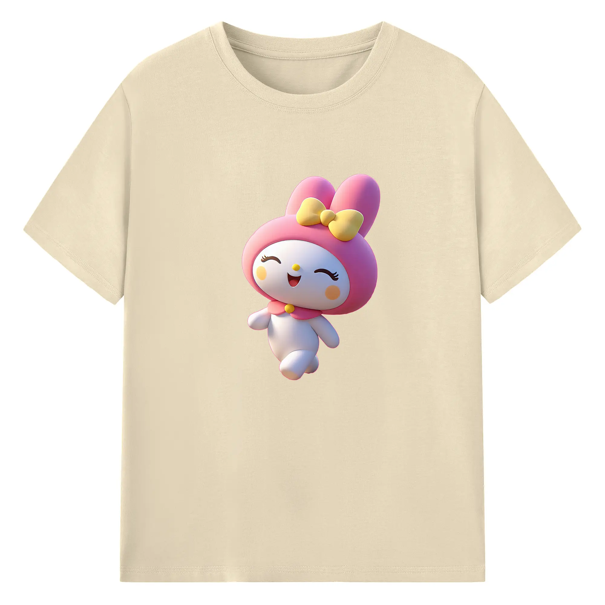 サンリオ グッズ,マイメロディ - 綿100% ヴィンテージ風 半袖Tシャツ ・ 背面プリント ・ 柔らか肌触り ・ 通気性 快適 ・ スポーツ カジュアル 外出用