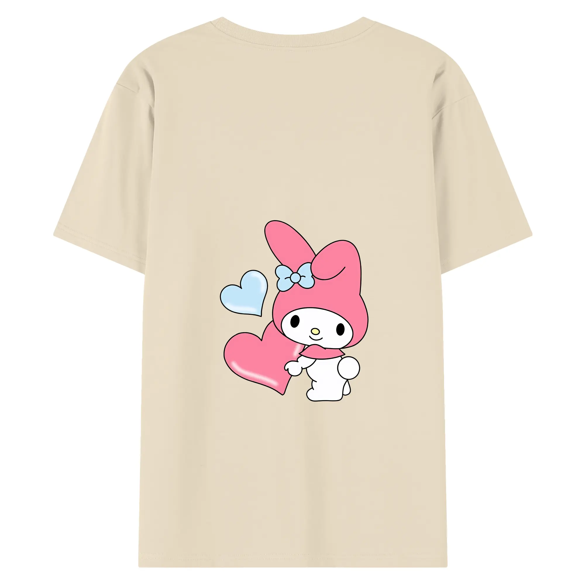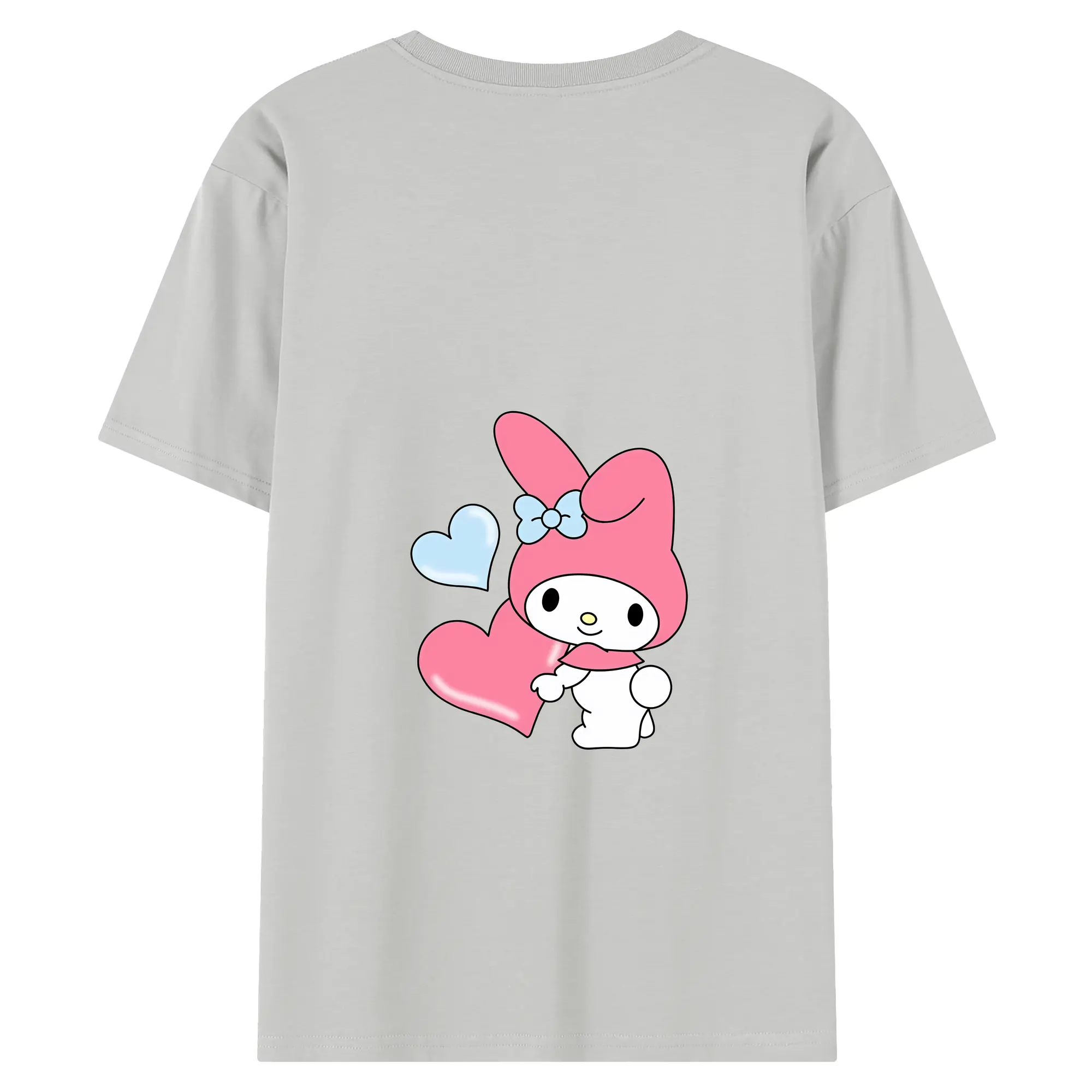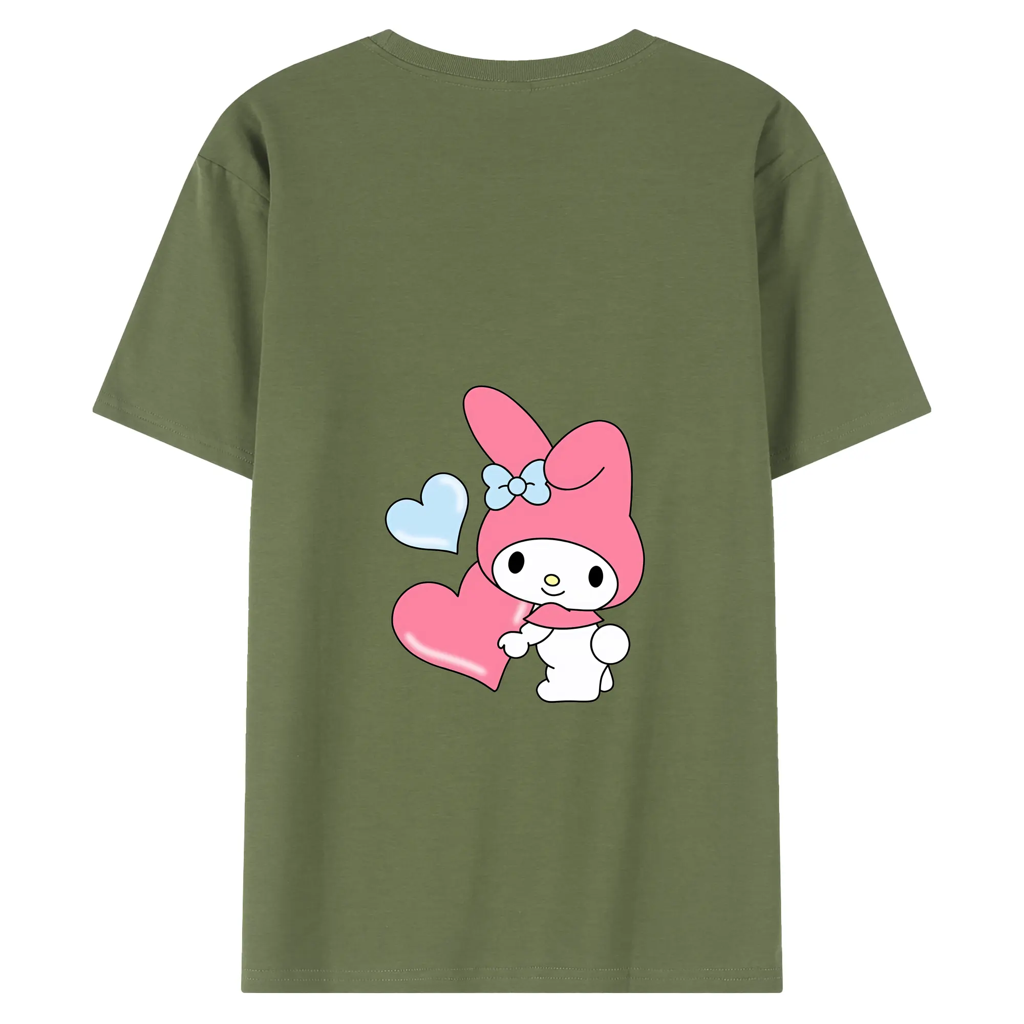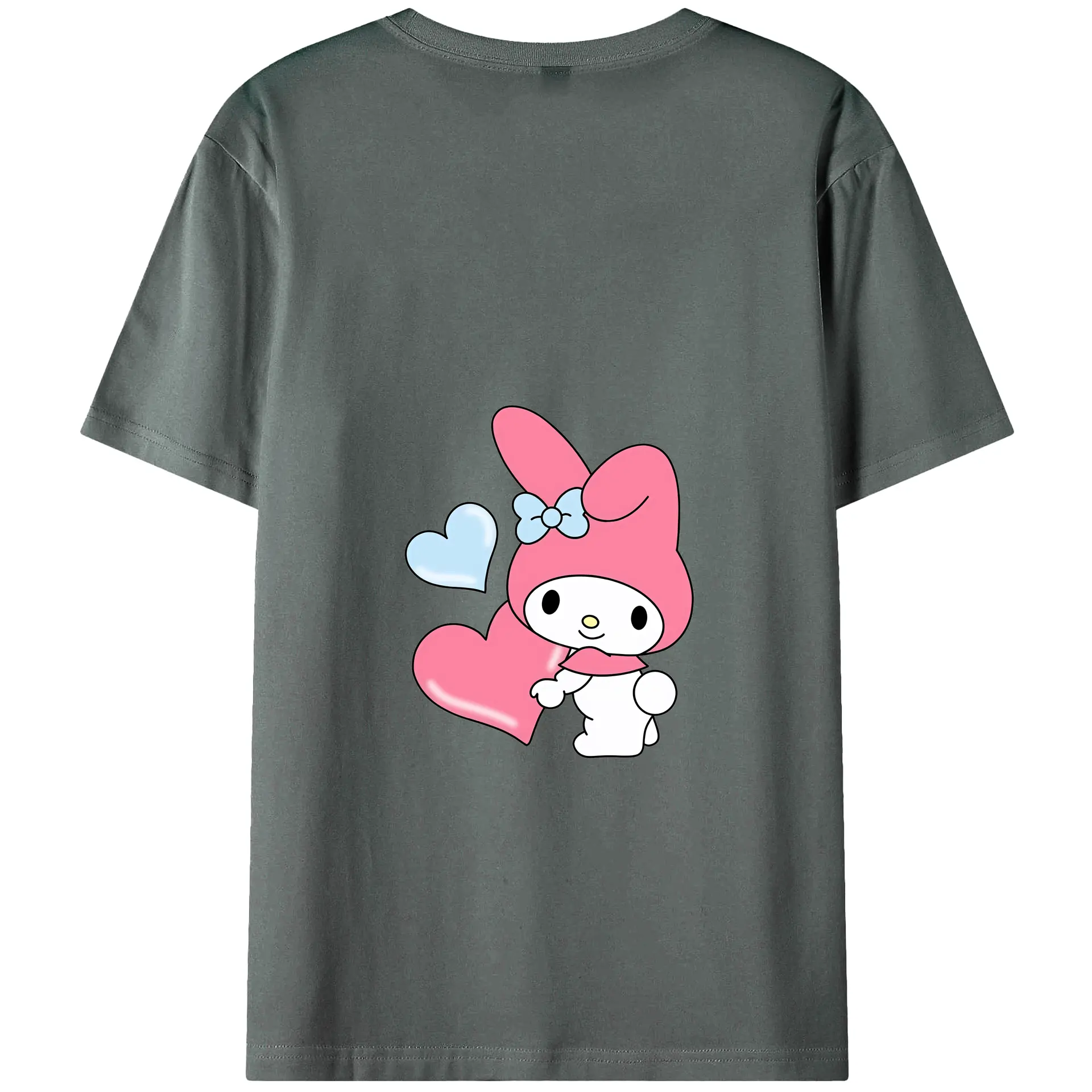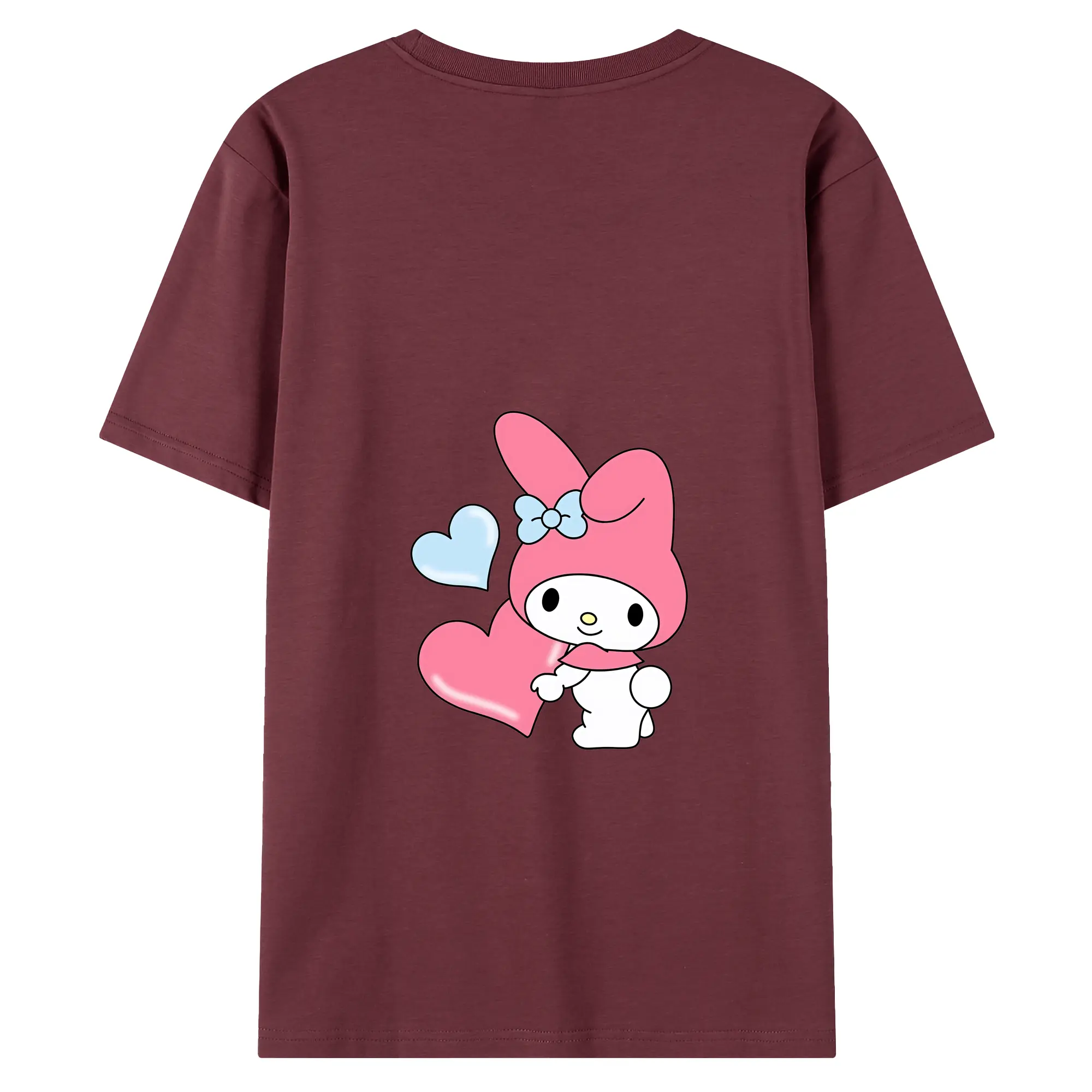 サンリオ グッズ,マイメロディ - 綿100% ヴィンテージ風 半袖Tシャツ ・ 背面プリント ・ 柔らか肌触り ・ 通気性 快適 ・ スポーツ カジュアル 外出用
