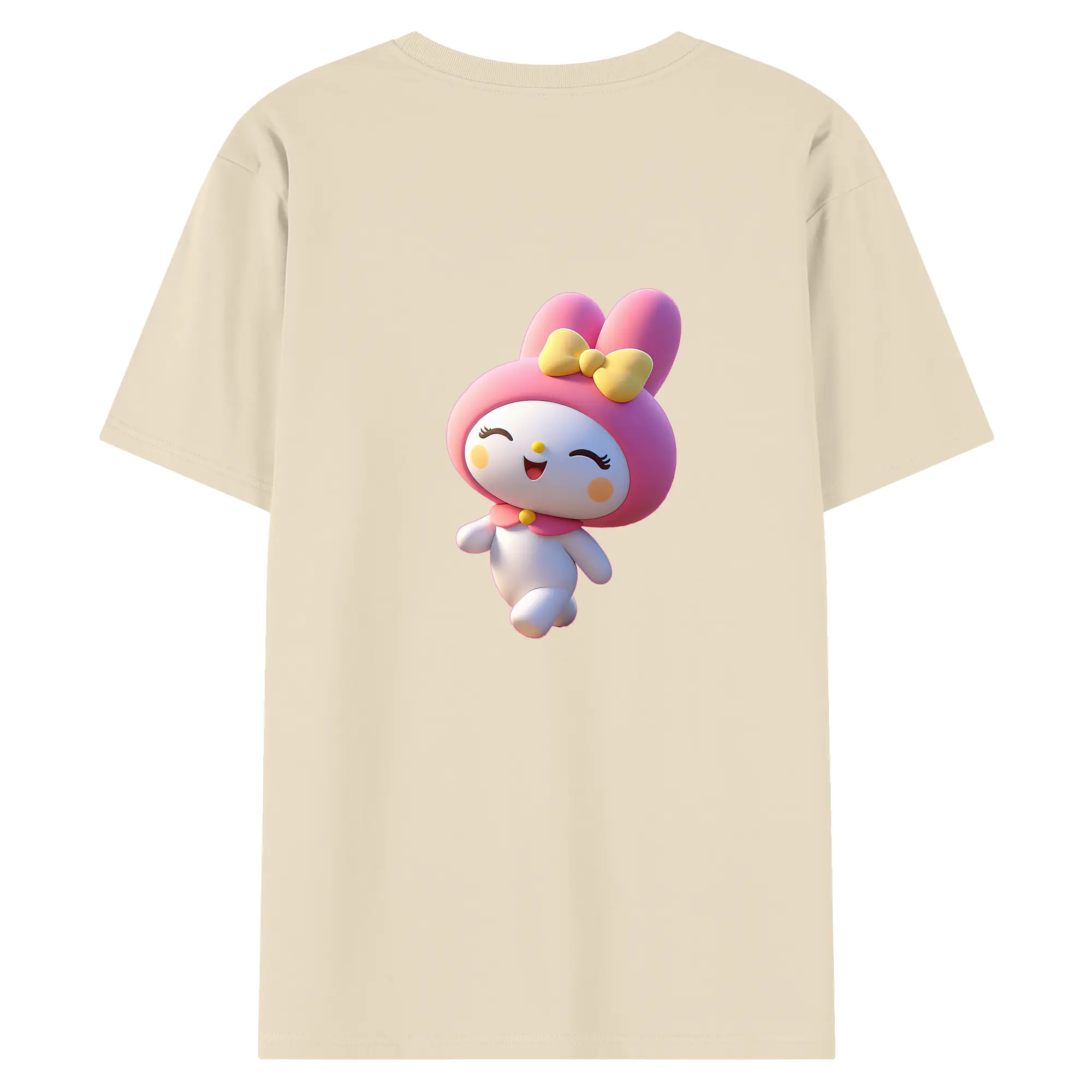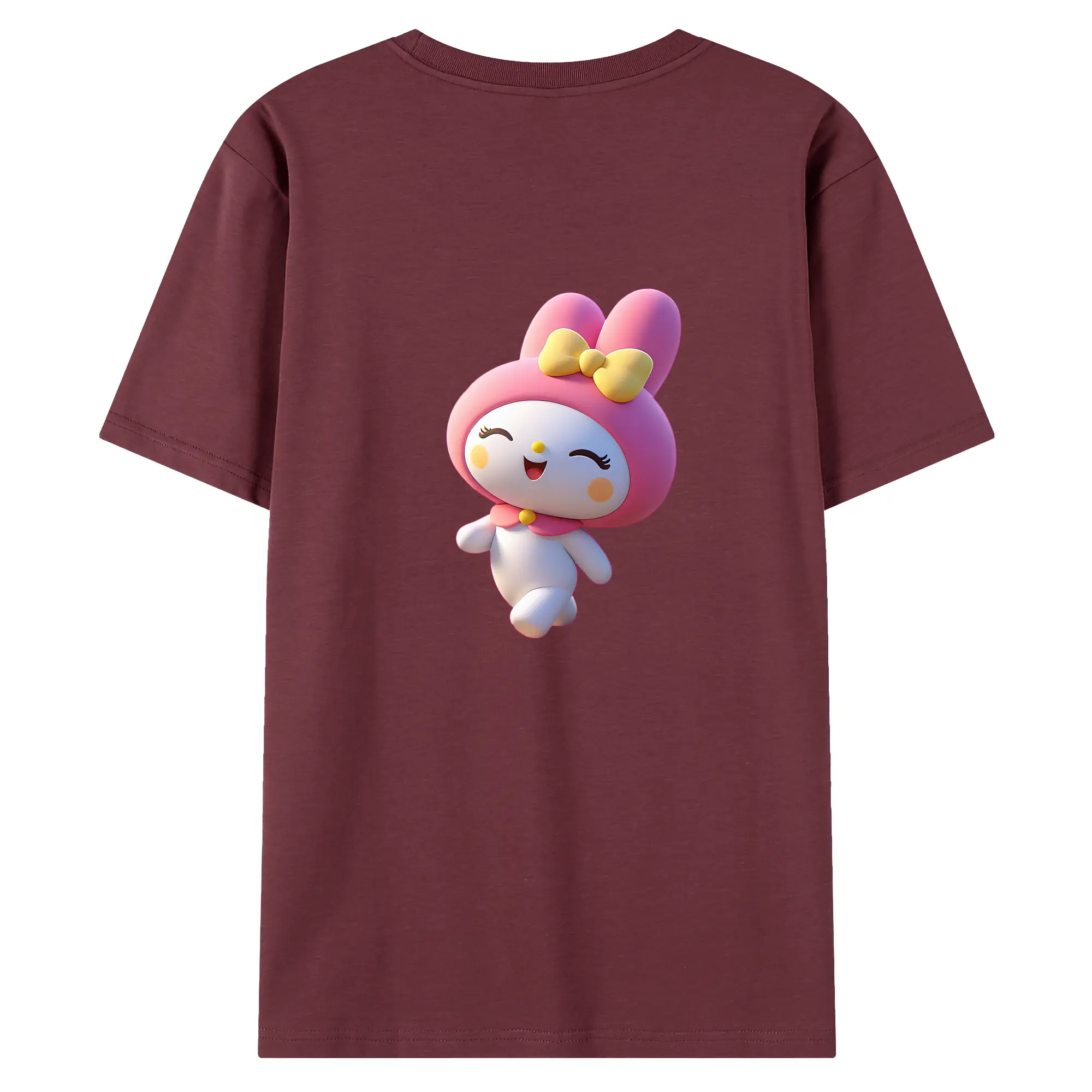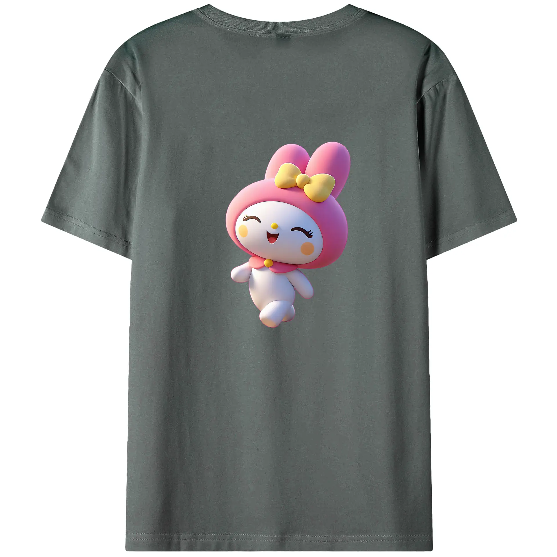 サンリオ グッズ,マイメロディ - 綿100% ヴィンテージ風 半袖Tシャツ ・ 背面プリント ・ 柔らか肌触り ・ 通気性 快適 ・ スポーツ カジュアル 外出用