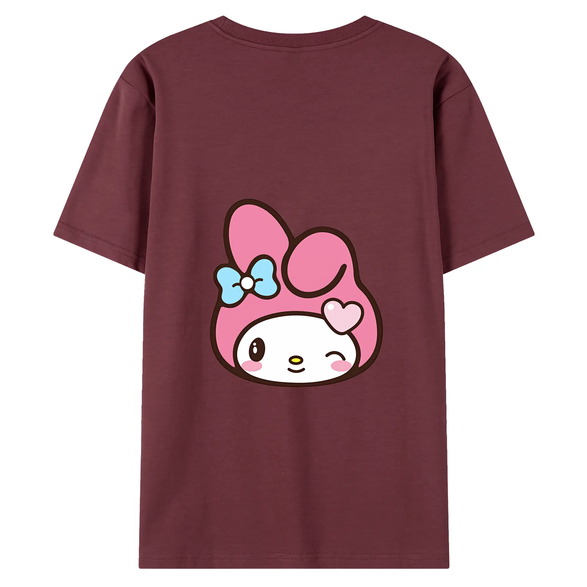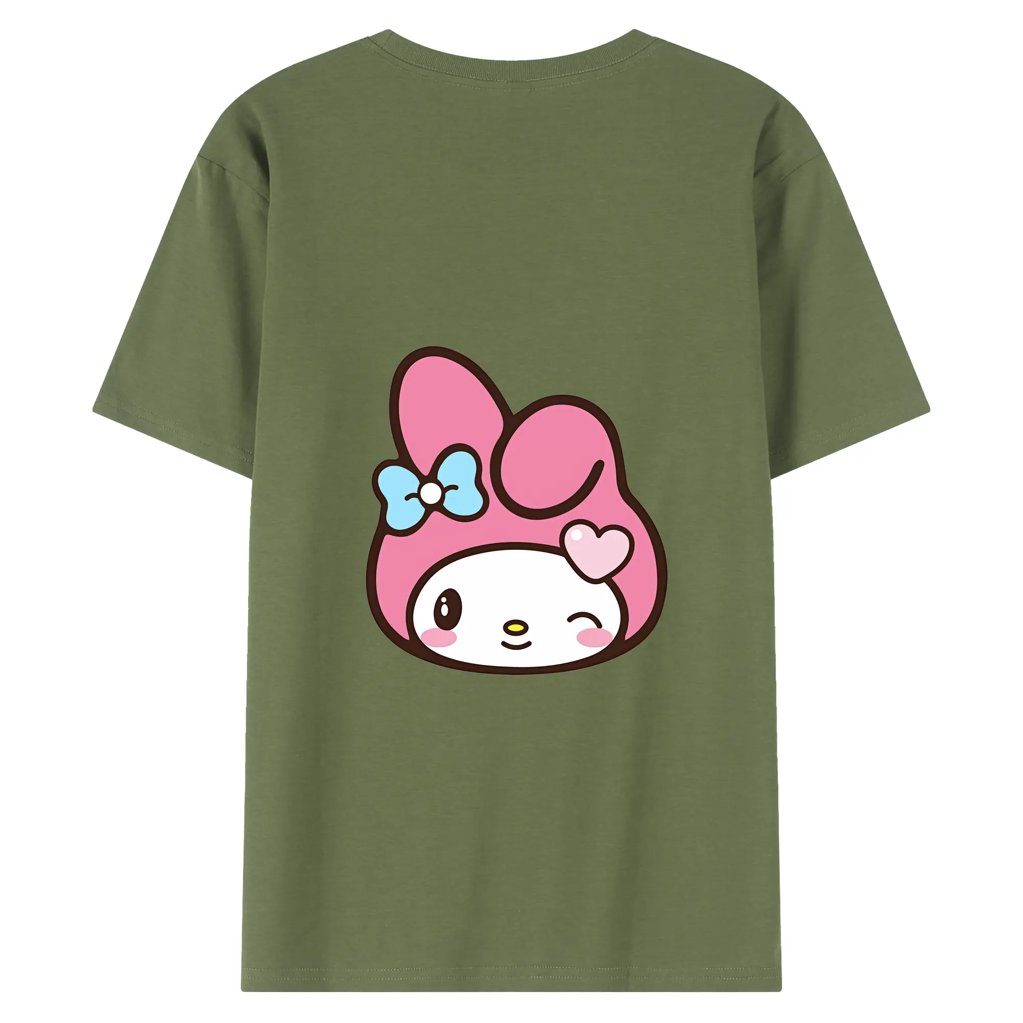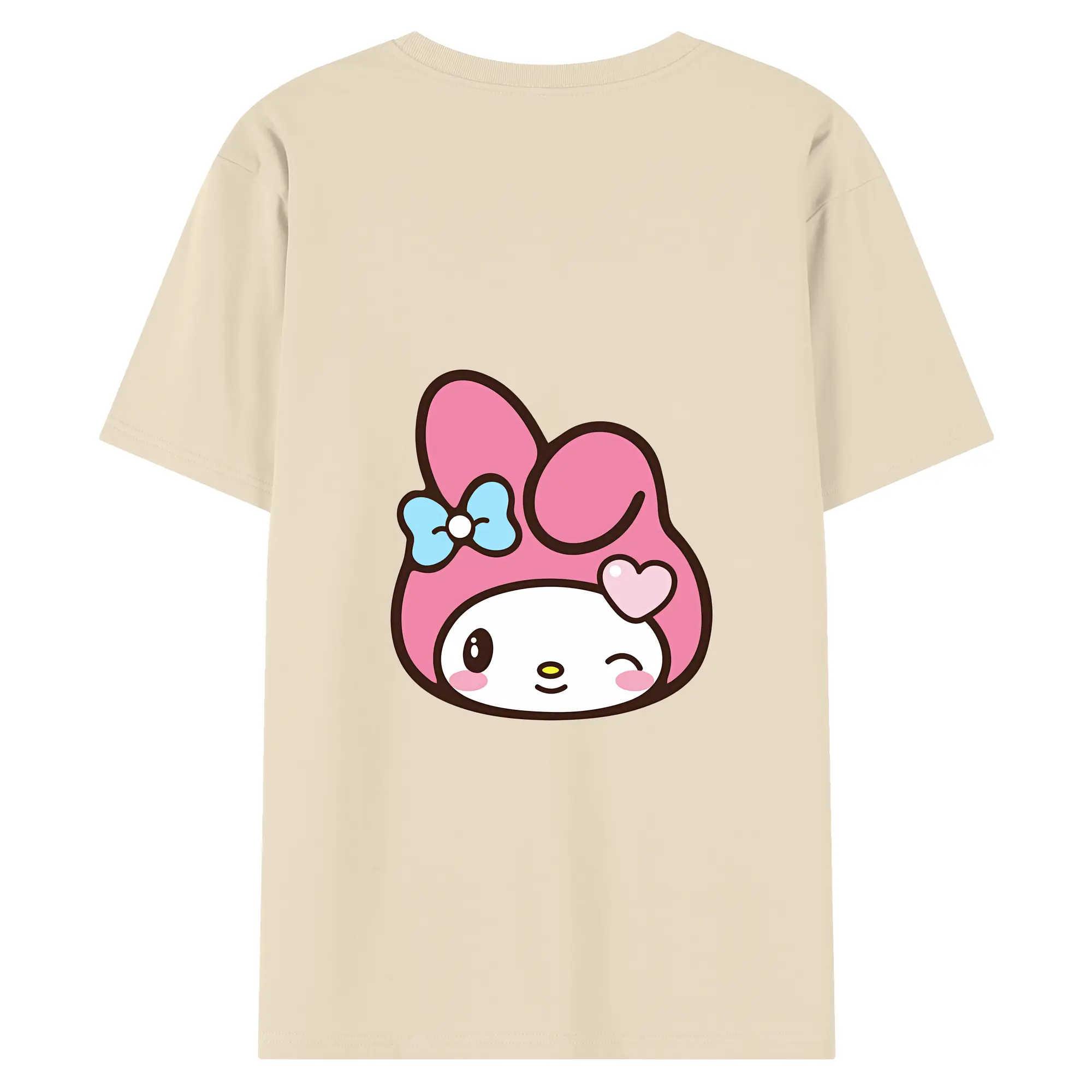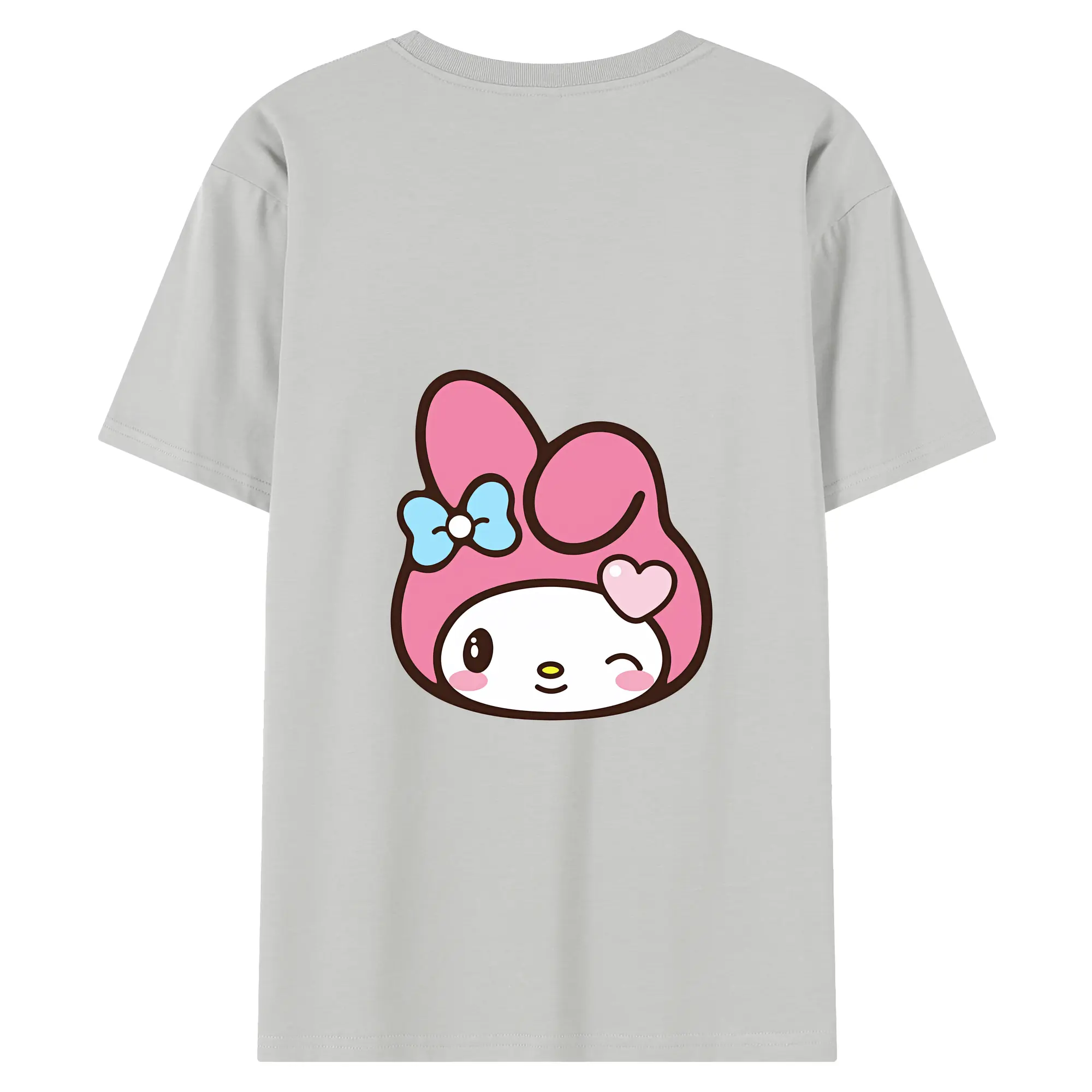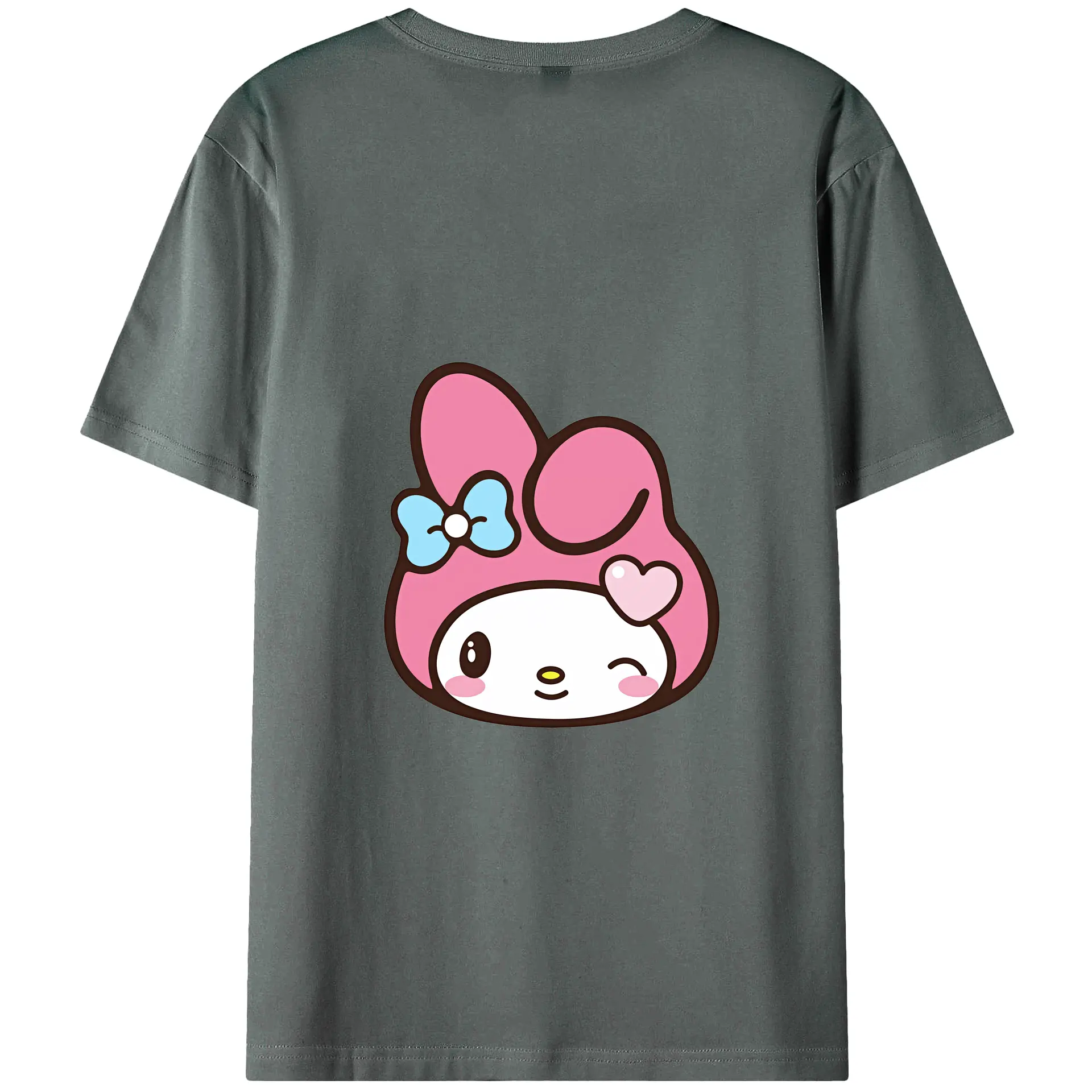 サンリオ グッズ,マイメロディ - 綿100% ヴィンテージ風 半袖Tシャツ ・ 背面プリント ・ 柔らか肌触り ・ 通気性 快適 ・ スポーツ カジュアル 外出用