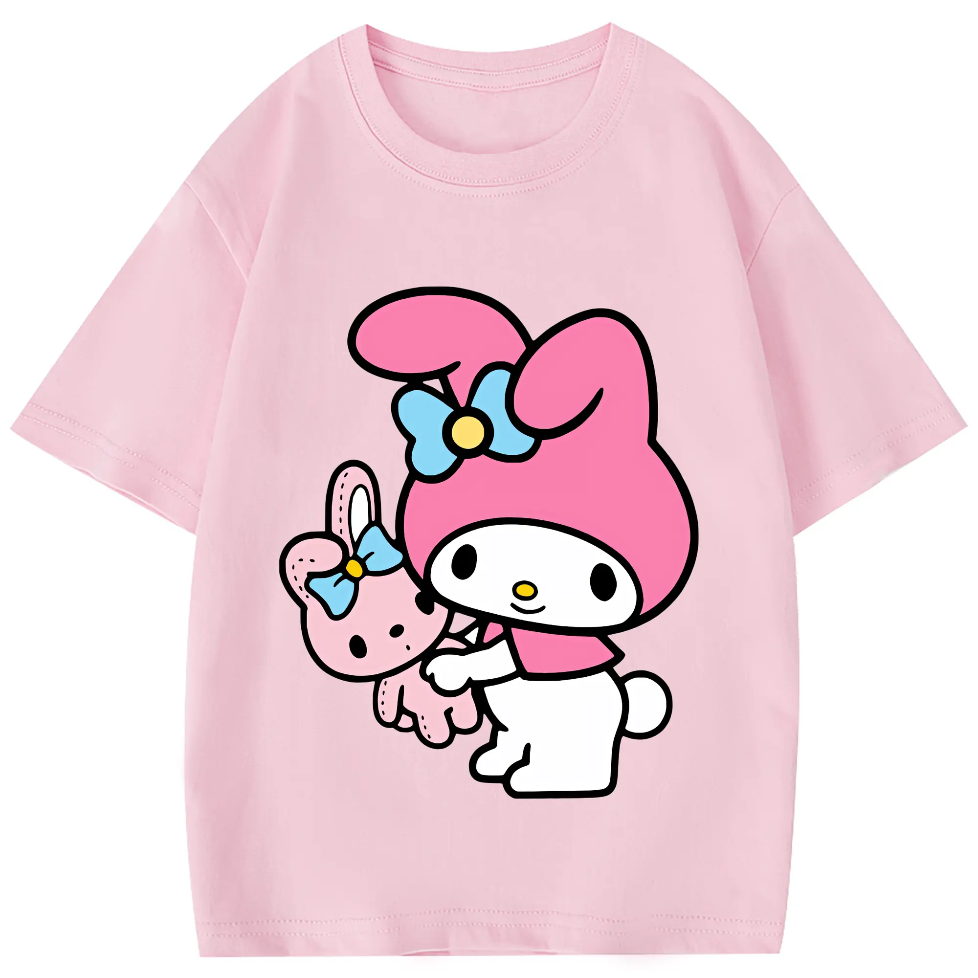 サンリオ グッズ,マイメロディ - 綿100% 半袖Tシャツ ・ フロントプリント ・ 快適 通気性 ・ 日常使い 散歩 スポーツ用