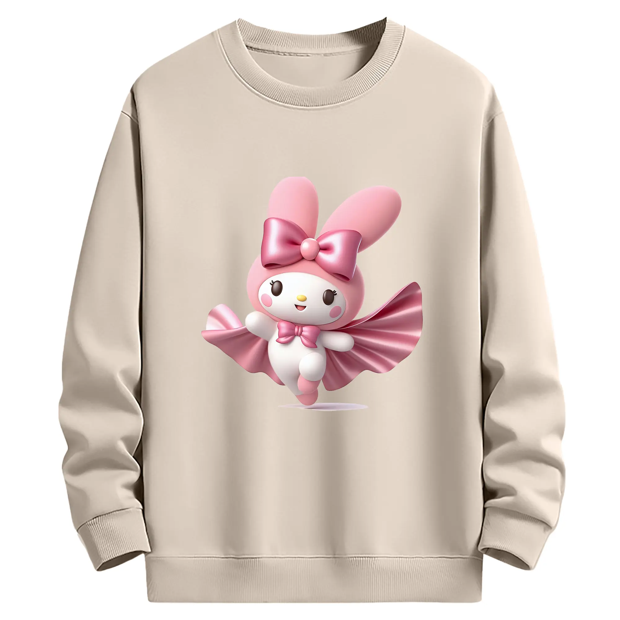 サンリオ グッズ,マイメロディ - 薄手 クルーネック スウェット 裏毛260g · ポリエステル 春秋向け カジュアル 男女兼用 · トレーナー デイリー スポーツ 散歩に最適
