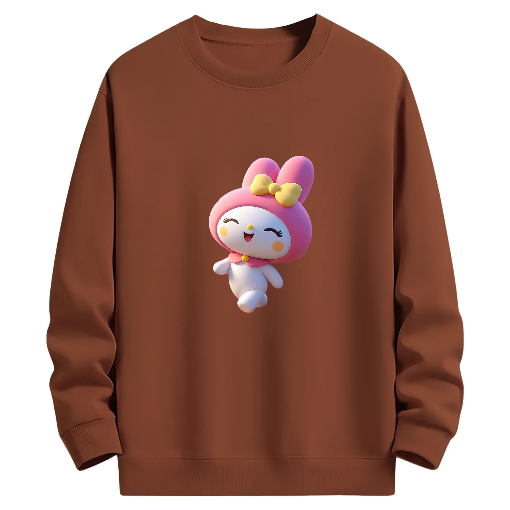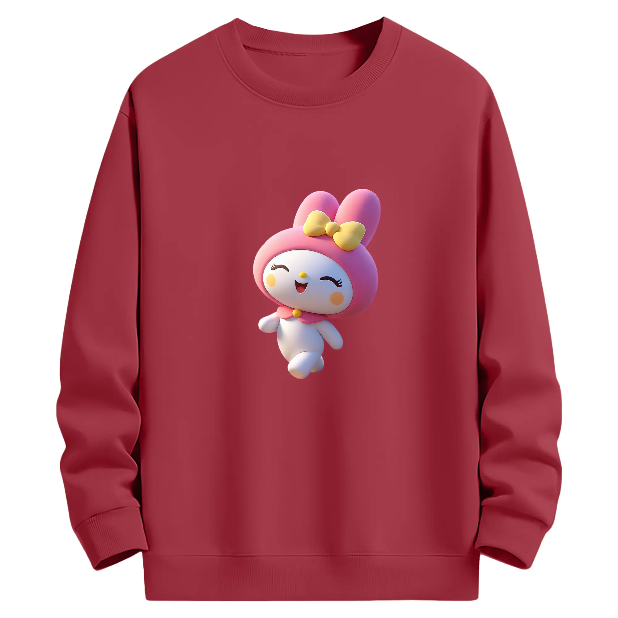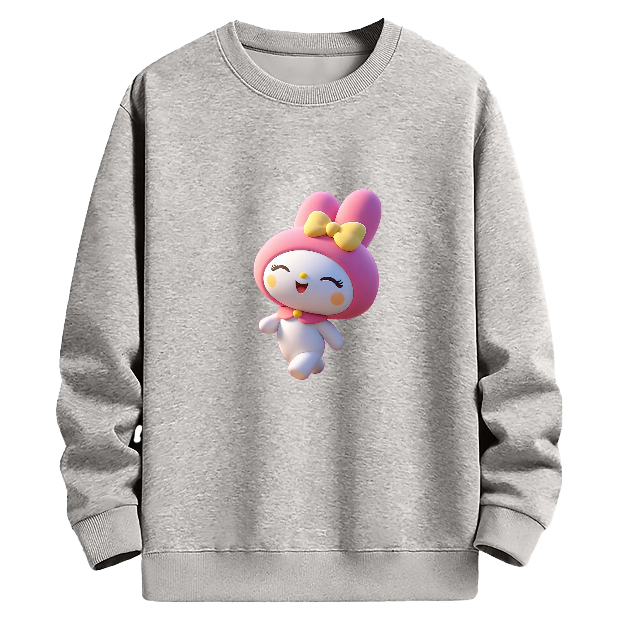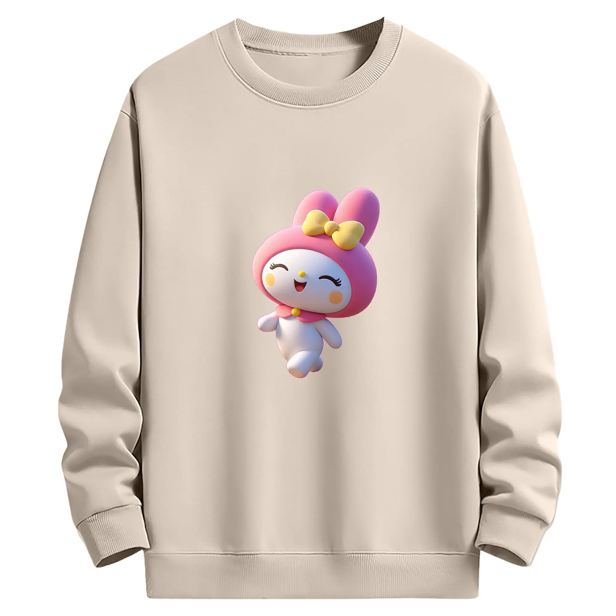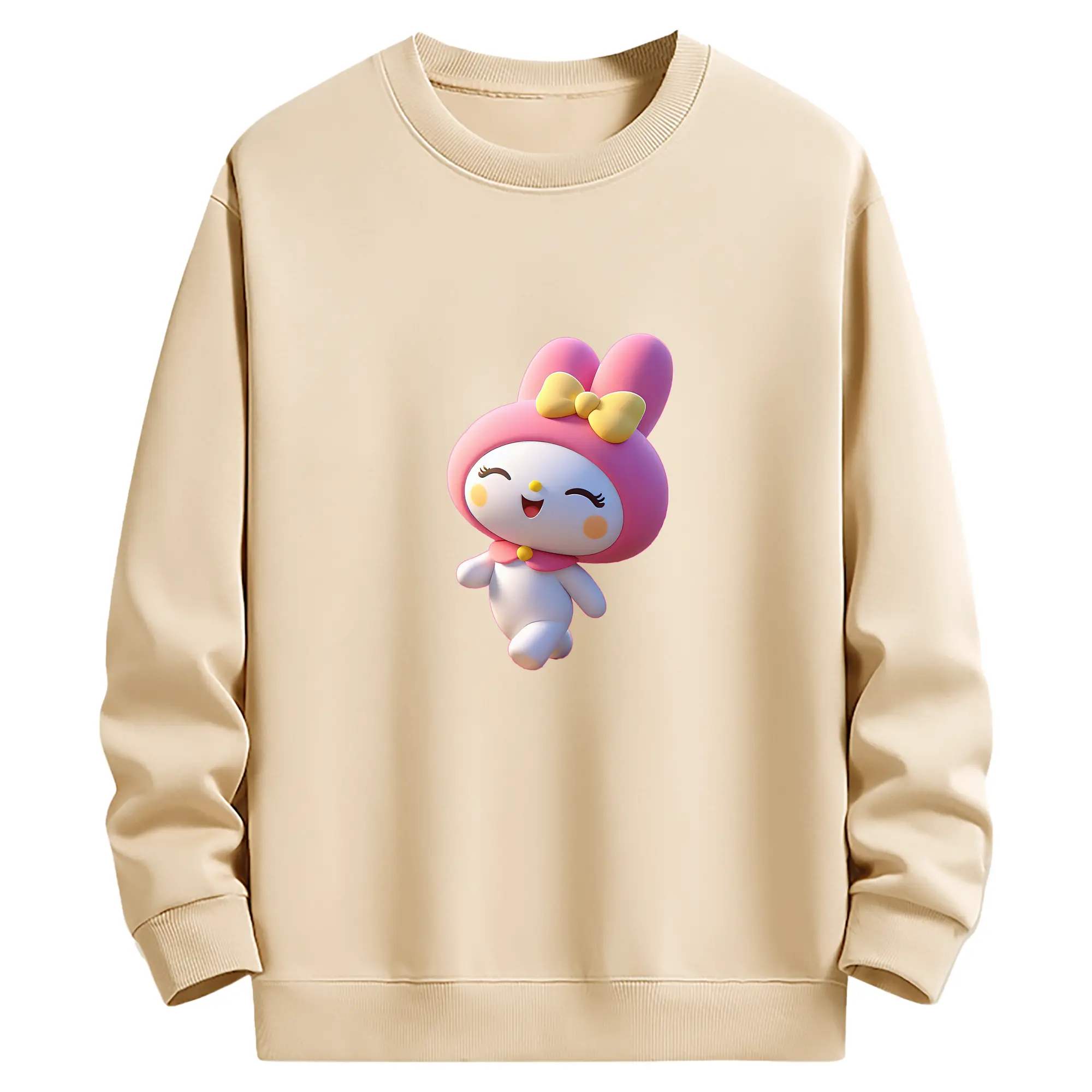 サンリオ グッズ,マイメロディ - 薄手 クルーネック スウェット 裏毛260g · ポリエステル 春秋向け カジュアル 男女兼用 · トレーナー デイリー スポーツ 散歩に最適