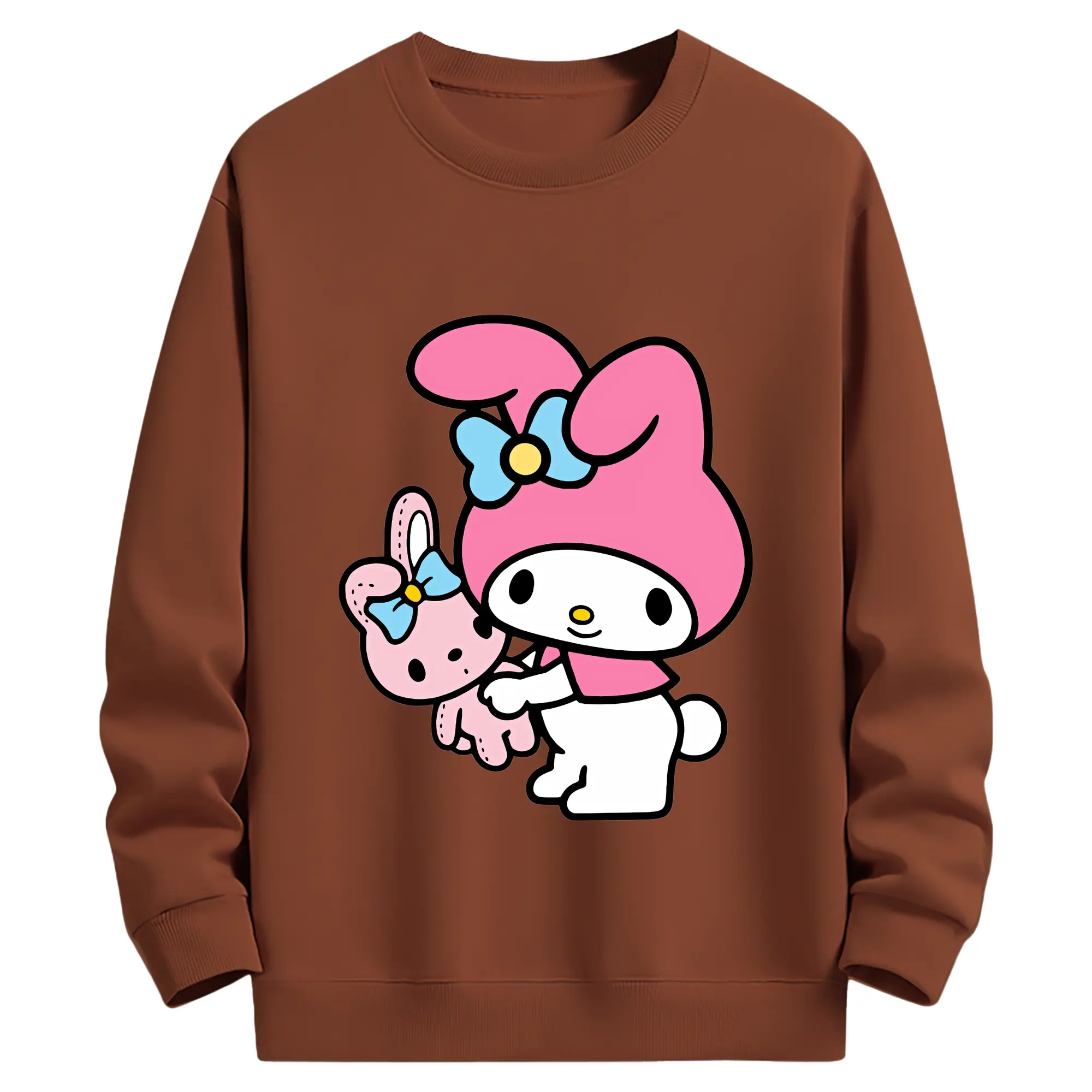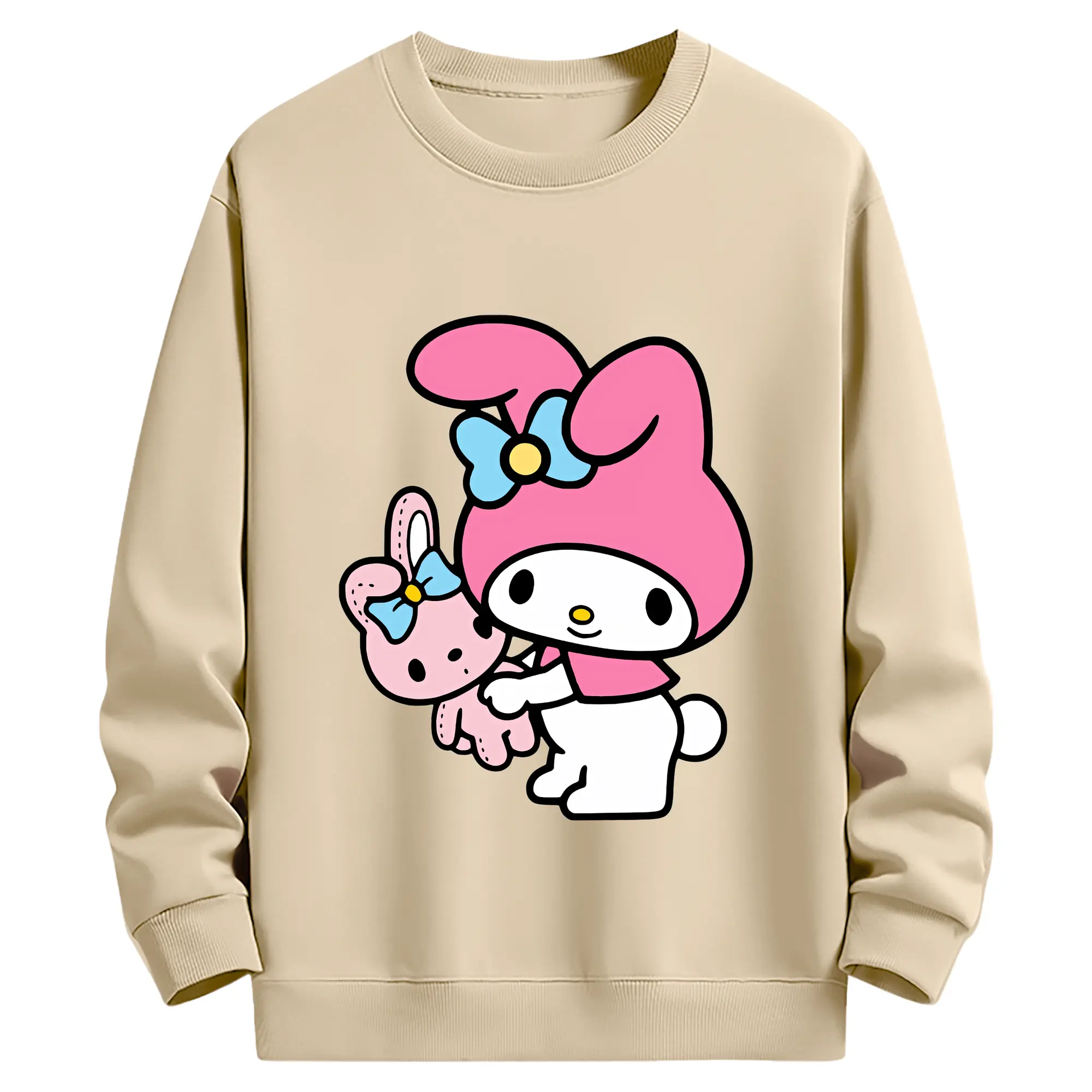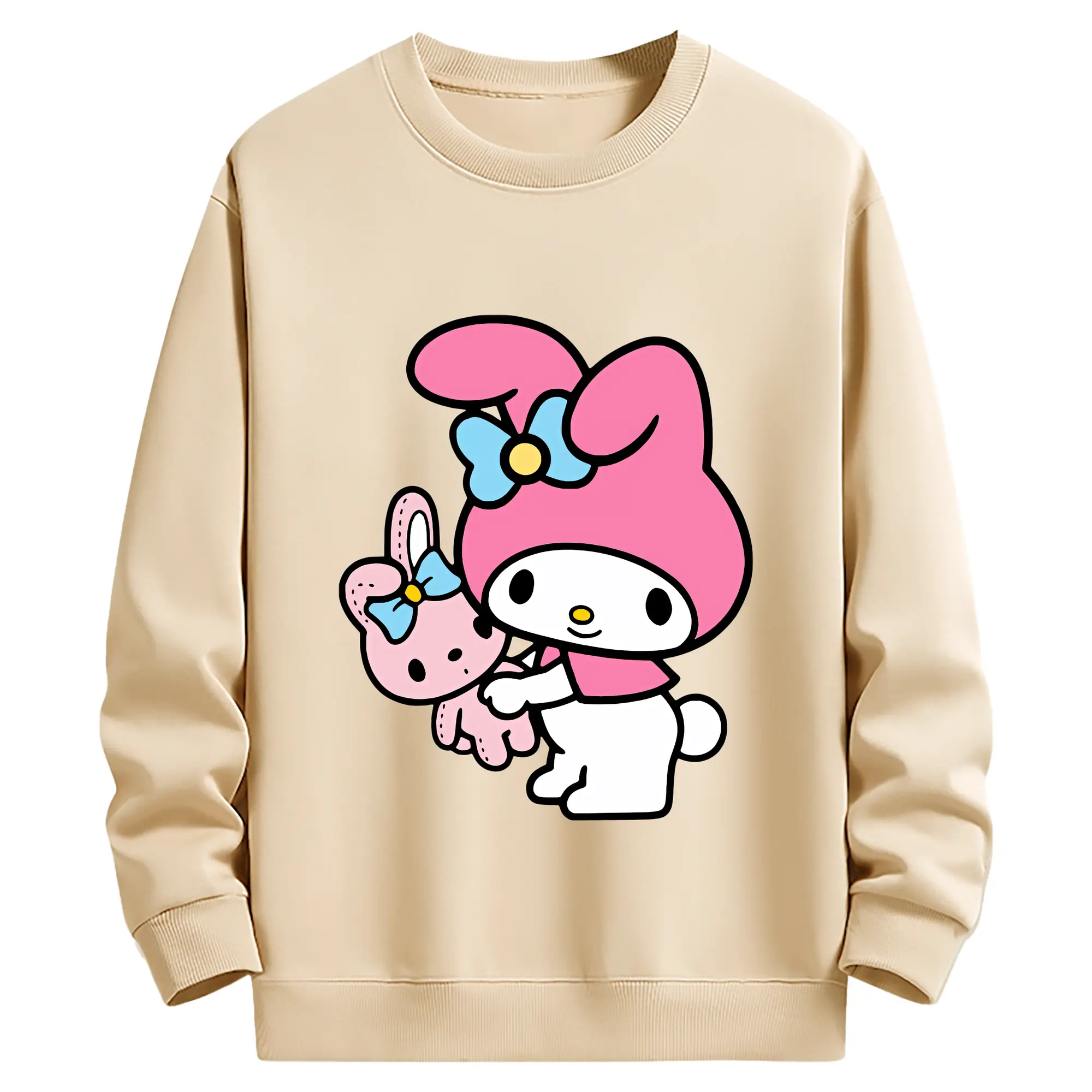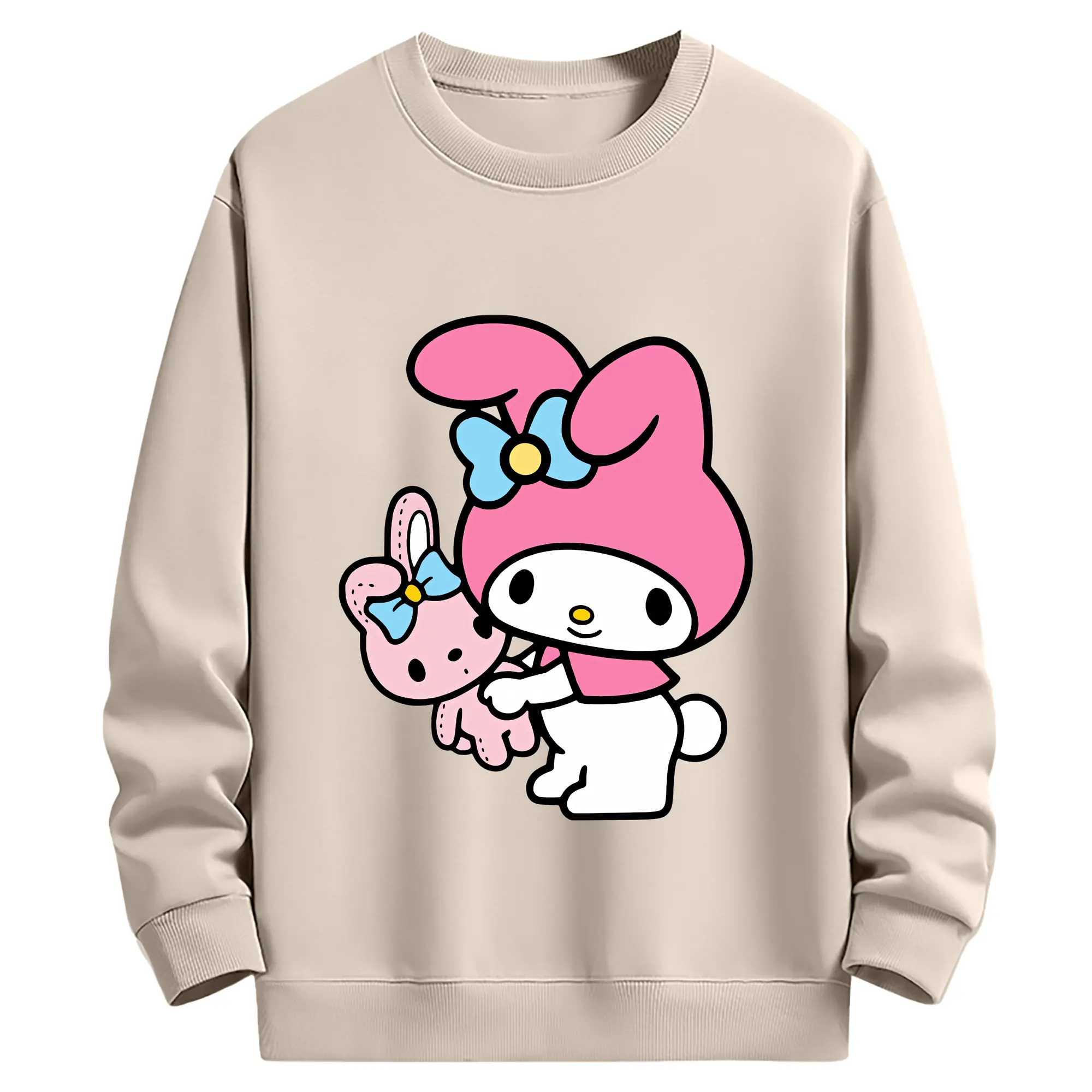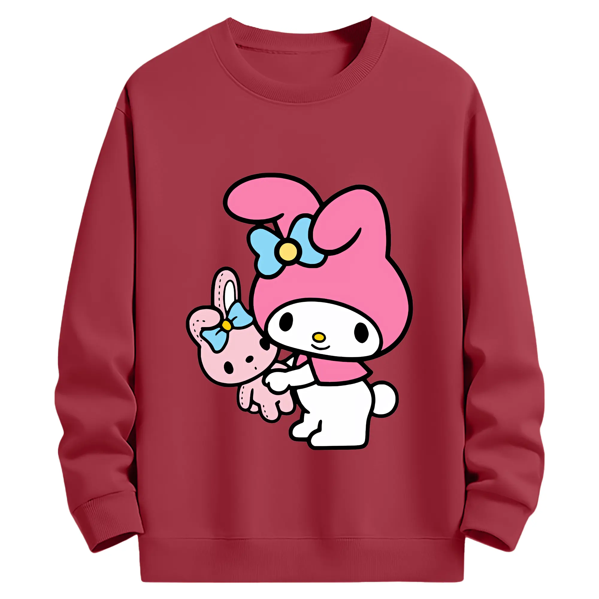 サンリオ グッズ,マイメロディ - 薄手 クルーネック スウェット 裏毛260g · ポリエステル 春秋向け カジュアル 男女兼用 · トレーナー デイリー スポーツ 散歩に最適