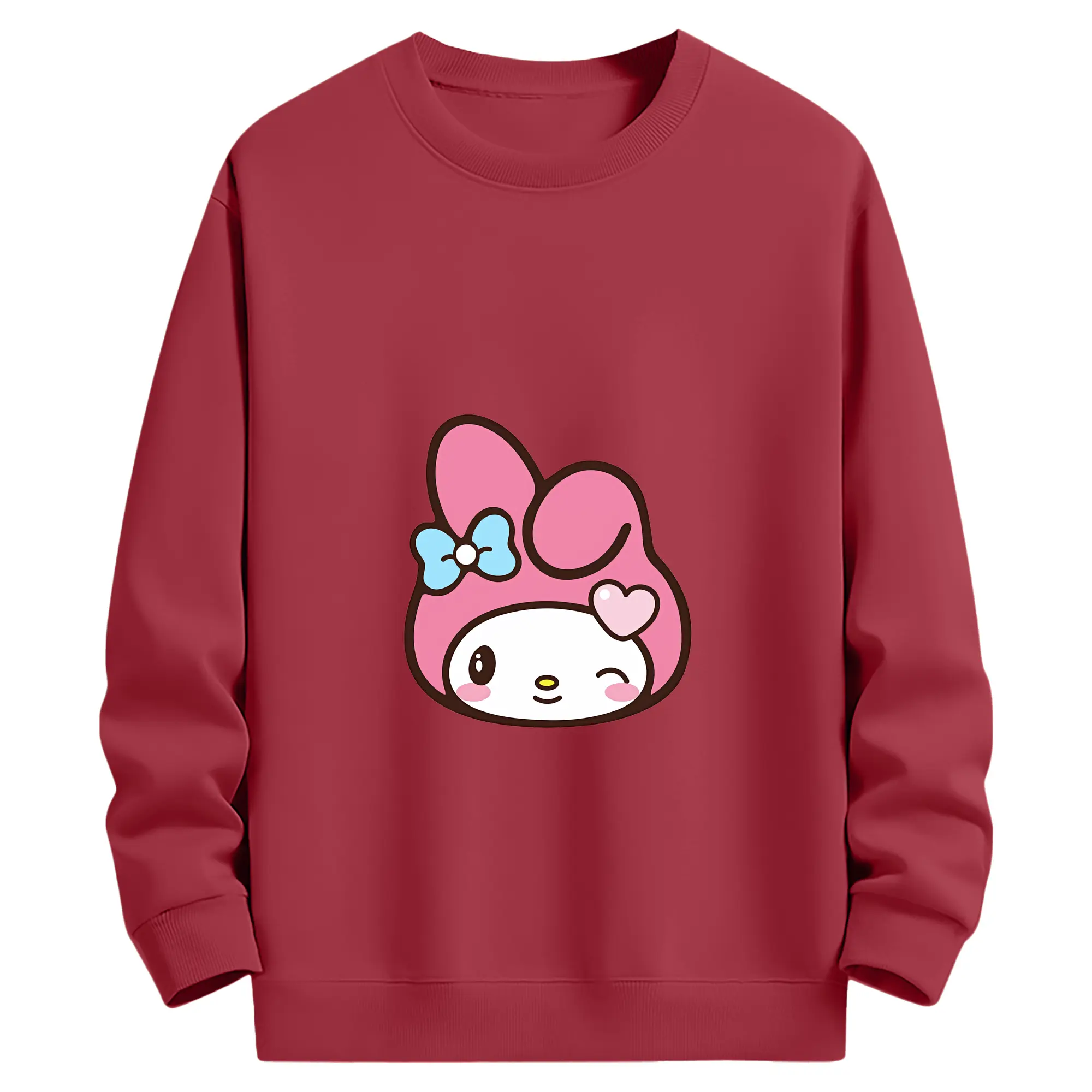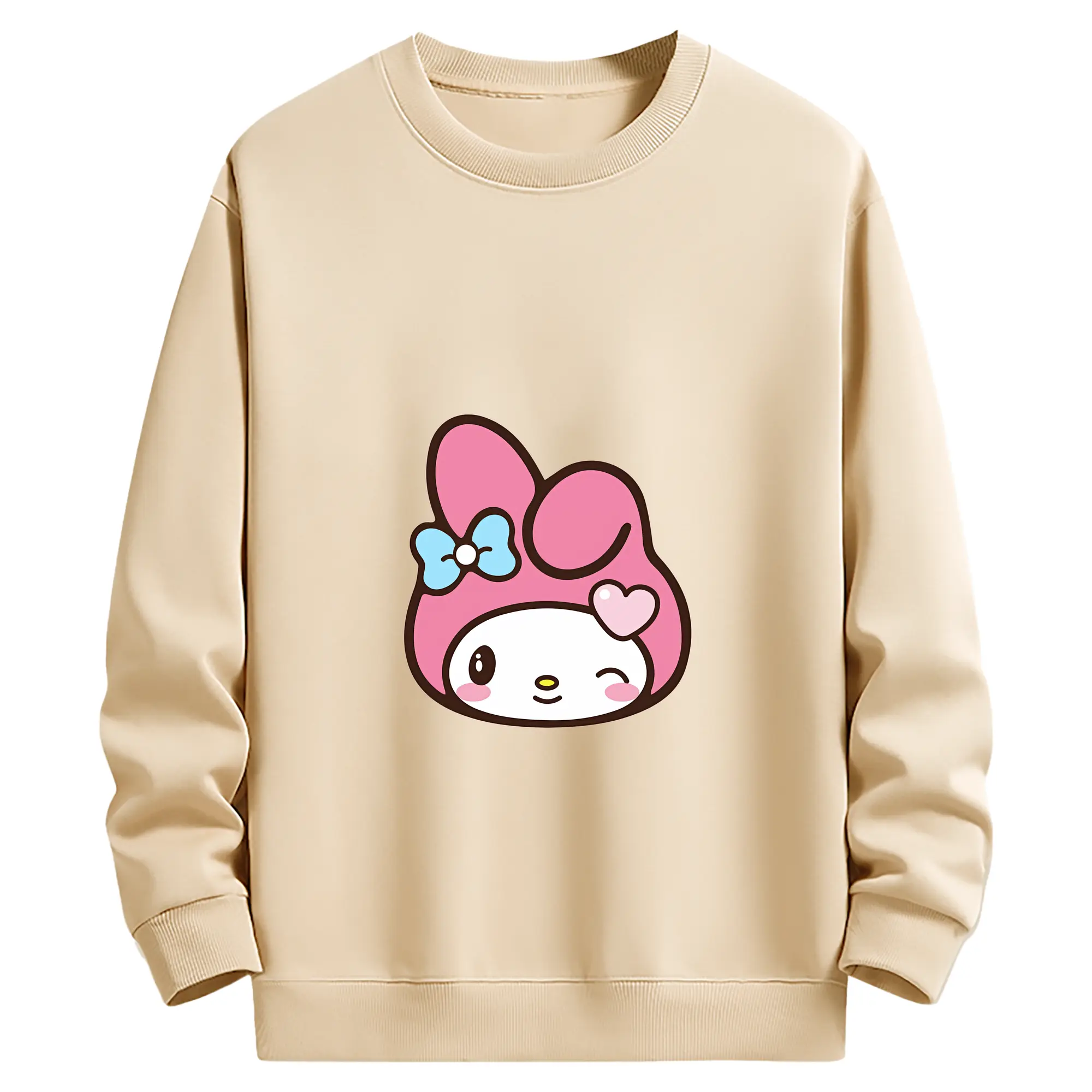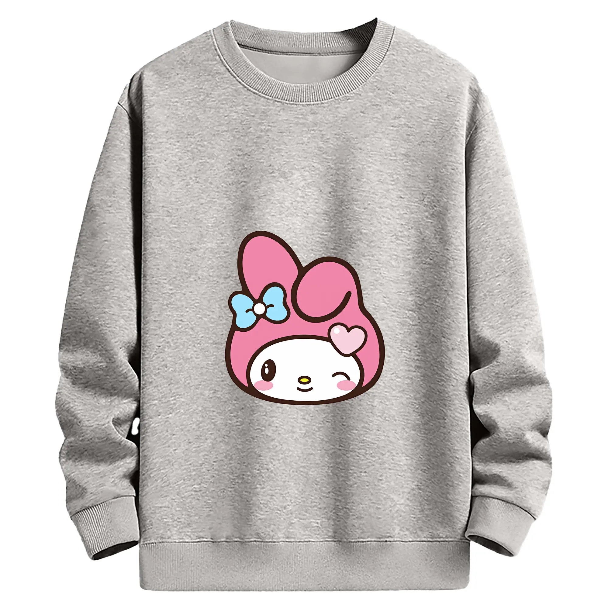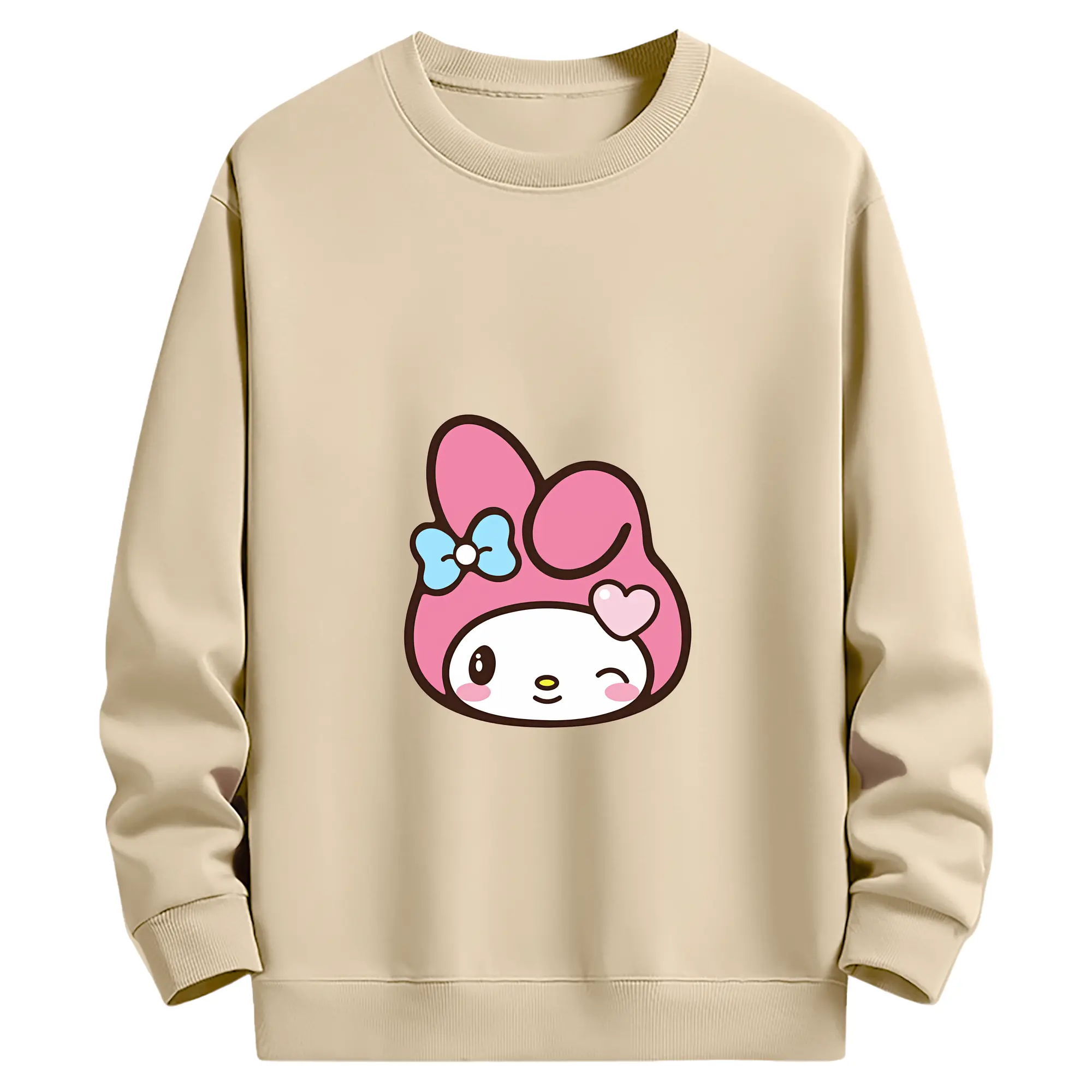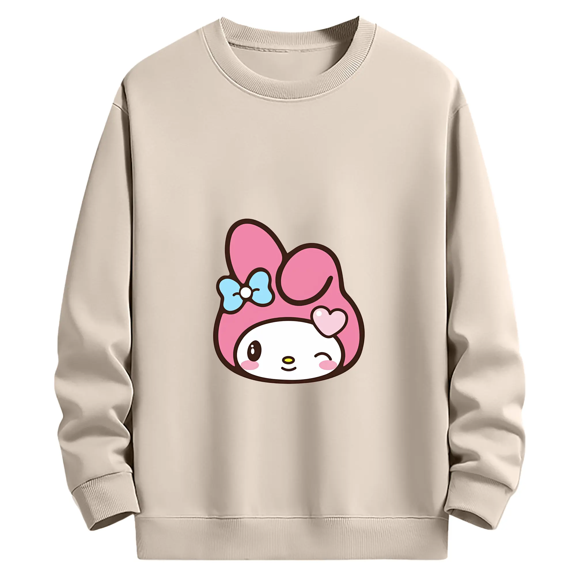 サンリオ グッズ,マイメロディ - 薄手 クルーネック スウェット 裏毛260g · ポリエステル 春秋向け カジュアル 男女兼用 · トレーナー デイリー スポーツ 散歩に最適