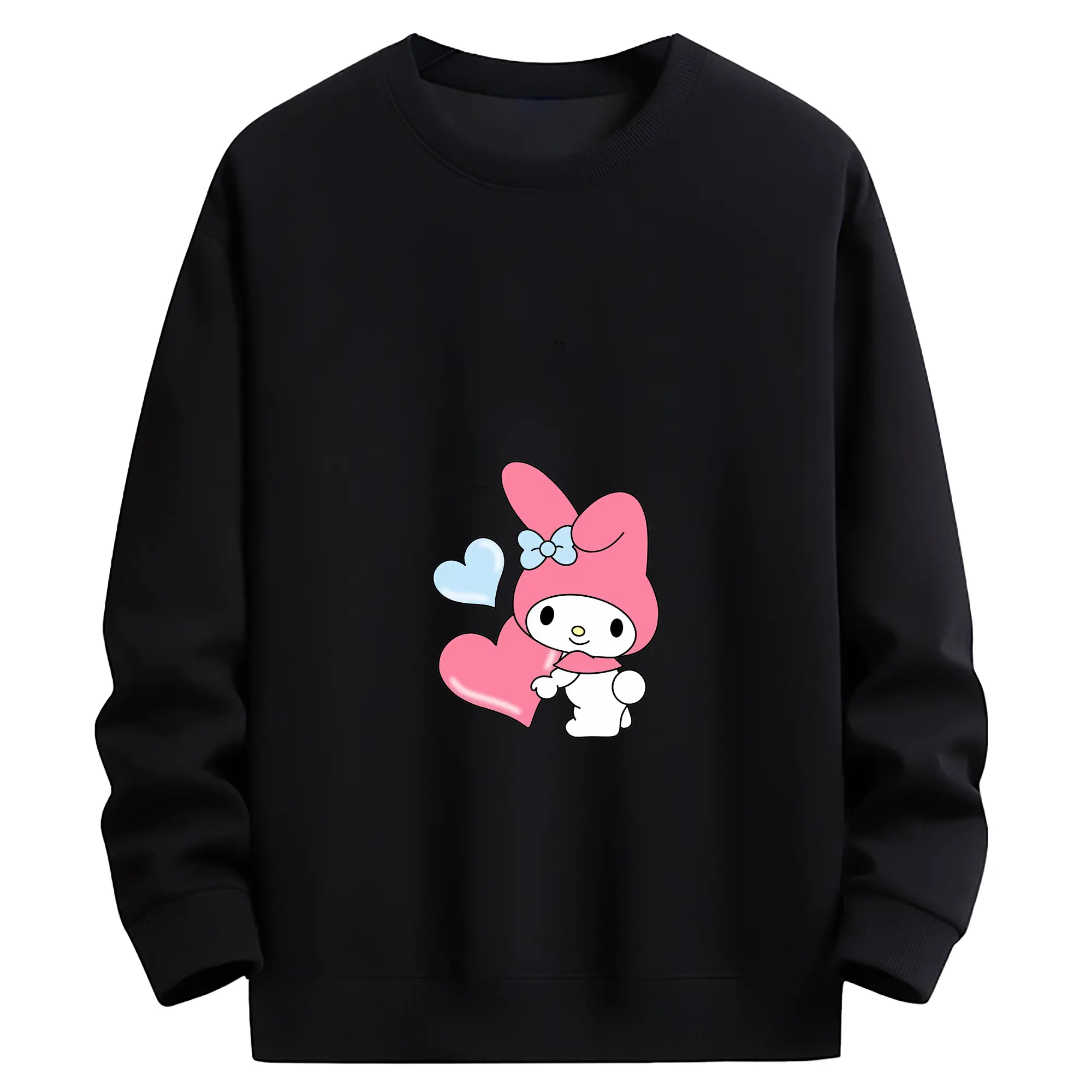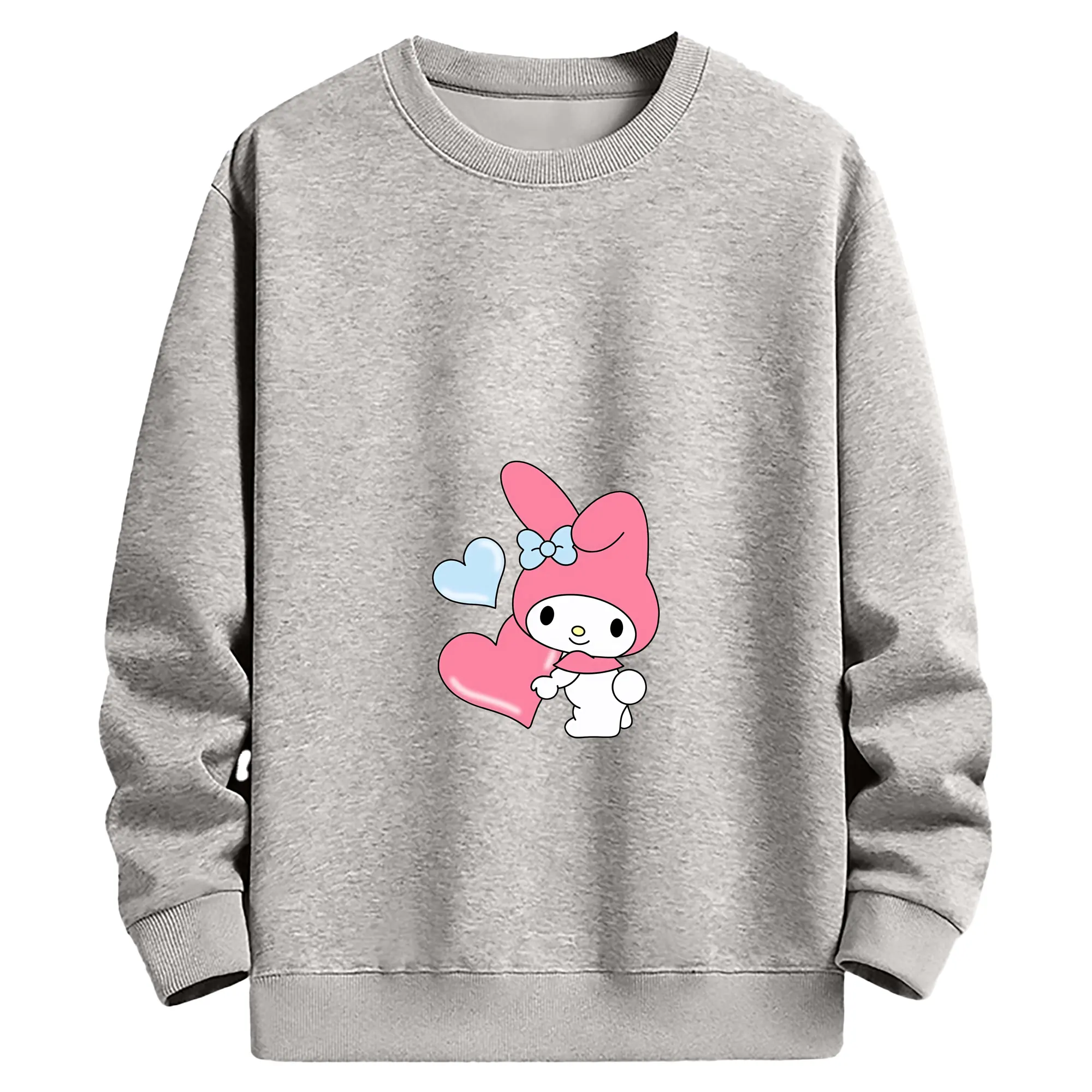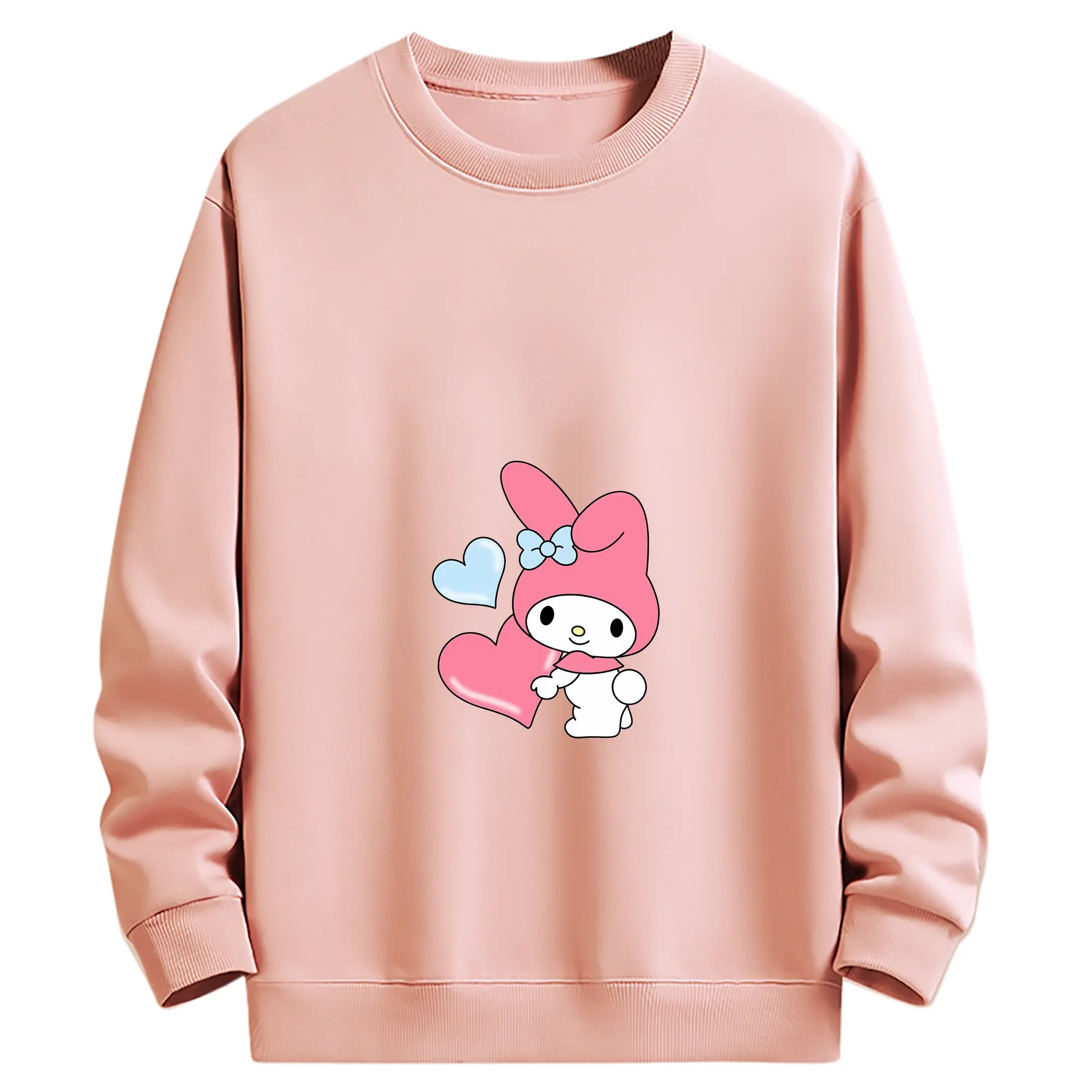 サンリオ グッズ,マイメロディ - 薄手 クルーネック スウェット 裏毛260g · ポリエステル 春秋向け カジュアル 男女兼用 · トレーナー デイリー スポーツ 散歩に最適