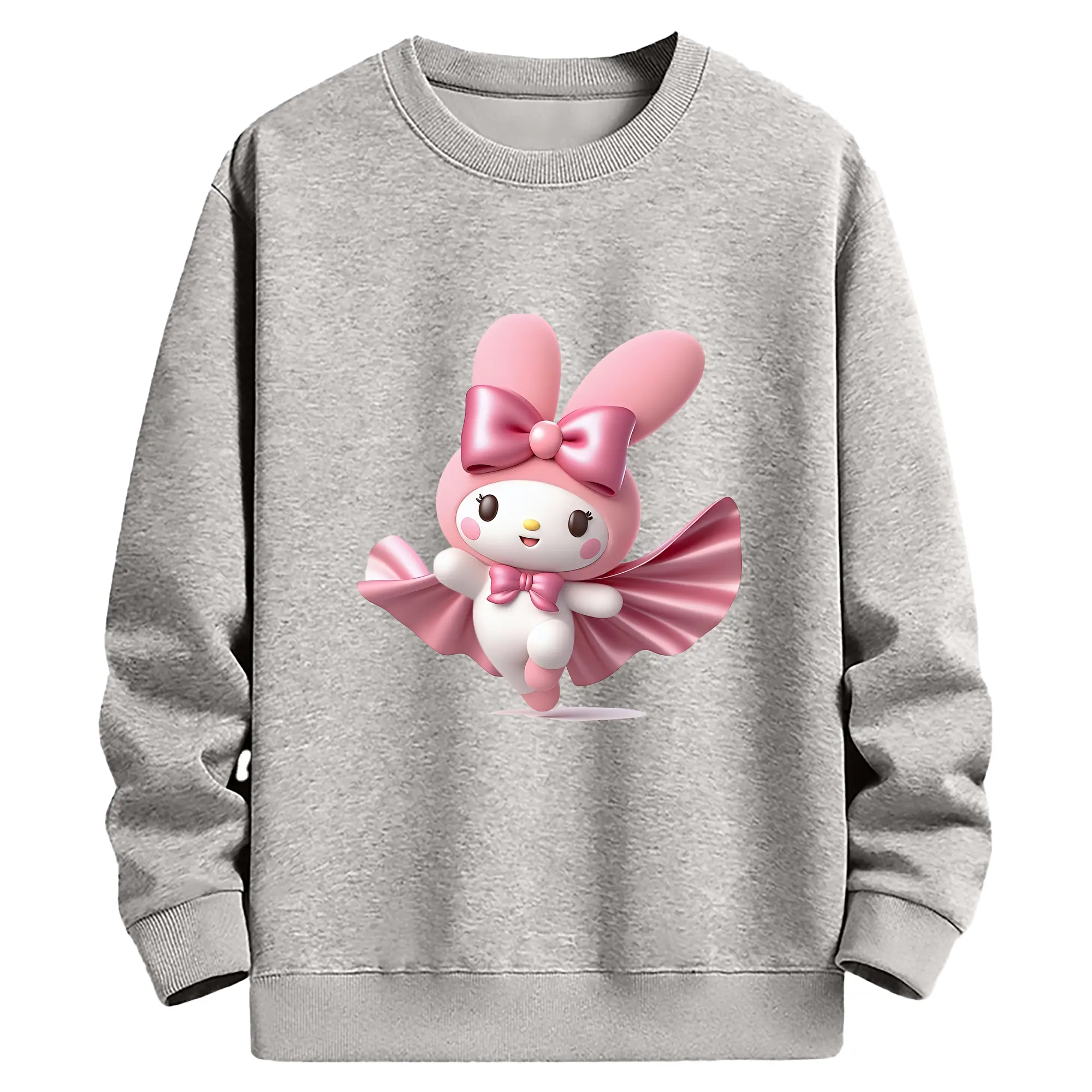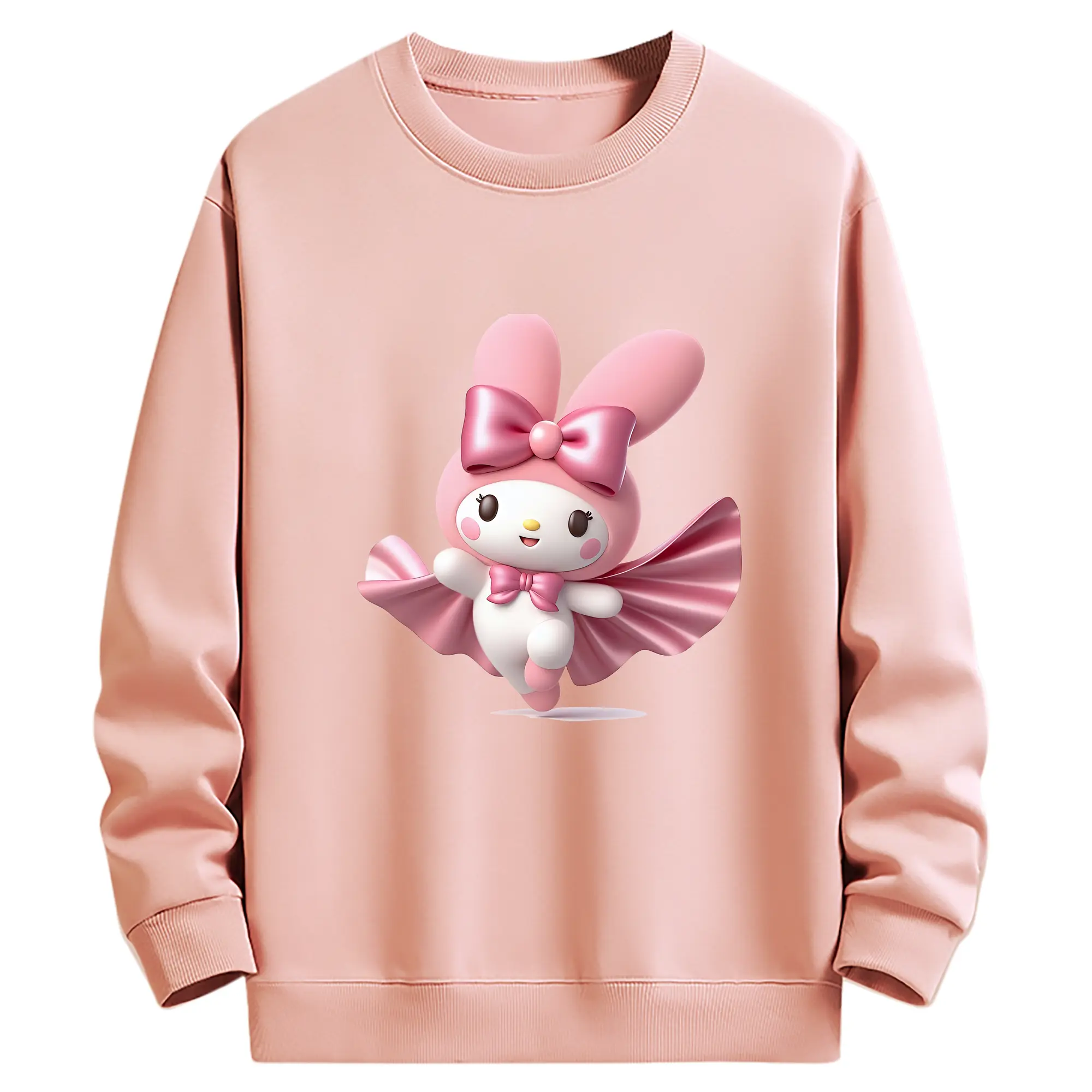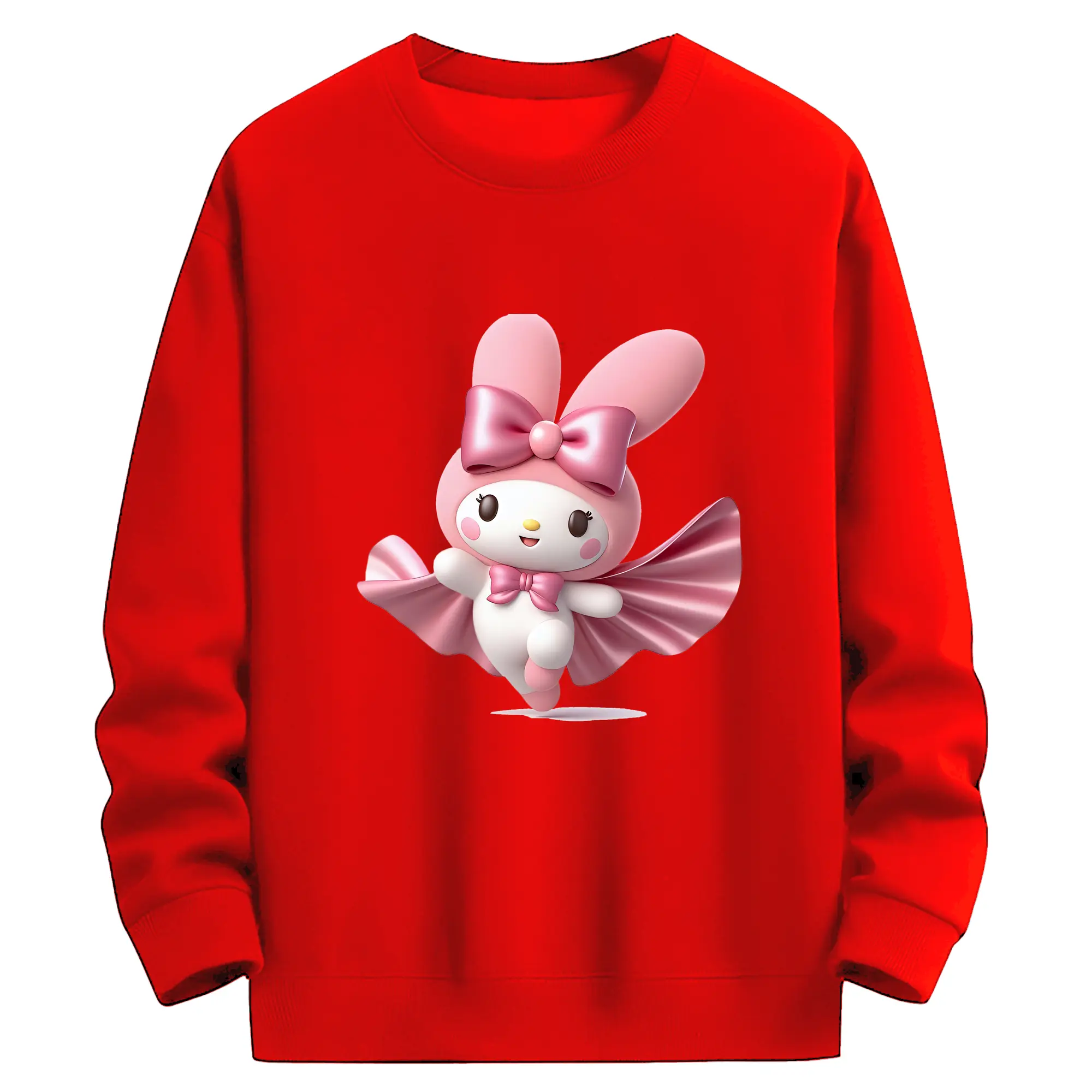 サンリオ グッズ,マイメロディ - 薄手 クルーネック スウェット 裏毛260g · ポリエステル 春秋向け カジュアル 男女兼用 · トレーナー デイリー スポーツ 散歩に最適