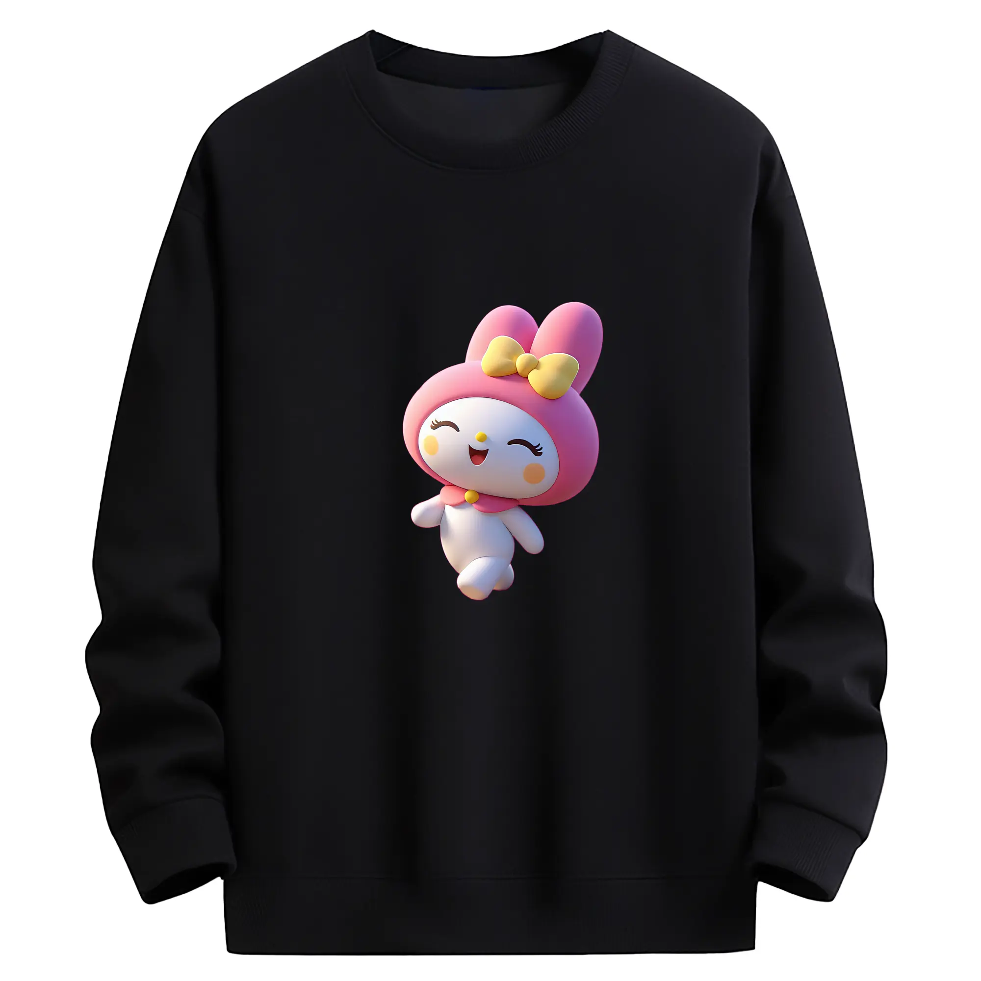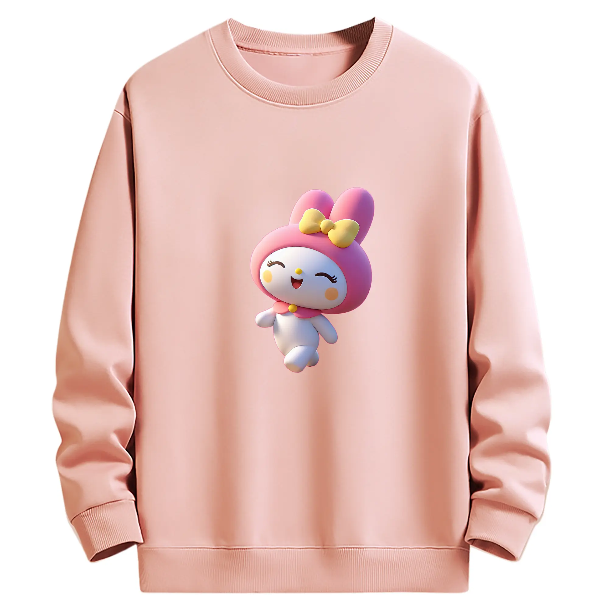 サンリオ グッズ,マイメロディ - 薄手 クルーネック スウェット 裏毛260g · ポリエステル 春秋向け カジュアル 男女兼用 · トレーナー デイリー スポーツ 散歩に最適