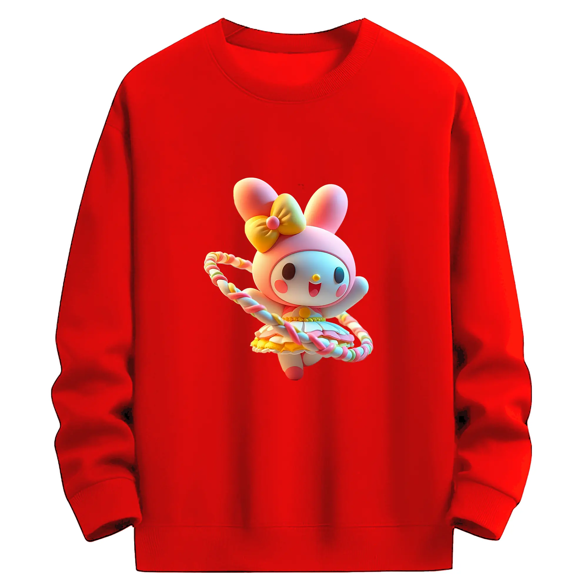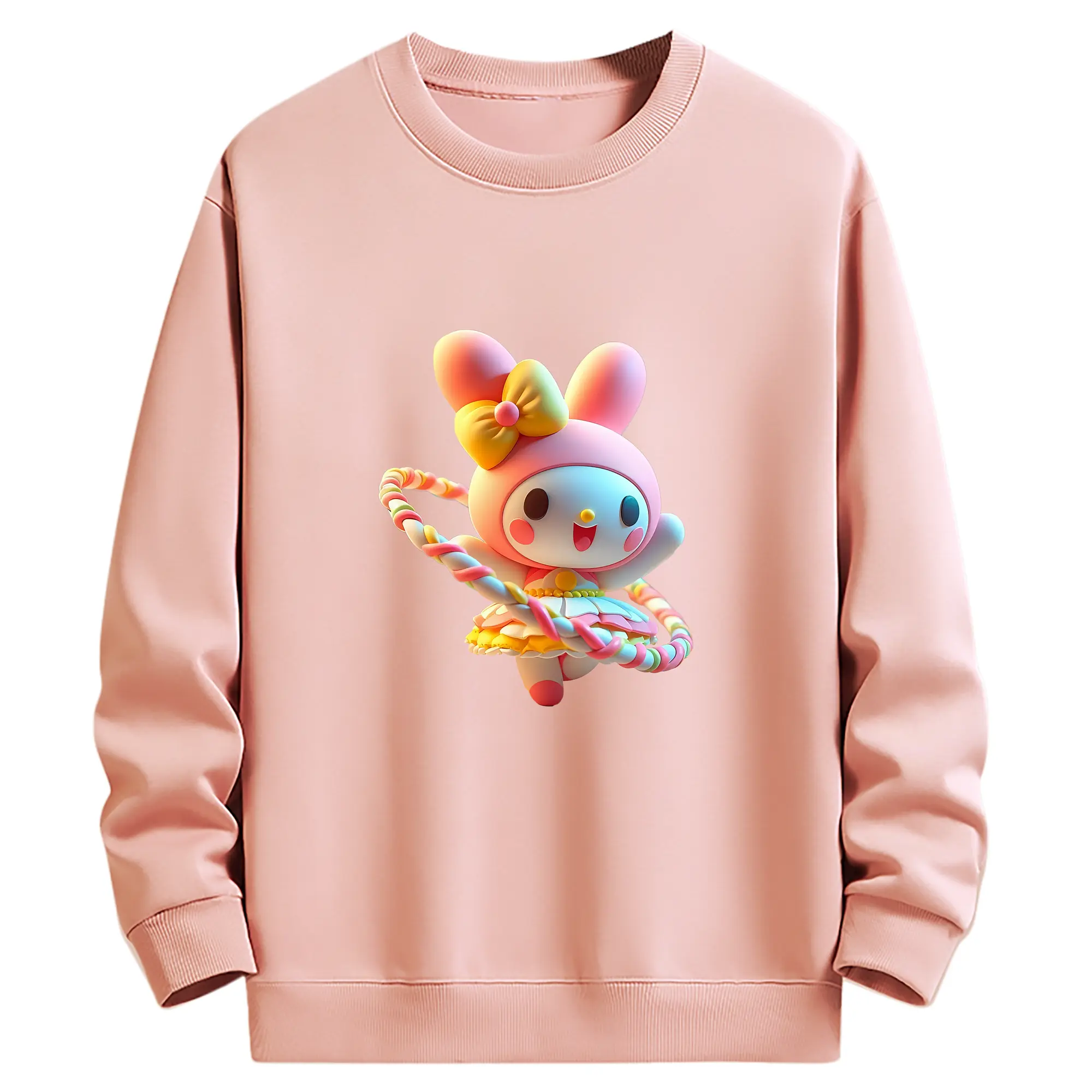 サンリオ グッズ,マイメロディ - 薄手 クルーネック スウェット 裏毛260g · ポリエステル 春秋向け カジュアル 男女兼用 · トレーナー デイリー スポーツ 散歩に最適