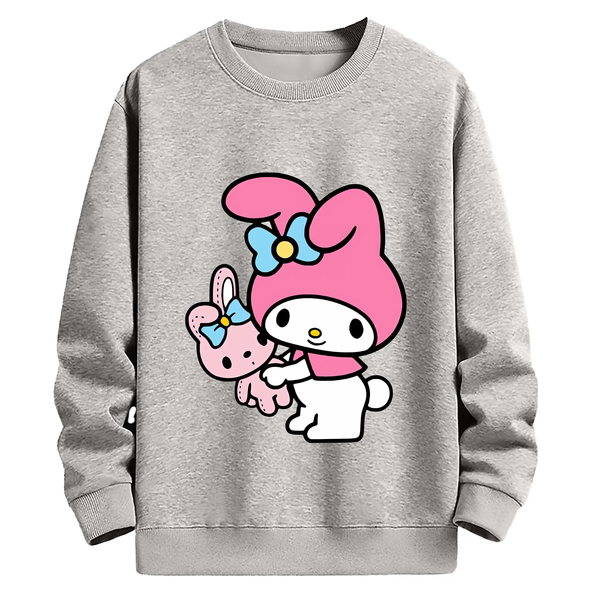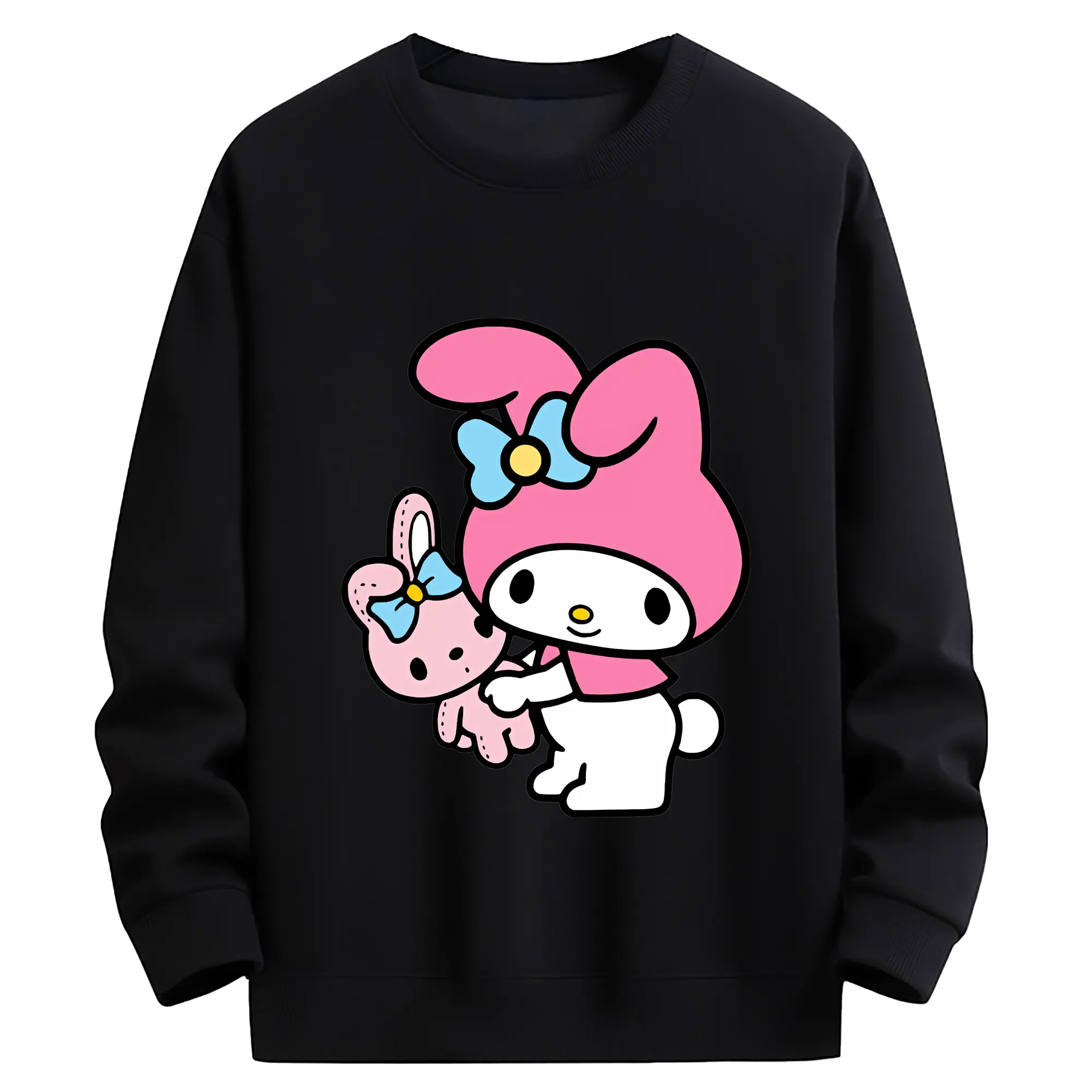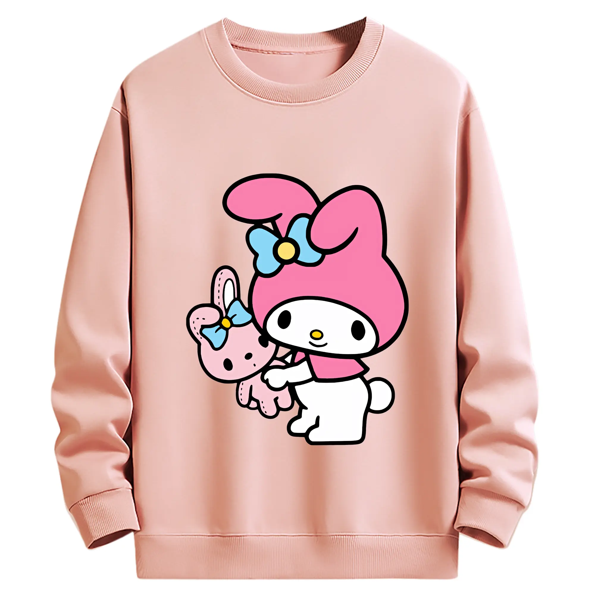 サンリオ グッズ,マイメロディ - 薄手 クルーネック スウェット 裏毛260g · ポリエステル 春秋向け カジュアル 男女兼用 · トレーナー デイリー スポーツ 散歩に最適