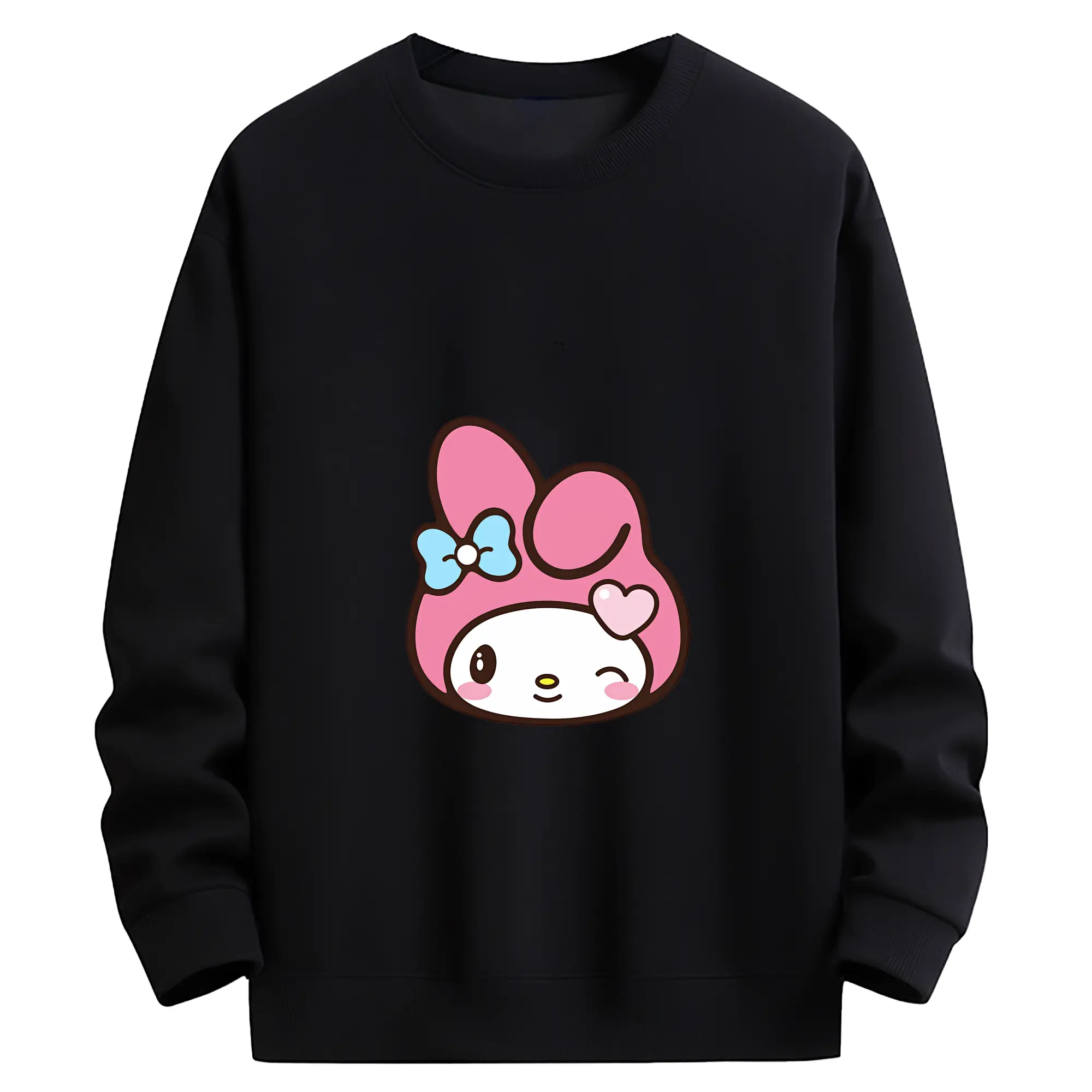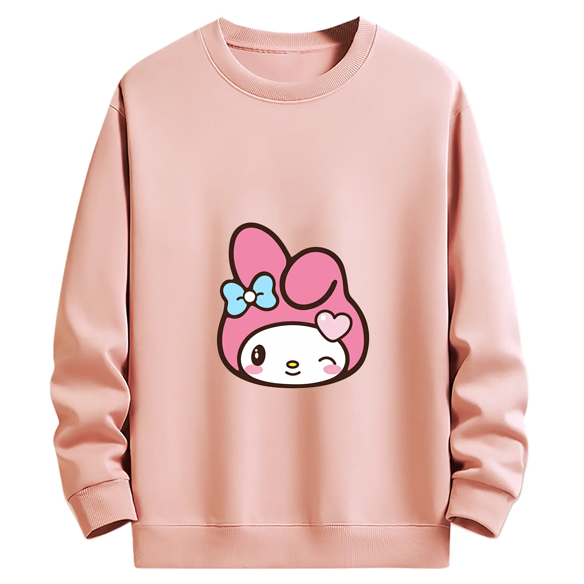 サンリオ グッズ,マイメロディ - 薄手 クルーネック スウェット 裏毛260g · ポリエステル 春秋向け カジュアル 男女兼用 · トレーナー デイリー スポーツ 散歩に最適