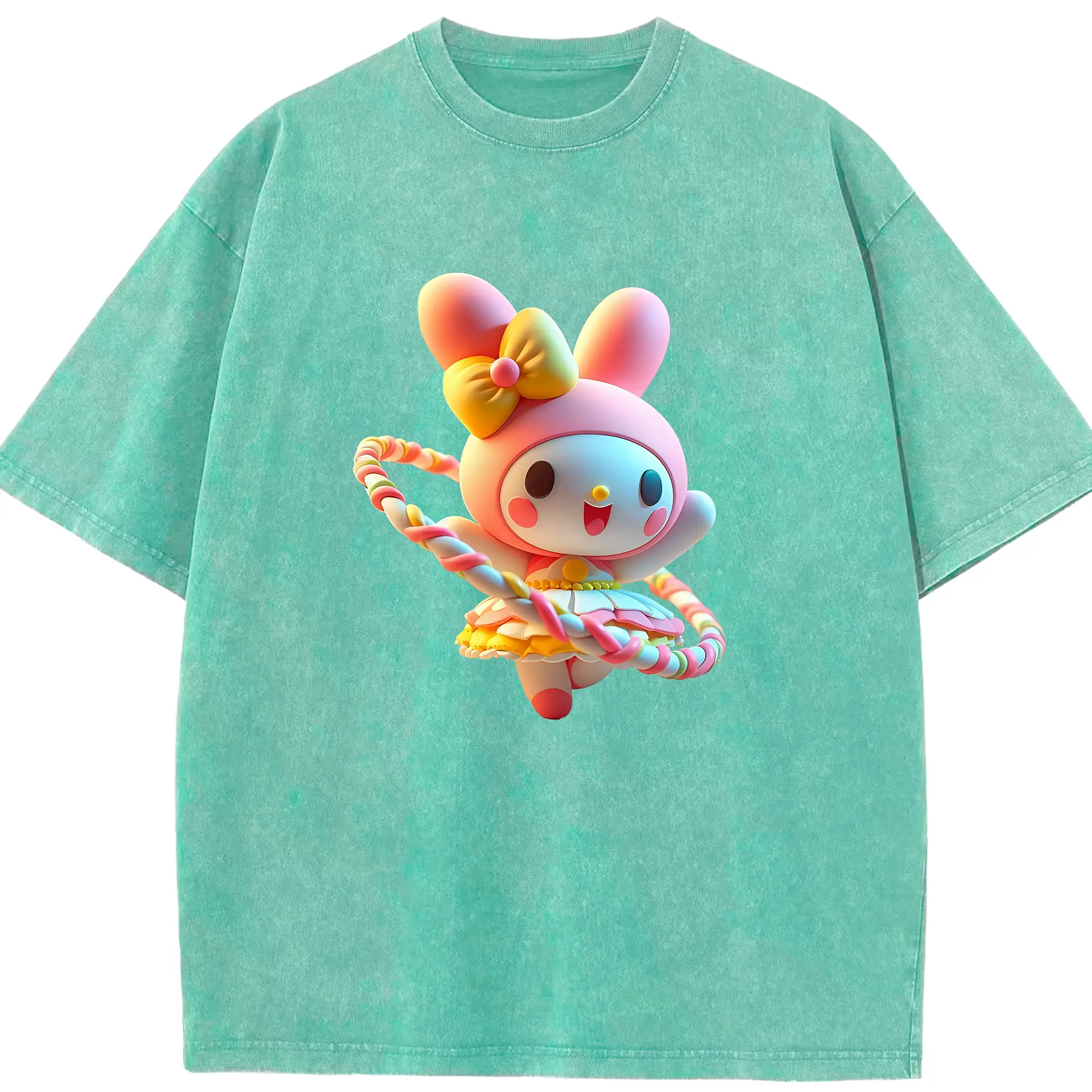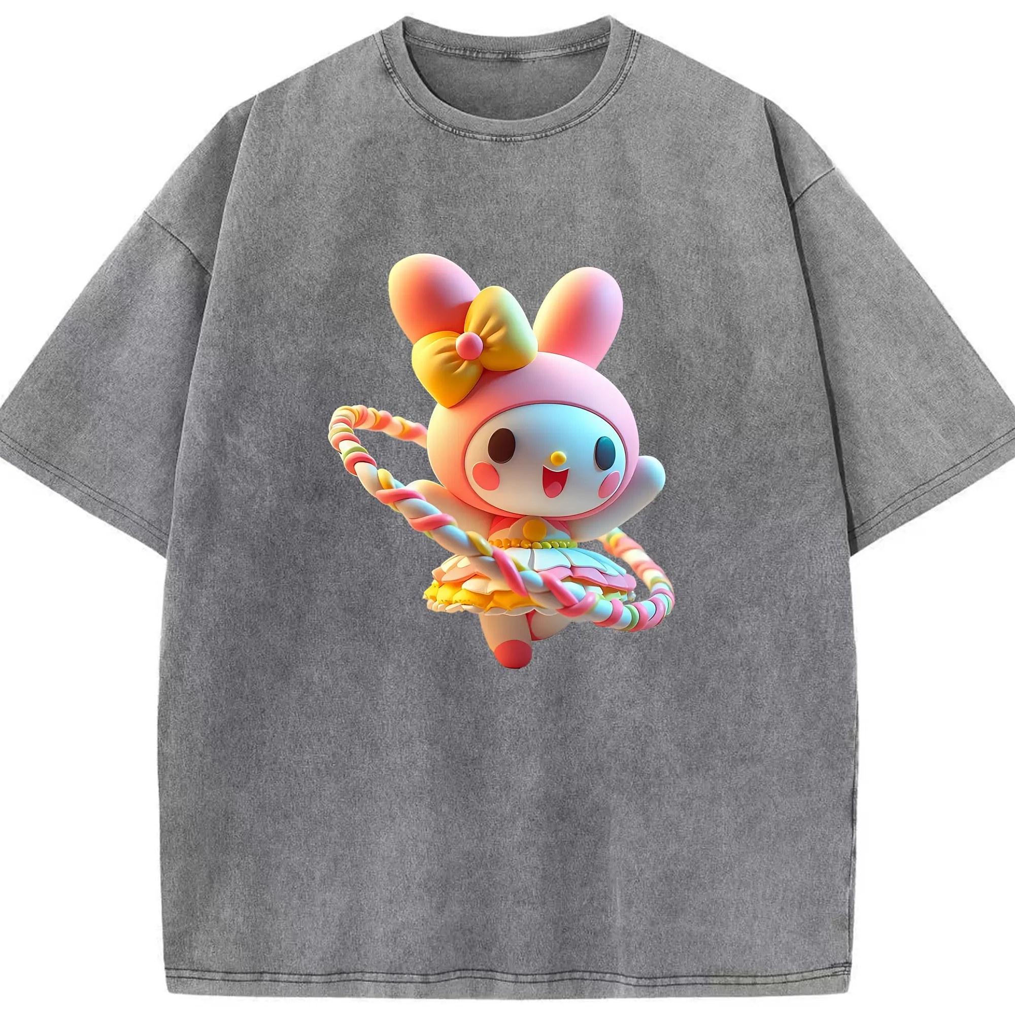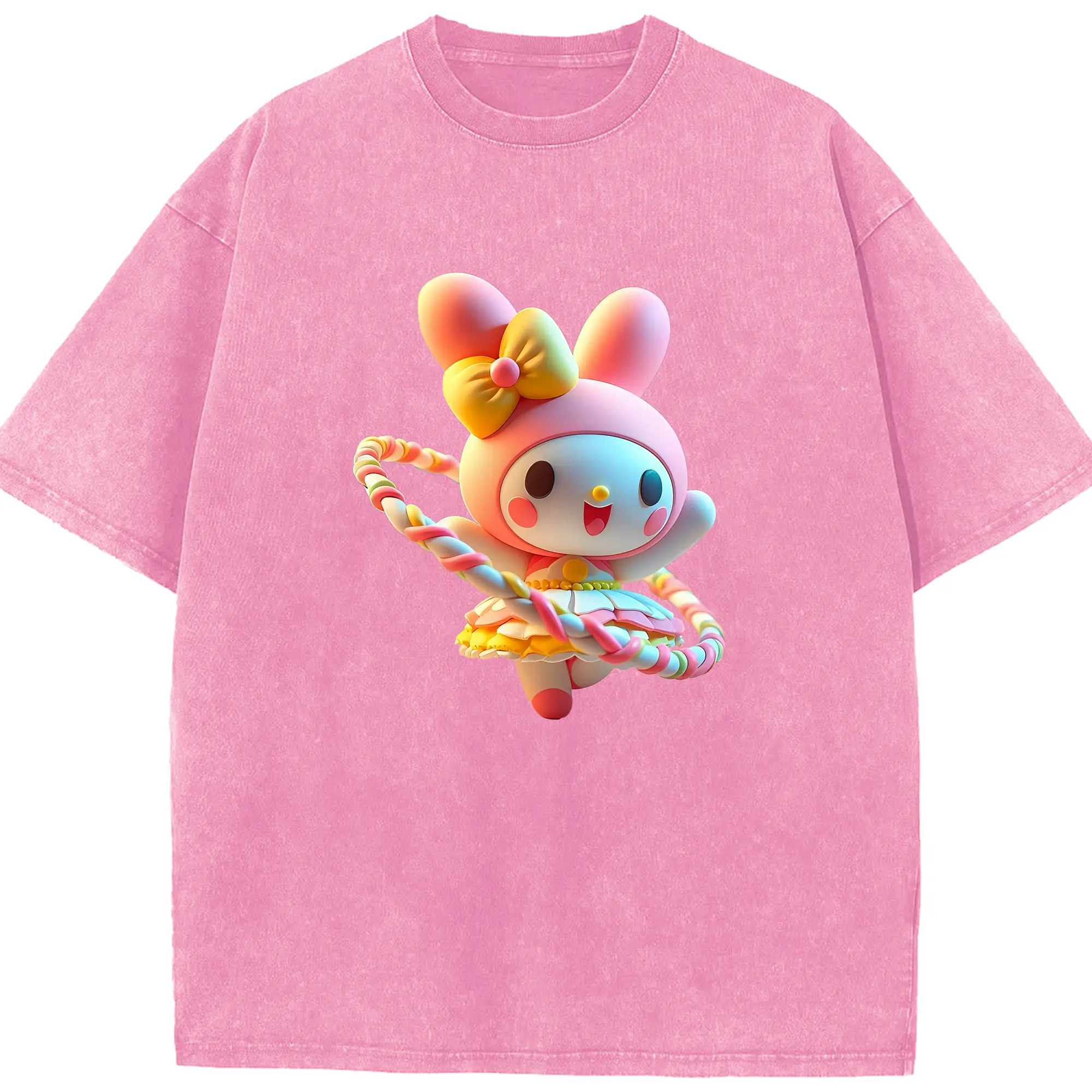 サンリオ グッズ,マイメロディ - 綿100% ヴィンテージ風 半袖Tシャツ ・ 背面プリント ・ 柔らか肌触り ・ 通気性 快適 ・ スポーツ カジュアル 外出用