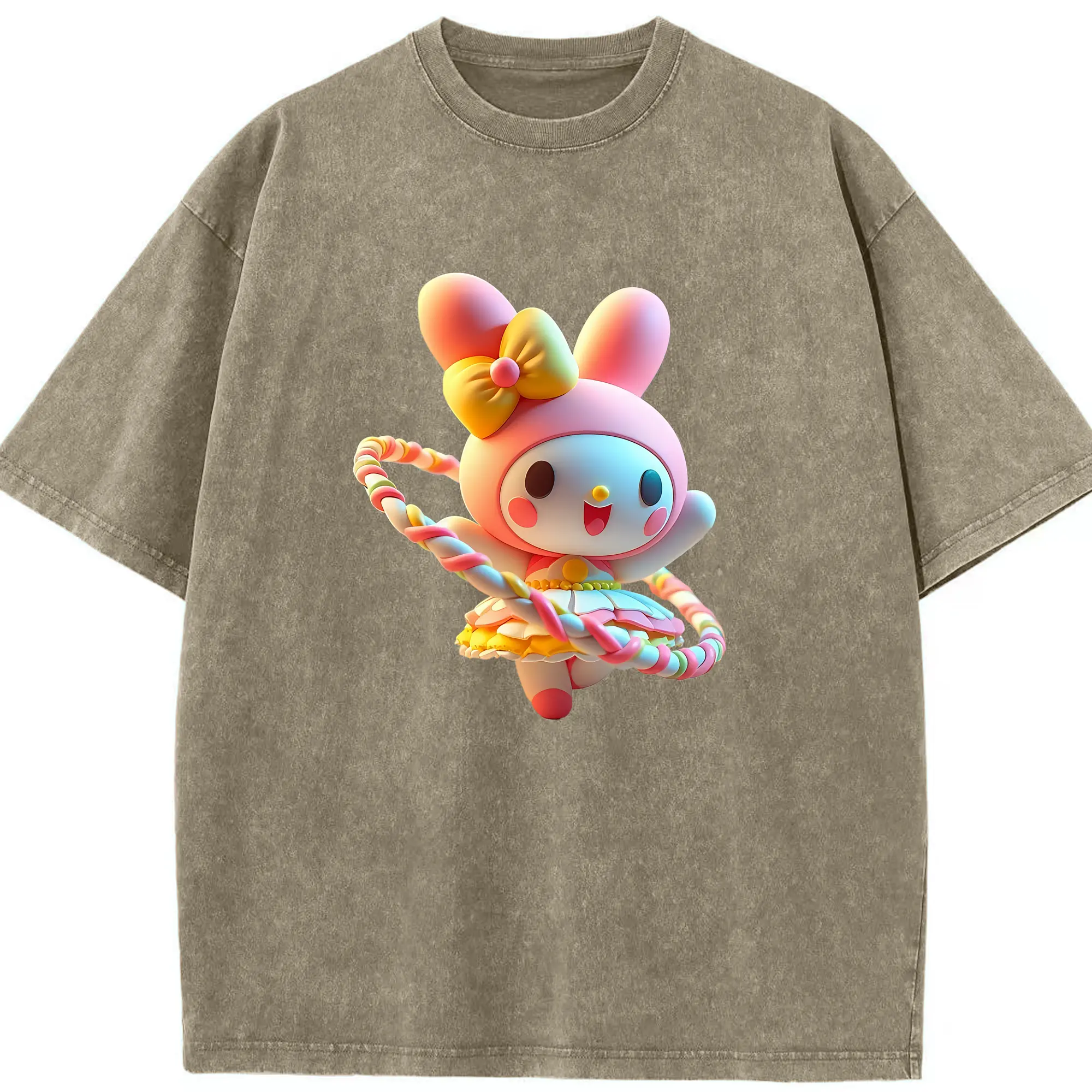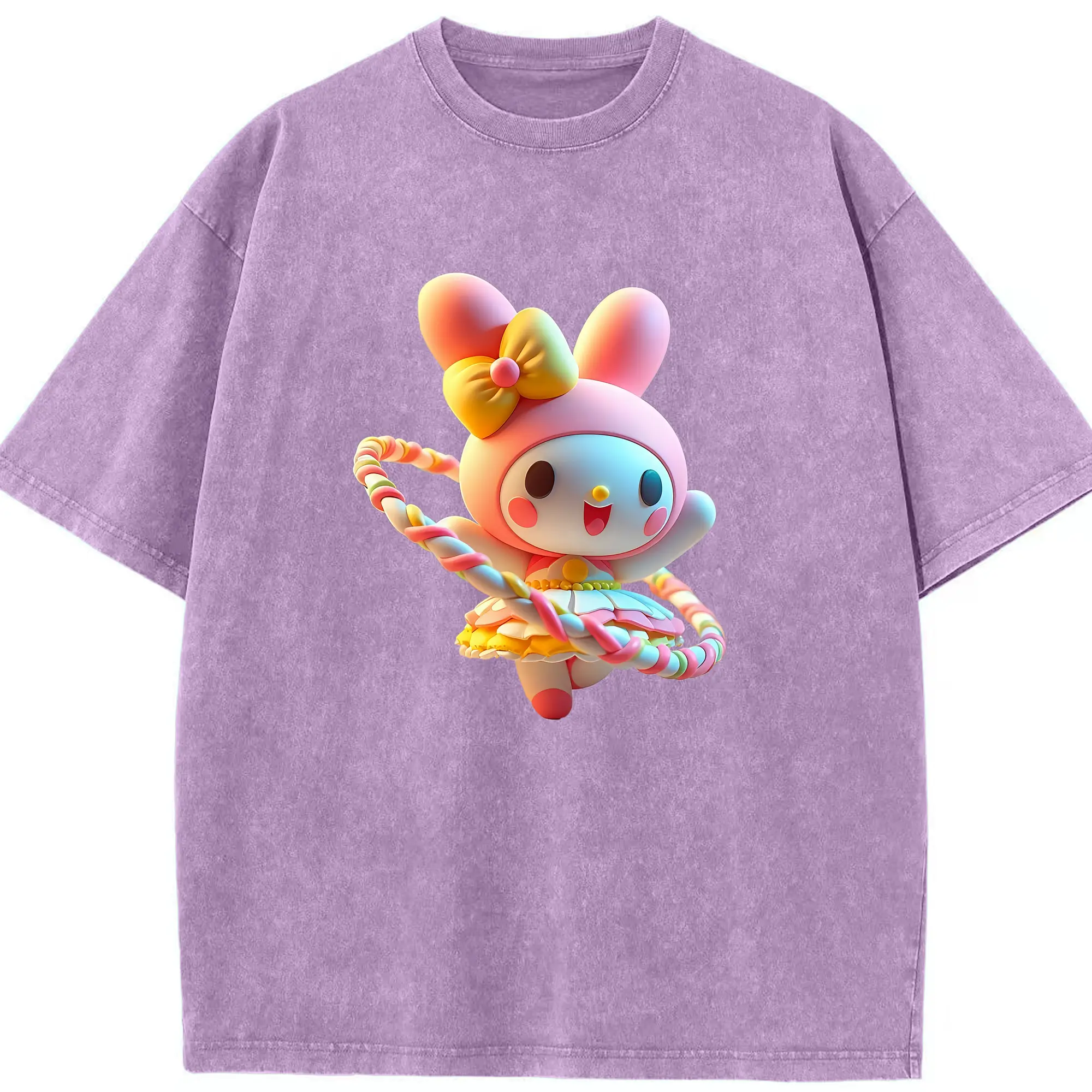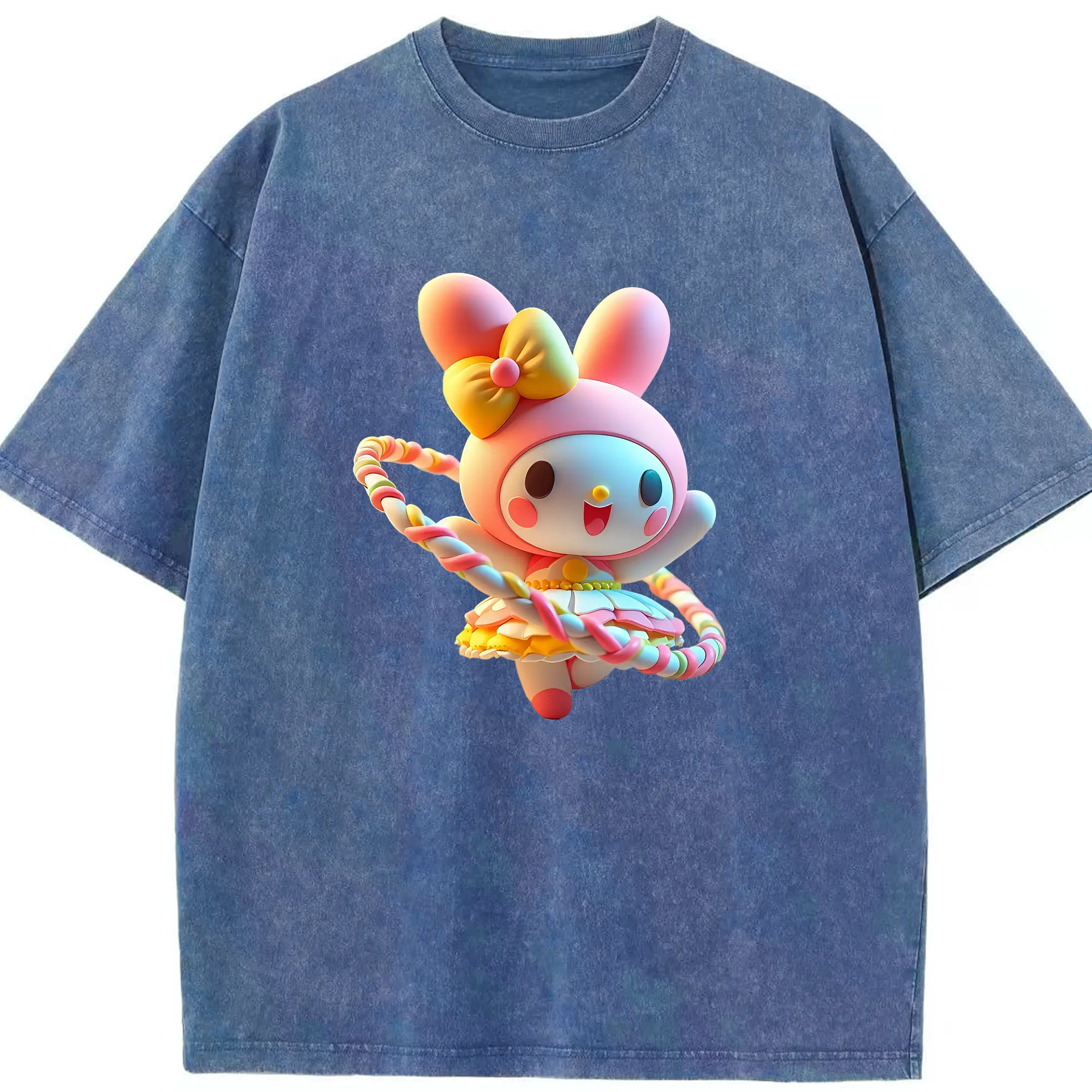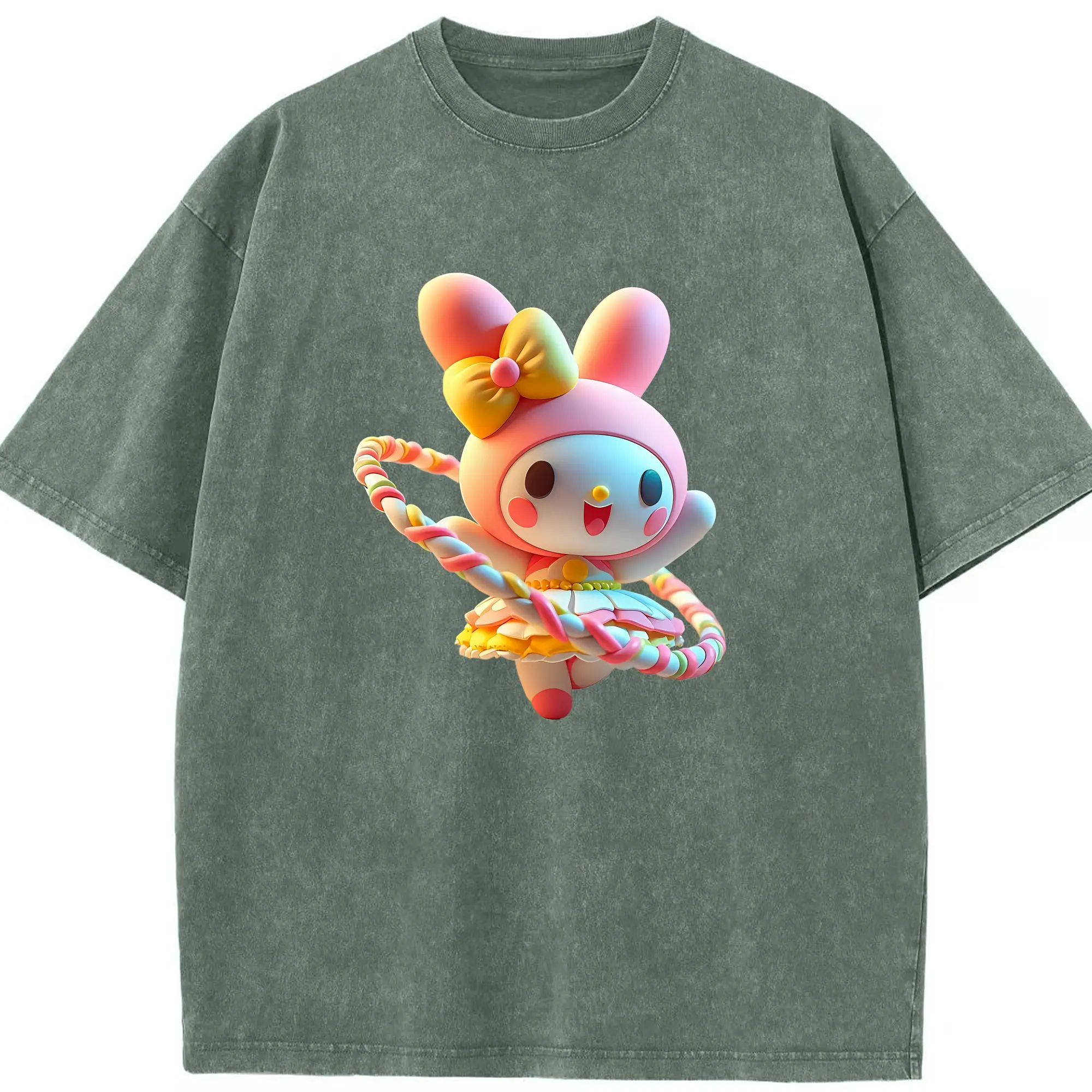 サンリオ グッズ,マイメロディ - 綿100% ヴィンテージ風 半袖Tシャツ ・ 背面プリント ・ 柔らか肌触り ・ 通気性 快適 ・ スポーツ カジュアル 外出用